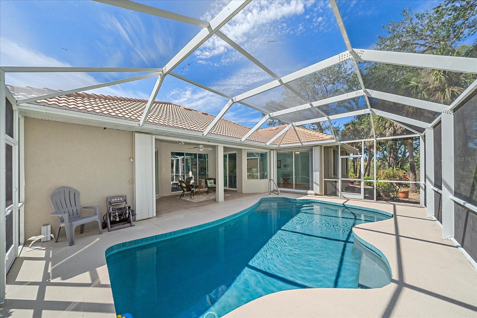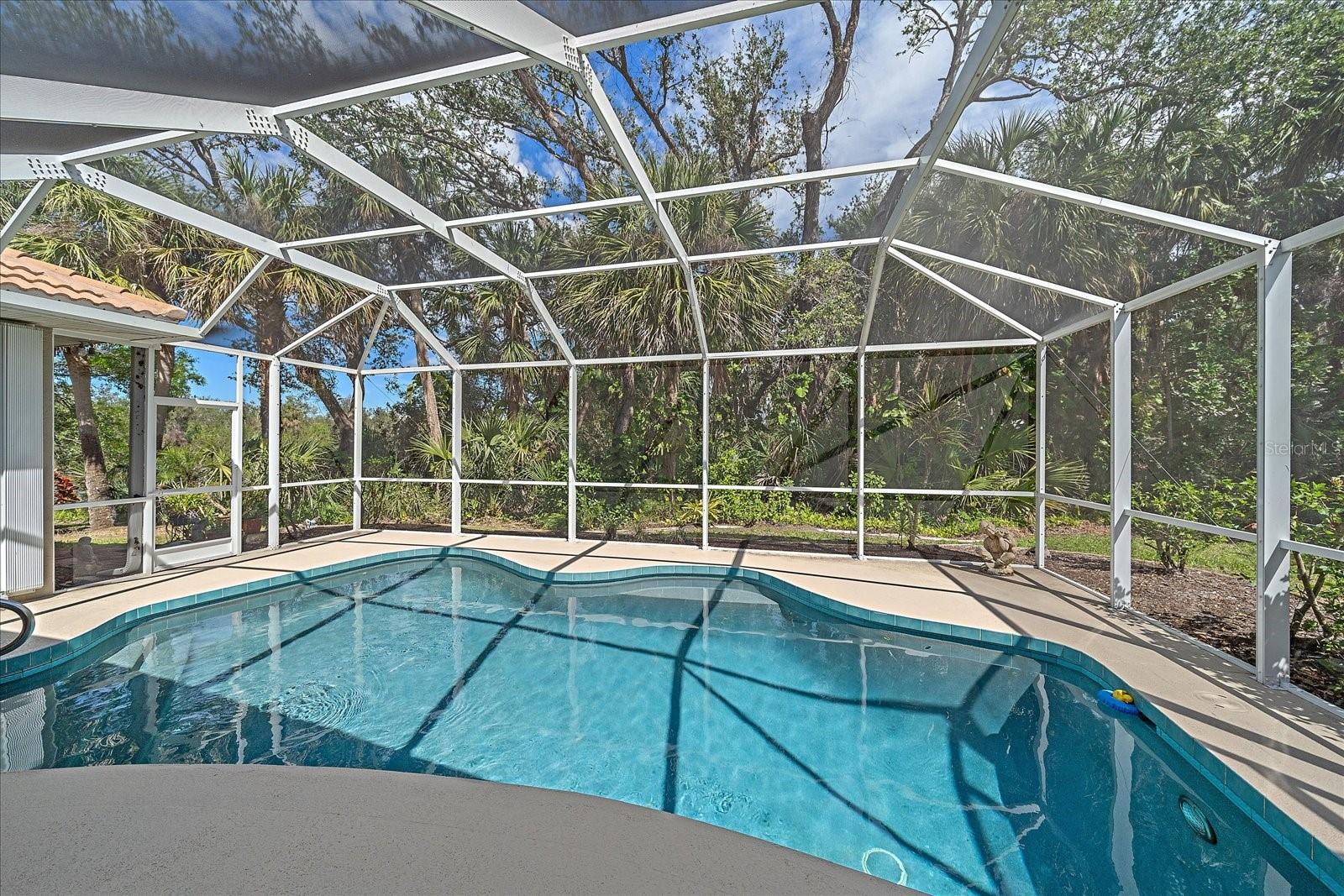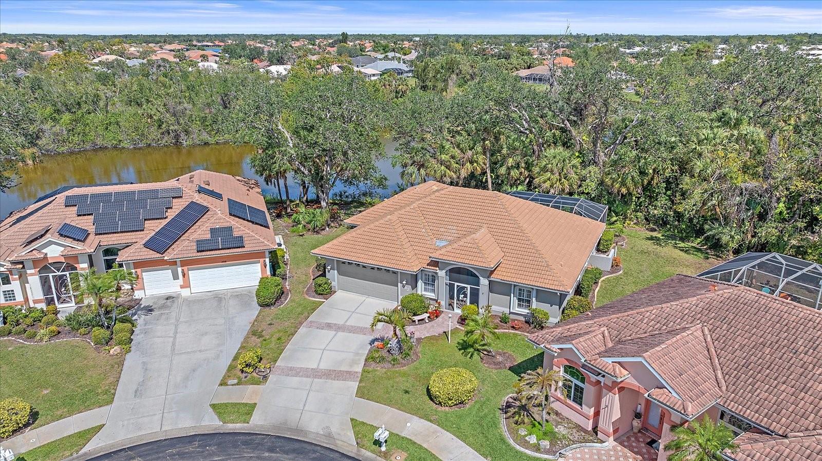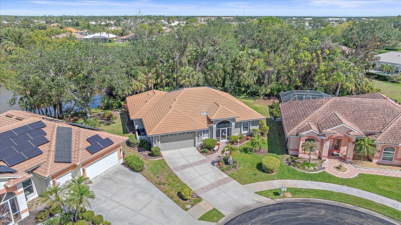 Charming Pool Home with Preserve & Lake View in The Lakes of Jacaranda. Nestled at the end of a peaceful cul-de-sac, this stunning Petersen-built home offers breathtaking preserve and lake views, creating a serene retreat in the highly desirable Lakes of Jacaranda community. Boasting 1,933 sq. ft., this thoughtfully designed 3-bedroom, 2.5-bathroom home features an airy, open floor plan with high ceilings and an abundance of natural light. Step inside to find ceramic tile flooring throughout, complemented by rich wood floors in the cozy family room. Sliding glass doors in all the living areas including the primary suite open directly to the saltwater pool and lanai, where you'll enjoy a park-like setting perfect for relaxation or entertainment. Recent updates ensure peace of mind, including a new tile roof (2022), lanai screen enclosure (2023), water filtration system (2022), and an electric water heater (2023). Plus, the home is equipped with leaf filter-protected gutters (2024) for easy maintenance. Lakes of Jacaranda offers low HOA fees and no CDD, all while being conveniently close to shopping, pristine beaches, and top-rated golf courses. Don't miss the chance to make this exceptional home yours--schedule a showing today!