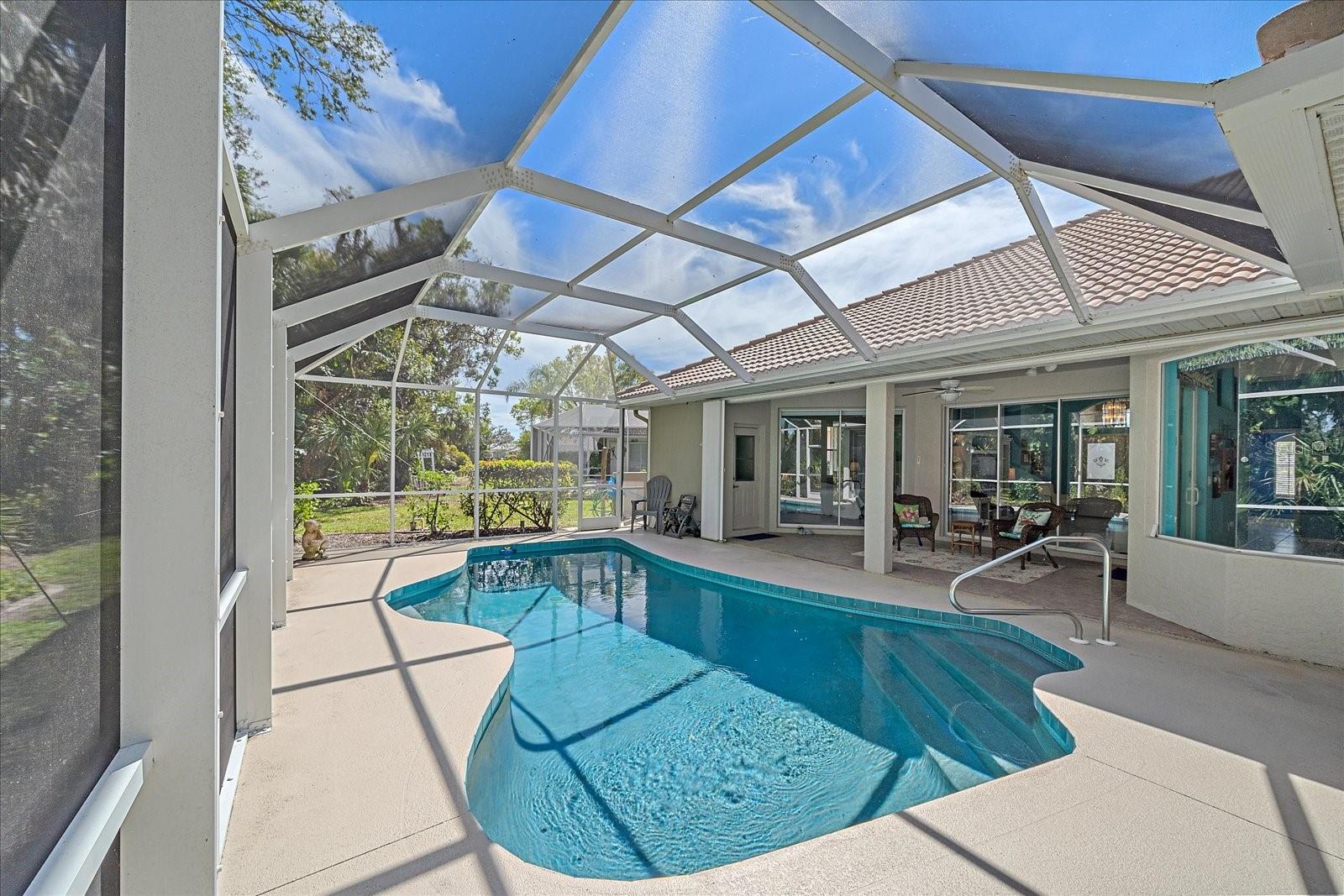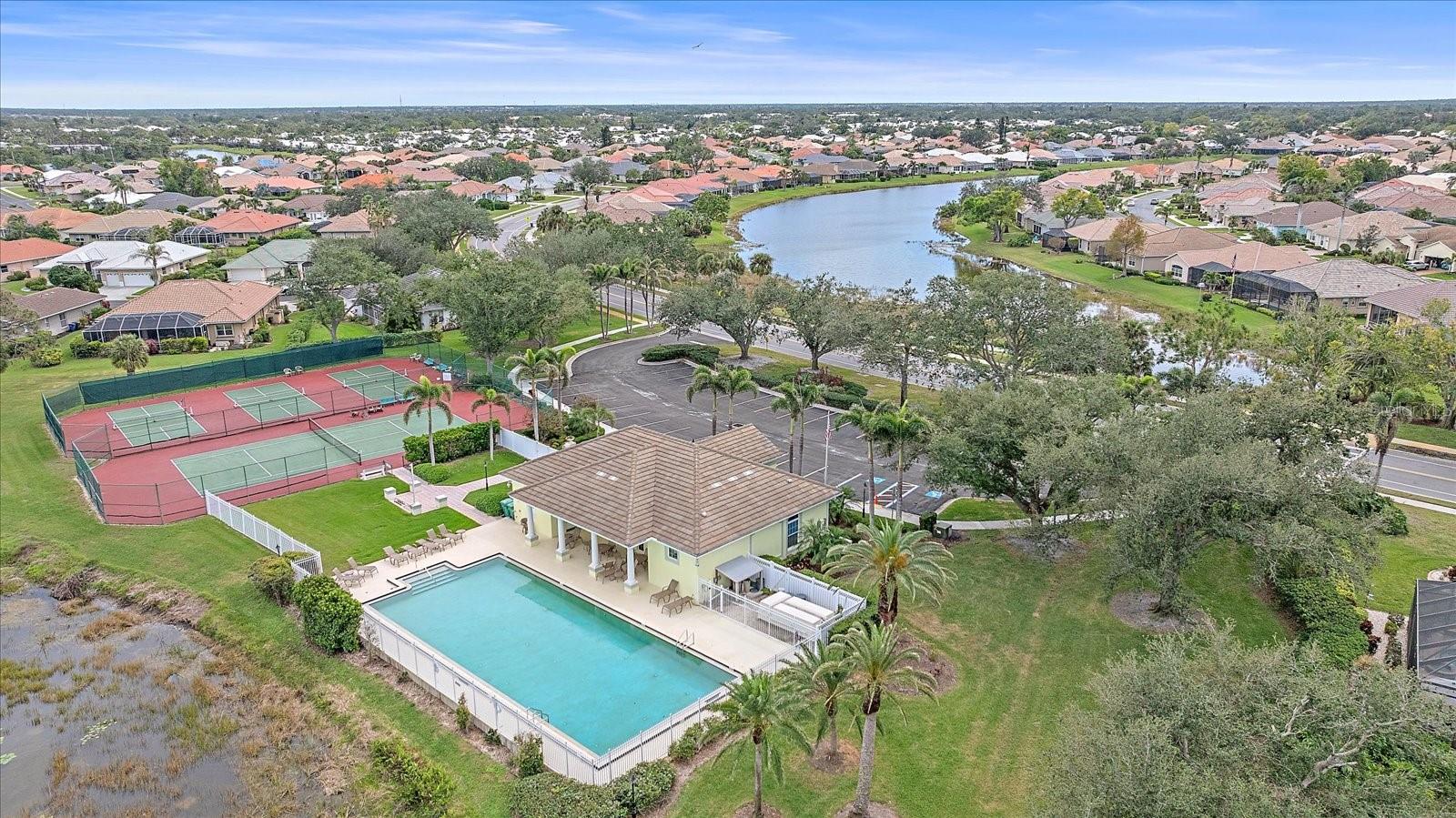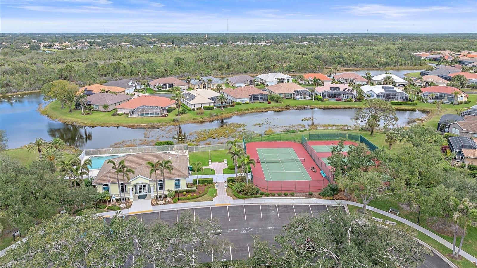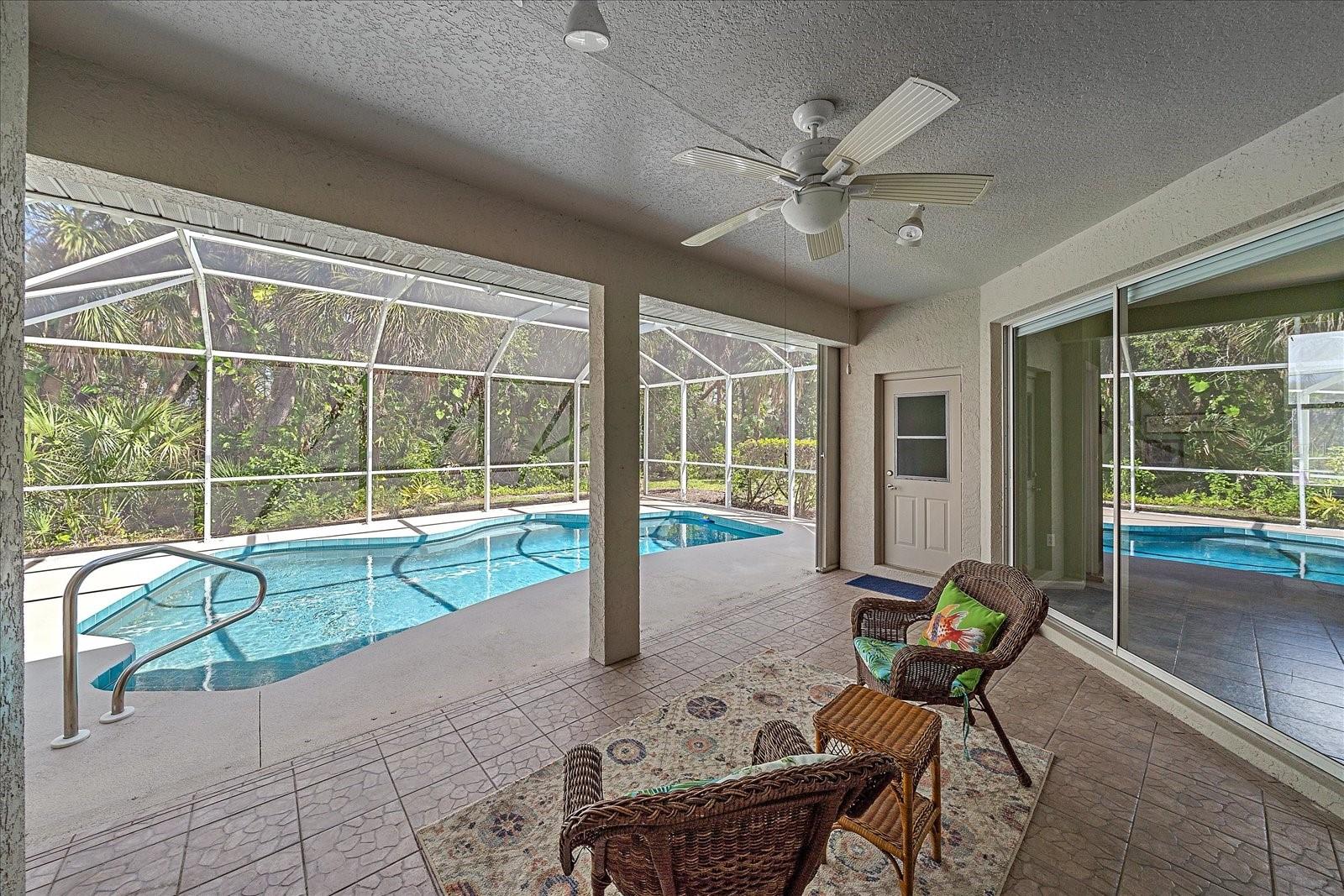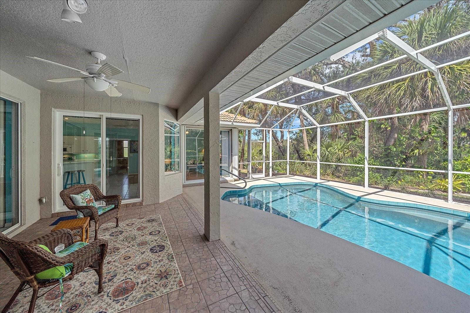 Charming Pool Home with Preserve & Lake View in The Lakes of Jacaranda. Nestled at the end of a peaceful cul-de-sac, this stunning Petersen-built home offers breathtaking preserve and lake views, creating a serene retreat in the highly desirable Lakes of Jacaranda community. Boasting 1,933 sq. ft., this thoughtfully designed 3-bedroom, 2.5-bathroom home features an airy, open floor plan with high ceilings and an abundance of natural light. Step inside to find ceramic tile flooring throughout, complemented by rich wood floors in the cozy family room. Sliding glass doors in all the living areas including the primary suite open directly to the saltwater pool and lanai, where you'll enjoy a park-like setting perfect for relaxation or entertainment. Recent updates ensure peace of mind, including a new tile roof (2022), lanai screen enclosure (2023), water filtration system (2022), and an electric water heater (2023). Plus, the home is equipped with leaf filter-protected gutters (2024) for easy maintenance. Lakes of Jacaranda offers low HOA fees and no CDD, all while being conveniently close to shopping, pristine beaches, and top-rated golf courses. Don't miss the chance to make this exceptional home yours--schedule a showing today!