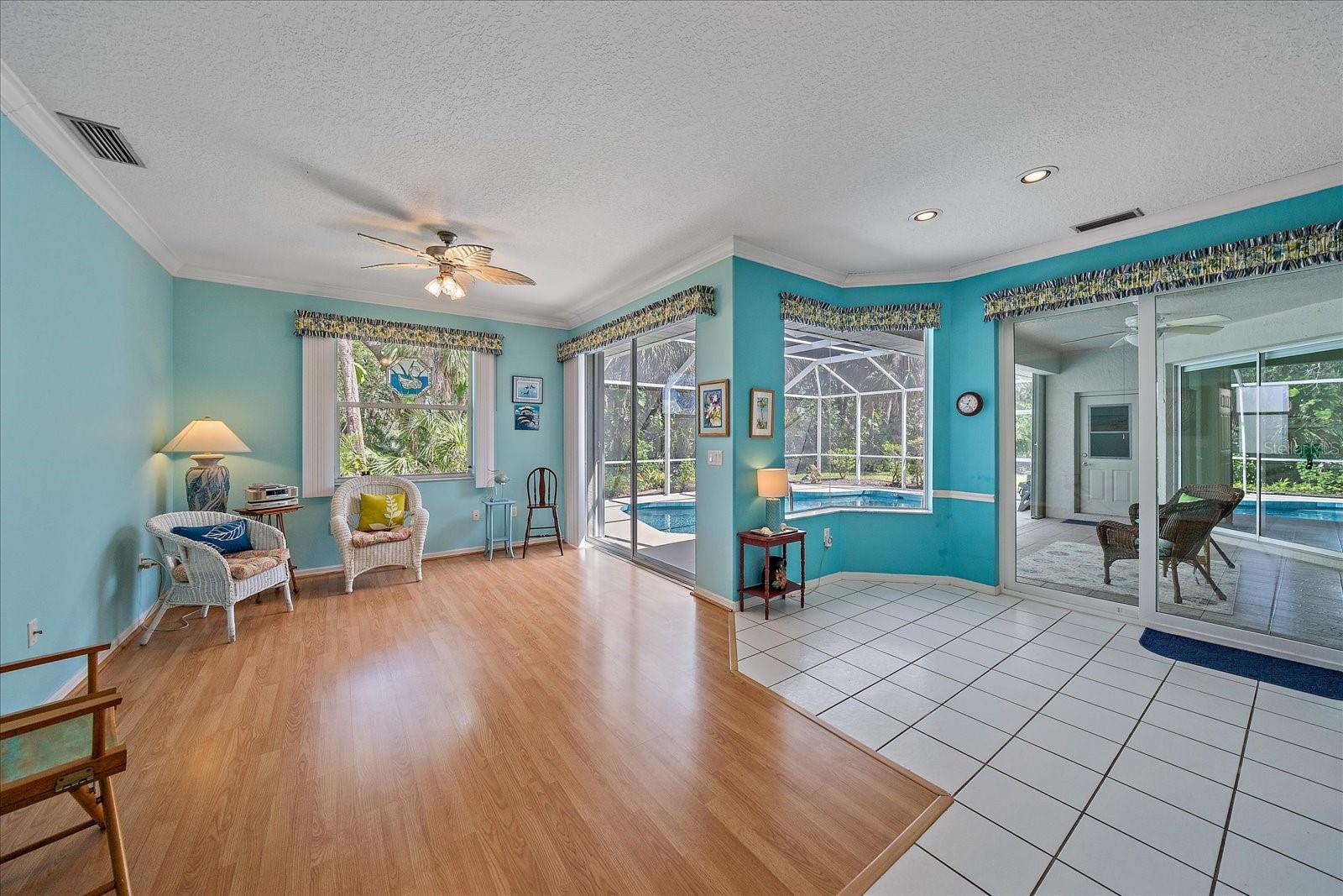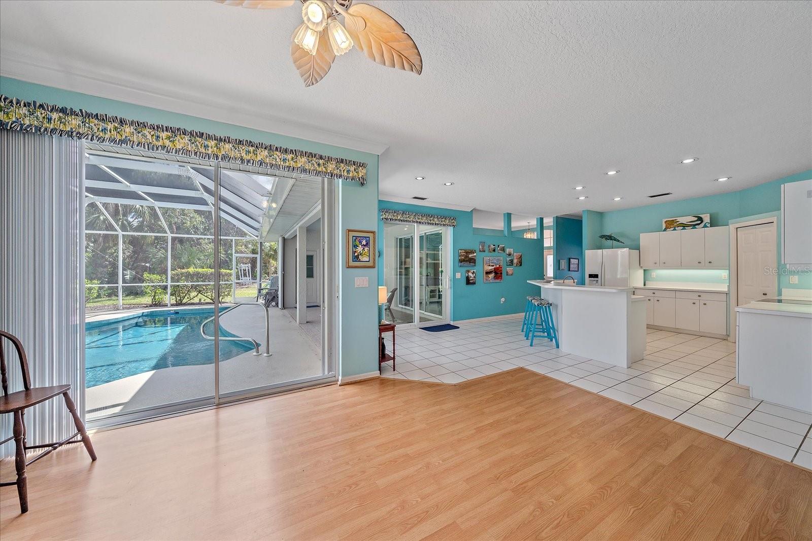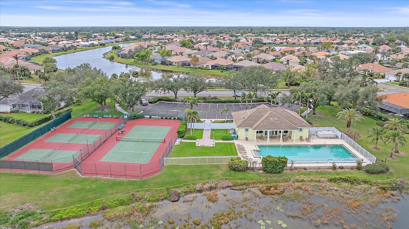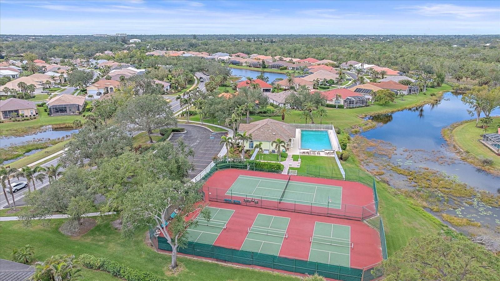 Charming Pool Home with Preserve & Lake View in The Lakes of Jacaranda. Nestled at the end of a peaceful cul-de-sac, this stunning Petersen-built home offers breathtaking preserve and lake views, creating a serene retreat in the highly desirable Lakes of Jacaranda community. Boasting 1,933 sq. ft., this thoughtfully designed 3-bedroom, 2.5-bathroom home features an airy, open floor plan with high ceilings and an abundance of natural light. Step inside to find ceramic tile flooring throughout, complemented by rich wood floors in the cozy family room. Sliding glass doors in all the living areas including the primary suite open directly to the saltwater pool and lanai, where you'll enjoy a park-like setting perfect for relaxation or entertainment. Recent updates ensure peace of mind, including a new tile roof (2022), lanai screen enclosure (2023), water filtration system (2022), and an electric water heater (2023). Plus, the home is equipped with leaf filter-protected gutters (2024) for easy maintenance. Lakes of Jacaranda offers low HOA fees and no CDD, all while being conveniently close to shopping, pristine beaches, and top-rated golf courses. Don't miss the chance to make this exceptional home yours--schedule a showing today!