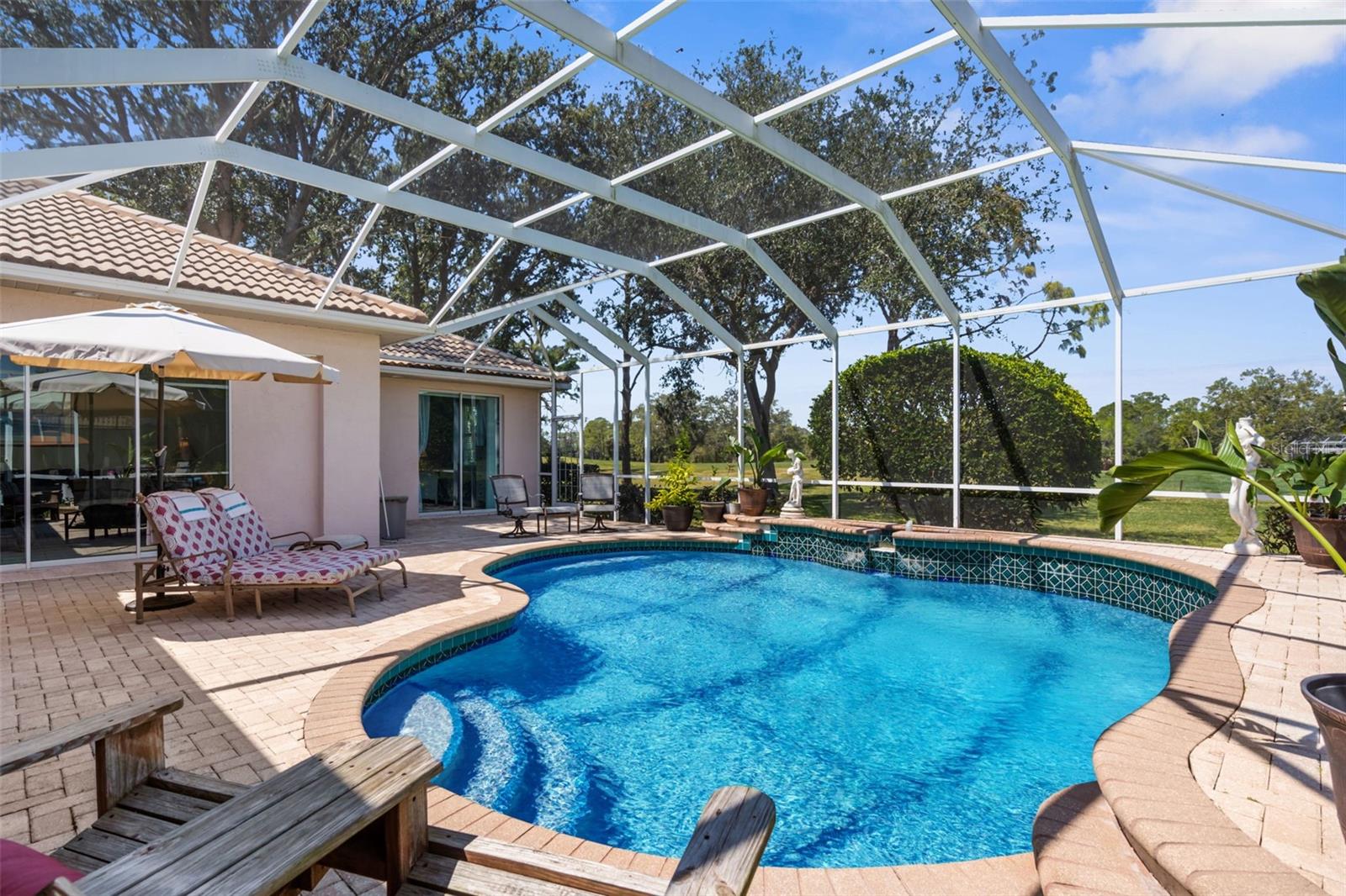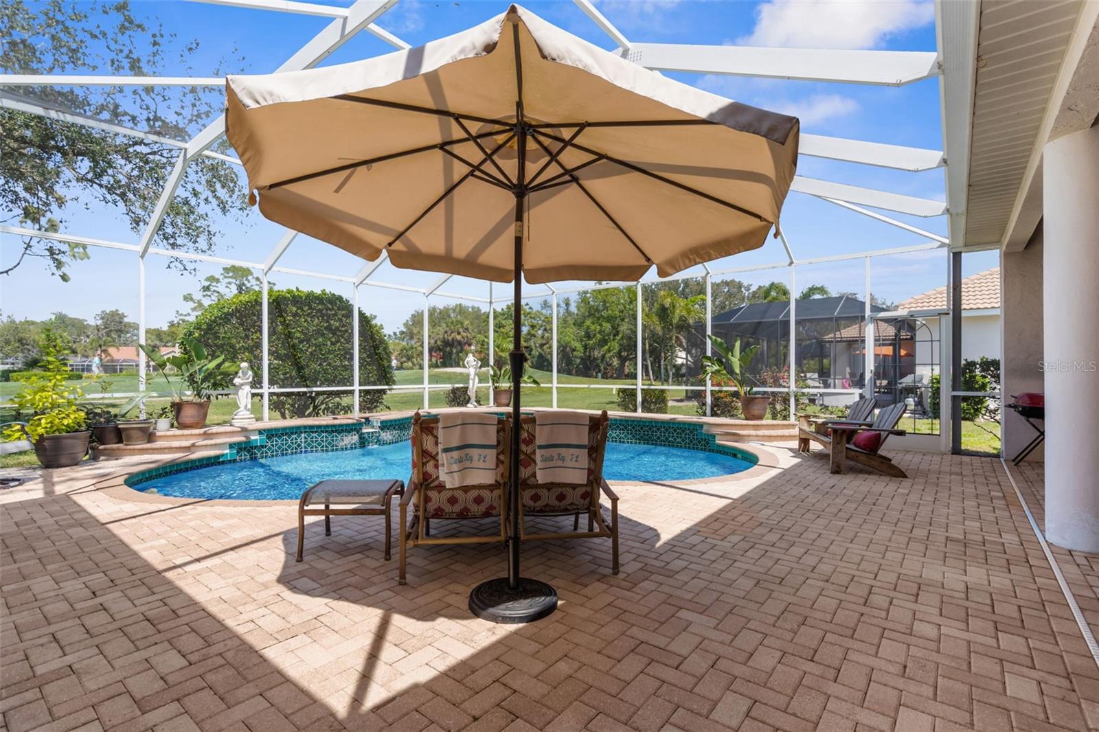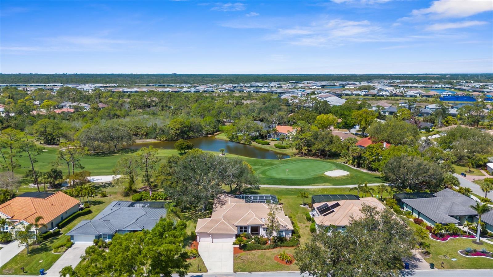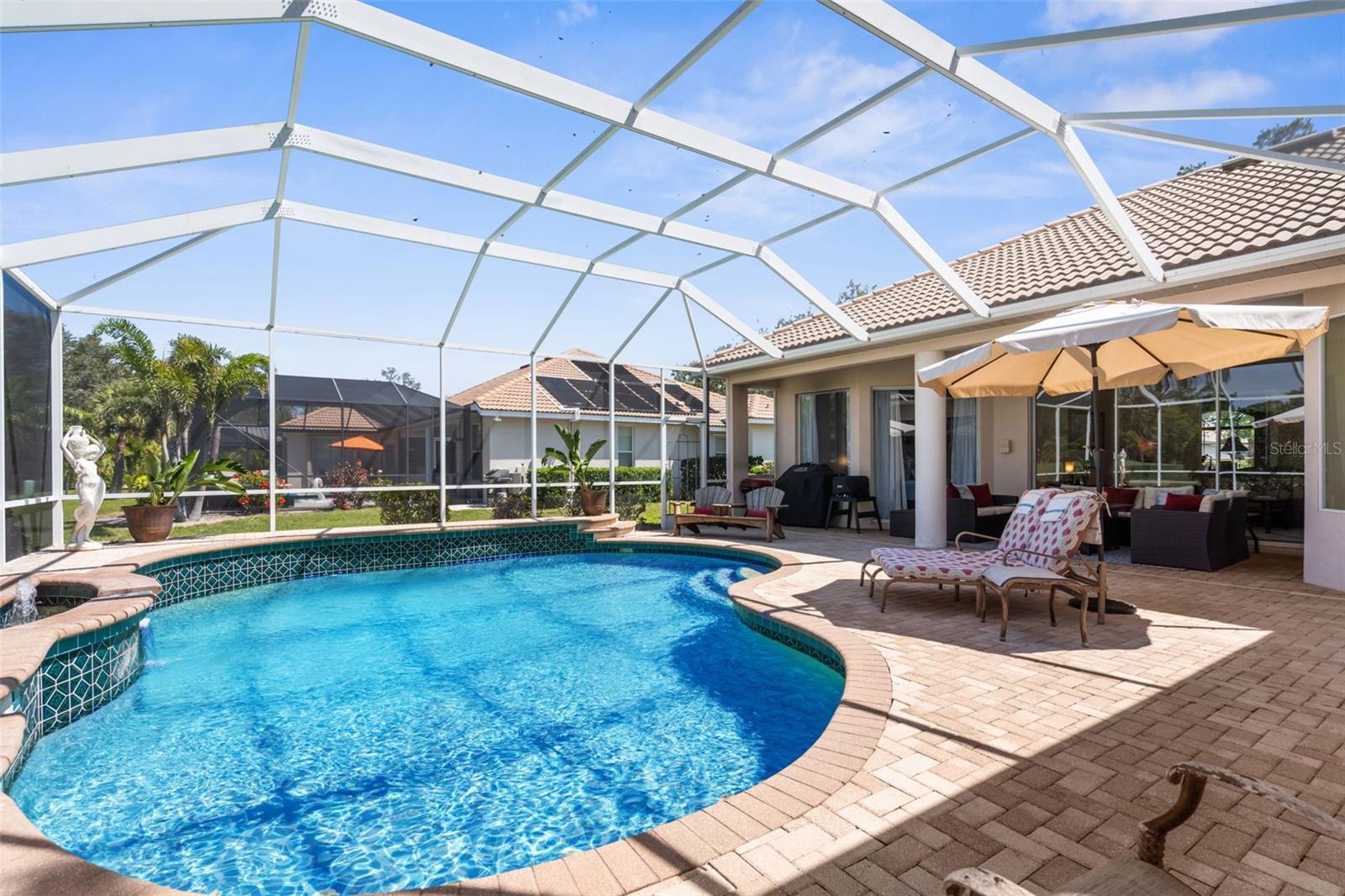 Stunning Golf Course POOL Home with NEW PRICE & $10,000 Buyer Credit! Now is your chance to own a beautifully maintained home in a premier location--seller is offering a $10,000 credit at closing-Use it toward closing costs or customize the home to your taste--the choice is yours!Welcome to your Florida dream home! This beautifully maintained 4/5 bedroom, 3-bathroom pool home with a versatile flex room sits proudly on the 5th hole of the Calusa Lakes Golf Course, nestled within the highly desirable gated community of Calusa Lakes in Nokomis.From the moment you step through the elegant double doors, you're welcomed by soaring ceilings, abundant natural light & stunning views of the pool & lush fairway just beyond. The thoughtfully designed floor plan offers nearly 2,500 square feet of refined yet comfortable living space, with an additional flex room perfect for a home office, den, or even a fifth bedroom.At the heart of the home is a spacious kitchen featuring extensive cabinetry, expansive counter space, a dry bar, double ovens & ample storage, making it a chef's delight. The charming breakfast nook overlooks the tranquil screened-in pool & the rolling greens of the golf course--an ideal setting to start your day.The luxurious primary suite provides a peaceful retreat with two large walk-in closets, dual vanities, a spa-style soaking tub & a walk-in shower. Large sliding glass doors from the main living areas invite you to relax or entertain outdoors in your private lanai & pool oasis, where you'll enjoy panoramic views of the fifth hole & serene Florida sunsets.The oversized three-car garage offers plenty of room for vehicles, golf carts, or extra storage. The home is situated on a generously sized lot with tropical landscaping, expansive lanai with beautiful pool, combining beauty & space.Calusa Lakes offers residents low HOA fees, no CDD fees, a semi-private golf club & tennis courts, all in a pristine & beautifully-maintained setting. Ideally located just minutes from Nokomis Beach, the Legacy Trail, historic downtown Venice, I-75, Honore Avenue, top-rated medical facilities, shopping & restaurants - this home provides the perfect balance of tranquility and convenience.Don't miss this rare opportunity to own a luxury golf course pool home in one of Nokomis' most sought-after communities. Florida living starts now!!!