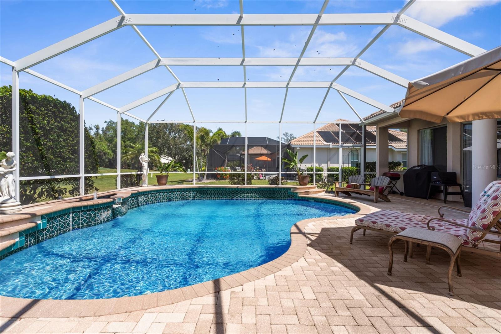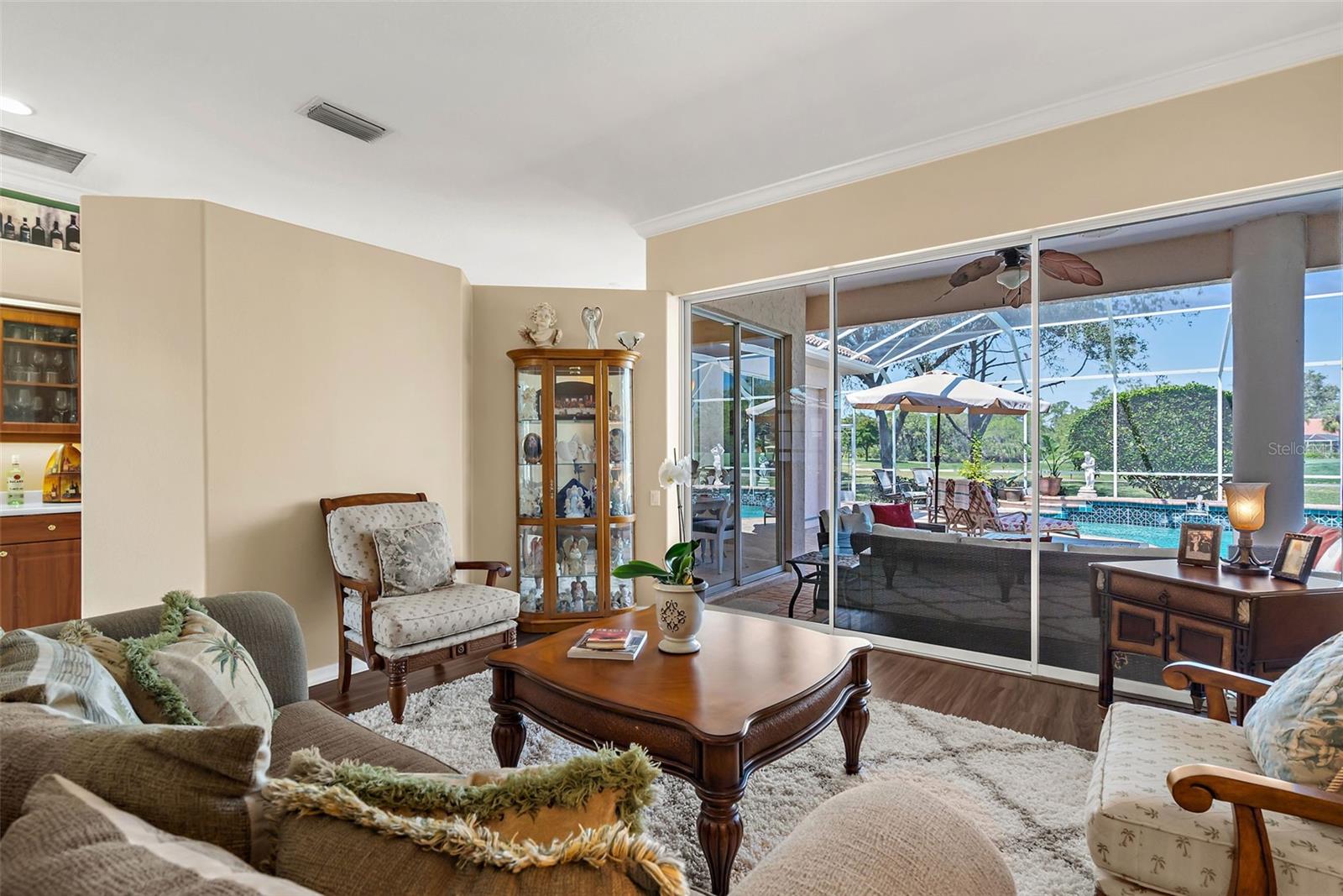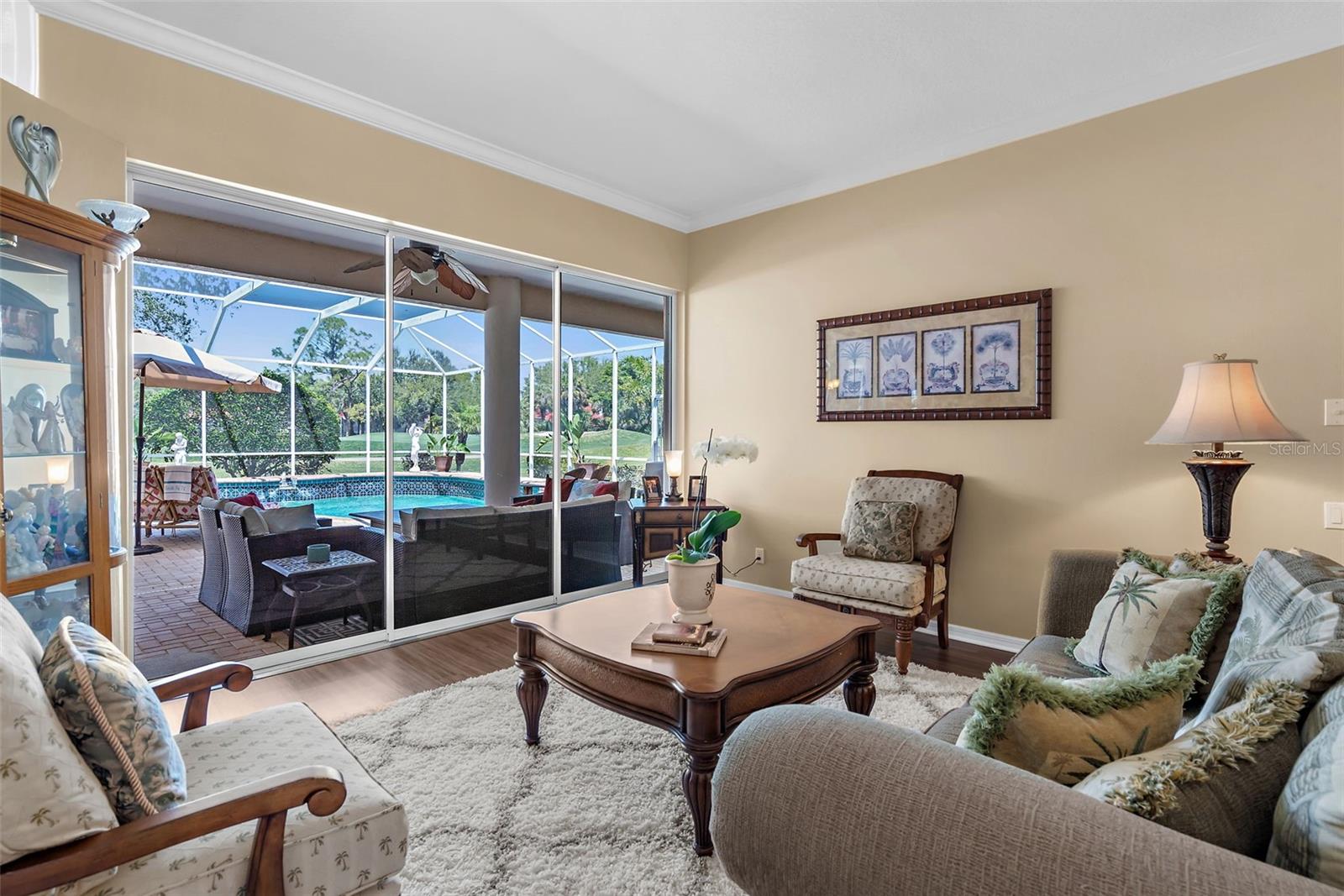 Stunning Golf Course POOL Home with NEW PRICE & $10,000 Buyer Credit! Now is your chance to own a beautifully maintained home in a premier location--seller is offering a $10,000 credit at closing-Use it toward closing costs or customize the home to your taste--the choice is yours!Welcome to your Florida dream home! This beautifully maintained 4/5 bedroom, 3-bathroom pool home with a versatile flex room sits proudly on the 5th hole of the Calusa Lakes Golf Course, nestled within the highly desirable gated community of Calusa Lakes in Nokomis.From the moment you step through the elegant double doors, you're welcomed by soaring ceilings, abundant natural light & stunning views of the pool & lush fairway just beyond. The thoughtfully designed floor plan offers nearly 2,500 square feet of refined yet comfortable living space, with an additional flex room perfect for a home office, den, or even a fifth bedroom.At the heart of the home is a spacious kitchen featuring extensive cabinetry, expansive counter space, a dry bar, double ovens & ample storage, making it a chef's delight. The charming breakfast nook overlooks the tranquil screened-in pool & the rolling greens of the golf course--an ideal setting to start your day.The luxurious primary suite provides a peaceful retreat with two large walk-in closets, dual vanities, a spa-style soaking tub & a walk-in shower. Large sliding glass doors from the main living areas invite you to relax or entertain outdoors in your private lanai & pool oasis, where you'll enjoy panoramic views of the fifth hole & serene Florida sunsets.The oversized three-car garage offers plenty of room for vehicles, golf carts, or extra storage. The home is situated on a generously sized lot with tropical landscaping, expansive lanai with beautiful pool, combining beauty & space.Calusa Lakes offers residents low HOA fees, no CDD fees, a semi-private golf club & tennis courts, all in a pristine & beautifully-maintained setting. Ideally located just minutes from Nokomis Beach, the Legacy Trail, historic downtown Venice, I-75, Honore Avenue, top-rated medical facilities, shopping & restaurants - this home provides the perfect balance of tranquility and convenience.Don't miss this rare opportunity to own a luxury golf course pool home in one of Nokomis' most sought-after communities. Florida living starts now!!!