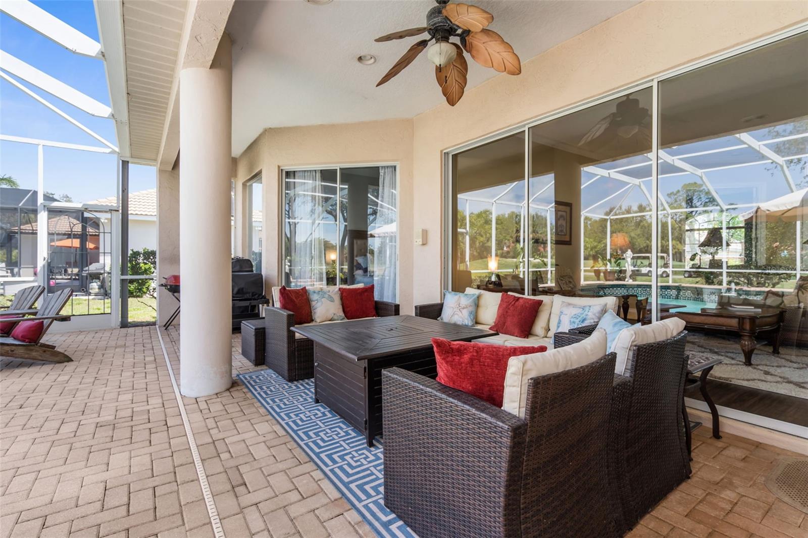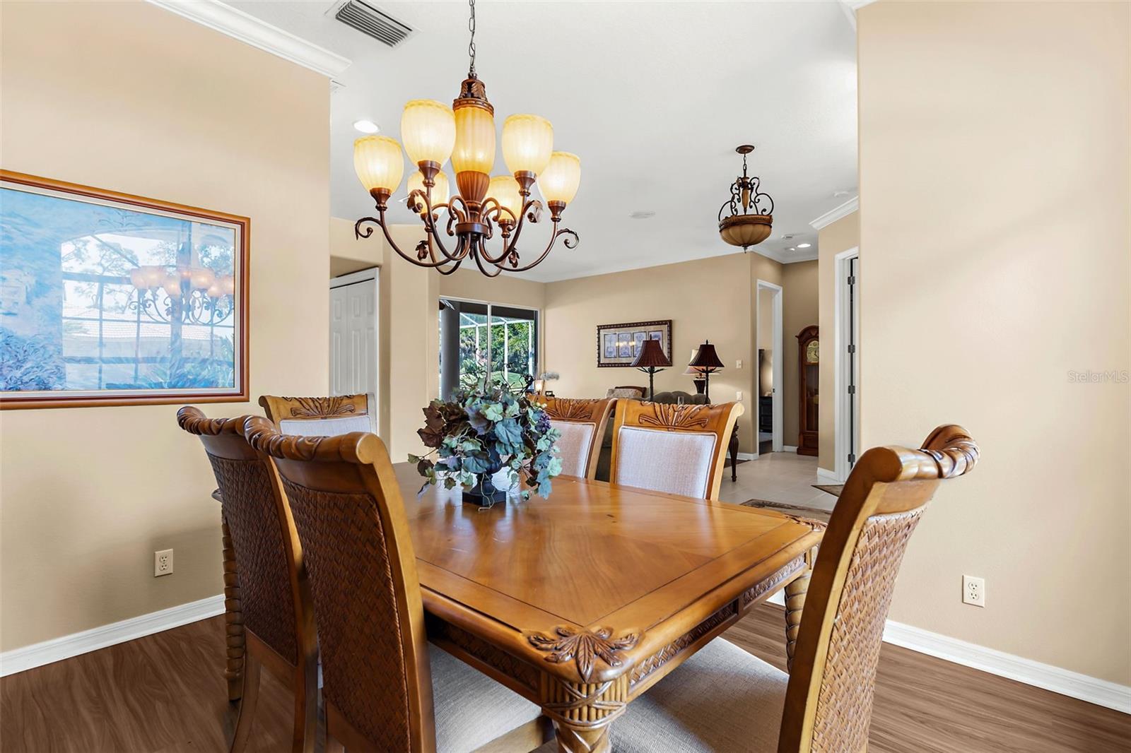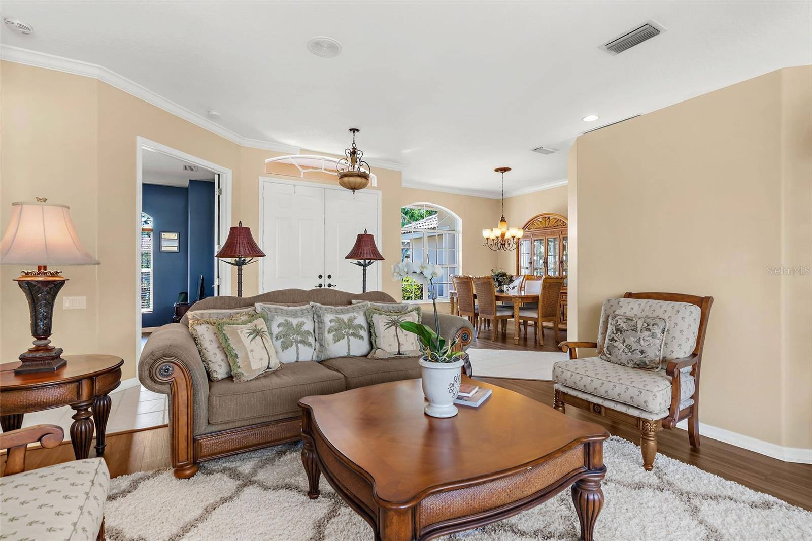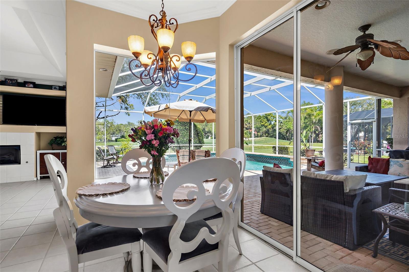 Stunning Golf Course POOL Home with NEW PRICE & $10,000 Buyer Credit! Now is your chance to own a beautifully maintained home in a premier location--seller is offering a $10,000 credit at closing-Use it toward closing costs or customize the home to your taste--the choice is yours!Welcome to your Florida dream home! This beautifully maintained 4/5 bedroom, 3-bathroom pool home with a versatile flex room sits proudly on the 5th hole of the Calusa Lakes Golf Course, nestled within the highly desirable gated community of Calusa Lakes in Nokomis.From the moment you step through the elegant double doors, you're welcomed by soaring ceilings, abundant natural light & stunning views of the pool & lush fairway just beyond. The thoughtfully designed floor plan offers nearly 2,500 square feet of refined yet comfortable living space, with an additional flex room perfect for a home office, den, or even a fifth bedroom.At the heart of the home is a spacious kitchen featuring extensive cabinetry, expansive counter space, a dry bar, double ovens & ample storage, making it a chef's delight. The charming breakfast nook overlooks the tranquil screened-in pool & the rolling greens of the golf course--an ideal setting to start your day.The luxurious primary suite provides a peaceful retreat with two large walk-in closets, dual vanities, a spa-style soaking tub & a walk-in shower. Large sliding glass doors from the main living areas invite you to relax or entertain outdoors in your private lanai & pool oasis, where you'll enjoy panoramic views of the fifth hole & serene Florida sunsets.The oversized three-car garage offers plenty of room for vehicles, golf carts, or extra storage. The home is situated on a generously sized lot with tropical landscaping, expansive lanai with beautiful pool, combining beauty & space.Calusa Lakes offers residents low HOA fees, no CDD fees, a semi-private golf club & tennis courts, all in a pristine & beautifully-maintained setting. Ideally located just minutes from Nokomis Beach, the Legacy Trail, historic downtown Venice, I-75, Honore Avenue, top-rated medical facilities, shopping & restaurants - this home provides the perfect balance of tranquility and convenience.Don't miss this rare opportunity to own a luxury golf course pool home in one of Nokomis' most sought-after communities. Florida living starts now!!!