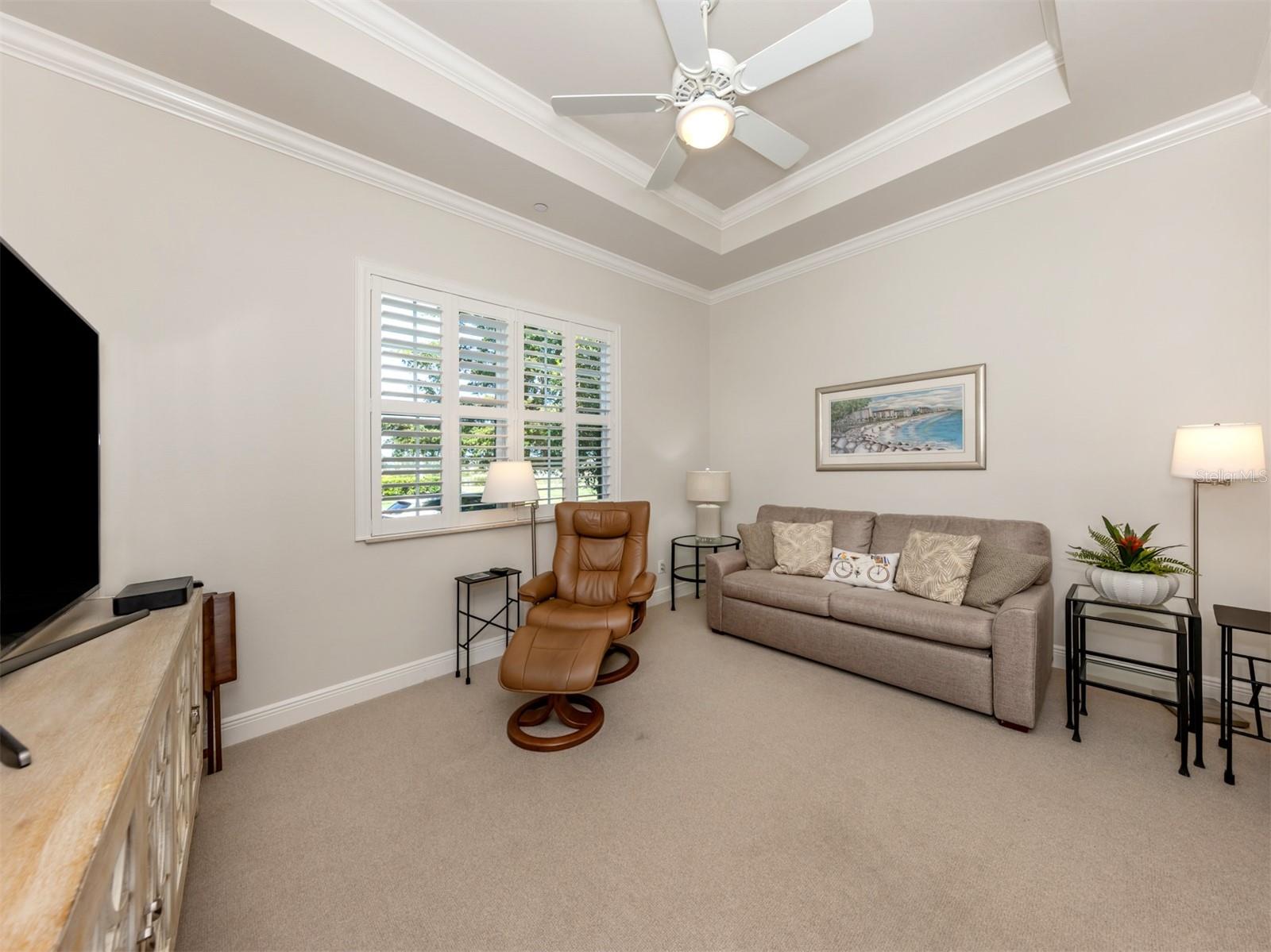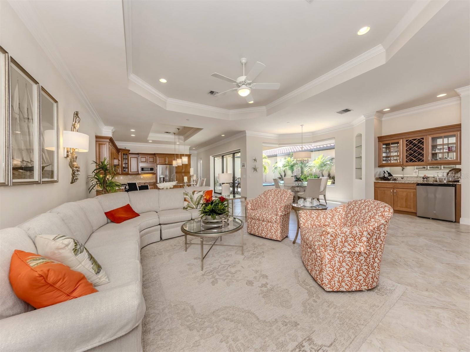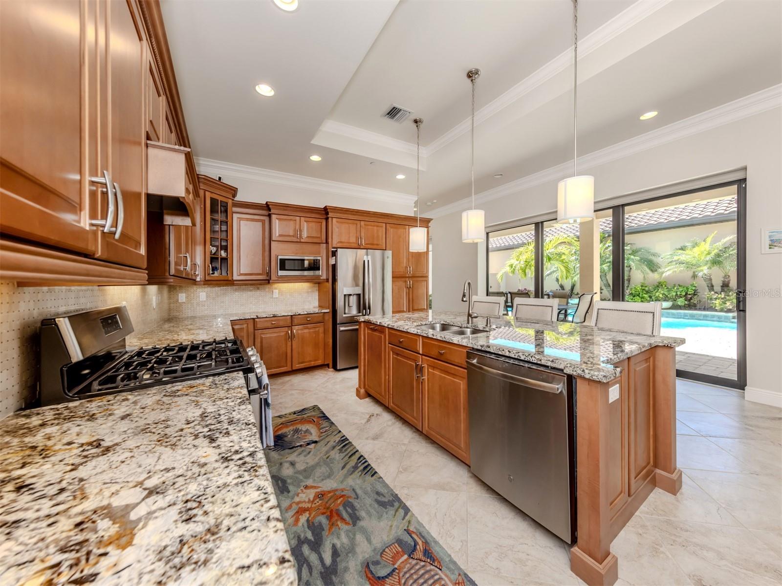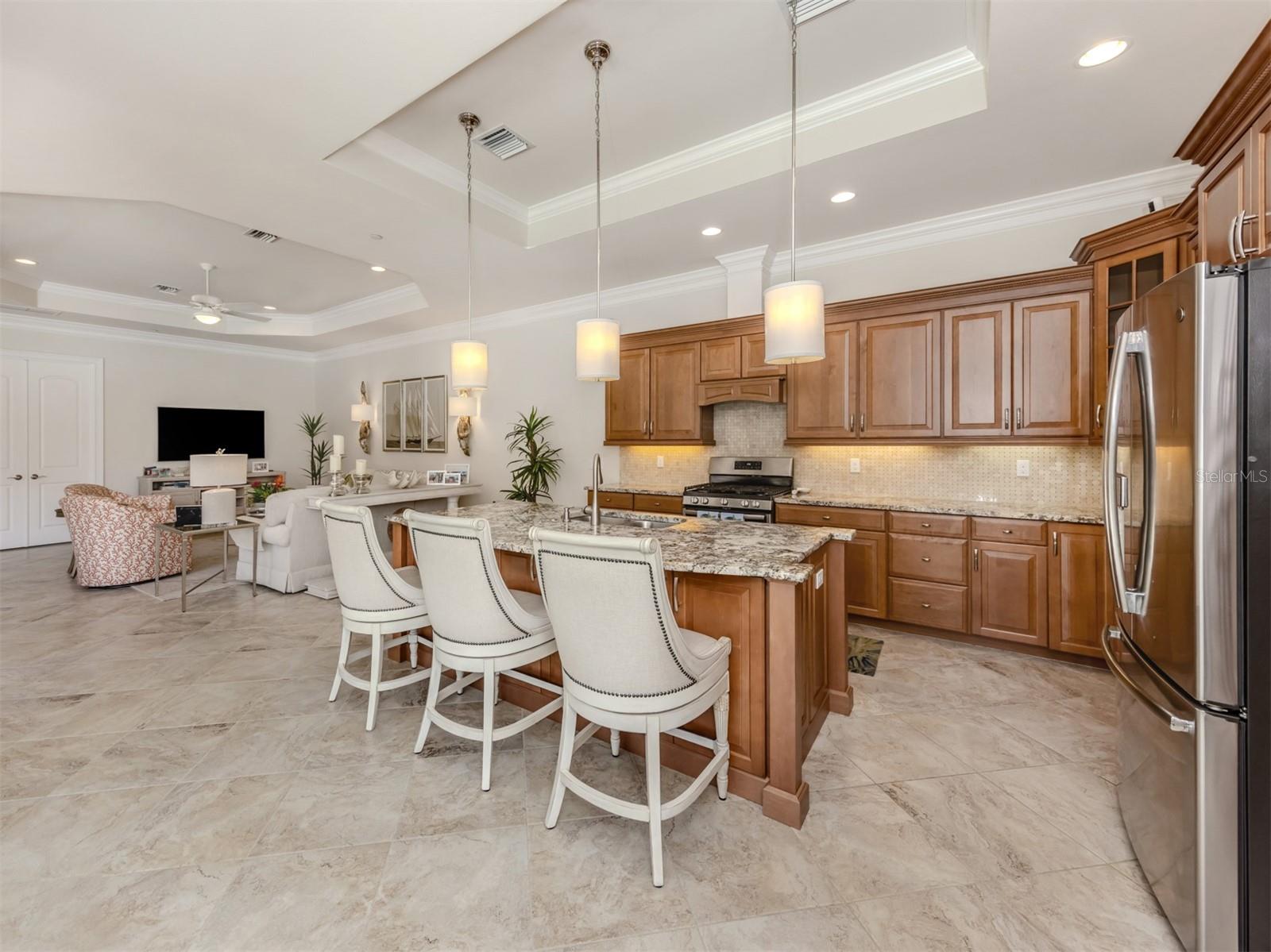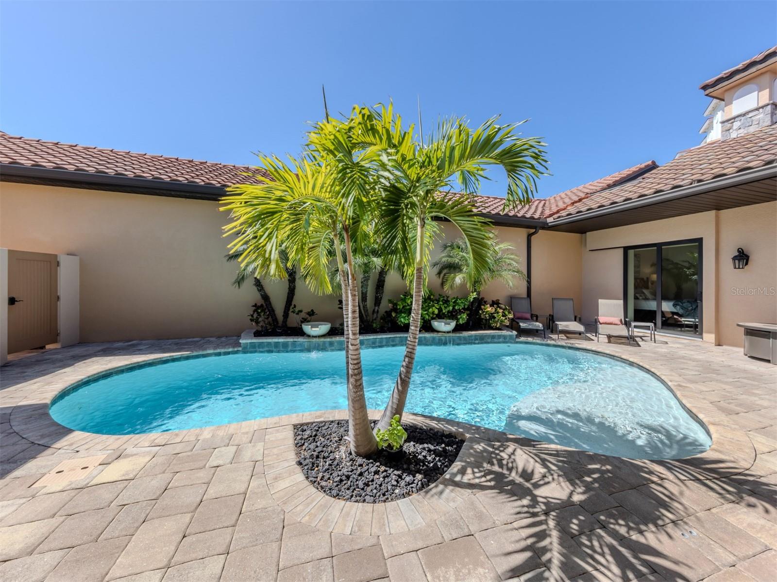 Elegant coastal living in the heart of Venice. Experience the best of Gulf Coast living in this exquisite residence in Tra Ponti Villaggio, in the heart of Venice, a charming seaside city known for its historic downtown, boutique shopping, fine dining, and vibrant outdoor lifestyle. Just a short distance from downtown, this home provides seamless access to the Legacy Trail along the Intracoastal Waterway, offering breathtaking views and endless opportunities for biking, walking and enjoying the waterfront. Inside, this three-bedroom-plus-den home features a thoughtfully designed split floor plan, boasting a spacious great room and a gourmet kitchen equipped with premium stainless steel appliances. The bright dining area, surrounded by aquarium windows, offers a stunning view of the private pool and tropical landscaping. Elegant details such as large ceramic tile laid on the diagonal, crown molding and coffered ceilings add a touch of luxury and sophistication to every space. Step outside to your private oasis, where a resort-style pool with tranquil fountain features creates the ideal ambiance for relaxation and entertaining. Complete with a two-car garage and maintenance-free living, this home offers the ideal blend of luxury, comfort and an unbeatable location. Don't miss this rare opportunity and schedule your private tour today!