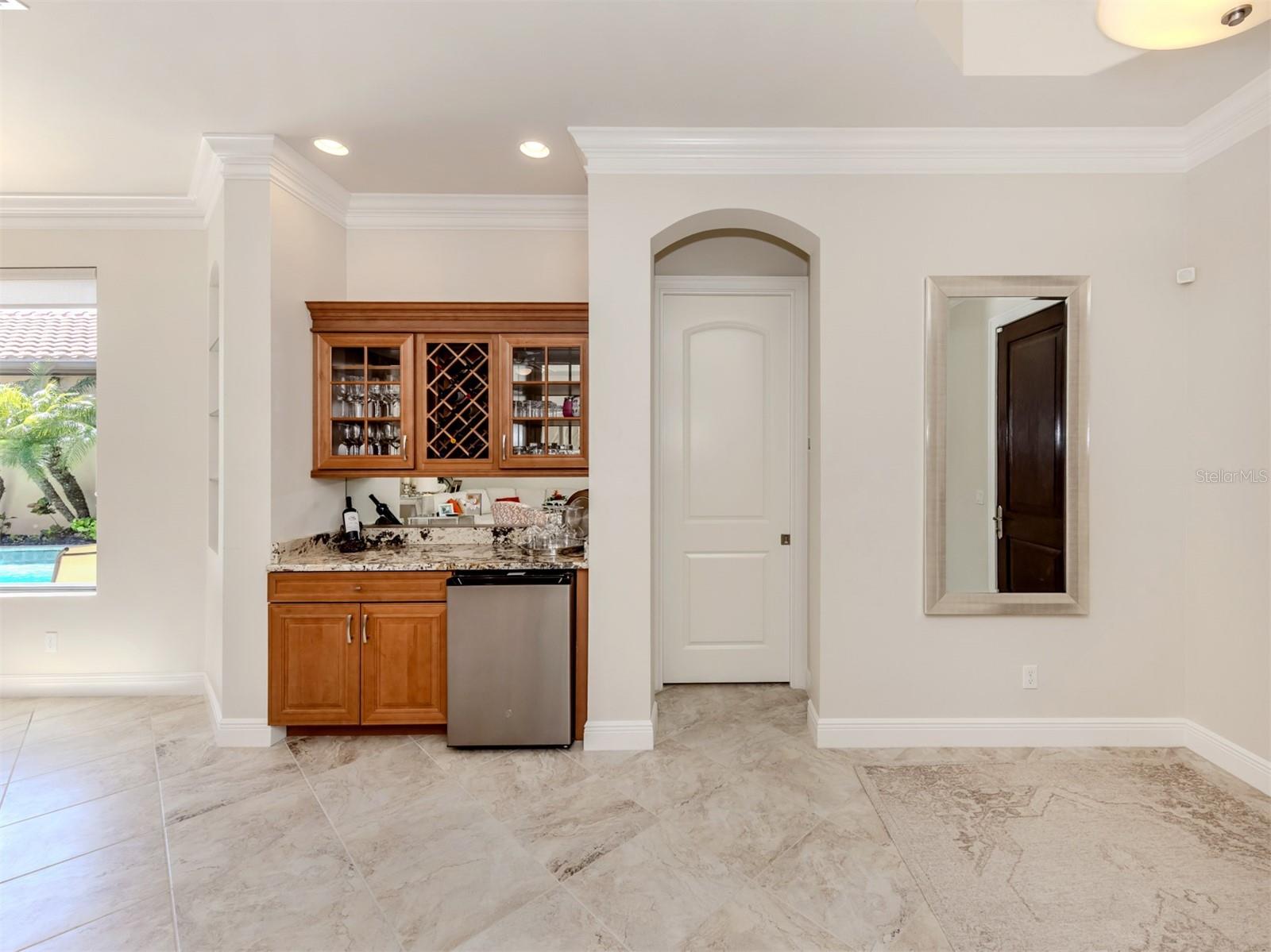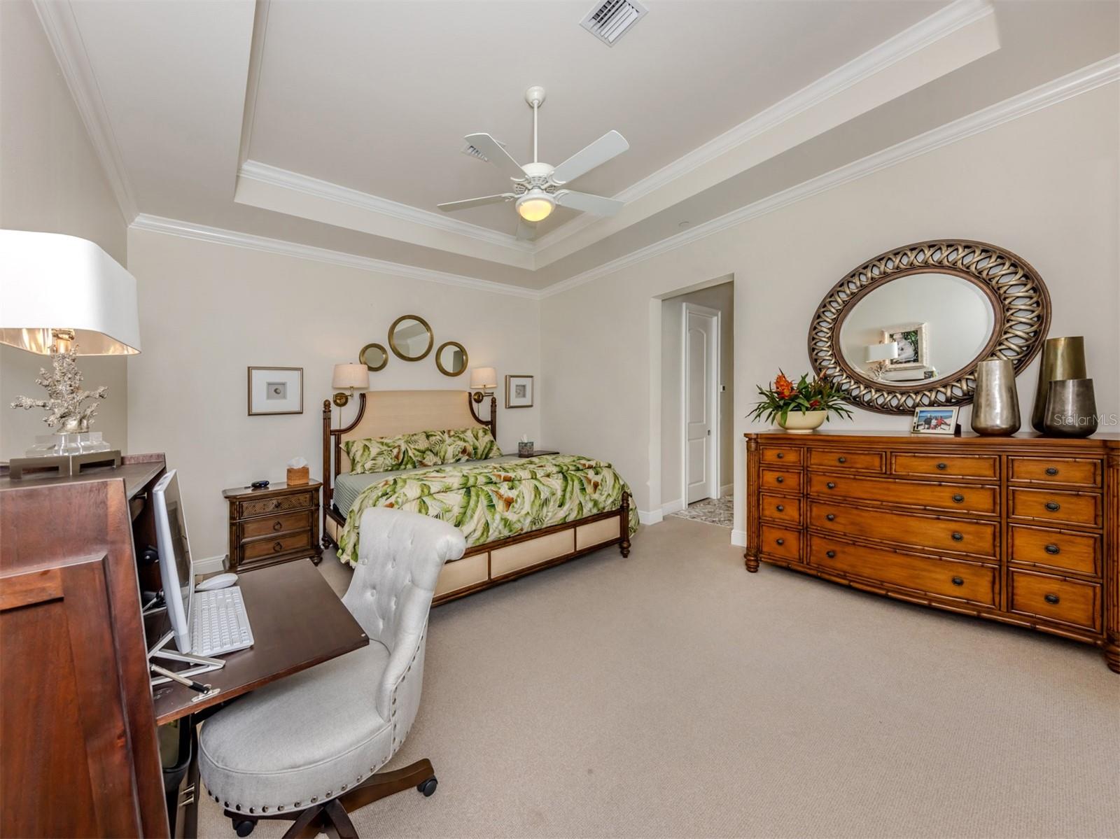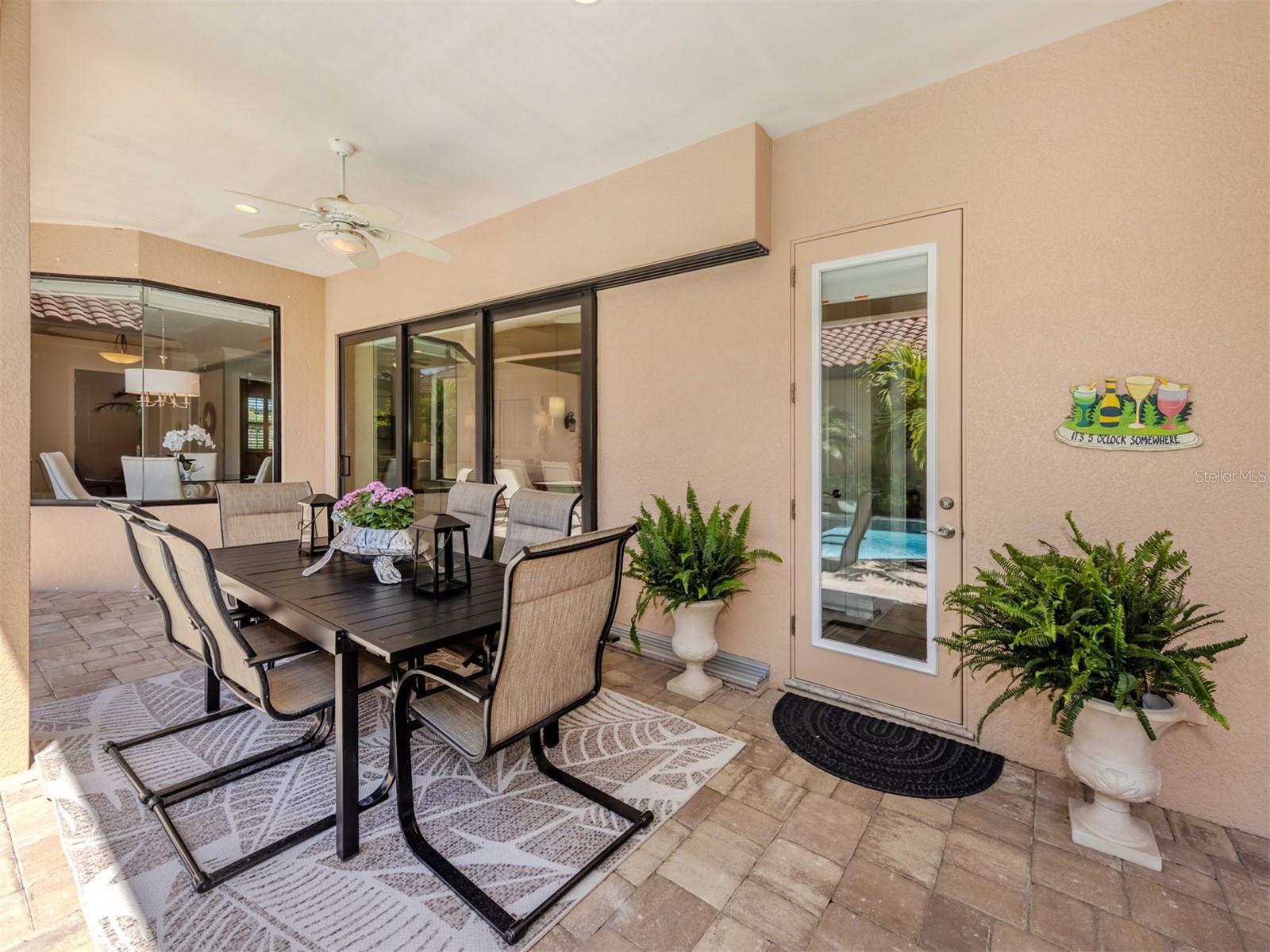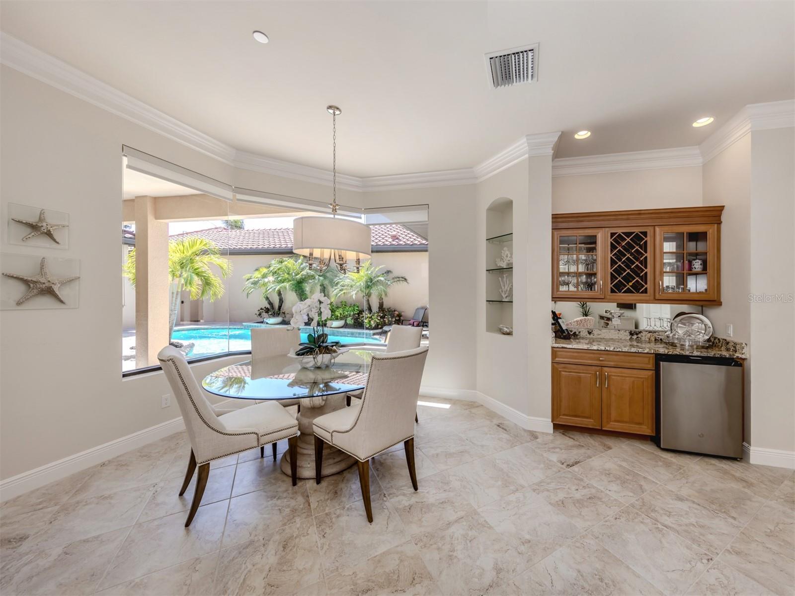 Elegant coastal living in the heart of Venice. Experience the best of Gulf Coast living in this exquisite residence in Tra Ponti Villaggio, in the heart of Venice, a charming seaside city known for its historic downtown, boutique shopping, fine dining, and vibrant outdoor lifestyle. Just a short distance from downtown, this home provides seamless access to the Legacy Trail along the Intracoastal Waterway, offering breathtaking views and endless opportunities for biking, walking and enjoying the waterfront. Inside, this three-bedroom-plus-den home features a thoughtfully designed split floor plan, boasting a spacious great room and a gourmet kitchen equipped with premium stainless steel appliances. The bright dining area, surrounded by aquarium windows, offers a stunning view of the private pool and tropical landscaping. Elegant details such as large ceramic tile laid on the diagonal, crown molding and coffered ceilings add a touch of luxury and sophistication to every space. Step outside to your private oasis, where a resort-style pool with tranquil fountain features creates the ideal ambiance for relaxation and entertaining. Complete with a two-car garage and maintenance-free living, this home offers the ideal blend of luxury, comfort and an unbeatable location. Don't miss this rare opportunity and schedule your private tour today!