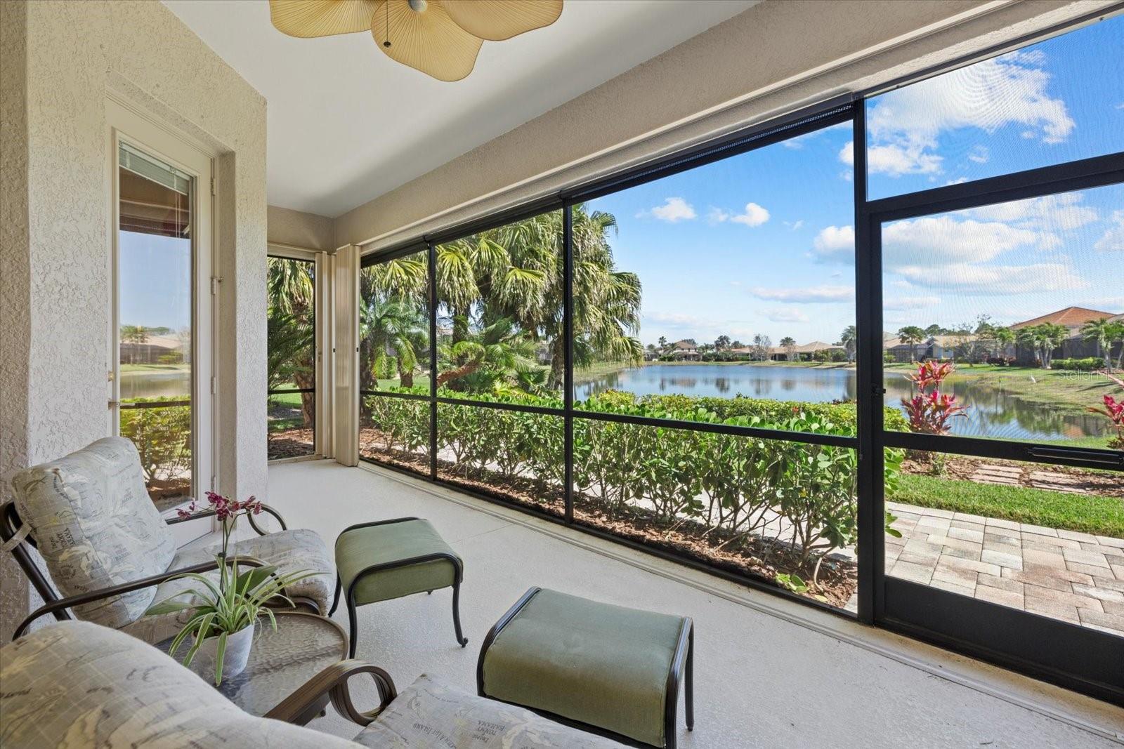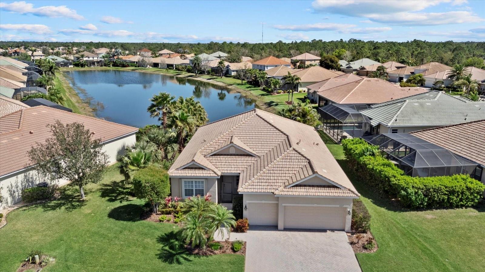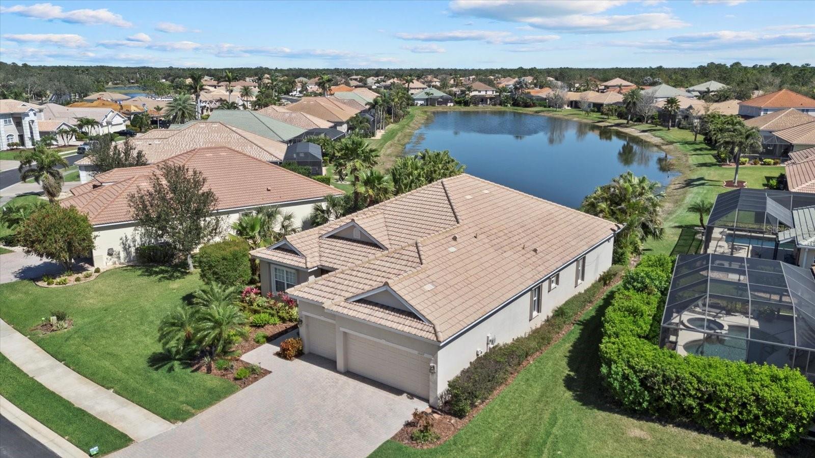 LAKE VIEW! 3 CAR GARAGE! ACCORDION SHUTTERS! OVERSIZED LOT! Welcome to a stunning lakefront residence in the prestigious gated community of Stoneybrook at Venice. This exquisite 4-bedroom, 2-bathroom home, complete with a 3-car garage, is in pristine, move-in condition. Revel in the tranquility and privacy offered by the breathtaking lake view right in your backyard. The home features soaring ceilings and an open floor plan, seamlessly extending to an expansive lanai overlooking the serene lake--ideal for entertaining guests. Upon entering, you are greeted by elegant formal dining and living spaces. The spacious kitchen is a chef's delight, boasting beautiful 42" cabinets, Corian countertops, a breakfast bar, pantry, built in wall oven, a combination convection oven/microwave, and a cozy eat-in area. The family room offers a relaxed atmosphere for watching TV, reading, or unwinding. The luxurious primary suite impresses with high ceilings, dual walk-in closets, dual sinks, a vanity, garden tub, separate shower, and direct access to the lanai. This highly sought-after split floor plan ensures privacy, with the primary suite and one guest bedroom on one side of the home, and two additional guest bedrooms and a separate bathroom on the opposite side. Enjoy the extensive landscaping and the sights and sounds of nature from the large screened lanai or the brick paver patio in the backyard. The covered and screened lanai is accessible via sliding glass doors from the living room, family room, and primary bedroom. Stoneybrook at Venice offers a vibrant lifestyle with a community center, resort-style pool, splash pad, fitness center, lighted tennis and basketball courts, in-line skating, two sand volleyball courts, a multi-purpose field, and various pedestrian pathways. Conveniently located just 10-15 minutes from Venice Island and Venice Beach, and a mere 5 minutes from the new Wellen Park community and Atlanta Braves Spring Training facility. Benefit from low HOA and CDD fees and access to A-rated schools. Call now to schedule your private showing and experience this slice of paradise for yourself. To view the luxury video, please copy and paste the following link: https://iframe.videodelivery.net/4c3317c4505118cc079068eba6be0748