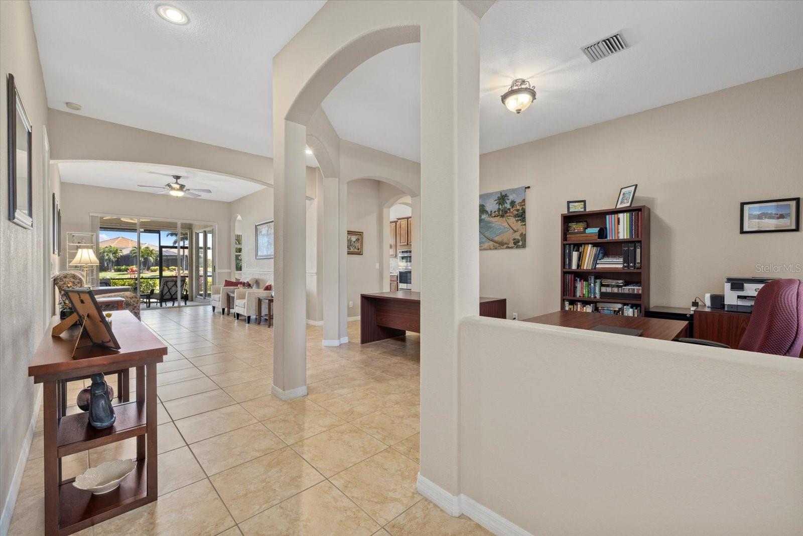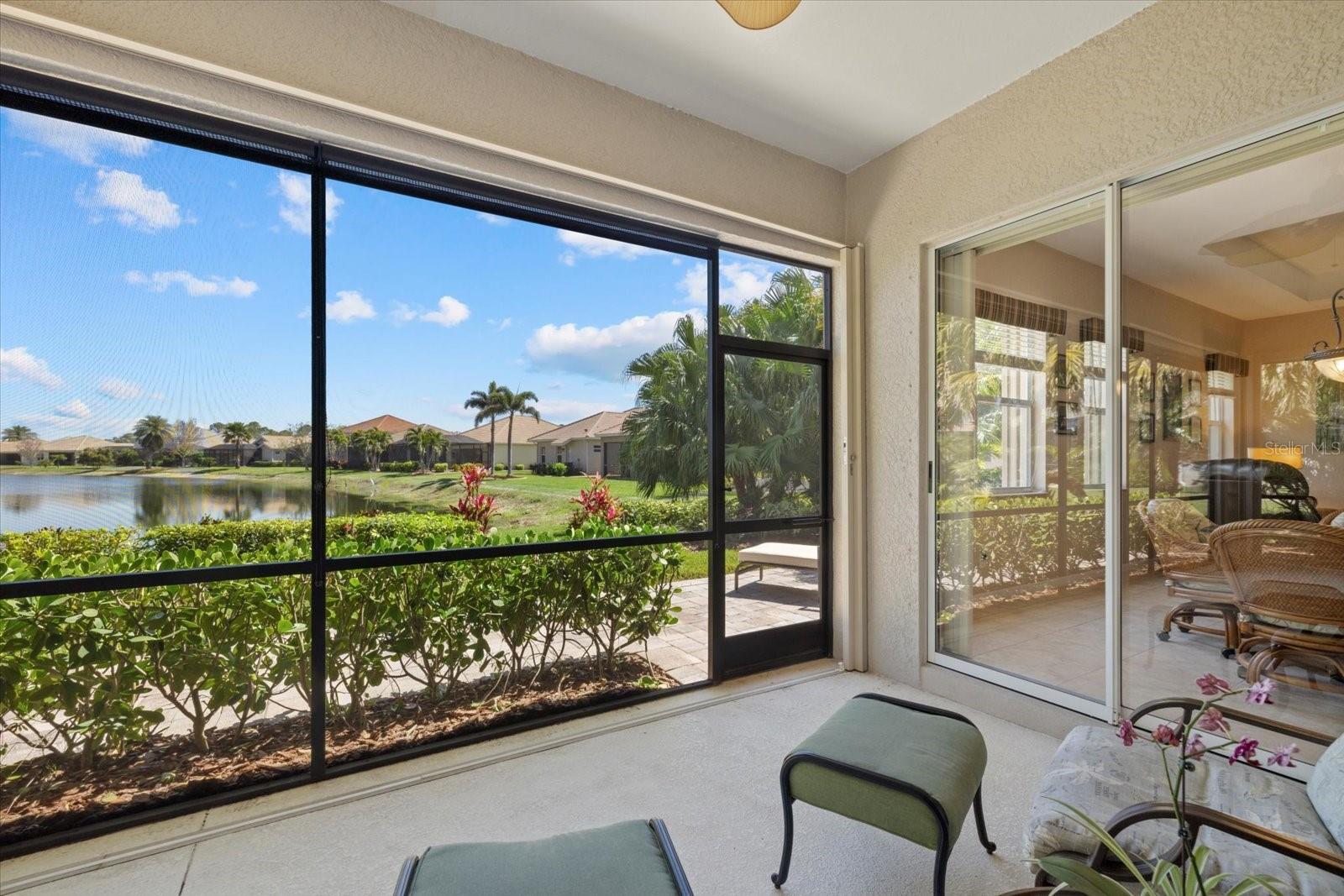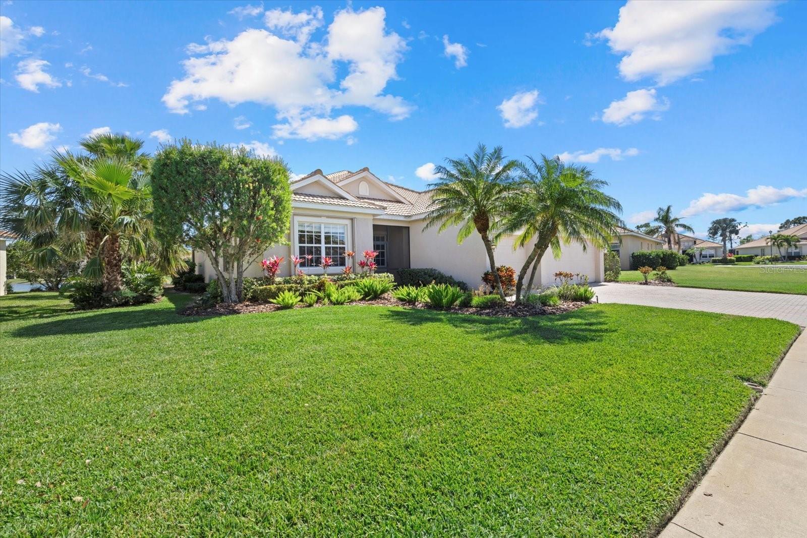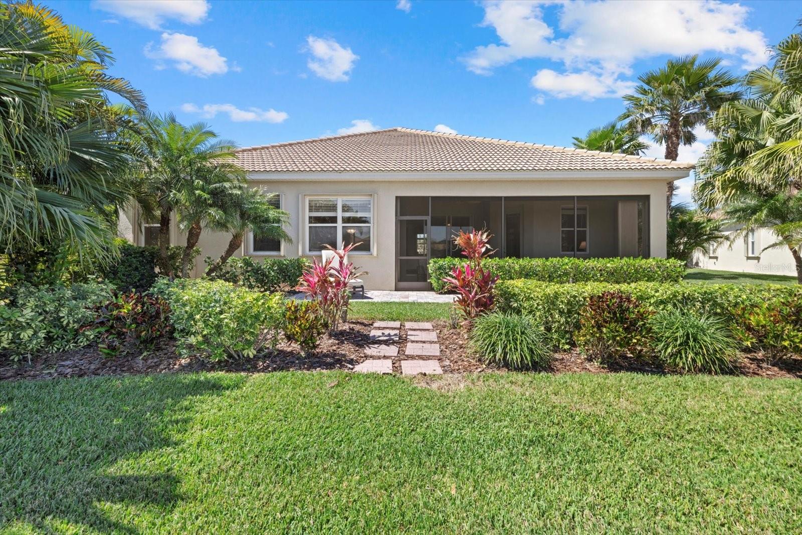 LAKE VIEW! 3 CAR GARAGE! ACCORDION SHUTTERS! OVERSIZED LOT! Welcome to a stunning lakefront residence in the prestigious gated community of Stoneybrook at Venice. This exquisite 4-bedroom, 2-bathroom home, complete with a 3-car garage, is in pristine, move-in condition. Revel in the tranquility and privacy offered by the breathtaking lake view right in your backyard. The home features soaring ceilings and an open floor plan, seamlessly extending to an expansive lanai overlooking the serene lake--ideal for entertaining guests. Upon entering, you are greeted by elegant formal dining and living spaces. The spacious kitchen is a chef's delight, boasting beautiful 42" cabinets, Corian countertops, a breakfast bar, pantry, built in wall oven, a combination convection oven/microwave, and a cozy eat-in area. The family room offers a relaxed atmosphere for watching TV, reading, or unwinding. The luxurious primary suite impresses with high ceilings, dual walk-in closets, dual sinks, a vanity, garden tub, separate shower, and direct access to the lanai. This highly sought-after split floor plan ensures privacy, with the primary suite and one guest bedroom on one side of the home, and two additional guest bedrooms and a separate bathroom on the opposite side. Enjoy the extensive landscaping and the sights and sounds of nature from the large screened lanai or the brick paver patio in the backyard. The covered and screened lanai is accessible via sliding glass doors from the living room, family room, and primary bedroom. Stoneybrook at Venice offers a vibrant lifestyle with a community center, resort-style pool, splash pad, fitness center, lighted tennis and basketball courts, in-line skating, two sand volleyball courts, a multi-purpose field, and various pedestrian pathways. Conveniently located just 10-15 minutes from Venice Island and Venice Beach, and a mere 5 minutes from the new Wellen Park community and Atlanta Braves Spring Training facility. Benefit from low HOA and CDD fees and access to A-rated schools. Call now to schedule your private showing and experience this slice of paradise for yourself. To view the luxury video, please copy and paste the following link: https://iframe.videodelivery.net/4c3317c4505118cc079068eba6be0748
