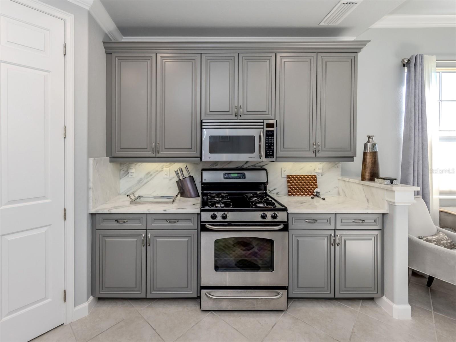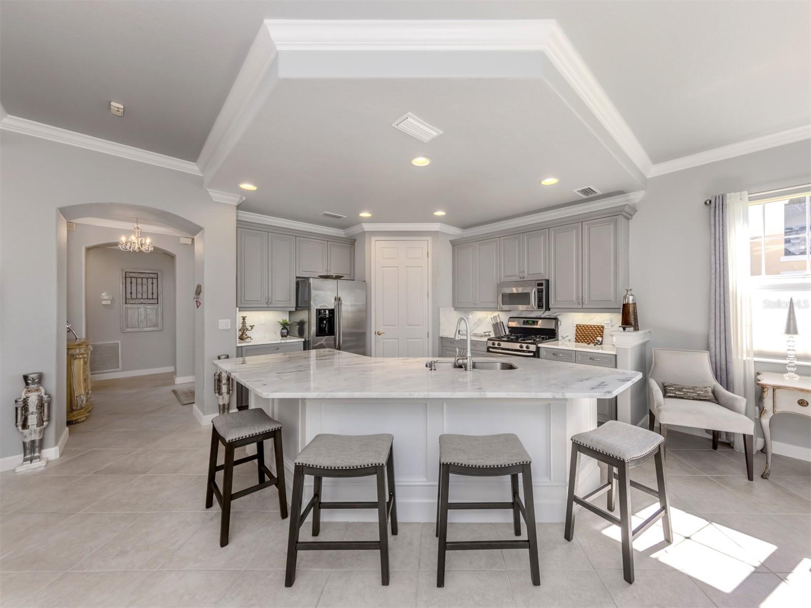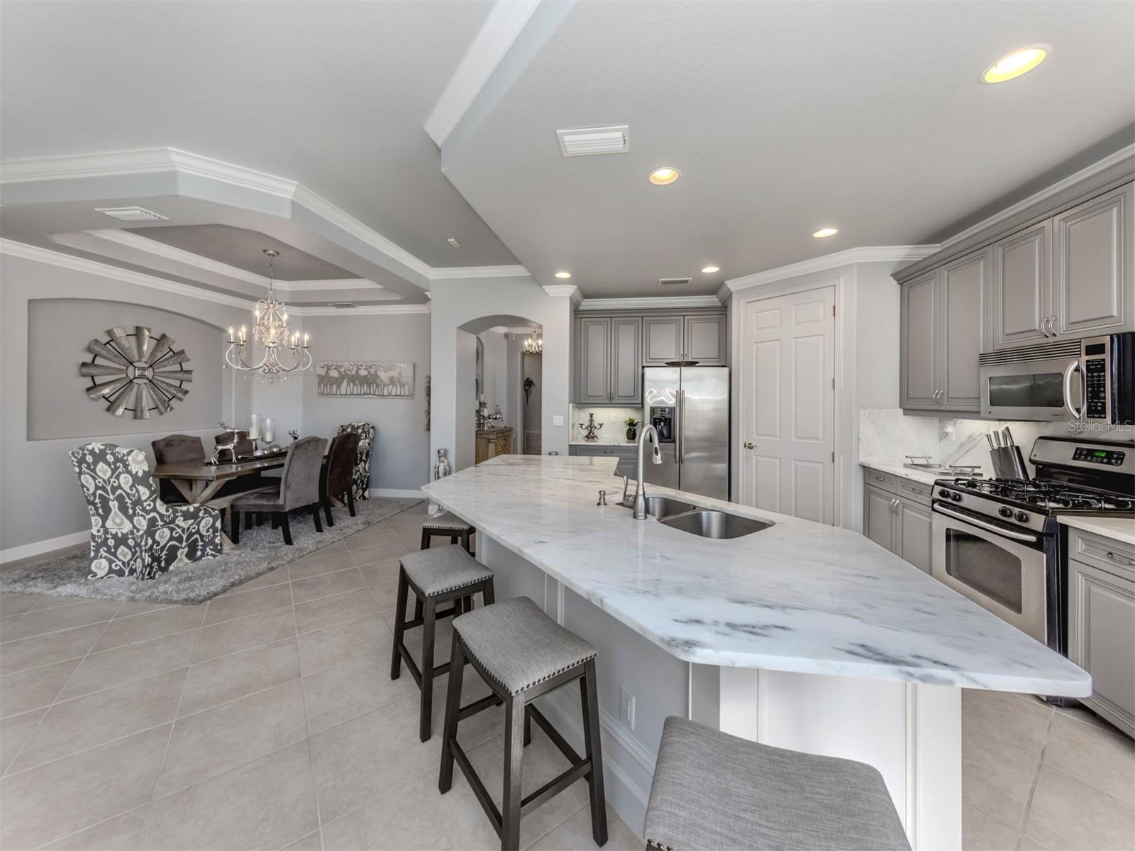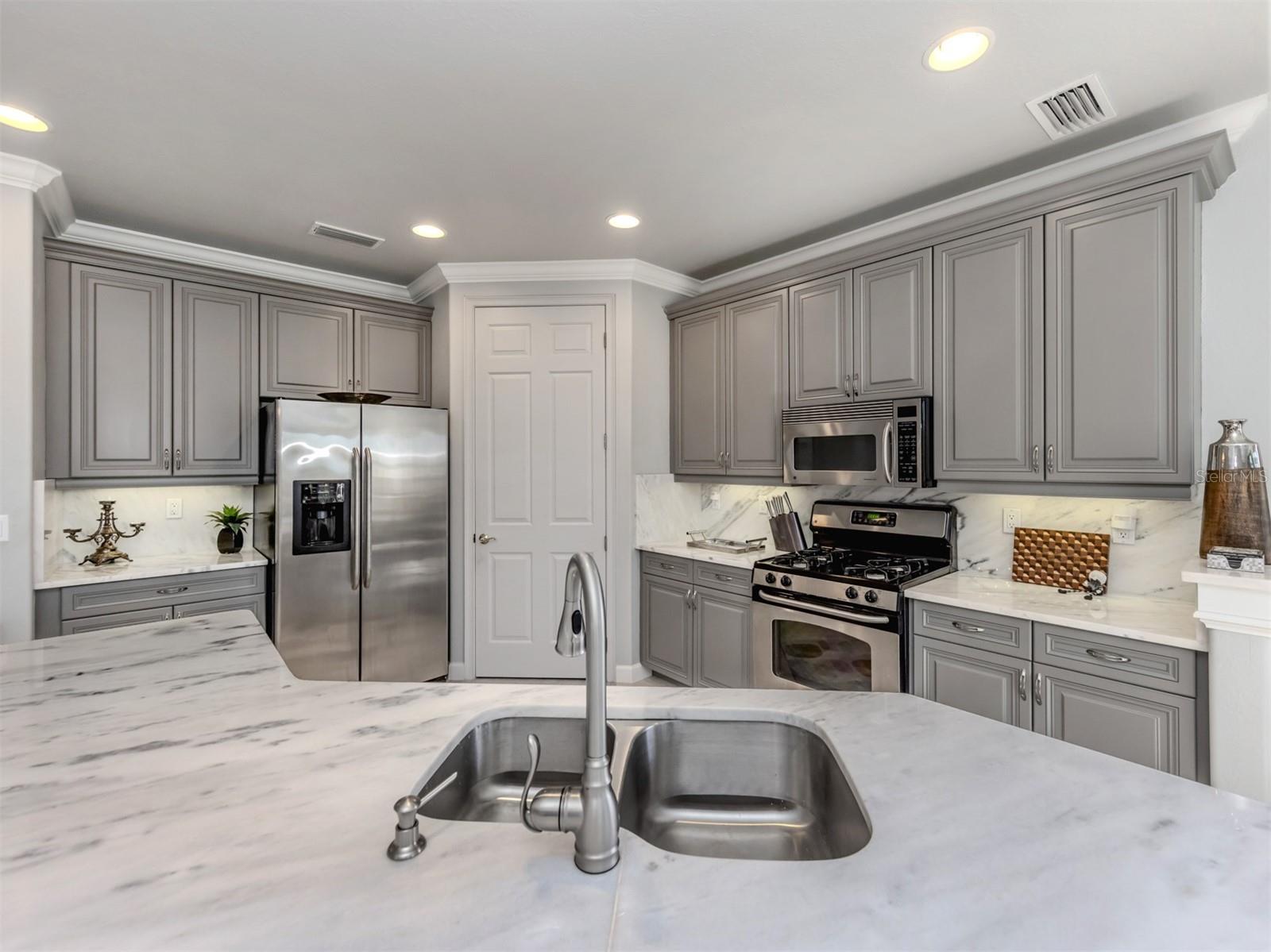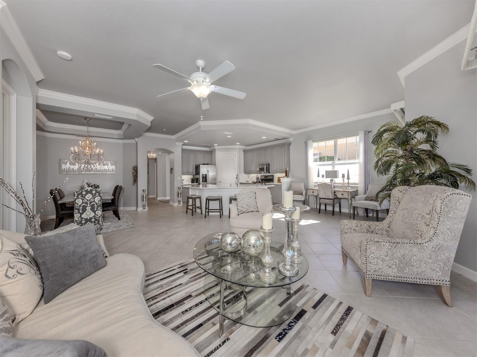 Puttin' on the Ritz! You can move right into this luxurious and elegant first-floor condominium today. This newly redone kitchen makes entertaining a breeze. The bright open great room includes multiple sliders to lanai, large living room area, dining room, sitting area and large kitchen with new granite stainless appliances, walk-in pantry and gas range. This split floor plan offers two bedrooms, one with a walk-in closet, hall bath, and laundry room leading to two-car attached garage. The primary is on the other side with sliders to lanai, en-suite bath with dual sinks, large walk-in shower and nearby walk-in closet and two linen closets. Enjoy sunsets from your private lanai with private marshy preserve views and all the visiting wildlife. Turnkey furnished. Just move in and enjoy your new resort living with private restaurant with wonderful chef, featuring special dinners, dances, events, hamburger night, fish fry Fridays, buffets, Sunday breakfast and recently added pizza oven. Yum! No waiting or traffic in season. Other offerings in this wonderful and popular neighborhood are six Har-Tru tennis courts, three pickleball courts, large resort pool with spa, tiki bar for drinks and food, and occasional entertainment and karaoke, lap pool, gym, aerobics room, many games groups and last but far from least, a -mile boardwalk through the jungle down to the Myakka River. All this and so conveniently near the highway, hospital, fire station, many beaches and beautiful downtown Venice. Enjoy today!