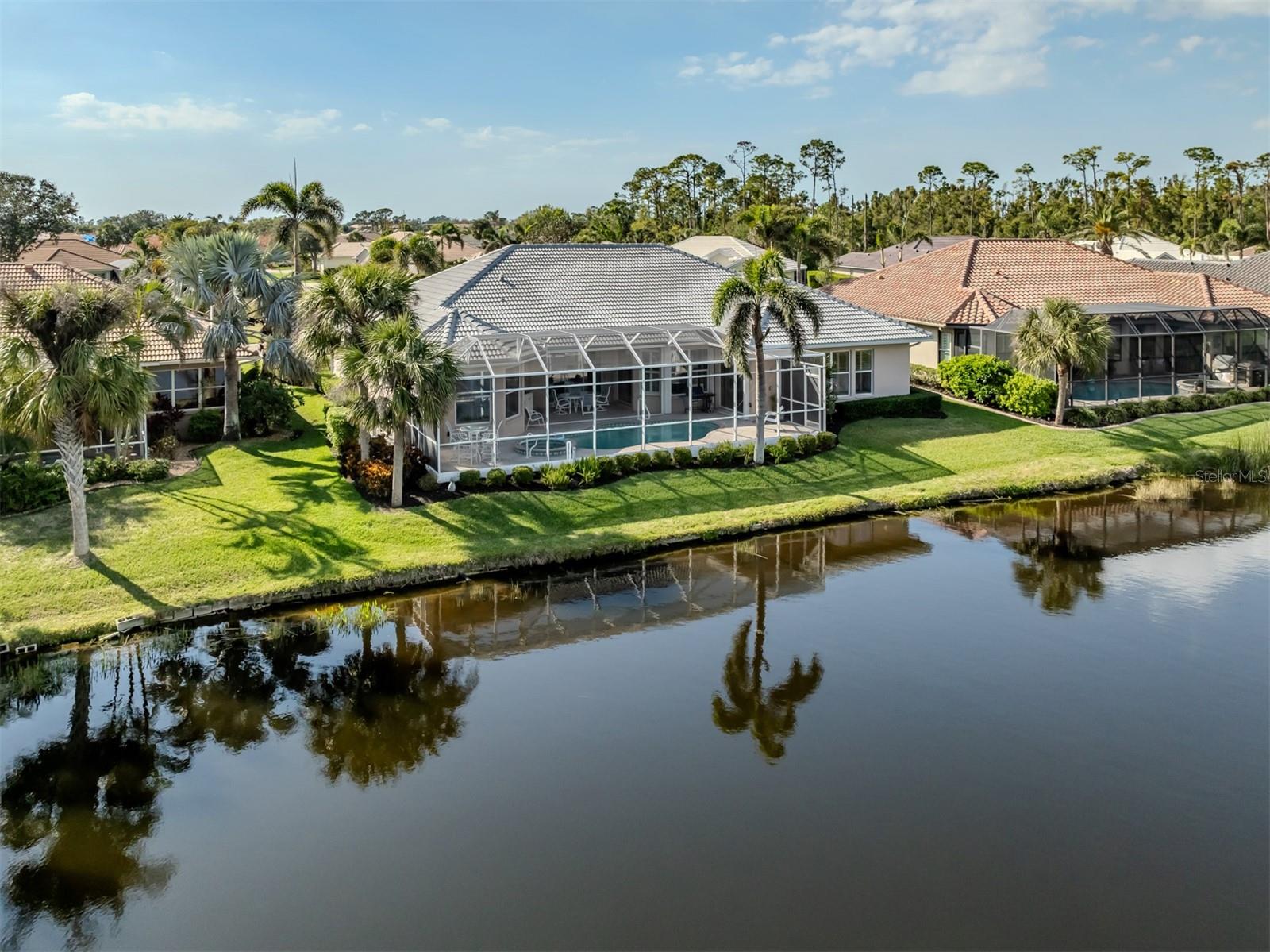 Be sure to view this special property soon! Located in a premium Lakefront location in popular Sawgrass, one of Venice's highly sought-after golf communities. The hard-to-find 3,200 sq. ft. sized home is a true 3 bedroom/3 full baths plus office, created with a flowing open floorplan. The extra-size kitchen and cafe' area as well as the spacious family room and living room have panoramic lake views and overlook the large pool and caged lanai. You'll find plenty of space to welcome family and friends. Two of the sizable bedrooms and bath are in one wing of the home and the truly masterful primary suite is on the opposite side, offering maximum comfort for all. One of the 3 baths even has dedicated pool access. The TILE ROOF was just replaced as of Feb. 2025, adding extra value and many years of safety ahead. The Sawgrass community has no CDD fees, optional 9 holes of golf, a large, sunshiny pool and resort-style lounging area, various fun sport activities and many social opportunities. Sawgrass is just 4 miles to Venice Island and all that it has to offer, from beaches to bistros to boutiques. This fine home was beloved by its previous owners and their family and has not on the market before, so be sure you don't miss the opportunity!