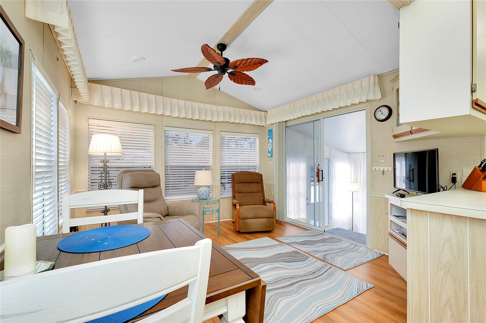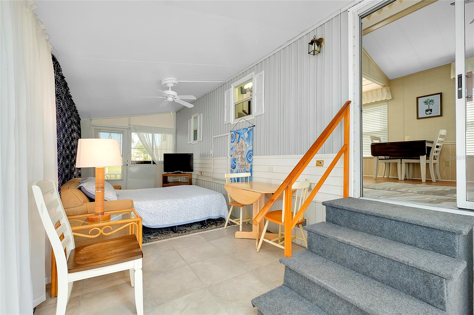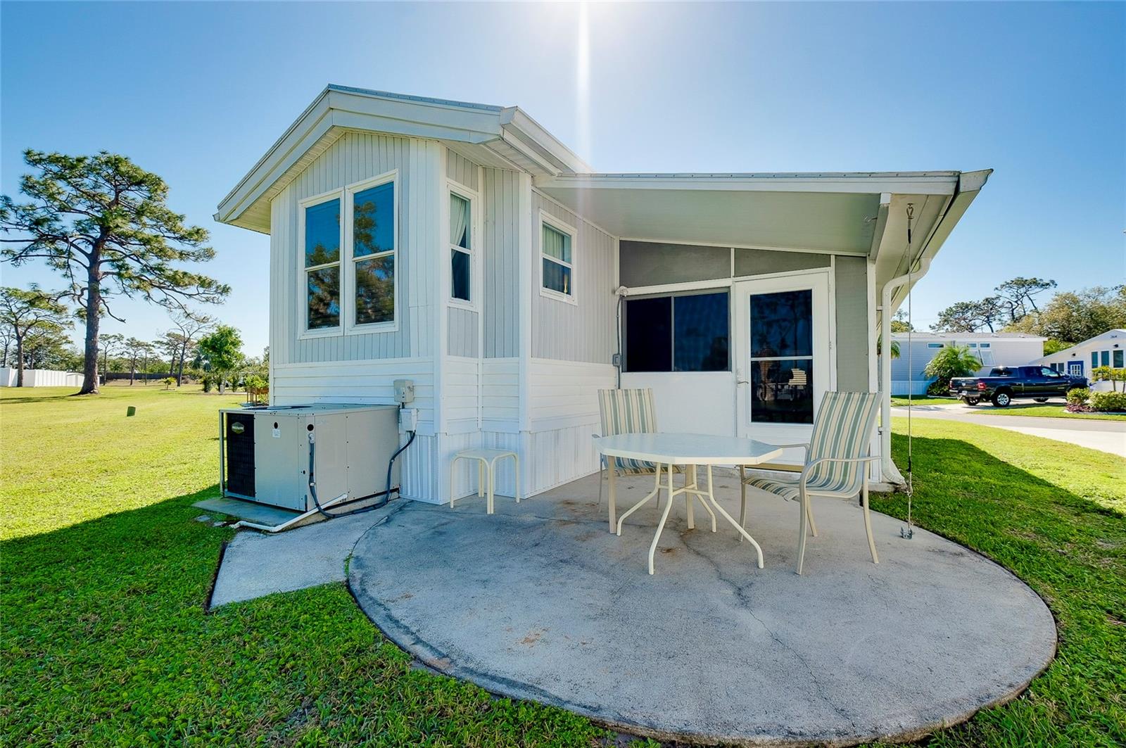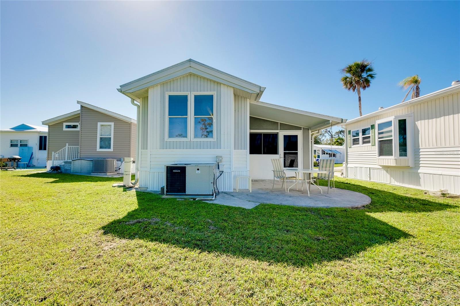 Charming and updated fully furnished home in Kings Gate Park.55 + Gated Community, Where You Own Your Own Lot.Offering 721 sq. ft. of comfortable living space including under A/C lanai, this one-bedroom, one bathroom home features a spacious air-conditioned lanai, which can be used as a second bedroom for guests. The bright and inviting interior is complemented by numerous recent upgrades, making this home move in ready. Modern Updates for Comfort and Efficiency. Recent improvements include new plumbing and faucets (2023), a new water heater (2023), and new kitchen LED lighting (2023), enhancing both functionality and style. It has a newer membrane roof (2021), new flooring (2021), and new window treatments that add to the homes fresh and updated feel. A new front door (2024), new siding and skirting (2024), sewer backup preventer (2024), new surge protector (2024) all provide added durability and peace of mind. The window tinting and sun screens contribute to energy efficiency, helping to keep your power bill low. The outdoor space is designed for convenience and relaxation, featuring a covered back patio with LED lighting, perfect for grilling in the evenings.The lanai's back section opens to allow for golf cart storage, and the long driveway can accommodate two cars. Kings Gate Park offers a very friendly, and welcoming atmosphere with low HOA fees that include water, sewer, high speed internet, over 270 TV and music channels, and grounds maintenance.Residence enjoy access to a large heated pool, tennis and pickleball courts, bocce, shuffleboard, a fitness center, craft room, gardening room, woodworking shop, bike repair/rental shop and a clubhouse. The community also features a private Marina for boat storage, and a boat and kayak ramp, fishing dock, and RV storage. Prime Location - Minutes to the Beach & Downtown.This home is conveniently located Just 4 miles from Nokomis Beach, and historic downtown Venice, offering easy access to shopping, dining, and entertainment. Sarasota Memorial Hospital's Venice campus is only 2.5 miles away, ensuring close proximity to medical facilities.Outdoor enthusiast will love the Legacy Trail, perfect for biking and walking, as well as the nearby Oscar Scherer State Park for nature filled adventures.Whether you're looking for a seasonal retreat, or a full-time residence, this home provides a perfect blend of comfort, modern updates, and an active lifestyle in a fantastic location. Schedule your showing today.