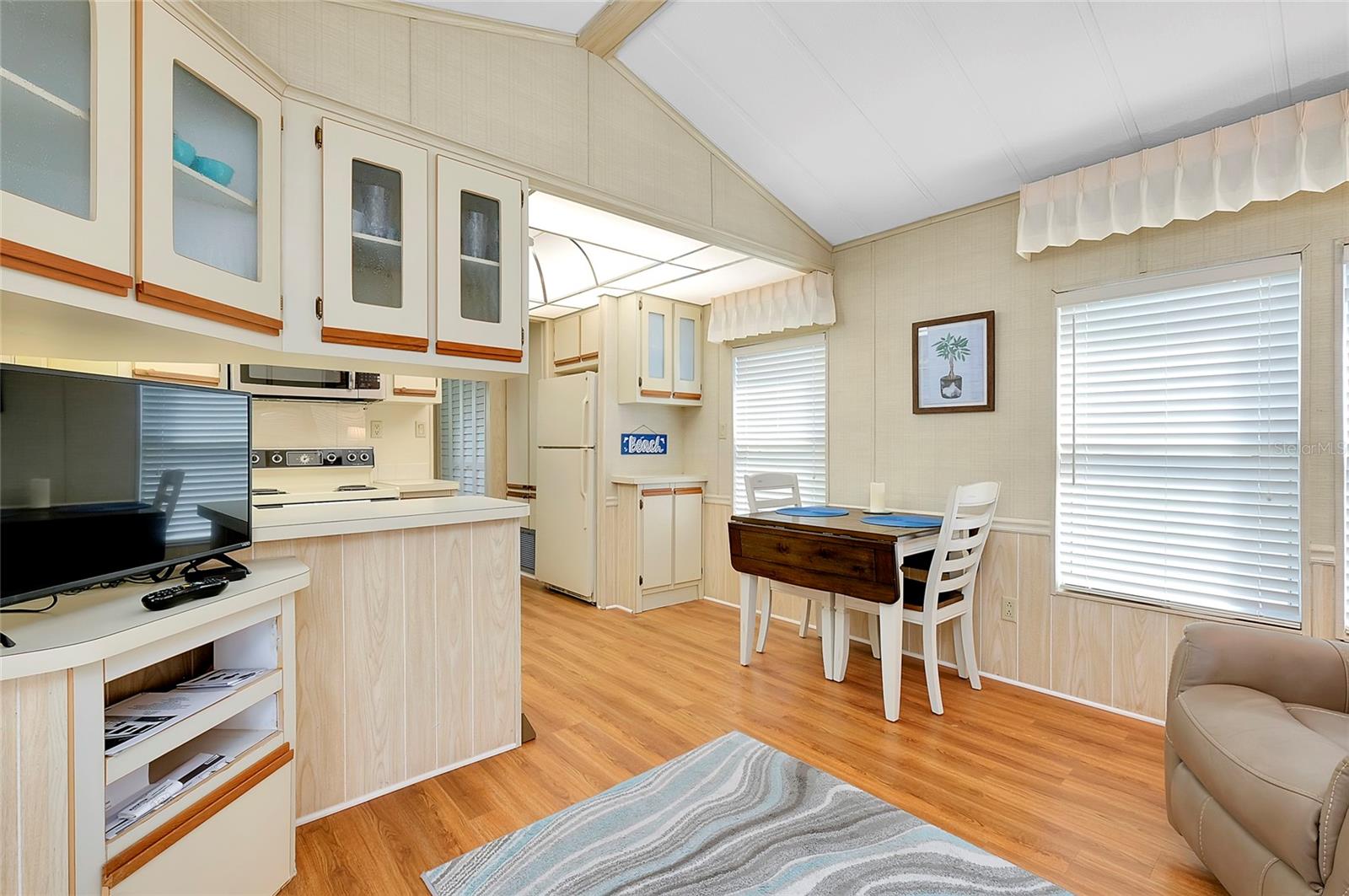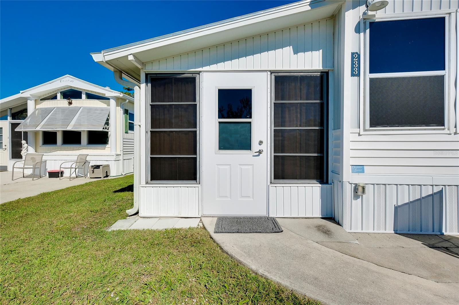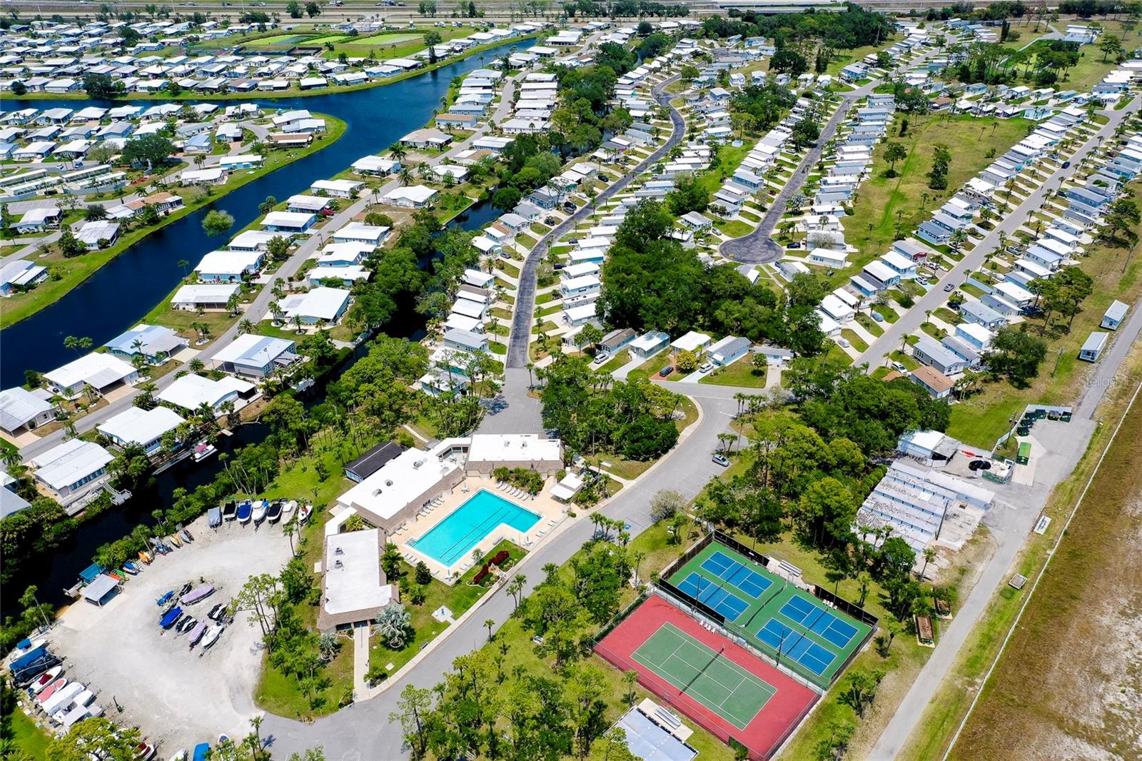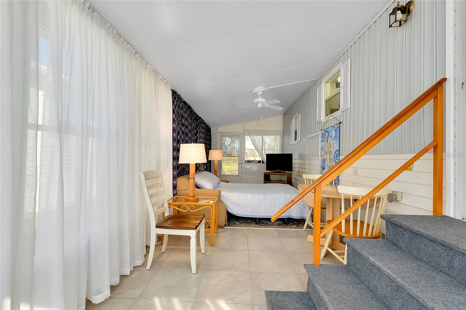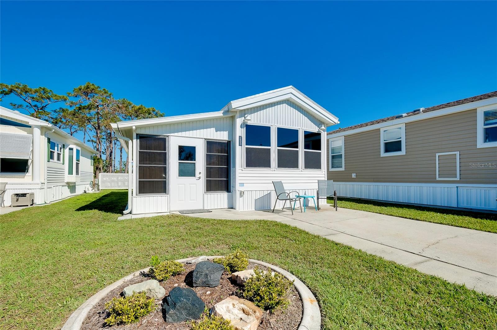 Charming and updated fully furnished home in Kings Gate Park.55 + Gated Community, Where You Own Your Own Lot.Offering 721 sq. ft. of comfortable living space including under A/C lanai, this one-bedroom, one bathroom home features a spacious air-conditioned lanai, which can be used as a second bedroom for guests. The bright and inviting interior is complemented by numerous recent upgrades, making this home move in ready. Modern Updates for Comfort and Efficiency. Recent improvements include new plumbing and faucets (2023), a new water heater (2023), and new kitchen LED lighting (2023), enhancing both functionality and style. It has a newer membrane roof (2021), new flooring (2021), and new window treatments that add to the homes fresh and updated feel. A new front door (2024), new siding and skirting (2024), sewer backup preventer (2024), new surge protector (2024) all provide added durability and peace of mind. The window tinting and sun screens contribute to energy efficiency, helping to keep your power bill low. The outdoor space is designed for convenience and relaxation, featuring a covered back patio with LED lighting, perfect for grilling in the evenings.The lanai's back section opens to allow for golf cart storage, and the long driveway can accommodate two cars. Kings Gate Park offers a very friendly, and welcoming atmosphere with low HOA fees that include water, sewer, high speed internet, over 270 TV and music channels, and grounds maintenance.Residence enjoy access to a large heated pool, tennis and pickleball courts, bocce, shuffleboard, a fitness center, craft room, gardening room, woodworking shop, bike repair/rental shop and a clubhouse. The community also features a private Marina for boat storage, and a boat and kayak ramp, fishing dock, and RV storage. Prime Location - Minutes to the Beach & Downtown.This home is conveniently located Just 4 miles from Nokomis Beach, and historic downtown Venice, offering easy access to shopping, dining, and entertainment. Sarasota Memorial Hospital's Venice campus is only 2.5 miles away, ensuring close proximity to medical facilities.Outdoor enthusiast will love the Legacy Trail, perfect for biking and walking, as well as the nearby Oscar Scherer State Park for nature filled adventures.Whether you're looking for a seasonal retreat, or a full-time residence, this home provides a perfect blend of comfort, modern updates, and an active lifestyle in a fantastic location. Schedule your showing today.