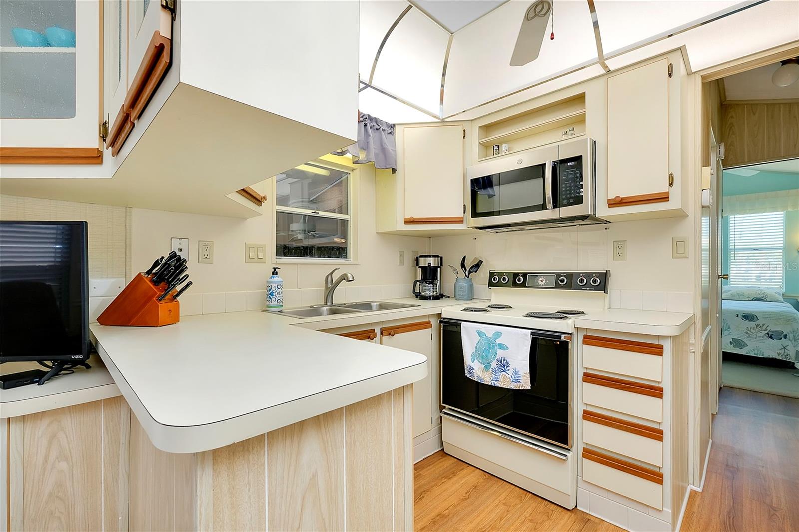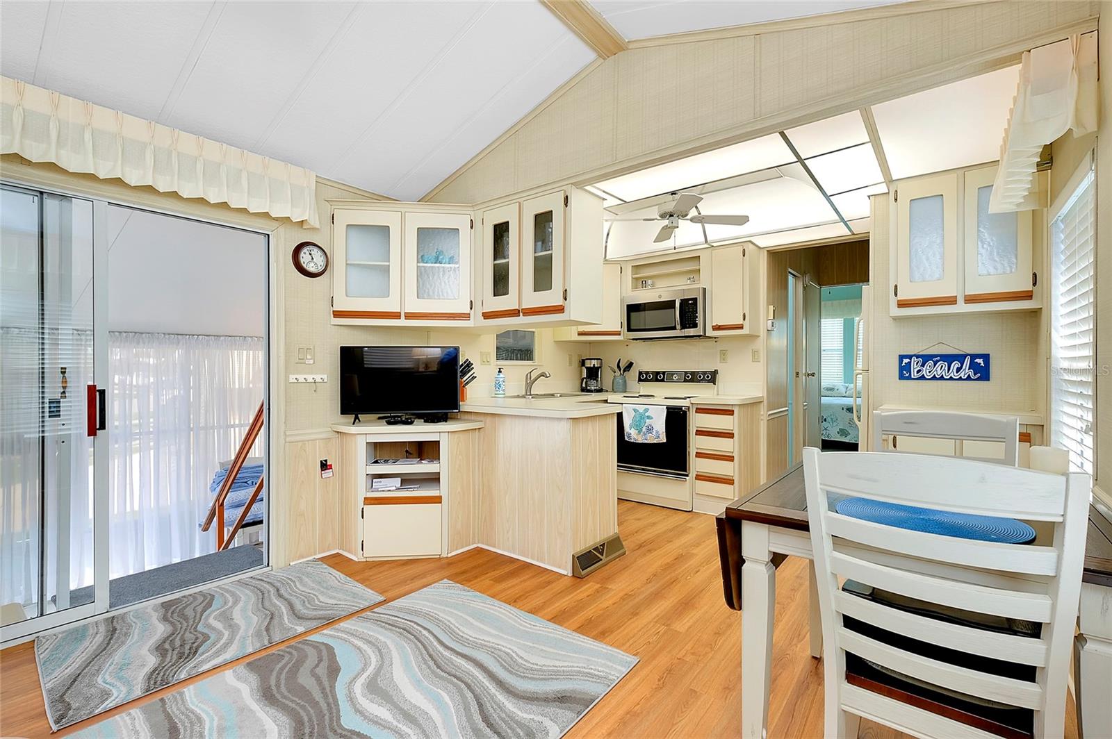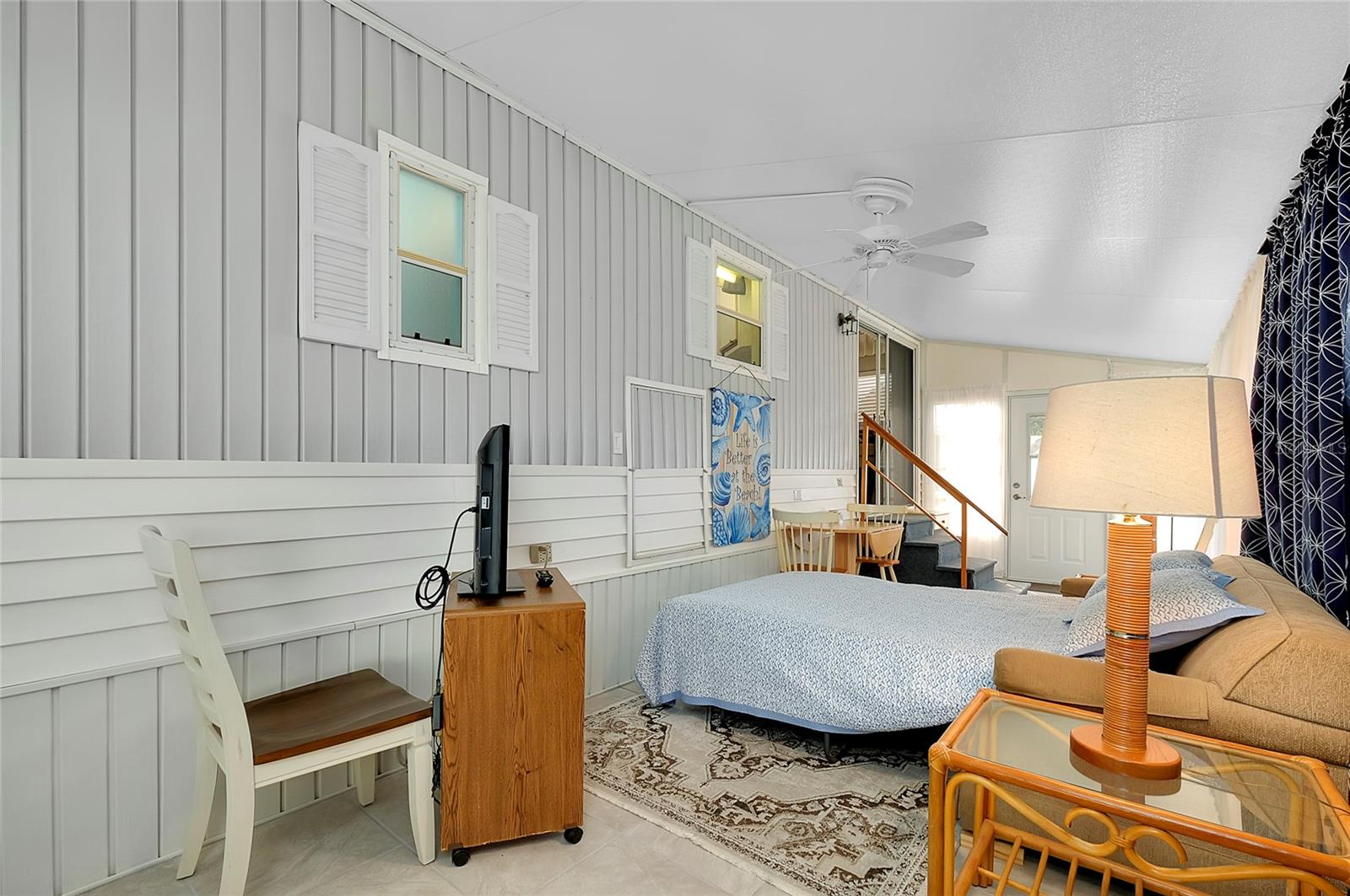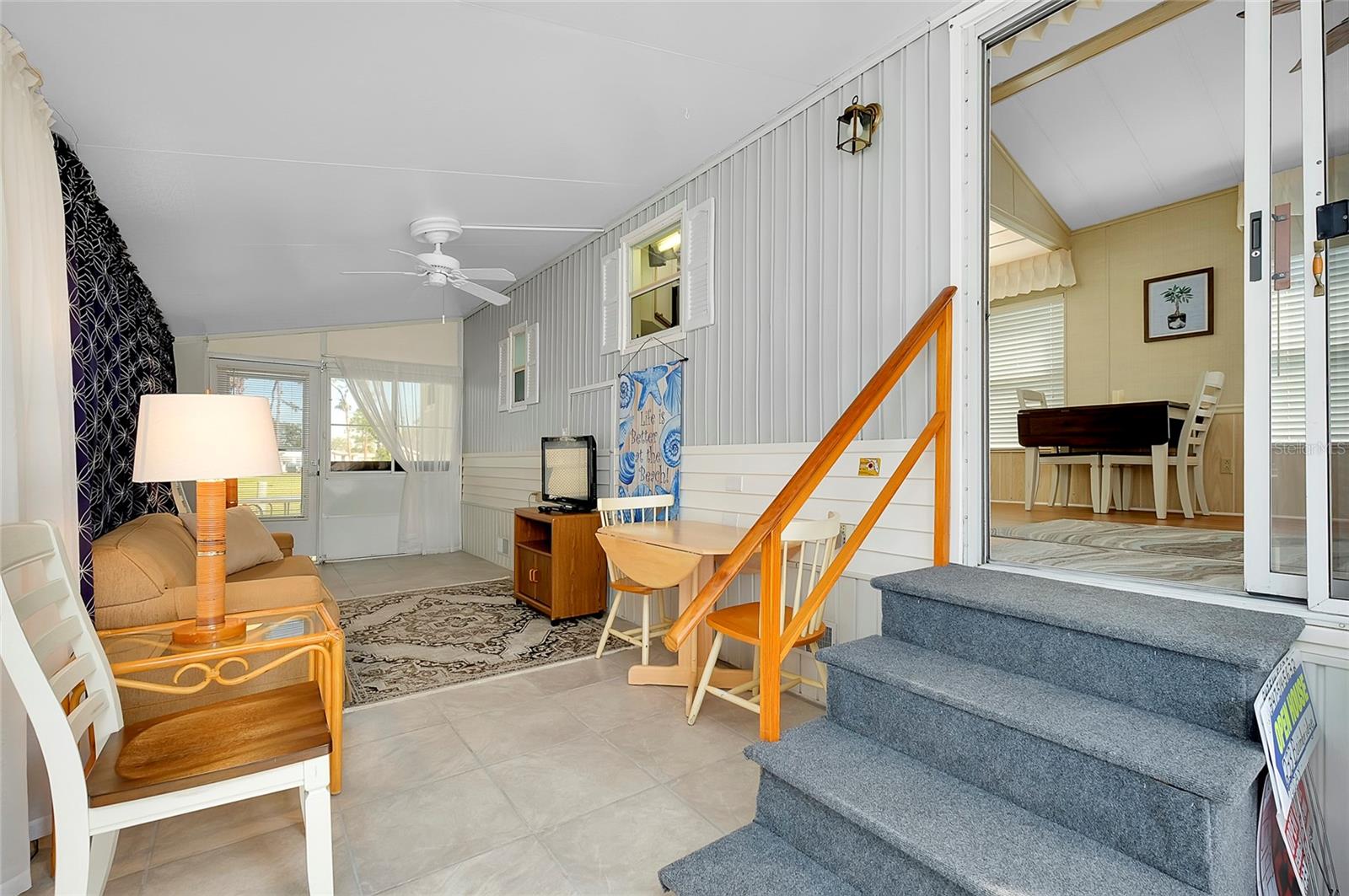 Charming and updated fully furnished home in Kings Gate Park.55 + Gated Community, Where You Own Your Own Lot.Offering 721 sq. ft. of comfortable living space including under A/C lanai, this one-bedroom, one bathroom home features a spacious air-conditioned lanai, which can be used as a second bedroom for guests. The bright and inviting interior is complemented by numerous recent upgrades, making this home move in ready. Modern Updates for Comfort and Efficiency. Recent improvements include new plumbing and faucets (2023), a new water heater (2023), and new kitchen LED lighting (2023), enhancing both functionality and style. It has a newer membrane roof (2021), new flooring (2021), and new window treatments that add to the homes fresh and updated feel. A new front door (2024), new siding and skirting (2024), sewer backup preventer (2024), new surge protector (2024) all provide added durability and peace of mind. The window tinting and sun screens contribute to energy efficiency, helping to keep your power bill low. The outdoor space is designed for convenience and relaxation, featuring a covered back patio with LED lighting, perfect for grilling in the evenings.The lanai's back section opens to allow for golf cart storage, and the long driveway can accommodate two cars. Kings Gate Park offers a very friendly, and welcoming atmosphere with low HOA fees that include water, sewer, high speed internet, over 270 TV and music channels, and grounds maintenance.Residence enjoy access to a large heated pool, tennis and pickleball courts, bocce, shuffleboard, a fitness center, craft room, gardening room, woodworking shop, bike repair/rental shop and a clubhouse. The community also features a private Marina for boat storage, and a boat and kayak ramp, fishing dock, and RV storage. Prime Location - Minutes to the Beach & Downtown.This home is conveniently located Just 4 miles from Nokomis Beach, and historic downtown Venice, offering easy access to shopping, dining, and entertainment. Sarasota Memorial Hospital's Venice campus is only 2.5 miles away, ensuring close proximity to medical facilities.Outdoor enthusiast will love the Legacy Trail, perfect for biking and walking, as well as the nearby Oscar Scherer State Park for nature filled adventures.Whether you're looking for a seasonal retreat, or a full-time residence, this home provides a perfect blend of comfort, modern updates, and an active lifestyle in a fantastic location. Schedule your showing today.