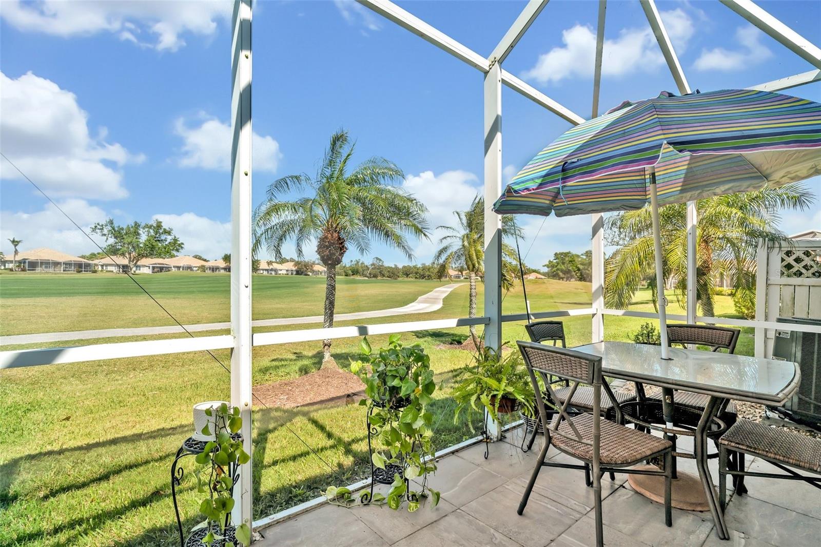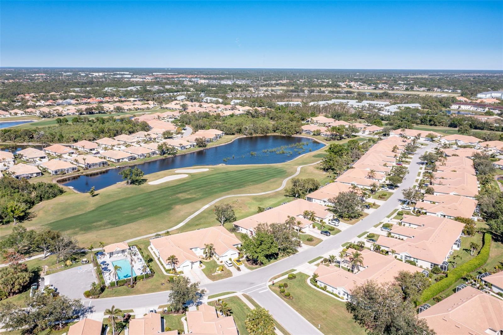 BEAUTIFUL, 3BD/2BA, END UNIT VILLA in The Links at Pelican Pointe GOLF & COUNTRY CLUB. AMAZING GOLF COURSE VIEWS of the 14th fairway! Just under 1800 square feet, this spacious villa is perfectly suited for the "Florida Lifestyle". Custom Plantation Shutters on all windows, new luxury vinyl flooring throughout - NO CARPET! Beautiful Cambria Quartz countertops in the Kitchen and stainless appliances. The interior of the villa was recently painted. A Murphy Bed in one of the bedrooms leaves space for an office area if needed. In addition to the Dinette in the Kitchen, there is a Dining Room that can be repurposed for other uses if desired. Also, there is a separate Laundry Room with additional storage and shelving. Loads of closets in this villa! Split floor plan to give you and your guests plenty of privacy. The garage features attic space with pull down stairs and a golf cart will fit in the 1.5 space garage. NEW ROOF in 2023! The Links is the only community in Pelican Pointe that the HOA fees include the roof maintenance. Villa has been repiped. BIG BONUS - in addition to the clubhouse pool, The Links has a community pool only for its residents and it is steps away, just like having your own private pool! As a resident of Pelican Pointe, you have access to all this amenity-rich community offers- clubhouse, restaurant, bar/grille, heated lap pool, tennis & pickleball courts, library and 27 holes of golf. BONUS: GOLF IS NOT MANDATORY, you can join if you wish or pay to play. Also, there is a very active Women's Association with over 40 clubs. Pet friendly neighborhood for any size dog/cat. Great walking and biking, too! LOCATION, LOCATION, LOCATION - this villa is just minutes away from the Gulf beaches and quaint historic downtown Venice. Charming shops, cafes, restaurants, parks and cultural events are at your fingertips. Easy access to I-75 and 4 airports. Come take a look!