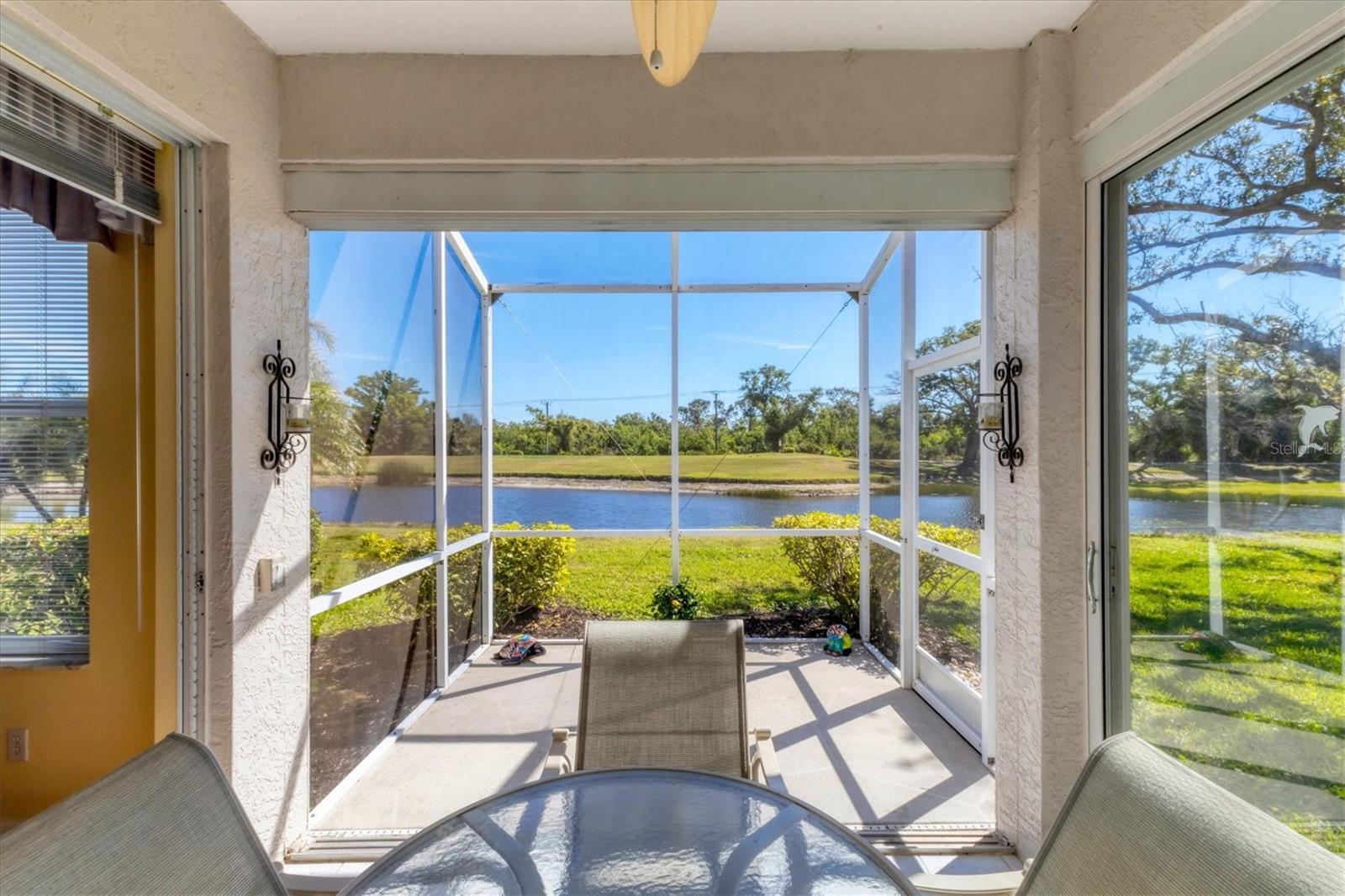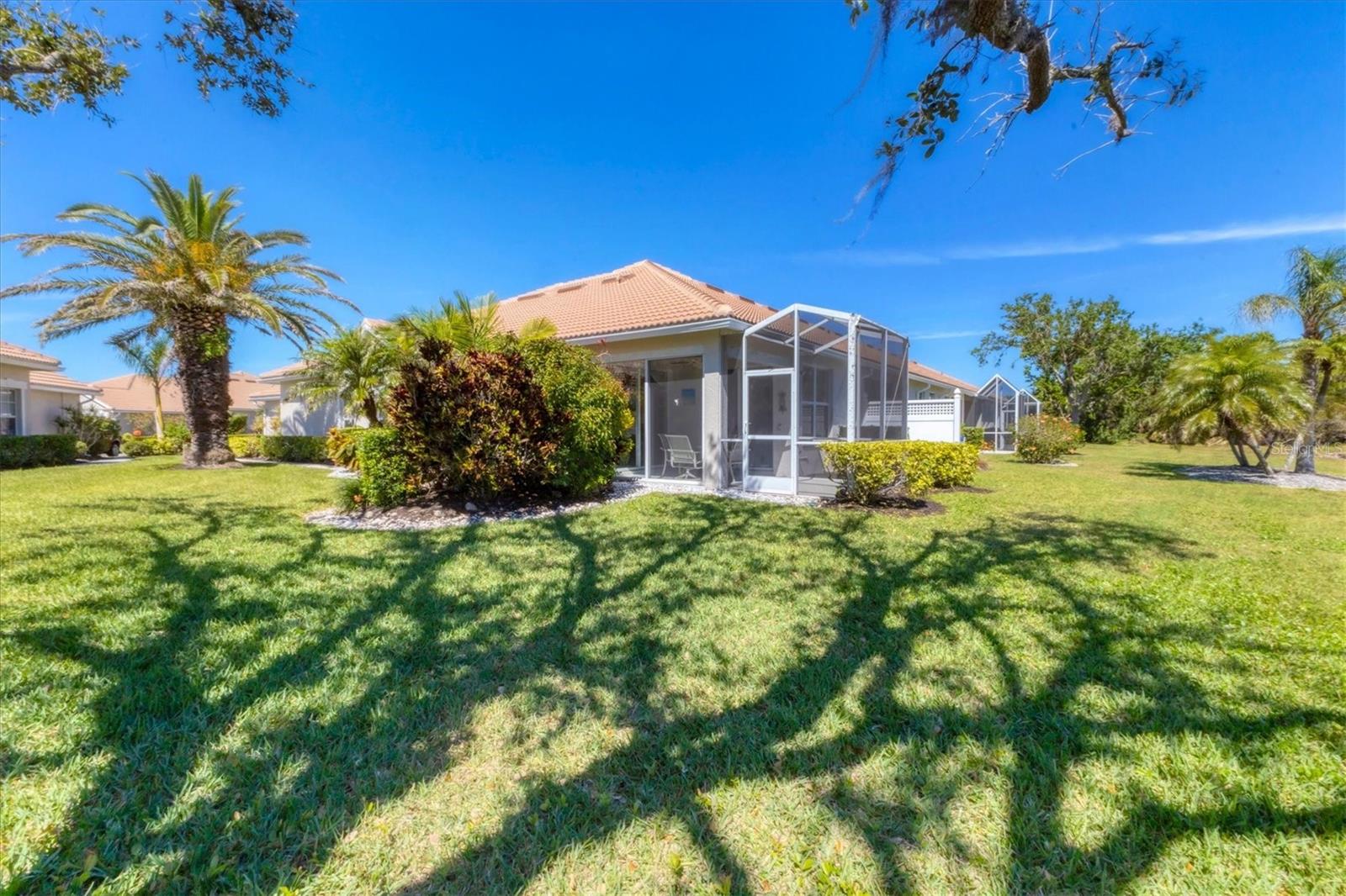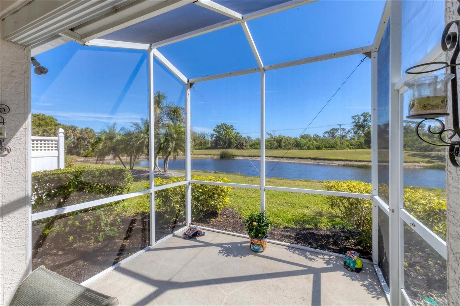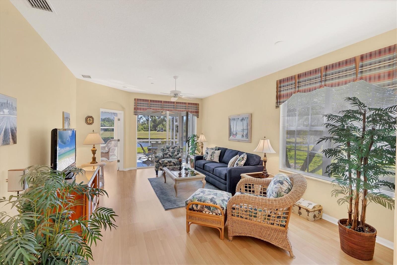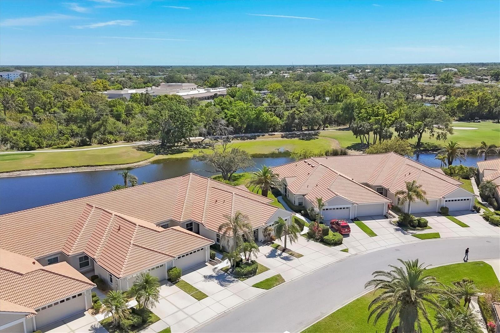 PANORAMIC VIEWS OF LAKE, GOLF COURSE, AND PRESERVE. This must see villa is just what you are looking for!! Magnificent views and Gorgeous Updates, TURNKEY FURNISHED. Popular end unit Birdie Floor plan, 2BD/2BA/Den. Windows are on the South side of villa for a natural bright and cheery space. Open floor plan with your living space leading you out the sliders to the extended lanai with panoramic views. Covered portion of lanai is enclosed by glass doors for protection of lanai from wind and rain and the floor has been tiled. Extended portion screened to catch the breezes and sitting in the sun. Interior has been updated. Laminate floors throughout main living areas with tile flooring in wet areas. Kitchen was updated with new cabinets, granite counters, subway tile backsplash, rectangle tile floors, and new appliances. Spacious Master Bedroom with a view and sliders to lanai. En suite master bath with dual sinks, walk in shower, and walk in closet with updated counter tops. cabinets, and fixtures. Guest bedroom at opposite end of villa for guest privacy. Guest bath updated with same materials as master bath. NEW ROOF. Exterior painted 2025. AC 2024. WH 2017. Property has been replumbed. NO HURRICANE DAMAGE AND NOT IN A FLOOD ZONE!!!. This immaculate villa will go quickly, so MAKE YOUR APPOINTMENT TODAY and start living YOUR Florida Lifestyle. Not in Florida to see it? 3D WALK THROUGH AT: https://my.matterport.com/show/?m=17vB9obPo7U Pelican Pointe is Venice's premier community with resort style amenities- Clubhouse with restaurant/bar/grill, heated pool, fitness center, tennis courts, pickle ball, tons of social activities, social room/library, 27 holes of golf and pro shop. Huge and very active Women's Association with tons of activities to choose from. Golf membership is NOT mandatory. LOW HOA fees include use of all amenities, plus cable, internet, and all landscaping( grass cutting, trimming bushes, hedges, trees, yard cleanup, etc. All centrally located minutes to Venice Beach, Venice Downtown, shopping, theatres, restaurants, highways, airports, and so much more.Come find your Florida Lifestyle today!