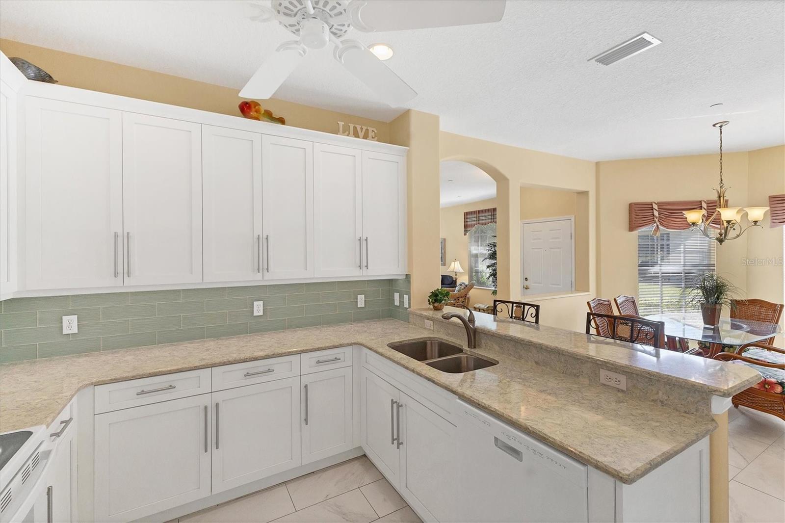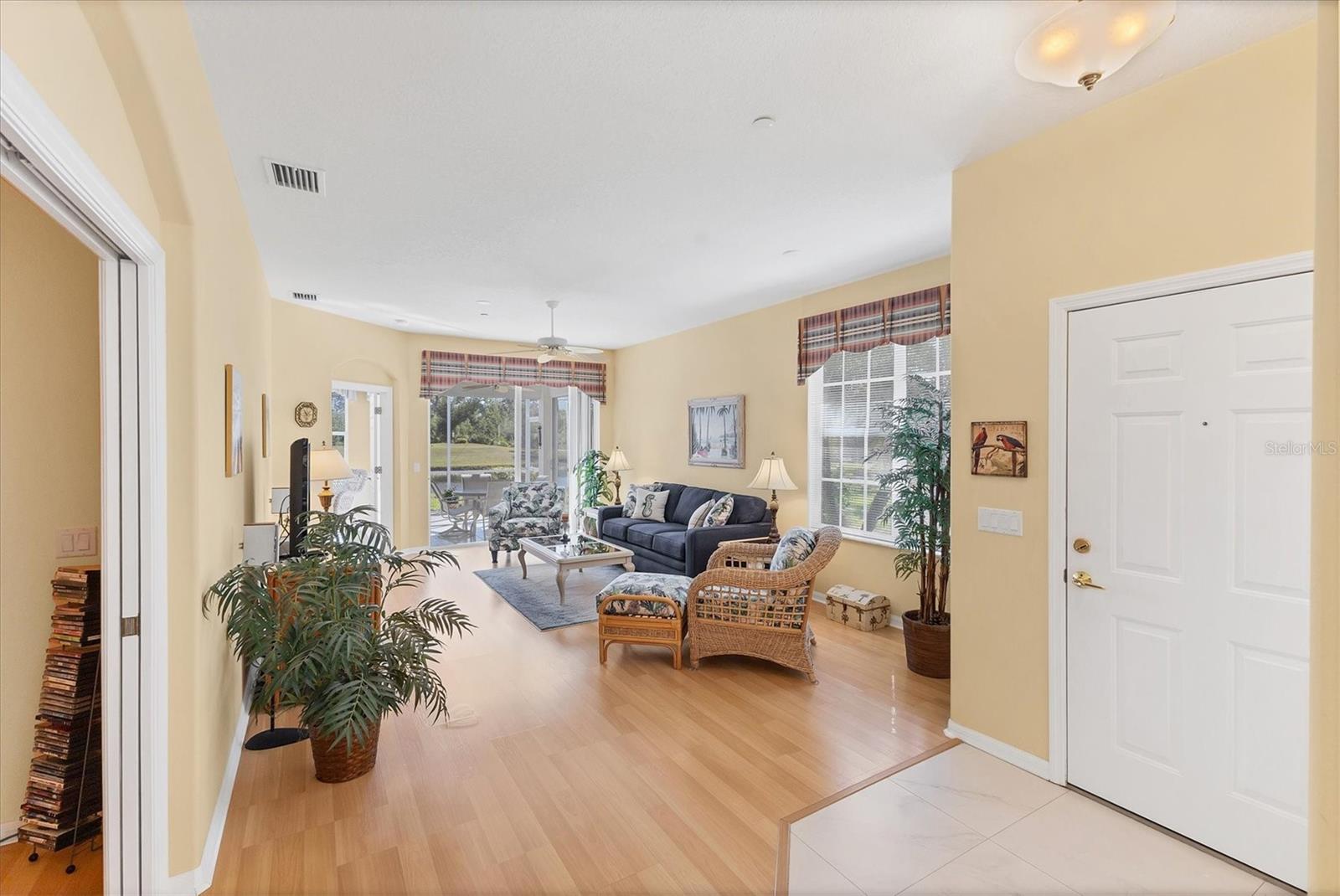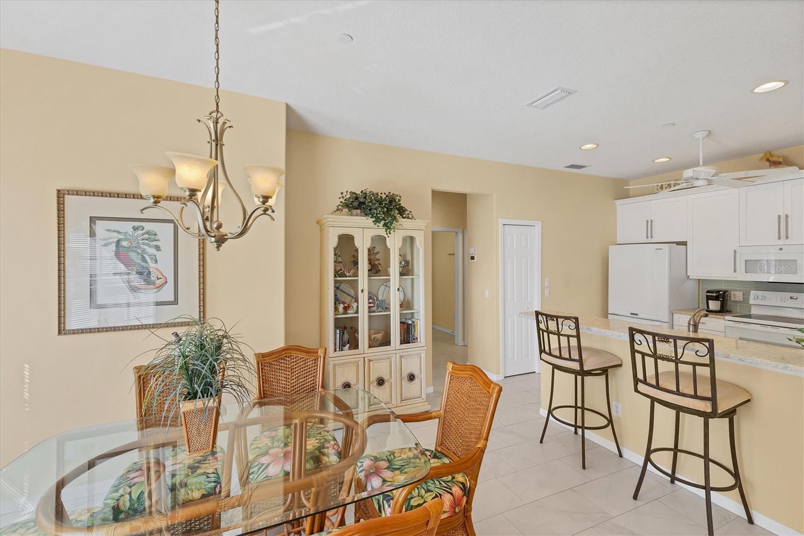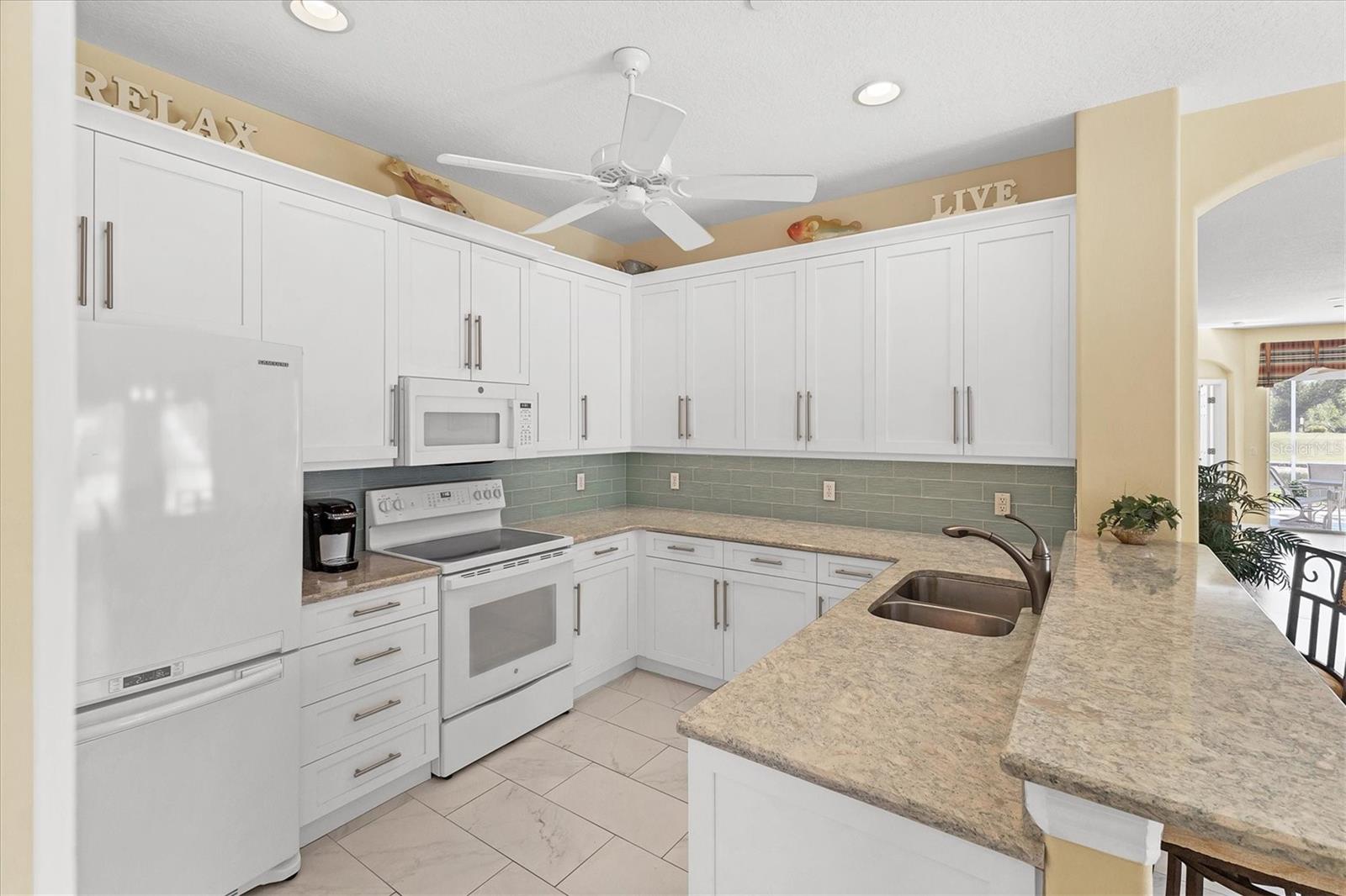 PANORAMIC VIEWS OF LAKE, GOLF COURSE, AND PRESERVE. This must see villa is just what you are looking for!! Magnificent views and Gorgeous Updates, TURNKEY FURNISHED. Popular end unit Birdie Floor plan, 2BD/2BA/Den. Windows are on the South side of villa for a natural bright and cheery space. Open floor plan with your living space leading you out the sliders to the extended lanai with panoramic views. Covered portion of lanai is enclosed by glass doors for protection of lanai from wind and rain and the floor has been tiled. Extended portion screened to catch the breezes and sitting in the sun. Interior has been updated. Laminate floors throughout main living areas with tile flooring in wet areas. Kitchen was updated with new cabinets, granite counters, subway tile backsplash, rectangle tile floors, and new appliances. Spacious Master Bedroom with a view and sliders to lanai. En suite master bath with dual sinks, walk in shower, and walk in closet with updated counter tops. cabinets, and fixtures. Guest bedroom at opposite end of villa for guest privacy. Guest bath updated with same materials as master bath. NEW ROOF. Exterior painted 2025. AC 2024. WH 2017. Property has been replumbed. NO HURRICANE DAMAGE AND NOT IN A FLOOD ZONE!!!. This immaculate villa will go quickly, so MAKE YOUR APPOINTMENT TODAY and start living YOUR Florida Lifestyle. Not in Florida to see it? 3D WALK THROUGH AT: https://my.matterport.com/show/?m=17vB9obPo7U Pelican Pointe is Venice's premier community with resort style amenities- Clubhouse with restaurant/bar/grill, heated pool, fitness center, tennis courts, pickle ball, tons of social activities, social room/library, 27 holes of golf and pro shop. Huge and very active Women's Association with tons of activities to choose from. Golf membership is NOT mandatory. LOW HOA fees include use of all amenities, plus cable, internet, and all landscaping( grass cutting, trimming bushes, hedges, trees, yard cleanup, etc. All centrally located minutes to Venice Beach, Venice Downtown, shopping, theatres, restaurants, highways, airports, and so much more.Come find your Florida Lifestyle today!