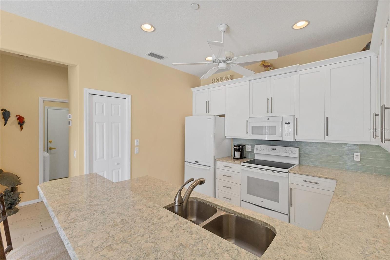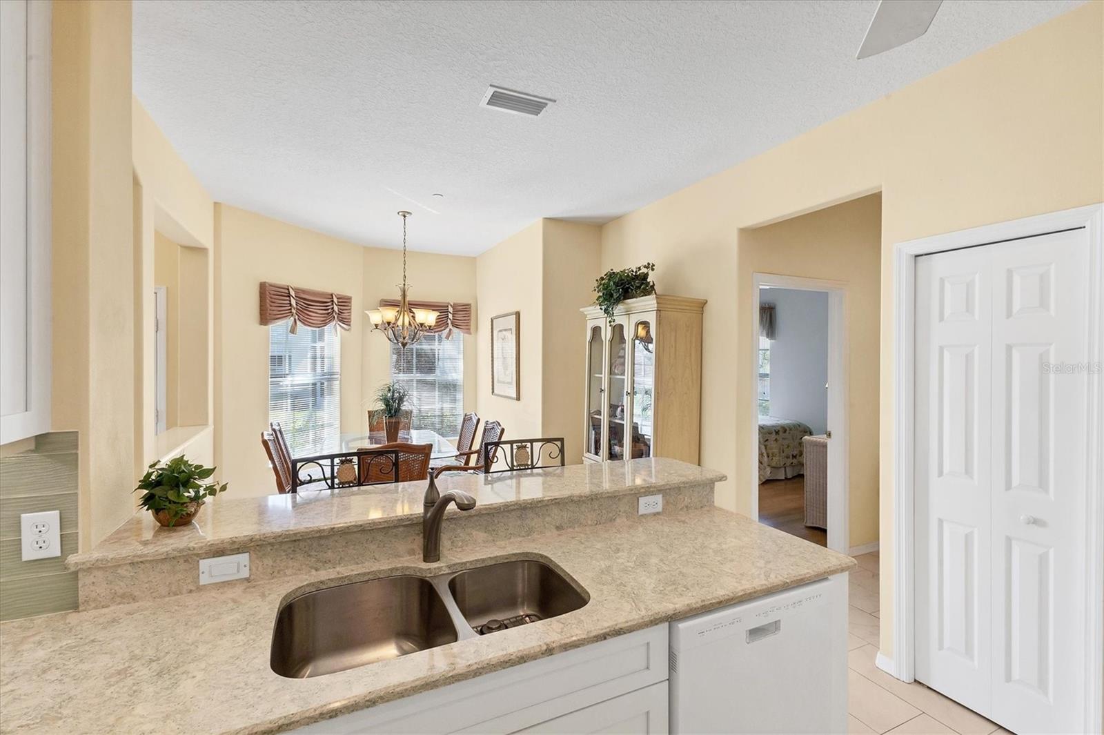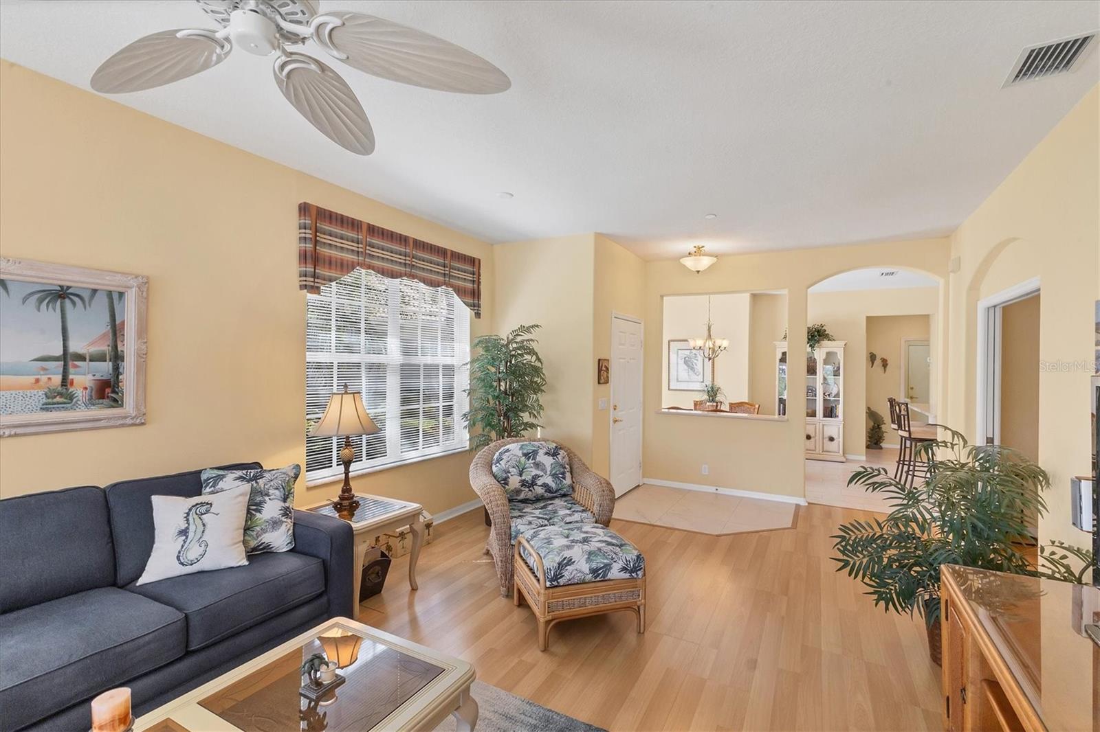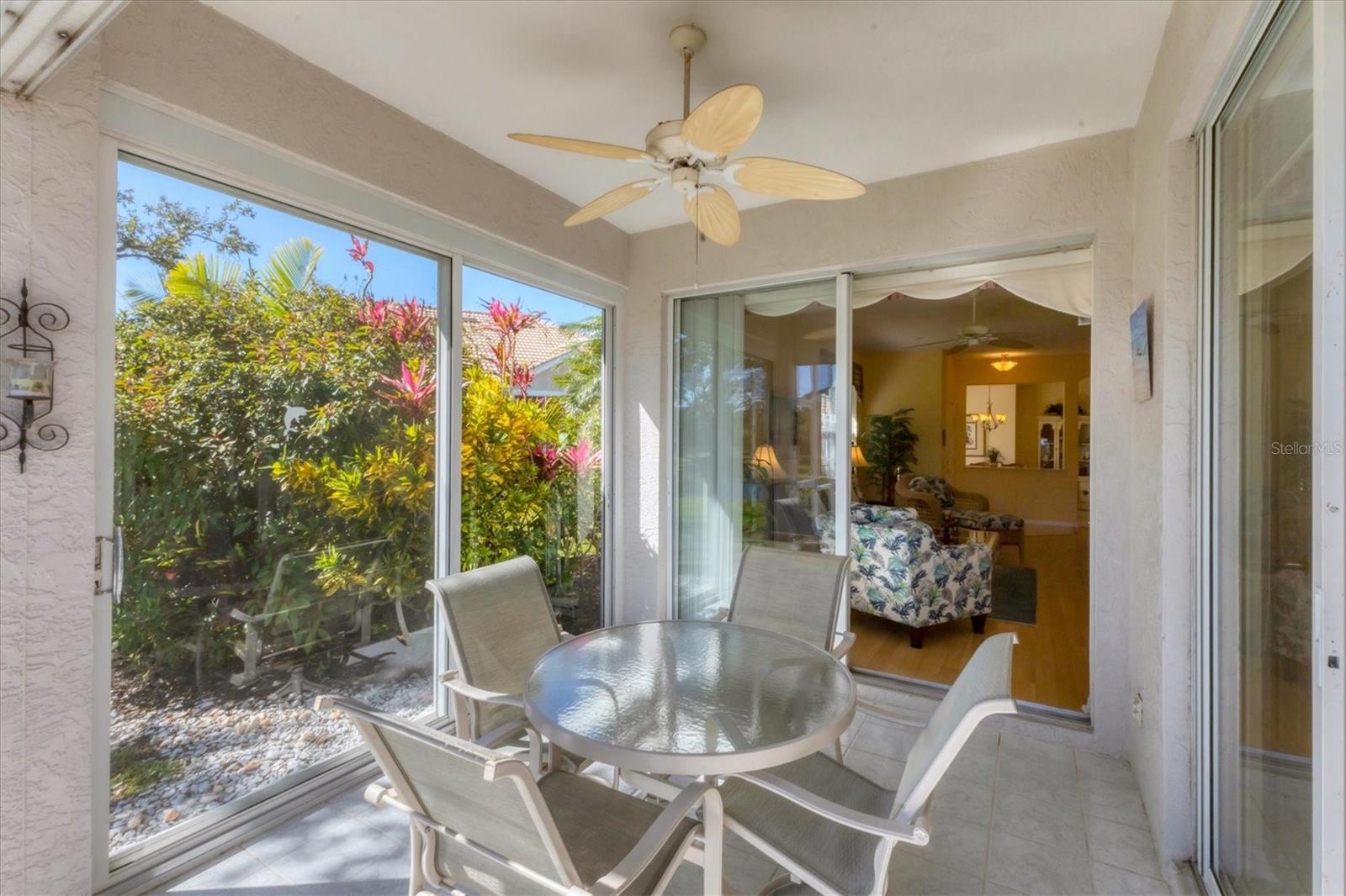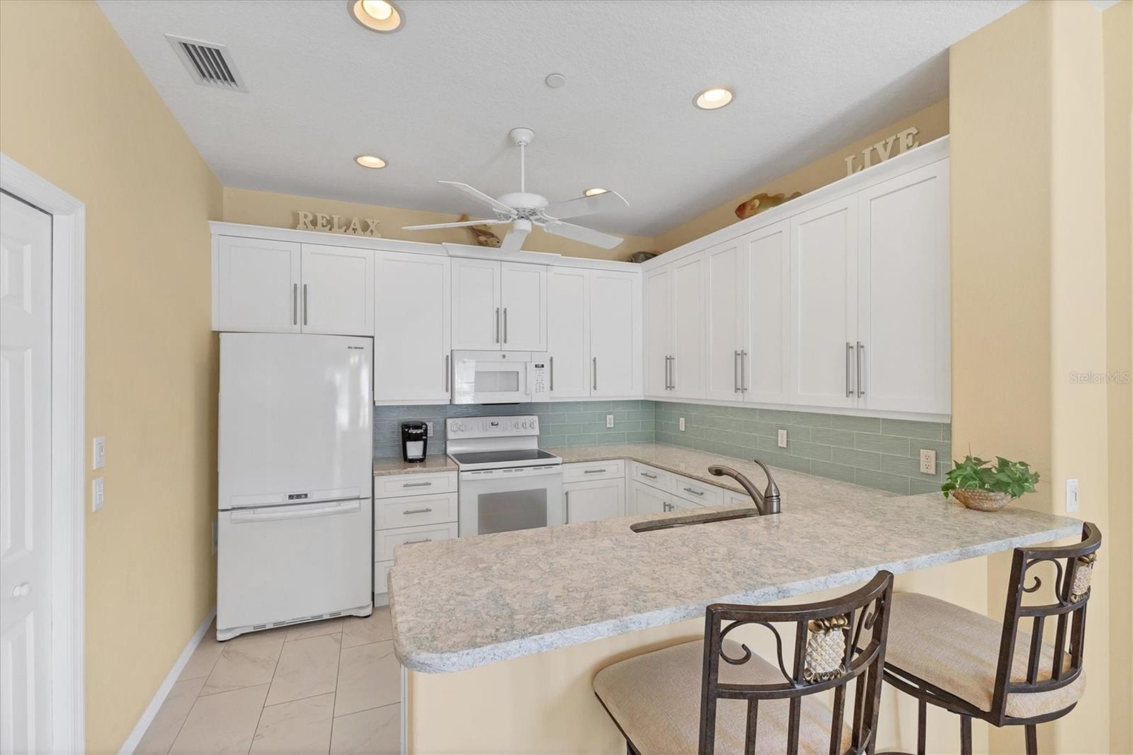 PANORAMIC VIEWS OF LAKE, GOLF COURSE, AND PRESERVE. This must see villa is just what you are looking for!! Magnificent views and Gorgeous Updates, TURNKEY FURNISHED. Popular end unit Birdie Floor plan, 2BD/2BA/Den. Windows are on the South side of villa for a natural bright and cheery space. Open floor plan with your living space leading you out the sliders to the extended lanai with panoramic views. Covered portion of lanai is enclosed by glass doors for protection of lanai from wind and rain and the floor has been tiled. Extended portion screened to catch the breezes and sitting in the sun. Interior has been updated. Laminate floors throughout main living areas with tile flooring in wet areas. Kitchen was updated with new cabinets, granite counters, subway tile backsplash, rectangle tile floors, and new appliances. Spacious Master Bedroom with a view and sliders to lanai. En suite master bath with dual sinks, walk in shower, and walk in closet with updated counter tops. cabinets, and fixtures. Guest bedroom at opposite end of villa for guest privacy. Guest bath updated with same materials as master bath. NEW ROOF. Exterior painted 2025. AC 2024. WH 2017. Property has been replumbed. NO HURRICANE DAMAGE AND NOT IN A FLOOD ZONE!!!. This immaculate villa will go quickly, so MAKE YOUR APPOINTMENT TODAY and start living YOUR Florida Lifestyle. Not in Florida to see it? 3D WALK THROUGH AT: https://my.matterport.com/show/?m=17vB9obPo7U Pelican Pointe is Venice's premier community with resort style amenities- Clubhouse with restaurant/bar/grill, heated pool, fitness center, tennis courts, pickle ball, tons of social activities, social room/library, 27 holes of golf and pro shop. Huge and very active Women's Association with tons of activities to choose from. Golf membership is NOT mandatory. LOW HOA fees include use of all amenities, plus cable, internet, and all landscaping( grass cutting, trimming bushes, hedges, trees, yard cleanup, etc. All centrally located minutes to Venice Beach, Venice Downtown, shopping, theatres, restaurants, highways, airports, and so much more.Come find your Florida Lifestyle today!