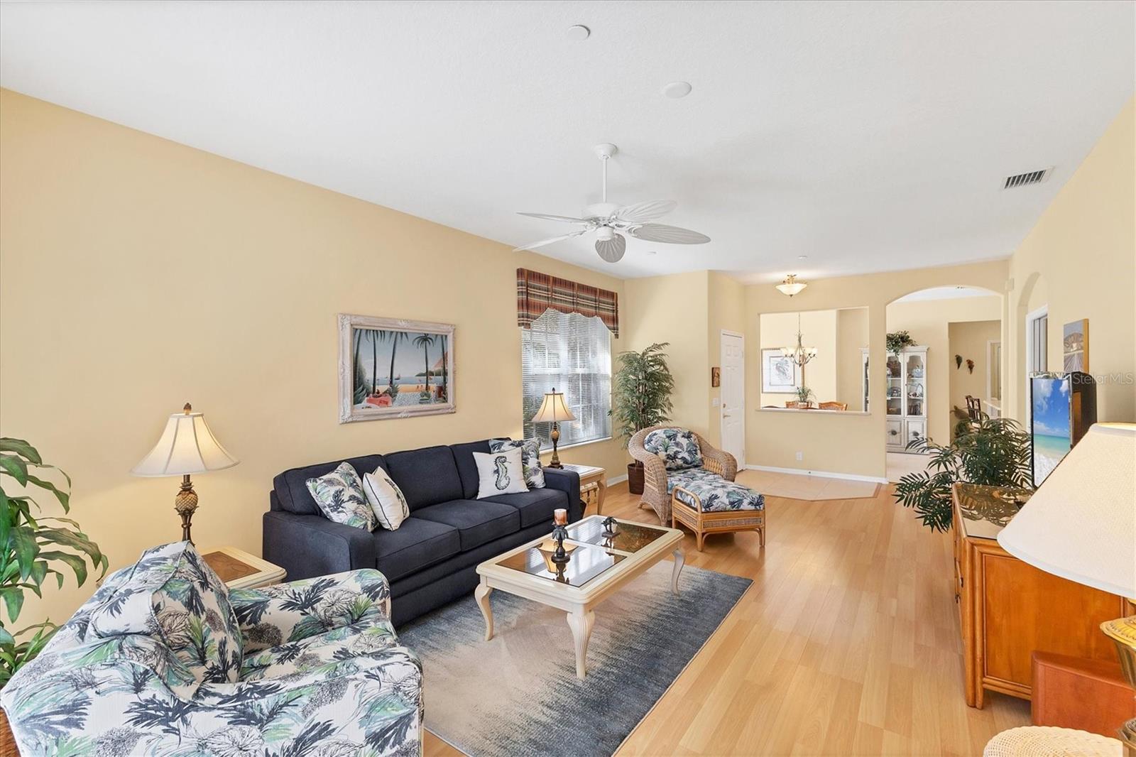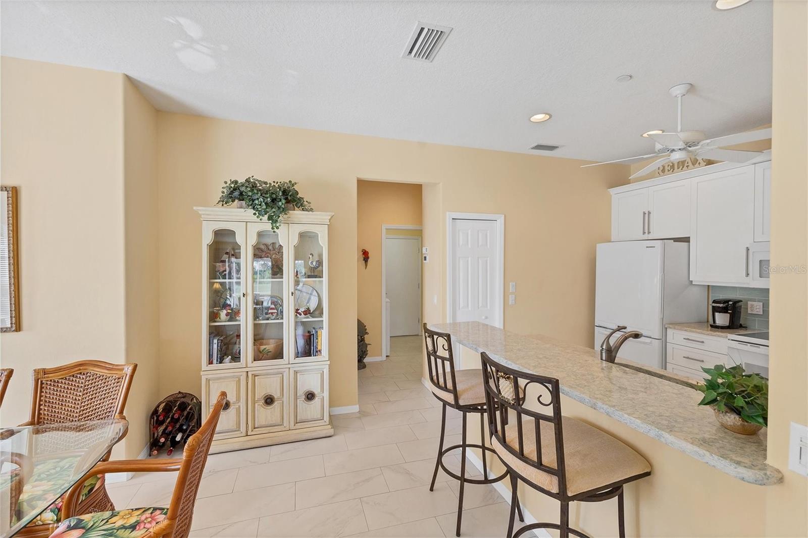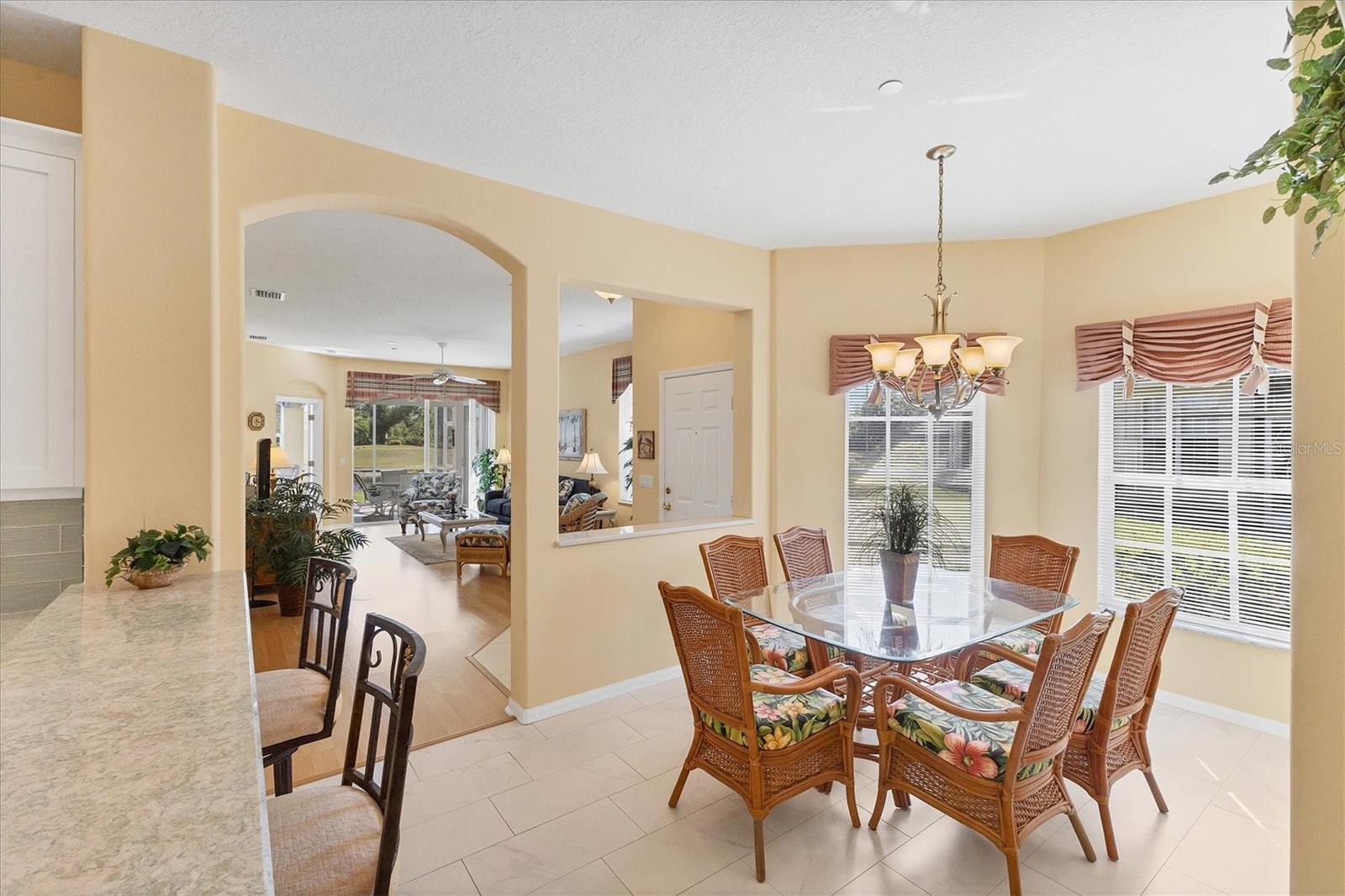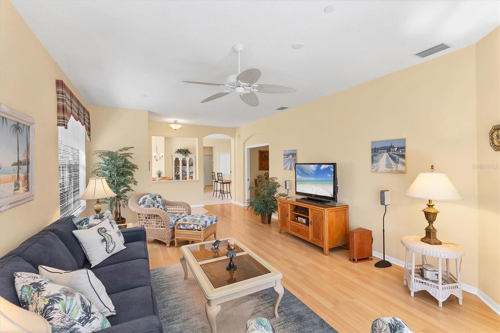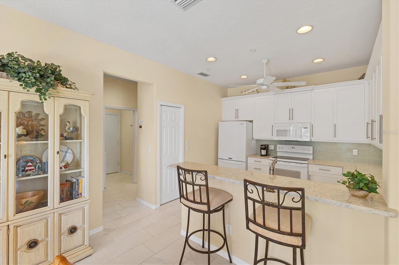 PANORAMIC VIEWS OF LAKE, GOLF COURSE, AND PRESERVE. This must see villa is just what you are looking for!! Magnificent views and Gorgeous Updates, TURNKEY FURNISHED. Popular end unit Birdie Floor plan, 2BD/2BA/Den. Windows are on the South side of villa for a natural bright and cheery space. Open floor plan with your living space leading you out the sliders to the extended lanai with panoramic views. Covered portion of lanai is enclosed by glass doors for protection of lanai from wind and rain and the floor has been tiled. Extended portion screened to catch the breezes and sitting in the sun. Interior has been updated. Laminate floors throughout main living areas with tile flooring in wet areas. Kitchen was updated with new cabinets, granite counters, subway tile backsplash, rectangle tile floors, and new appliances. Spacious Master Bedroom with a view and sliders to lanai. En suite master bath with dual sinks, walk in shower, and walk in closet with updated counter tops. cabinets, and fixtures. Guest bedroom at opposite end of villa for guest privacy. Guest bath updated with same materials as master bath. NEW ROOF. Exterior painted 2025. AC 2024. WH 2017. Property has been replumbed. NO HURRICANE DAMAGE AND NOT IN A FLOOD ZONE!!!. This immaculate villa will go quickly, so MAKE YOUR APPOINTMENT TODAY and start living YOUR Florida Lifestyle. Not in Florida to see it? 3D WALK THROUGH AT: https://my.matterport.com/show/?m=17vB9obPo7U Pelican Pointe is Venice's premier community with resort style amenities- Clubhouse with restaurant/bar/grill, heated pool, fitness center, tennis courts, pickle ball, tons of social activities, social room/library, 27 holes of golf and pro shop. Huge and very active Women's Association with tons of activities to choose from. Golf membership is NOT mandatory. LOW HOA fees include use of all amenities, plus cable, internet, and all landscaping( grass cutting, trimming bushes, hedges, trees, yard cleanup, etc. All centrally located minutes to Venice Beach, Venice Downtown, shopping, theatres, restaurants, highways, airports, and so much more.Come find your Florida Lifestyle today!