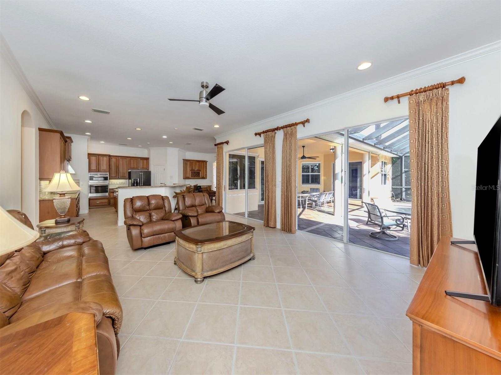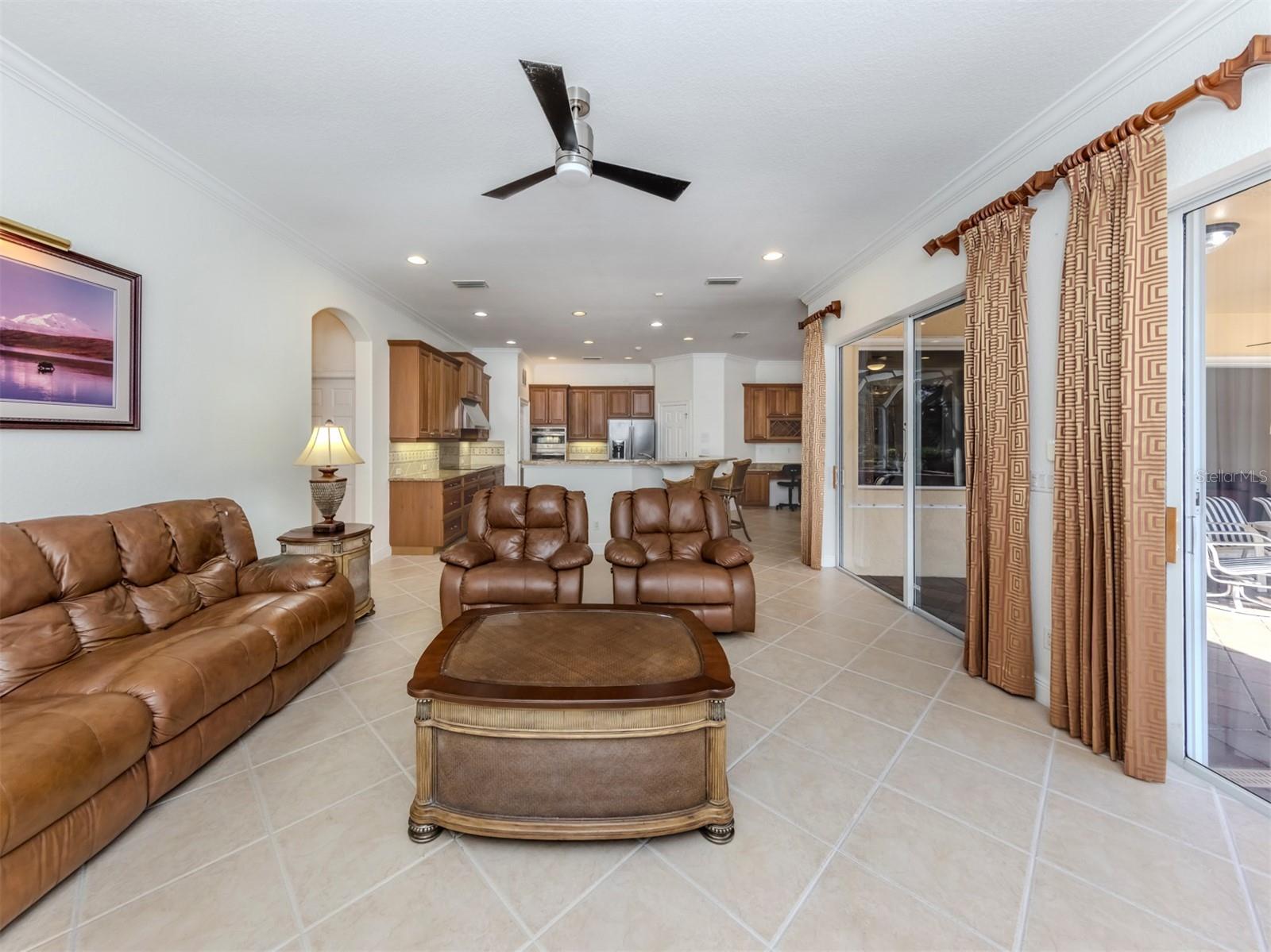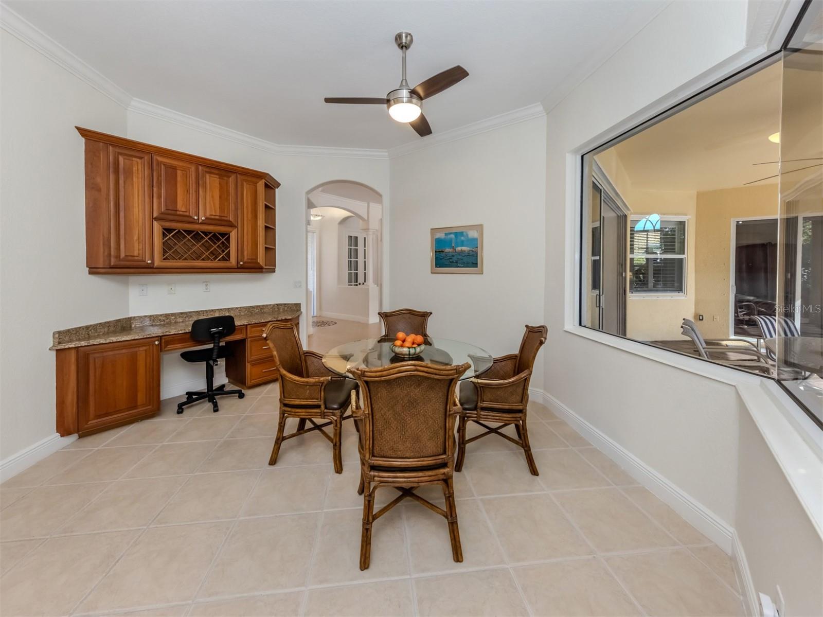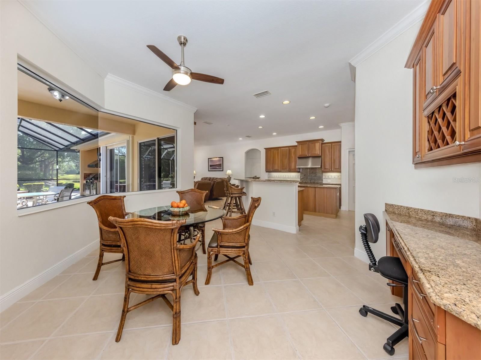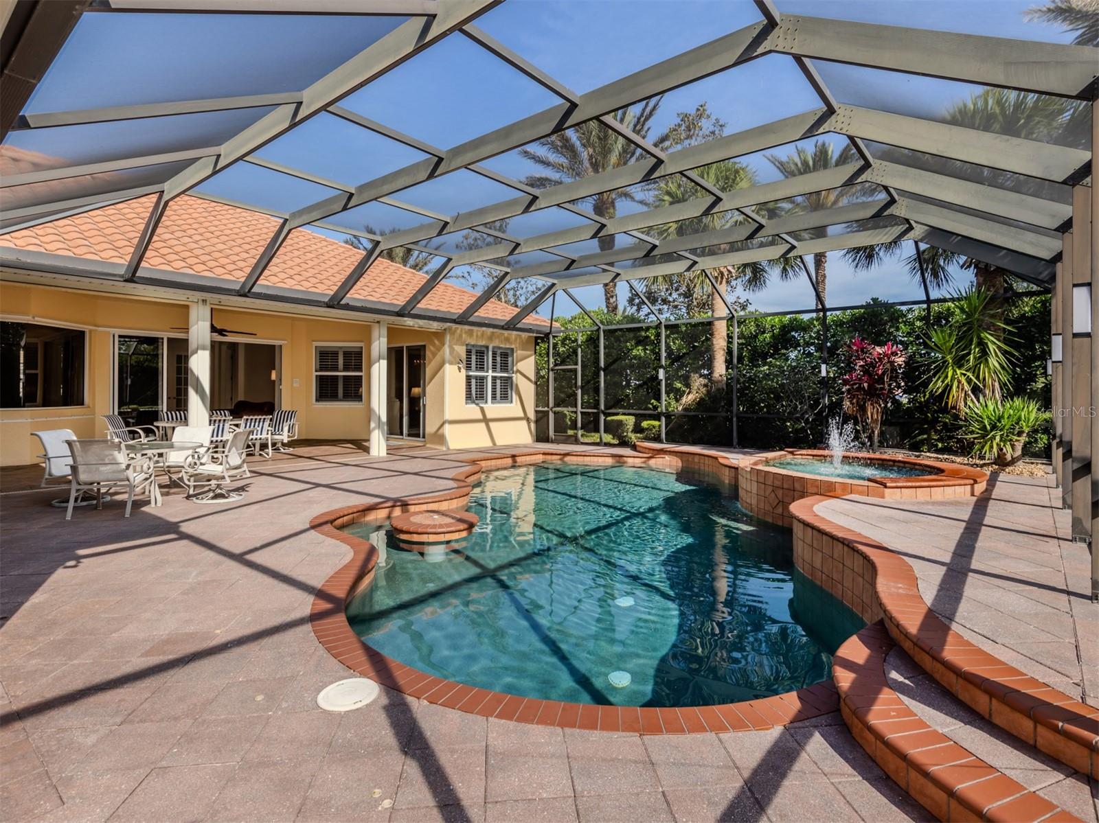Leave the cares and stresses of the world behind as you step inside your personal sanctuary. Enter and let your eyes feast on the tropical haven that is your lanai. Wander past the living room and dining room to feel the warm embrace of the heart of the home. Whether it be entertaining or family life, this house is ideal for you. The kitchen is large with newer appliances, large breakfast room with views of pool. Three bedrooms and two baths on one side of home accommodate family and guests. There is a first-floor study next to the large primary bedroom which is a peaceful retreat from the cares of the world. It contains a beautiful bath, walk-in closets, and an intimate sitting room for reading or contemplation. Upstairs you will find an amazing room overlooking an equally amazing view. The room is decked out with built-in desk shelves, drawers, to be an incredible office for remote work, writing a best-selling novel, working out or converting to an artist studio, game room with pool table, or grandchildren's play room/bunk room. The lanai features a large pool with spa and high-top table for socializing, an outdoor shower and beautiful outdoor kitchen. The whole area is a private oasis with mature trees for privacy and a long lake view. All this in the popular Venetian Golf & River Club where you can take advantage of amenities right out your door. Walk to the restaurant and enjoy Chef Bryan's yummy offerings which include special dinners, prime rib nights, pasta nights, burger nights, and pizza nights, and more. Walk to tennis, pickleball, lap pool, water aerobics, tiki bar, gym, free exercise classes, many games like bridge, mahjong, hand and foot. You can even hop on to the exotic boardwalk through the jungle down to the Myakka River and the nature preserve from your backyard. It is all at your fingertips. Not to mention the proximity of this great subdivision to the highway, hospital, fire department, public beaches and the wonderful quaint town of Venice with its many restaurants, shops and theater. This is more than a house, it is a new way of life. The way life should be!