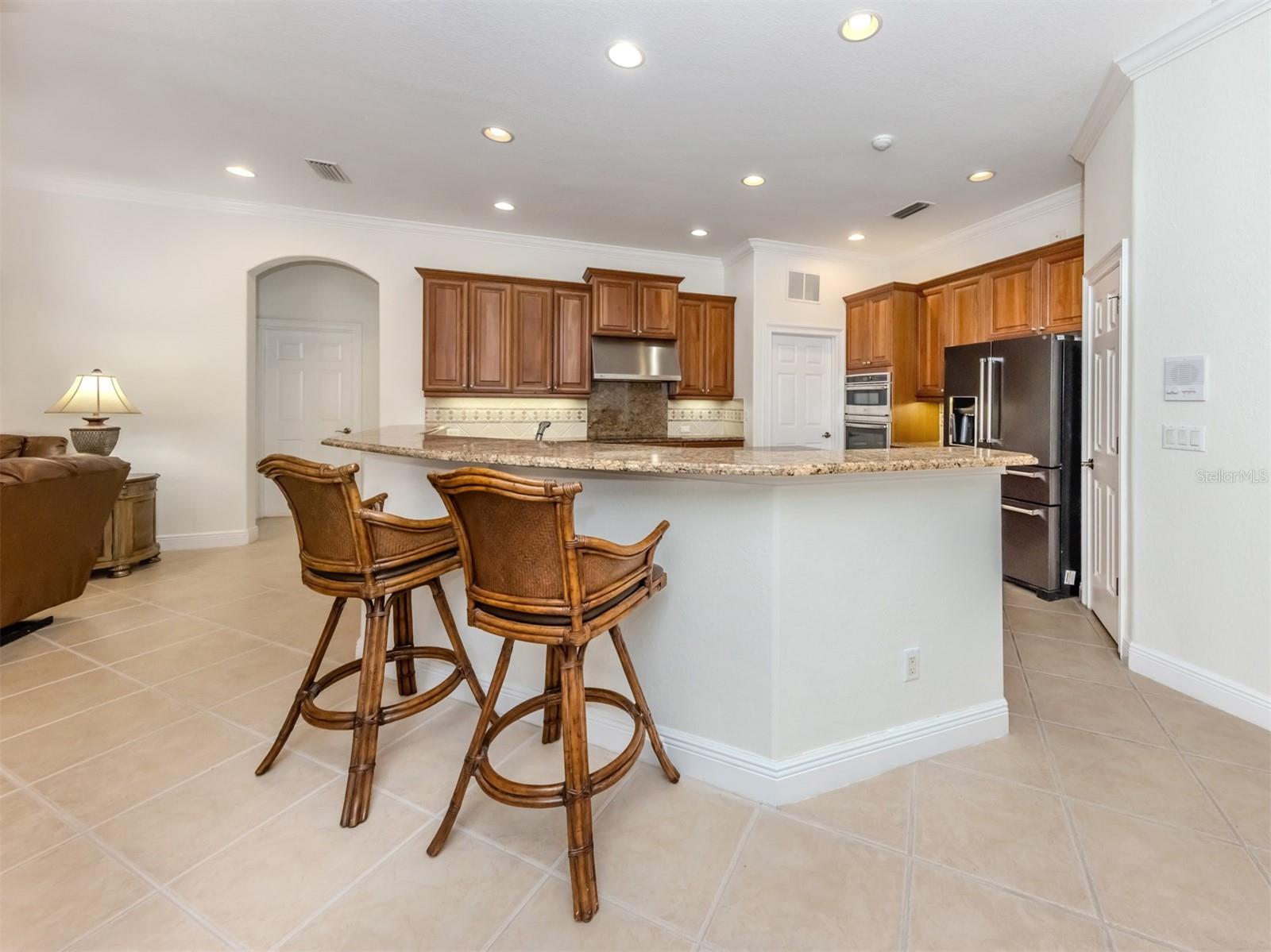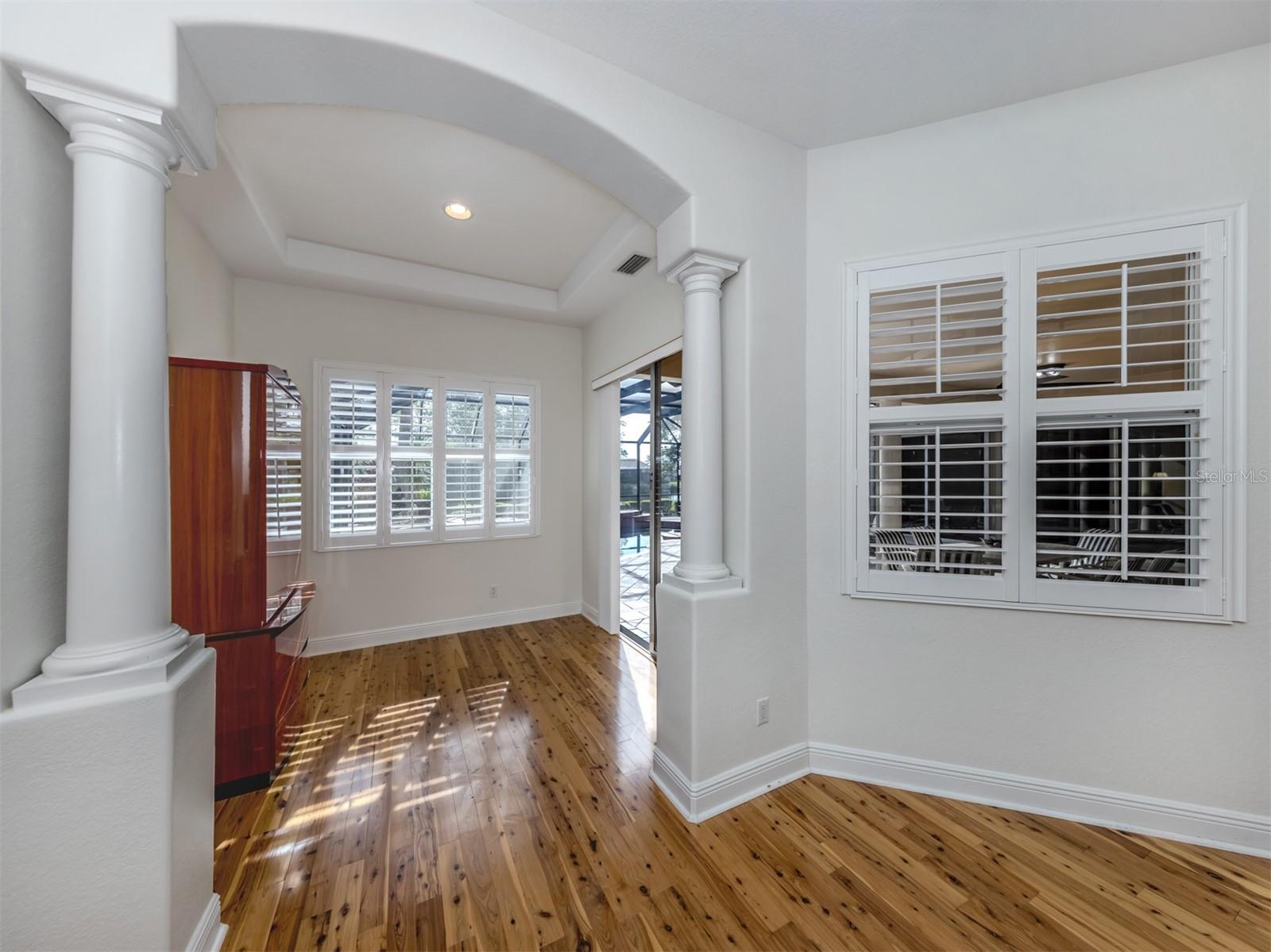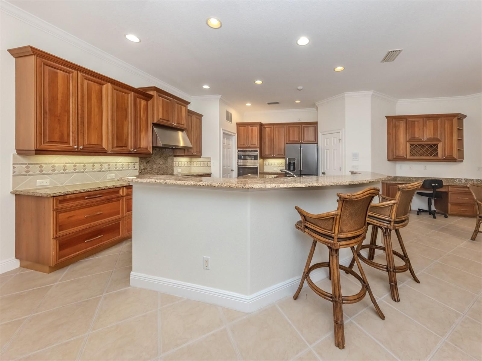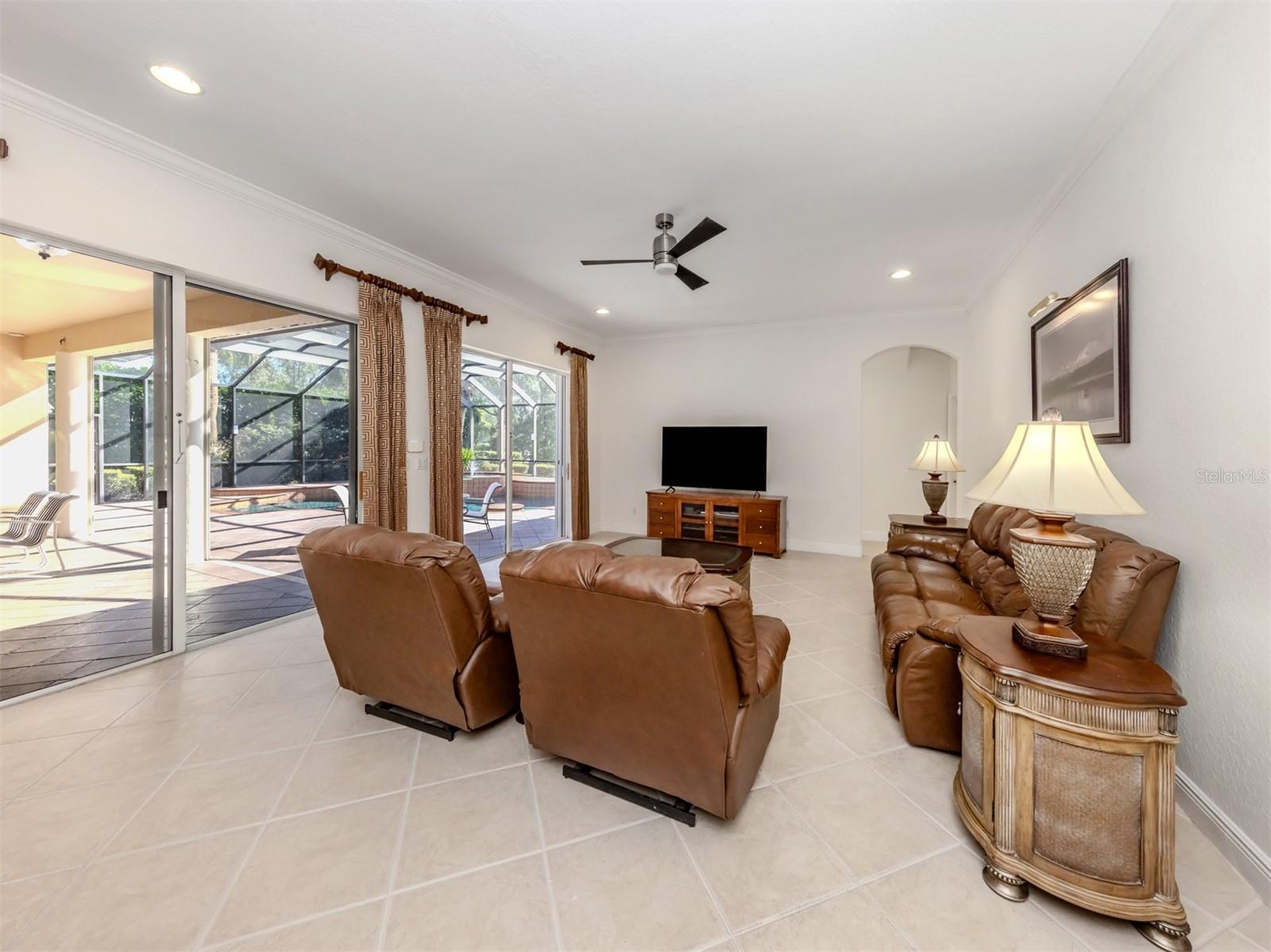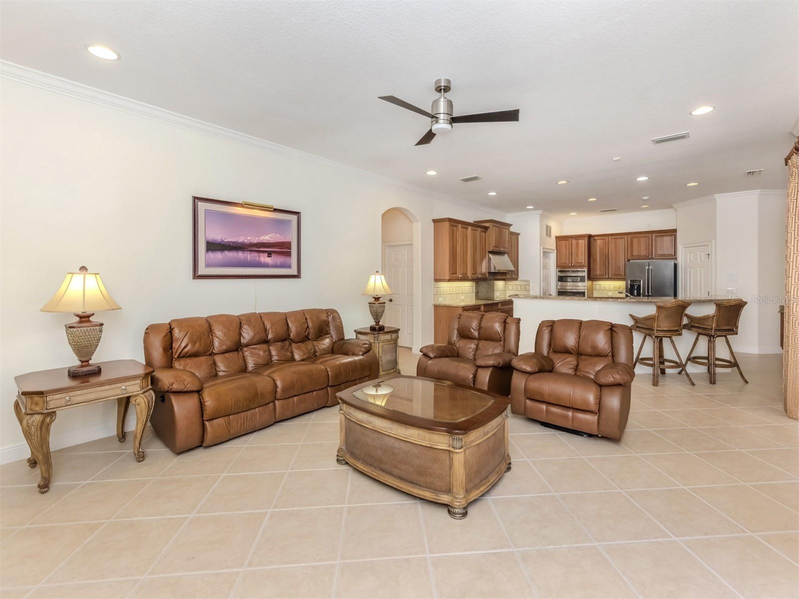 Leave the cares and stresses of the world behind as you step inside your personal sanctuary. Enter and let your eyes feast on the tropical haven that is your lanai. Wander past the living room and dining room to feel the warm embrace of the heart of the home. Whether it be entertaining or family life, this house is ideal for you. The kitchen is large with newer appliances, large breakfast room with views of pool. Three bedrooms and two baths on one side of home accommodate family and guests. There is a first-floor study next to the large primary bedroom which is a peaceful retreat from the cares of the world. It contains a beautiful bath, walk-in closets, and an intimate sitting room for reading or contemplation. Upstairs you will find an amazing room overlooking an equally amazing view. The room is decked out with built-in desk shelves, drawers, to be an incredible office for remote work, writing a best-selling novel, working out or converting to an artist studio, game room with pool table, or grandchildren's play room/bunk room. The lanai features a large pool with spa and high-top table for socializing, an outdoor shower and beautiful outdoor kitchen. The whole area is a private oasis with mature trees for privacy and a long lake view. All this in the popular Venetian Golf & River Club where you can take advantage of amenities right out your door. Walk to the restaurant and enjoy Chef Bryan's yummy offerings which include special dinners, prime rib nights, pasta nights, burger nights, and pizza nights, and more. Walk to tennis, pickleball, lap pool, water aerobics, tiki bar, gym, free exercise classes, many games like bridge, mahjong, hand and foot. You can even hop on to the exotic boardwalk through the jungle down to the Myakka River and the nature preserve from your backyard. It is all at your fingertips. Not to mention the proximity of this great subdivision to the highway, hospital, fire department, public beaches and the wonderful quaint town of Venice with its many restaurants, shops and theater. This is more than a house, it is a new way of life. The way life should be!