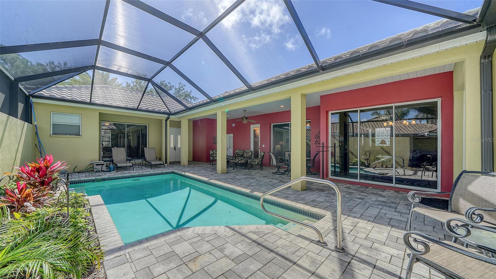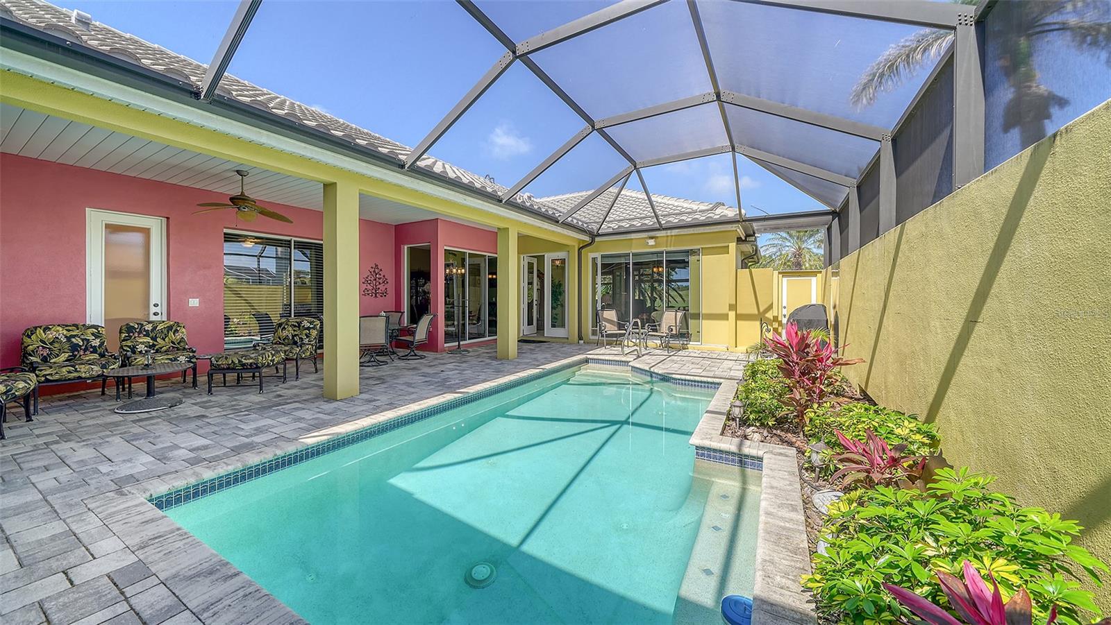 Don't miss this fantastic opportunity in The Venice Golf and Country Club! This spacious 3 bedroom, 3 bath courtyard home has 2219 square feet of living space, a heated pool and golf cart garage. As a bonus for a golfer, it comes with the OPPORTUNITY TO JOIN IMMEDIATELY AS A GOLF MEMBER and avoid the waitlist. Enter from the courtyard into the spacious living and dining room. The large kitchen with granite countertops, breakfast bar, pantry and center island is the heart of the home. The sunny dinette and adjacent lanai have a fabulous view of the 11th green. The private master bedroom has a large walk-in closet and en-suite bath with dual vanities, and walk-in shower. The 2nd bedroom has sliding doors to the courtyard and a private bath which could also be used as a Den. The private casita is the 3rd bedroom (or Den) and bath is perfect when entertaing out-of-town guests. There is a very large laundry room providing additional storage space. Among the many improvements are roof replacement (2017), solar panels added to heat the pool (2017), pool cage (2020), and the A/C was replaced in 2020. VGCC is a welcoming community of 587 homes. Enjoy both casual and formal dining in the newly renovated Clubhouse. Meet and make new friends in the bar with a large outdoor terrace, or on cooler evenings enjoy a beverage by the fire pit. There are a wide variety of activities in addition to golf including tennis, bocce, bridge, mah-jongg, the "U" with cultural presentations, wine club, special club events, and more. Take a class or work out in the Wellness Center with state-of-the-art equipment or take one of a variety of fitness classes. VGCC, with its 26 ponds and 13 natural preserves, is an Audubon Geo-Certified community. This is immediately apparent when you enter through the main gate with its canopy of oak trees and drive down the tree lined and curved streets. VGCC is just 5 miles from the quaint town of Venice and just 20 miles south of Sarasota. MEMBERSHIP IS MANDATORY. Choose between Golf Membership or Club Membership.