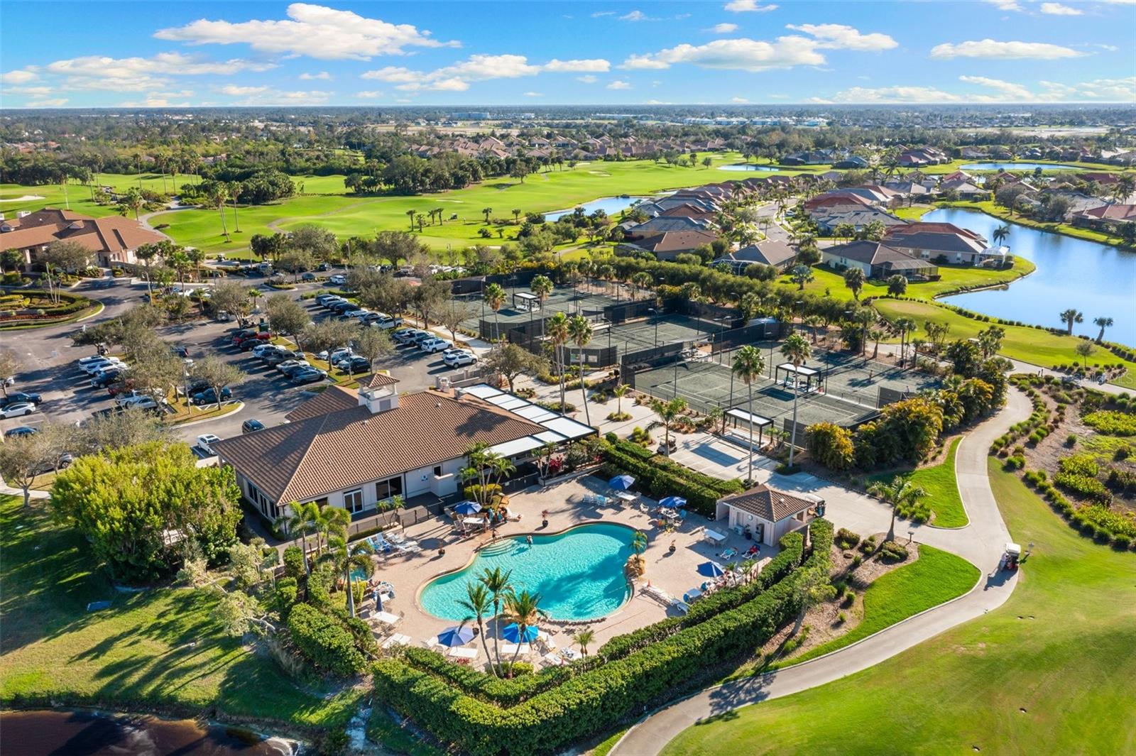 Panoramic Water & Golf Views await you in this wonderful 2,011 SQFT 3 Bedroom, Pool home nestled within the amenity rich community of HERON CREEK GOLF & CLUB.*No CDD FEES * LOW HOA Dues*Flood Zone X **(flood insurance not required by lenders) Premium homesite with super location just a quick cart ride or walk to the Clubhouse and easy access to the main gate. With a NEW BARREL TILE ROOF (2024), Arched Window & Open Portico this home embodies a quintessential Spanish Mediterranean design. No Cookie Cutter home here In fact, she has a unique style all her own. Colorful, tropical landscaping and native palms adorn the front yard and line the arched entry walkway. There is a delightful open porch at the front of the house where you can enjoy a cup of coffee "alfresco" and watch the sun rise.This ONE-OWNER Nohl Crest 3 bedroom 2 bath residence was designed with both comfort and privacy in mind. The rarely available Augusta model boasts over 2000 square feet under air and is well suited for easy living and entertaining alike. Upon entering through double glass doors, you will be captivated by the sweeping water & golf views. The thoughtful design of this home maximizes those views with cascading glass doors from all the living areas, and Master bedroom and this leaves the entire home awash in natural light. The Augusta floor plan features a foyer entry, a casual living and dining area ideal for entertaining family & friends, At the heart of the home is the open concept kitchen & family room, seamlessly connecting indoor & outdoor living. The kitchen has a breakfast bar, granite countertops w/ mosaic tile backsplash, closet pantry, maple cabinetry, stainless appliances , NATURAL GAS RANGE & a sun-filled dinette. The split floor plan is perfect for those who value their personal space a & offers privacy for both owners and guests. There are 2 guest bedrooms & a shared bath at the front of the home. Bed 3 has a large arched window with amazing light which makes a perfect home office or perhaps your own Jewelry Design/Art studio?? (as seen here). The main bedroom boasts lovely views and has sliding glass door to access the pool & lanai, an en-suite bath w/a garden tub, and 2 walk-in closets. The home envelopes the fabulous pool/ lanai which is like your own personal oasis. The CLEAR-VIEW cage provides an unobstructed view of the long lake and lush fairway of #1 of the Marsh course. In the evening this is the perfect place to wind down, watch mother nature paint the sky and marvel at the pageantry of all the native birds and wildlife. This well loved home has a soothing relaxed energy about her. Life is short so don't let the sun set on your dreams of owning your piece of paradise. This home can be offered furnished if you would like a move in ready opportunity. Heron Creek Golf & CC offers a spectacular clubhouse, an amazing array of social activities, 27-hole Authur Hills championship golf course & practice facility, Tennis, fitness center & resort style pool. Required membership starting as low as 268/month. HOA fees INC: All ground maintenance, irrigation, Cable, High Speed Internet & guarded gate entry! Hurry "Nothing Compares" the only thing this home is missing is you! Heron Creek is centrally located w/ easy access to I-75, only 3 miles to the new 450 Million state of the art SMH Hospital coming to Sumter and 1-75, COSTCO, trendy Wellen Park, the Braves stadium , gulf beaches & local airports .