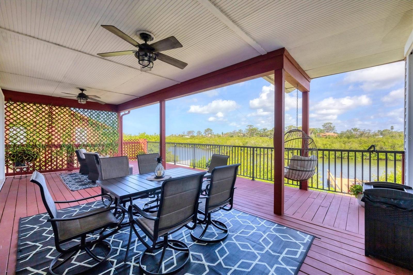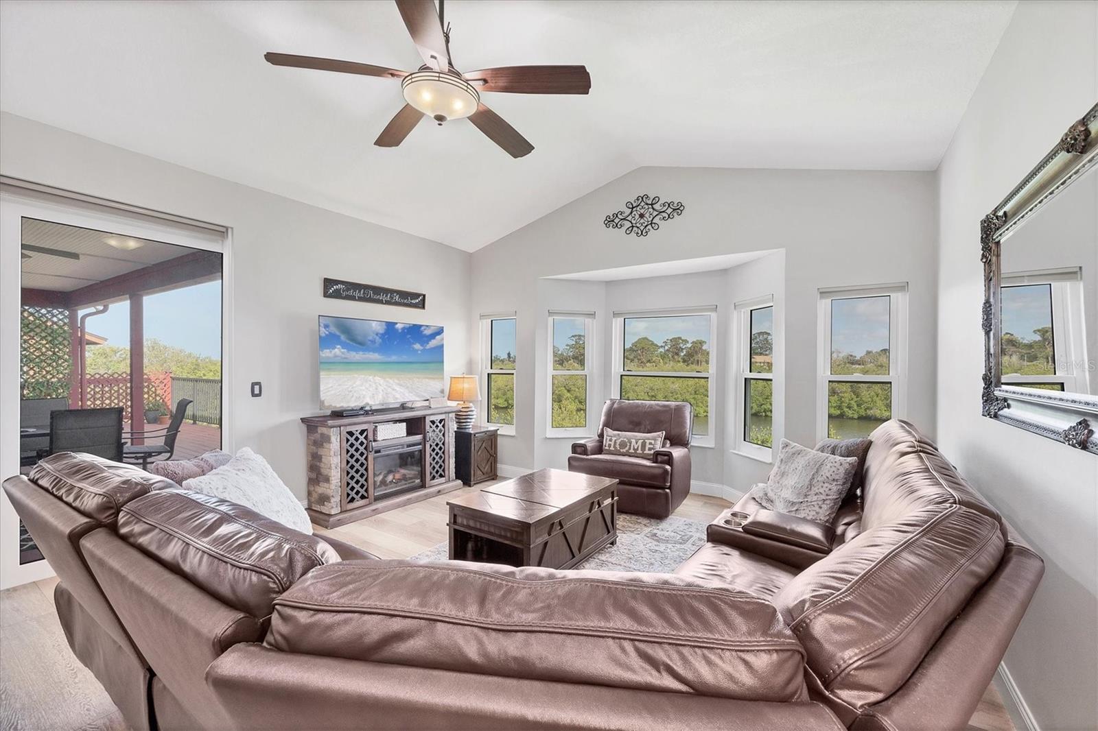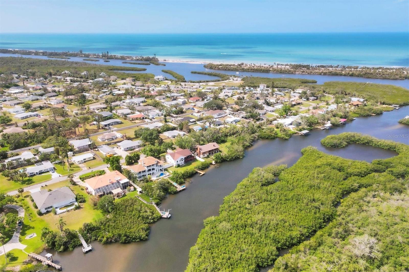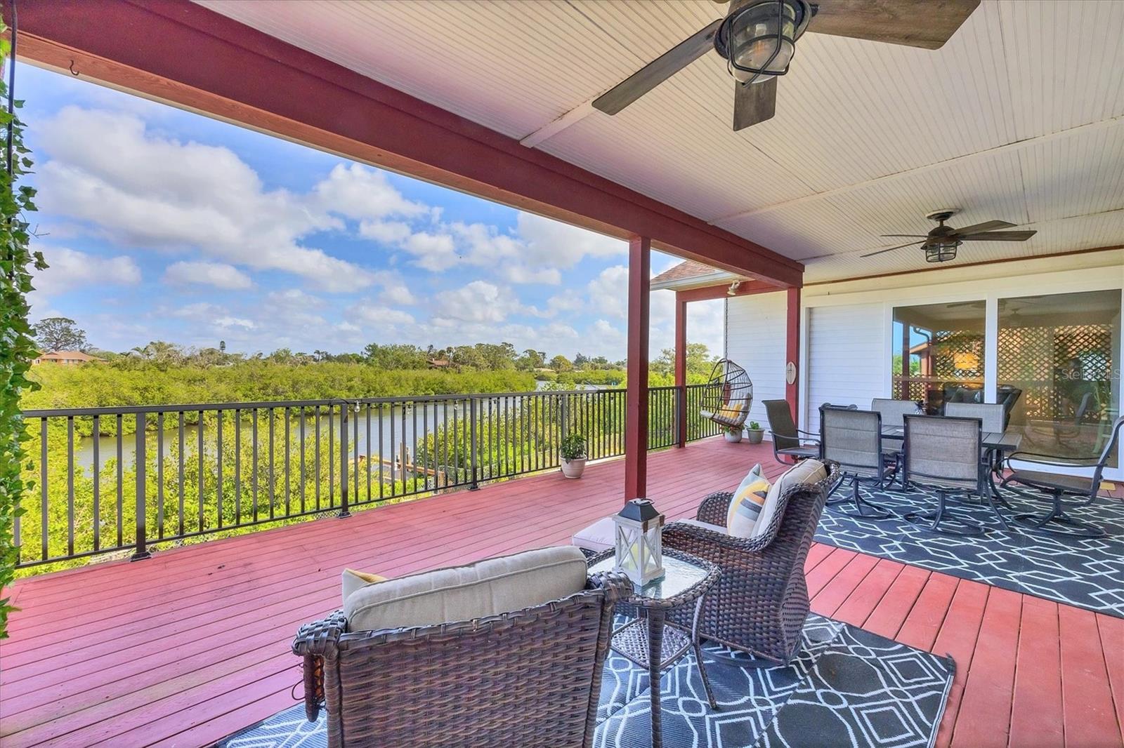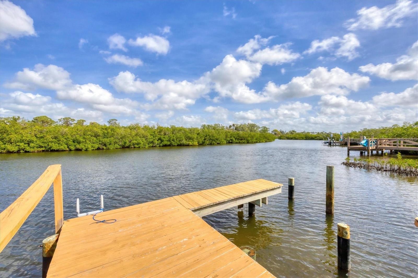 Welcome to this beautifully updated waterfront home that boasts some of the best views on Alligator Creek where you can enjoy breathtaking sunrises and spectacular sunsets from your enormous elevated balcony porch! Step inside to the oversized eat-in-kitchen/family room combo that also offers panoramic water views. This property has been appointed with many designer features including solid wood cabinetry, stone surface countertops, vaulted ceilings, freshly painted interior, custom closets and more. The primary bedroom and bath is a sanctuary with picturesque views as well as an updated, enormous bathroom with dual closets. On the opposite side of the home, two spacious secondary bedrooms with custom built in closets share another modern full bathroom. The ground level offers incredible storage as well as many possibilities for future use as it has been updated with Enduraflood waterproof drywall. This home is completely move in ready and to put your mind at ease, has been improved with the addition of ALL IMPACT windows and glass sliders. Additionally, the A/C 5 ton gas furnace, washing machine, refrigerator, 8 foot composite privacy fence and gorgeous woodlook aluminum impact garage doors have been added. The location of this property cannot be beat! Kayak or canoe from this home to the Intercoastal Waterway straight to the Gulf of Mexico. Living in this thriving neighborhood also allows you to join the South Venice Civic Association where you will enjoy the use the boat ramp and ferry services to a stunning private beach. Additionally, the property is located just a few short miles from historic downtown Venice where residents can explore a vibrant array of shops, restaurants, parks, and beaches. The central location of this home ensures easy access to I75, hospitals, shopping centers, emergency services, downtown WELLEN PARK and the CoolToday stadium, home of the Braves' spring training. A short drive takes you to the South Venice Beach Ferry, Lemon Bay Preserve, Venice Fishing Pier, Caspersen Beach, Manasota Key Beach and Blind Pass Beach. Schedule your private tour today and envision the lifestyle that awaits you in this meticulously crafted residence.