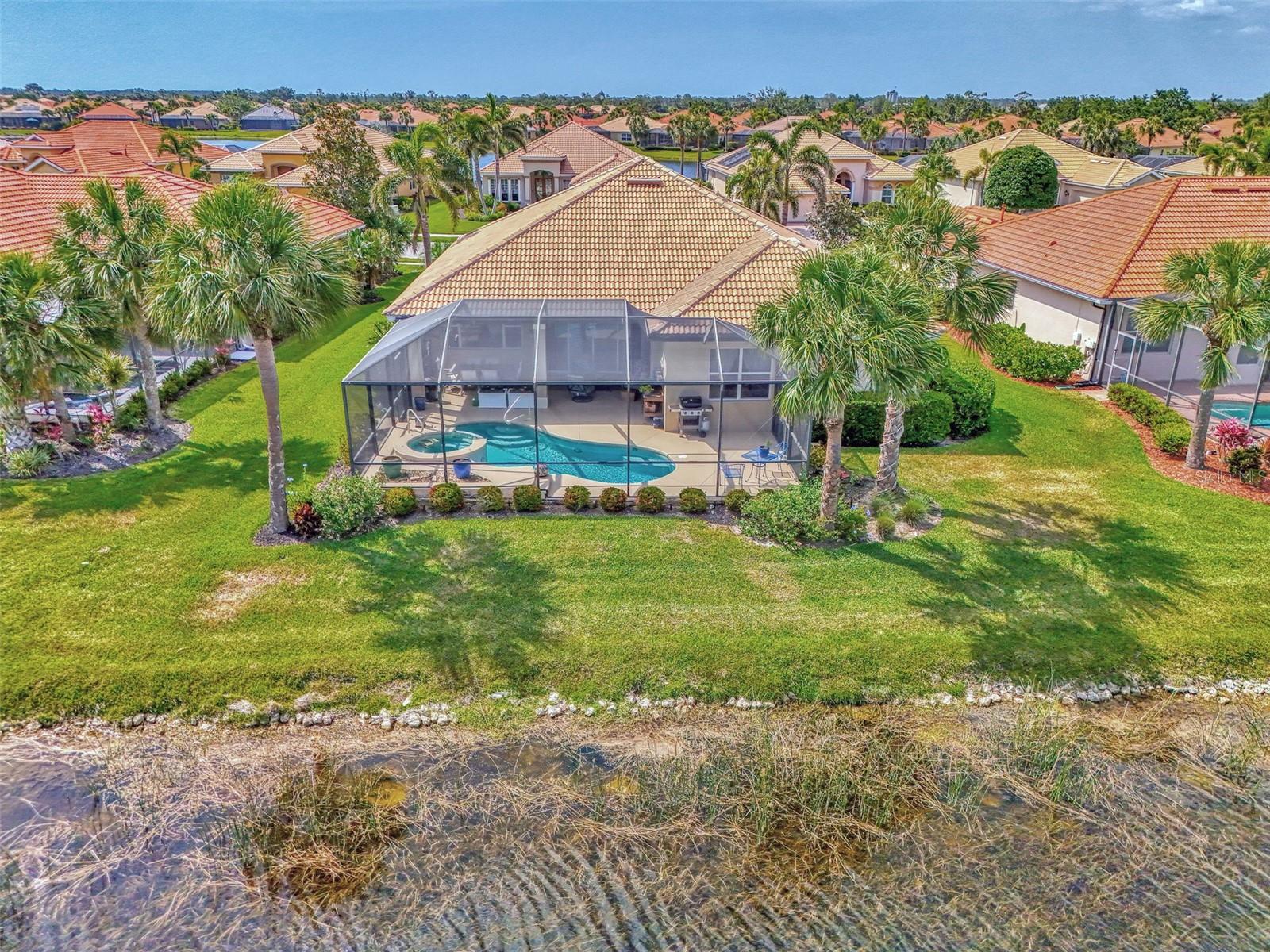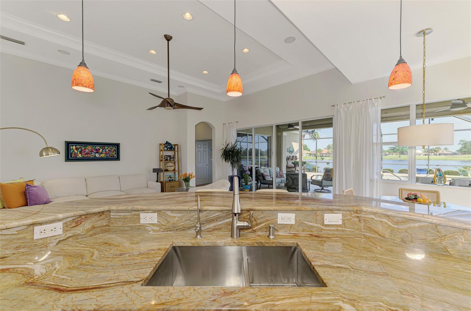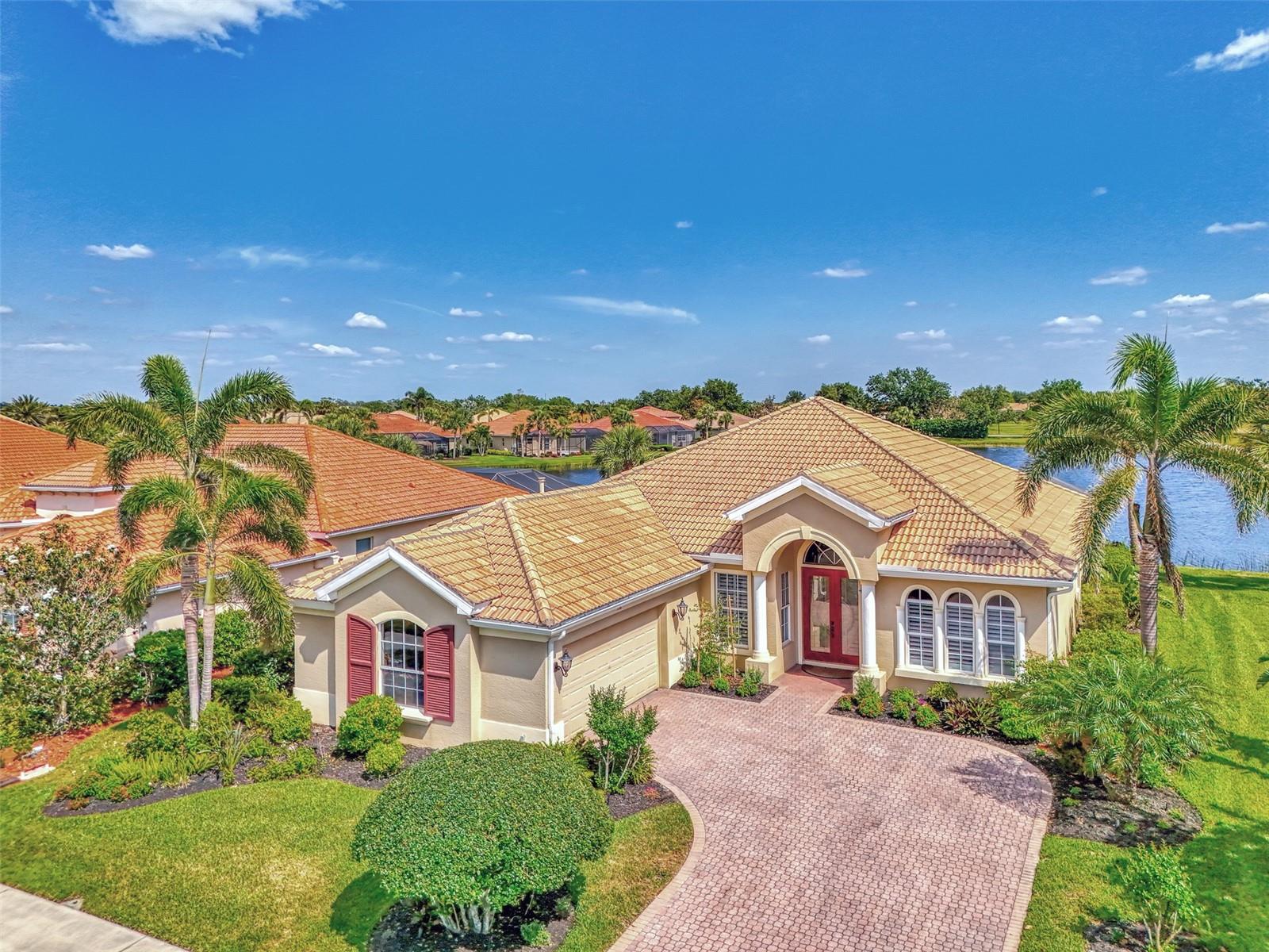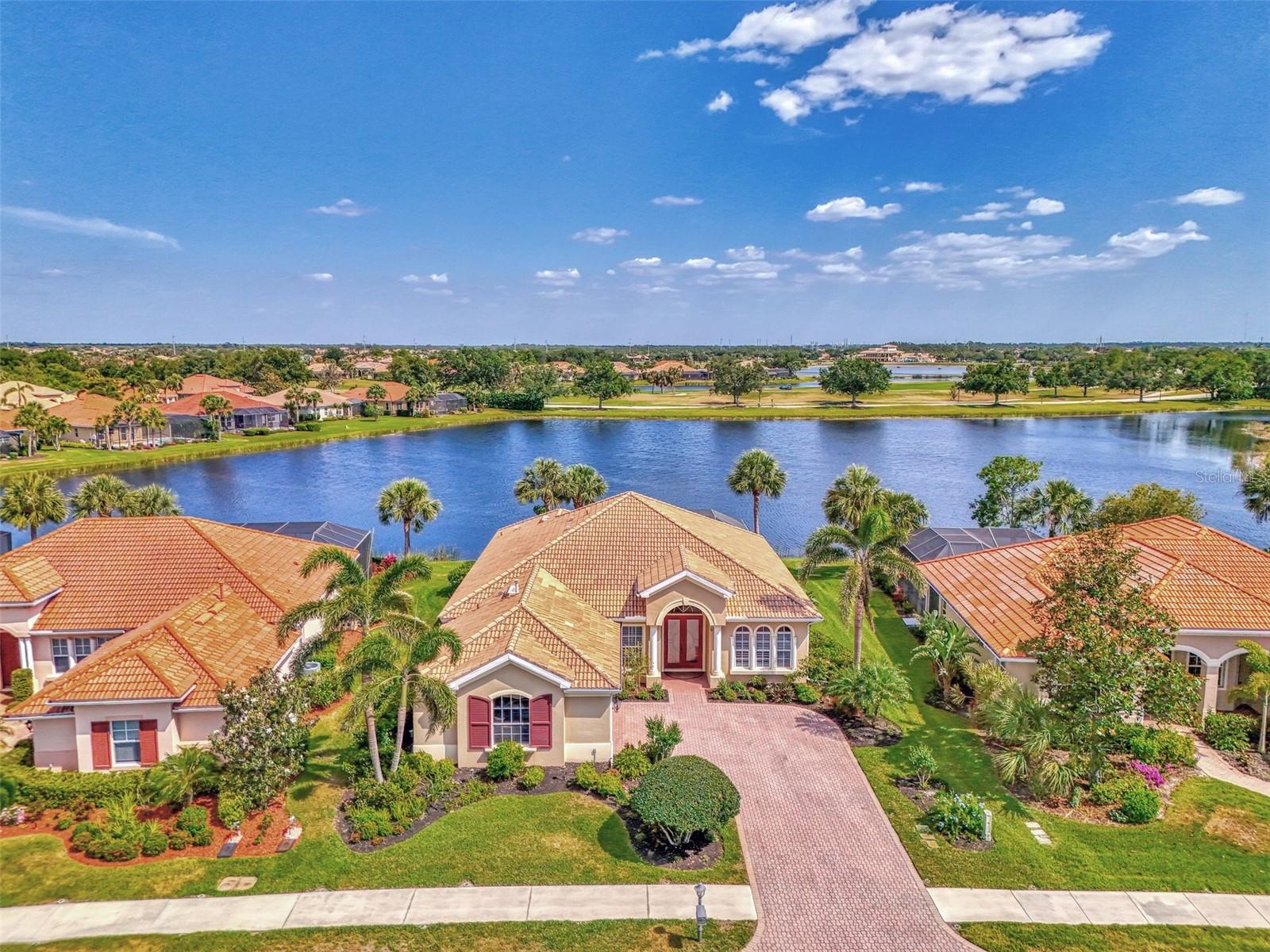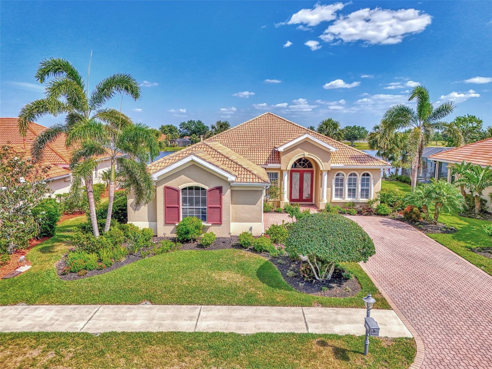 INCREDIABLE NEW PRICE for this lovely home with beautiful panoramic waterviews at the sought after Venentian Golf and River Club where golf is NOT mandatory. This luxurious quality built home by WCI is the Vecellio Model which has a timeless floor plan with high ceilings, crown moldings and IMPACT windows with lots of natural light bringing the outside in. As soon as you walk through the NEWER HURRICANE glass front doors you are captured by waterveiws. The Great Room and Dinette area are opened to the spacious island kitchen with NEWER granite countertops, sink, faucet and pendant lighting making it ideal for entertaining. There is a formal dining room and Study with french doors. The desirable split floor plan creates ultimate privacy for the primary bedroom and the additional guest bedrooms. The primary bedroom has sliders to the lanai, two walk--in closets, separate vanities, tub and shower. There is a full bath and half bath for guests. This model offers a spacious lanai with a sitting area and also a dining area. The orientation of the lanai is Southeast which is perfect keeping the lanai shaded with those gulf breezes while the sun is on the pool. There is a NEWER pump and pool bars There is a NEWER remote Kevlar Hurricane Screen making it seamless to operate when you desire. There are many other newer improvements which include landscaping, outdoor lighting, some indoor lighting, plantation shutters and hot water heater and more. The Venetian Golf and River Club (golf not mandatory) offers a Champion Golf course which is an optional membership, Resort Style Pool, Lap Pool, Fitness Center, Tennis Courts, Tiki Bar and Fine Dining and Social Events. Minutes to Nokomis Beach and Downtown Venice, I75 and Sarasota Memorial. This Special Gated Community has so much for the residences and is the Perfect place to call home or for a winter get away!
