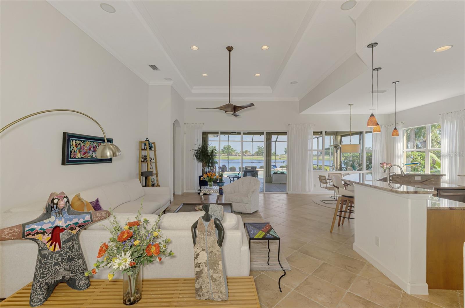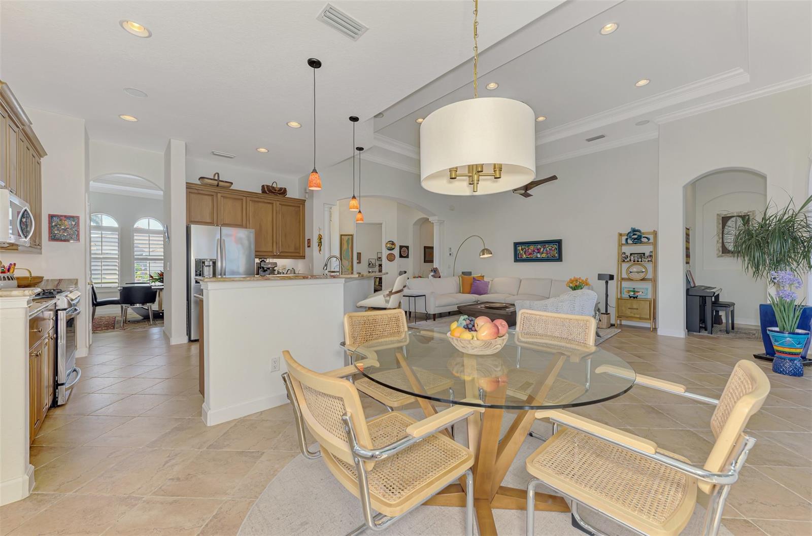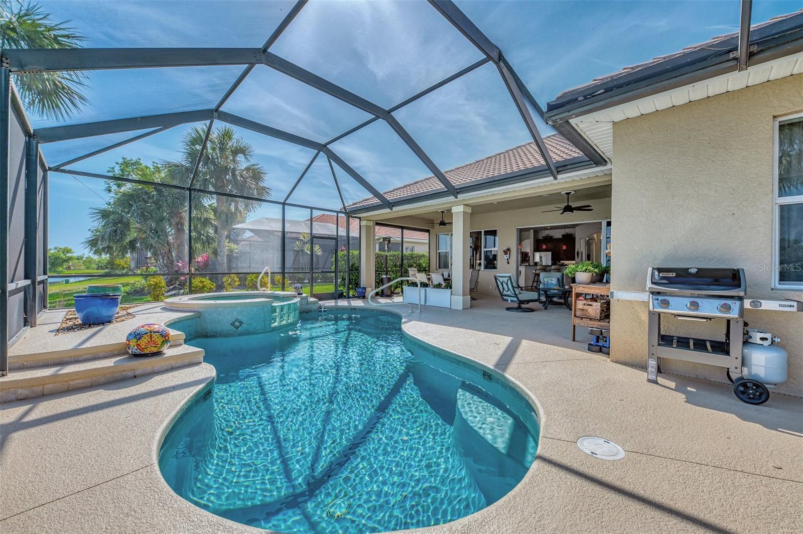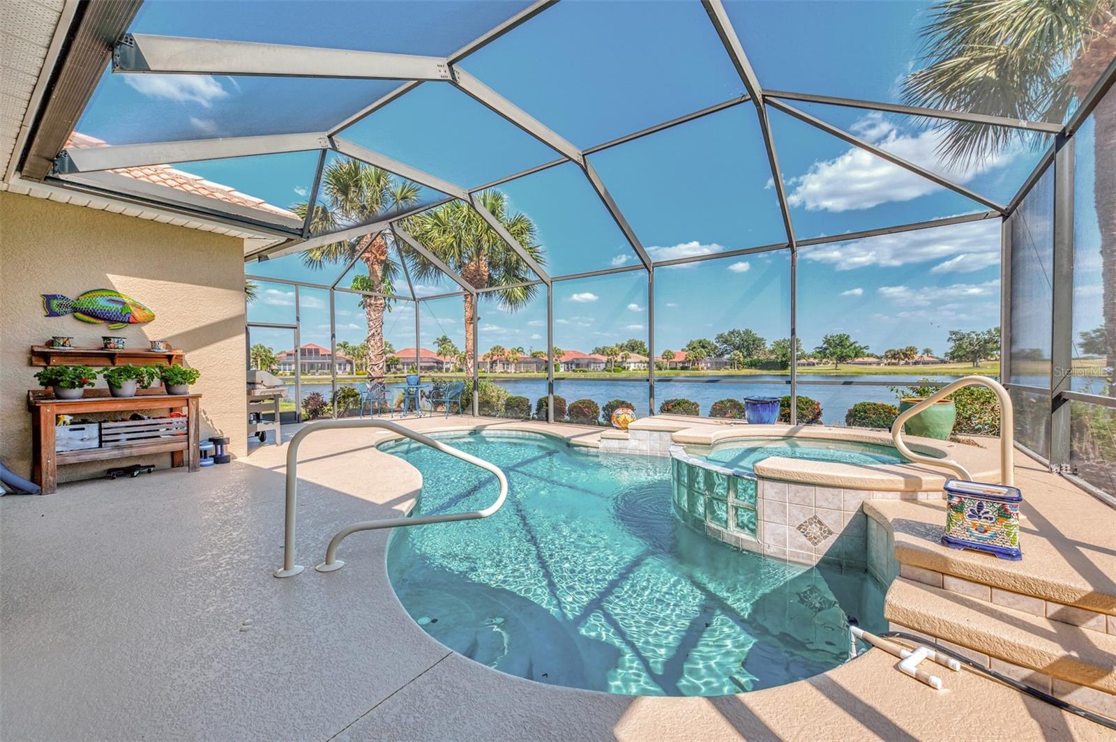 INCREDIABLE NEW PRICE for this lovely home with beautiful panoramic waterviews at the sought after Venentian Golf and River Club where golf is NOT mandatory. This luxurious quality built home by WCI is the Vecellio Model which has a timeless floor plan with high ceilings, crown moldings and IMPACT windows with lots of natural light bringing the outside in. As soon as you walk through the NEWER HURRICANE glass front doors you are captured by waterveiws. The Great Room and Dinette area are opened to the spacious island kitchen with NEWER granite countertops, sink, faucet and pendant lighting making it ideal for entertaining. There is a formal dining room and Study with french doors. The desirable split floor plan creates ultimate privacy for the primary bedroom and the additional guest bedrooms. The primary bedroom has sliders to the lanai, two walk--in closets, separate vanities, tub and shower. There is a full bath and half bath for guests. This model offers a spacious lanai with a sitting area and also a dining area. The orientation of the lanai is Southeast which is perfect keeping the lanai shaded with those gulf breezes while the sun is on the pool. There is a NEWER pump and pool bars There is a NEWER remote Kevlar Hurricane Screen making it seamless to operate when you desire. There are many other newer improvements which include landscaping, outdoor lighting, some indoor lighting, plantation shutters and hot water heater and more. The Venetian Golf and River Club (golf not mandatory) offers a Champion Golf course which is an optional membership, Resort Style Pool, Lap Pool, Fitness Center, Tennis Courts, Tiki Bar and Fine Dining and Social Events. Minutes to Nokomis Beach and Downtown Venice, I75 and Sarasota Memorial. This Special Gated Community has so much for the residences and is the Perfect place to call home or for a winter get away!
