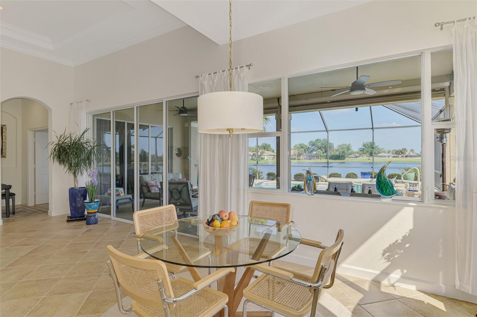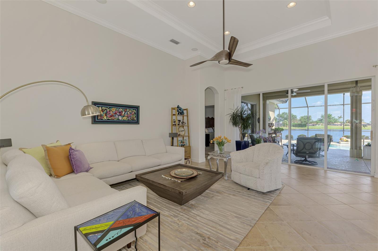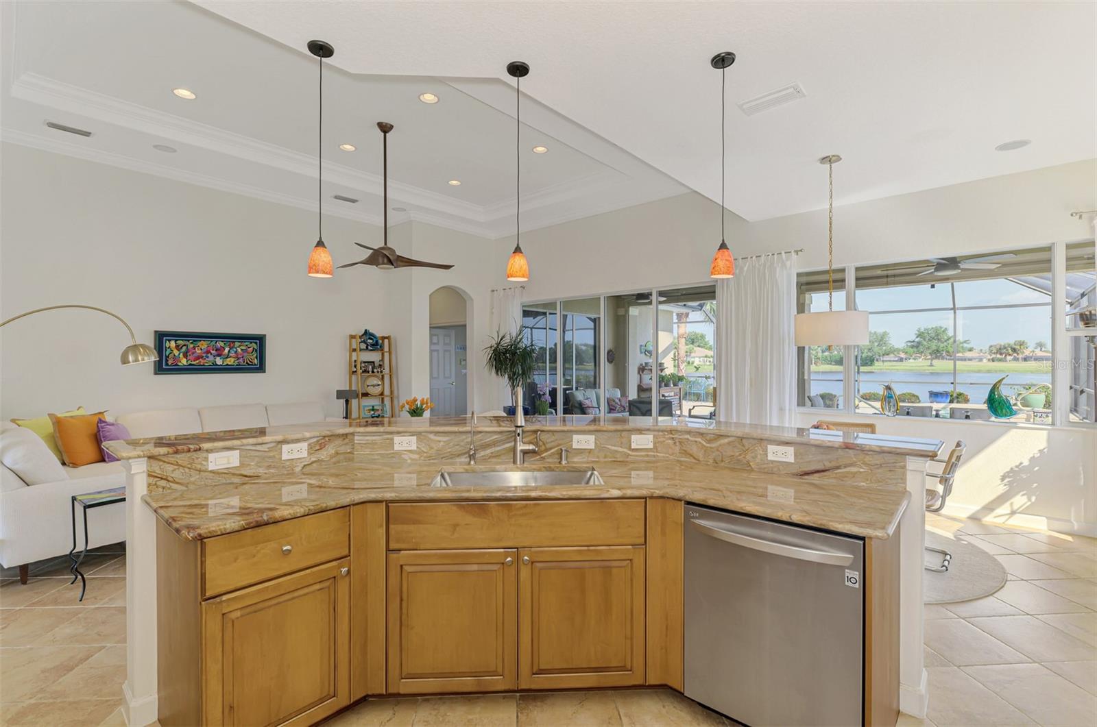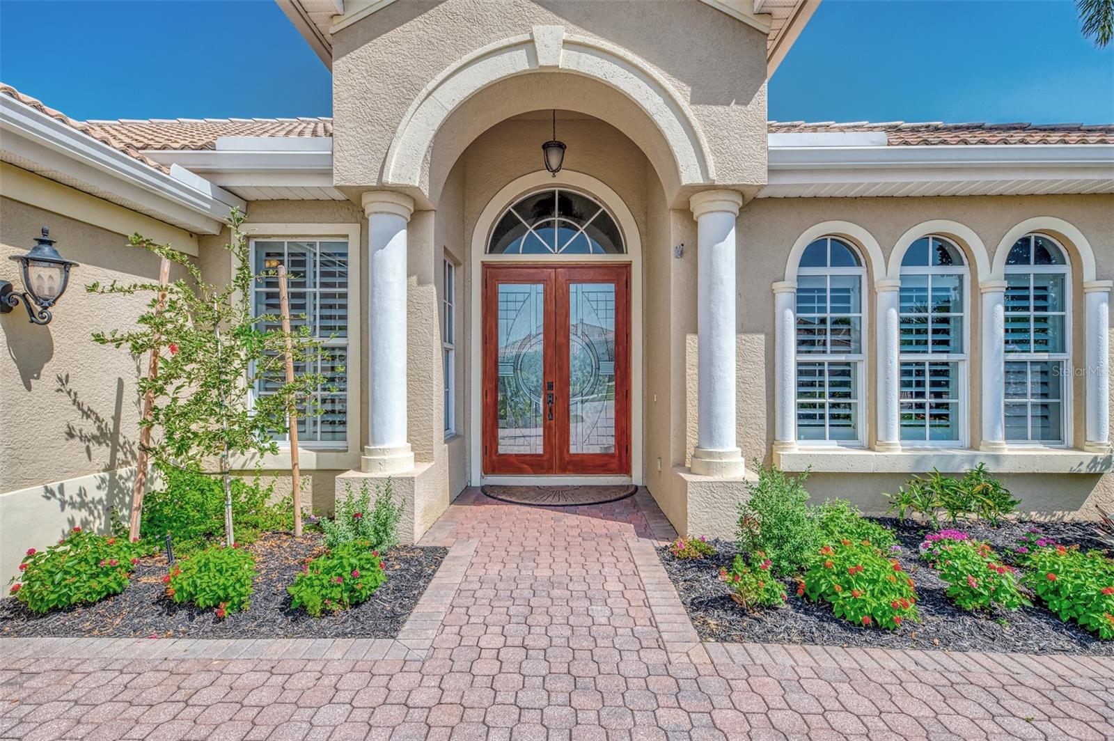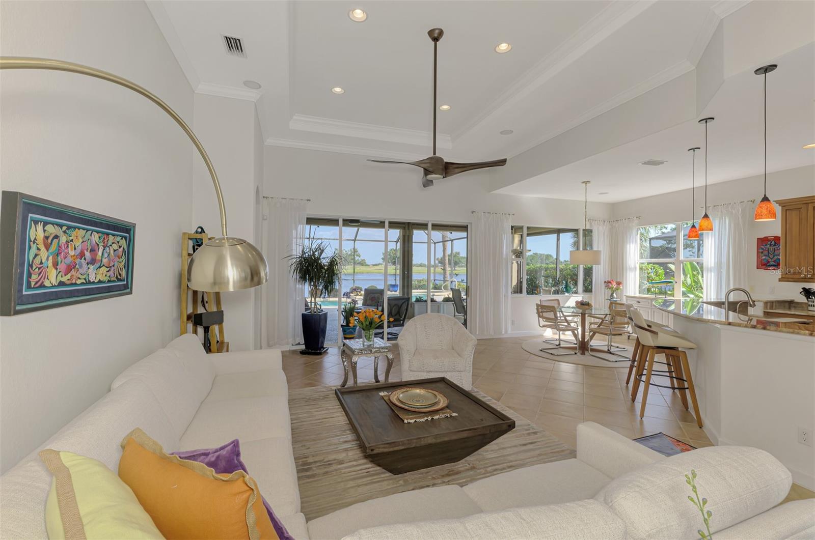 INCREDIABLE NEW PRICE for this lovely home with beautiful panoramic waterviews at the sought after Venentian Golf and River Club where golf is NOT mandatory. This luxurious quality built home by WCI is the Vecellio Model which has a timeless floor plan with high ceilings, crown moldings and IMPACT windows with lots of natural light bringing the outside in. As soon as you walk through the NEWER HURRICANE glass front doors you are captured by waterveiws. The Great Room and Dinette area are opened to the spacious island kitchen with NEWER granite countertops, sink, faucet and pendant lighting making it ideal for entertaining. There is a formal dining room and Study with french doors. The desirable split floor plan creates ultimate privacy for the primary bedroom and the additional guest bedrooms. The primary bedroom has sliders to the lanai, two walk--in closets, separate vanities, tub and shower. There is a full bath and half bath for guests. This model offers a spacious lanai with a sitting area and also a dining area. The orientation of the lanai is Southeast which is perfect keeping the lanai shaded with those gulf breezes while the sun is on the pool. There is a NEWER pump and pool bars There is a NEWER remote Kevlar Hurricane Screen making it seamless to operate when you desire. There are many other newer improvements which include landscaping, outdoor lighting, some indoor lighting, plantation shutters and hot water heater and more. The Venetian Golf and River Club (golf not mandatory) offers a Champion Golf course which is an optional membership, Resort Style Pool, Lap Pool, Fitness Center, Tennis Courts, Tiki Bar and Fine Dining and Social Events. Minutes to Nokomis Beach and Downtown Venice, I75 and Sarasota Memorial. This Special Gated Community has so much for the residences and is the Perfect place to call home or for a winter get away!
