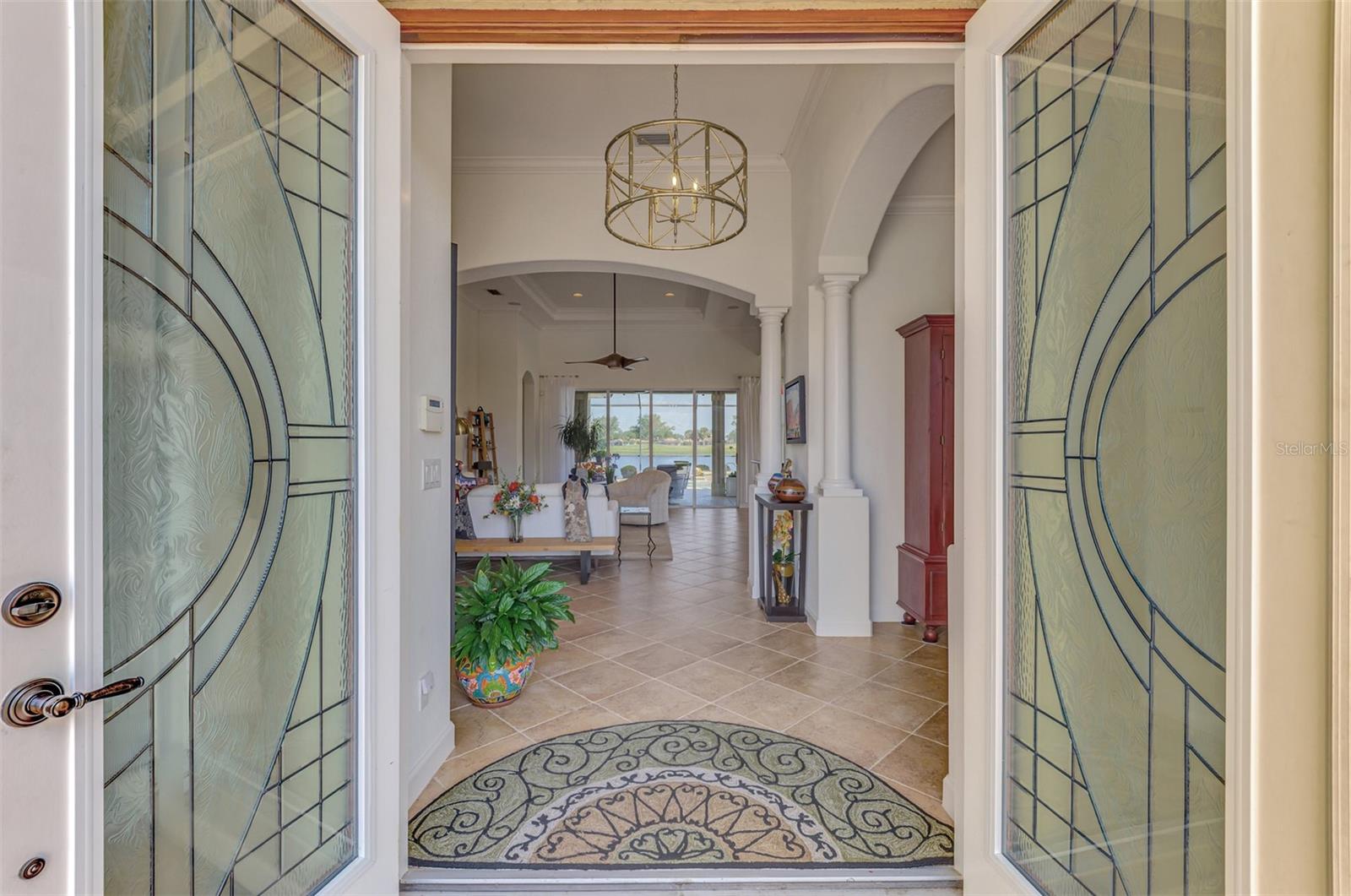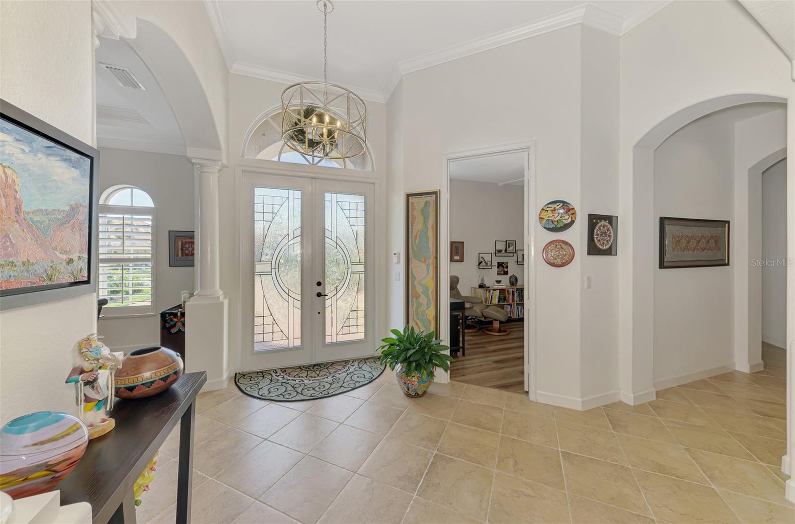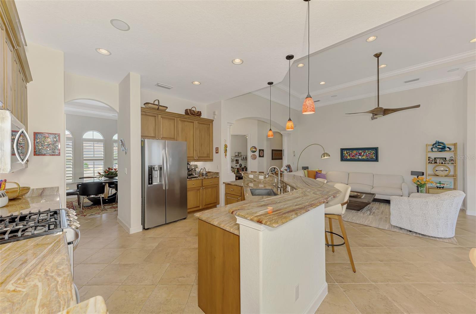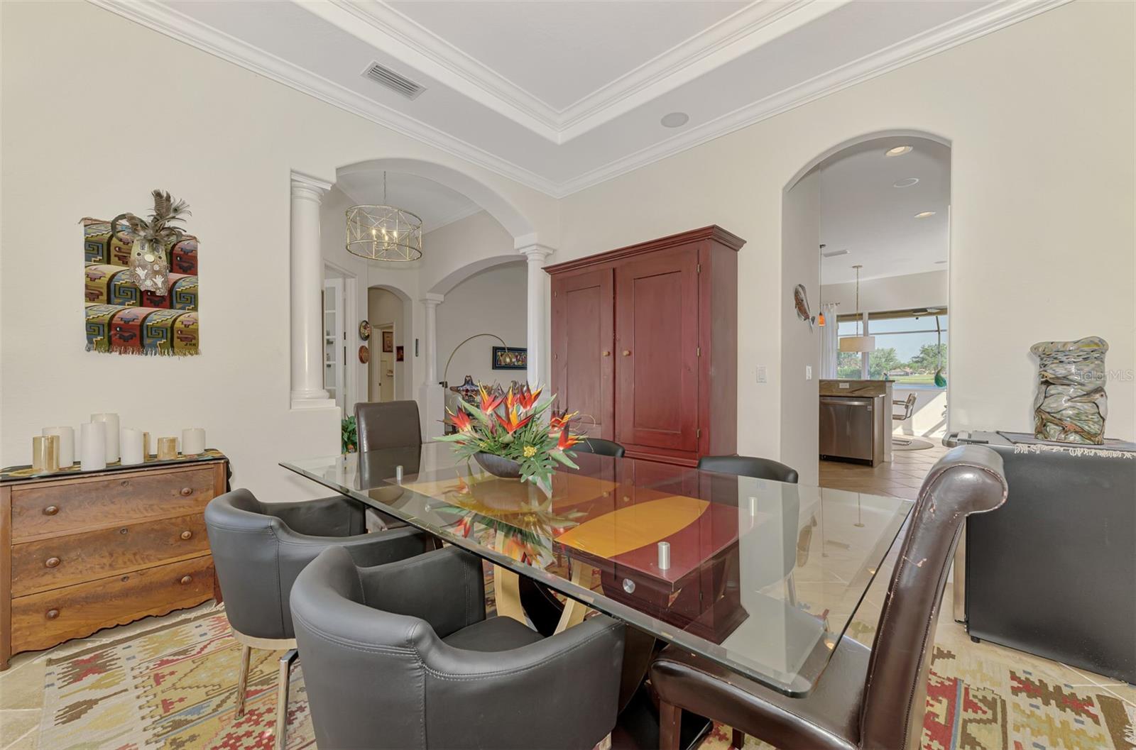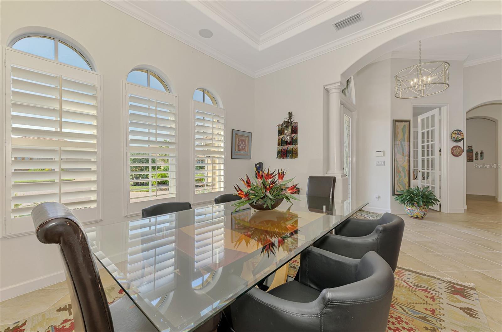 INCREDIABLE NEW PRICE for this lovely home with beautiful panoramic waterviews at the sought after Venentian Golf and River Club where golf is NOT mandatory. This luxurious quality built home by WCI is the Vecellio Model which has a timeless floor plan with high ceilings, crown moldings and IMPACT windows with lots of natural light bringing the outside in. As soon as you walk through the NEWER HURRICANE glass front doors you are captured by waterveiws. The Great Room and Dinette area are opened to the spacious island kitchen with NEWER granite countertops, sink, faucet and pendant lighting making it ideal for entertaining. There is a formal dining room and Study with french doors. The desirable split floor plan creates ultimate privacy for the primary bedroom and the additional guest bedrooms. The primary bedroom has sliders to the lanai, two walk--in closets, separate vanities, tub and shower. There is a full bath and half bath for guests. This model offers a spacious lanai with a sitting area and also a dining area. The orientation of the lanai is Southeast which is perfect keeping the lanai shaded with those gulf breezes while the sun is on the pool. There is a NEWER pump and pool bars There is a NEWER remote Kevlar Hurricane Screen making it seamless to operate when you desire. There are many other newer improvements which include landscaping, outdoor lighting, some indoor lighting, plantation shutters and hot water heater and more. The Venetian Golf and River Club (golf not mandatory) offers a Champion Golf course which is an optional membership, Resort Style Pool, Lap Pool, Fitness Center, Tennis Courts, Tiki Bar and Fine Dining and Social Events. Minutes to Nokomis Beach and Downtown Venice, I75 and Sarasota Memorial. This Special Gated Community has so much for the residences and is the Perfect place to call home or for a winter get away!