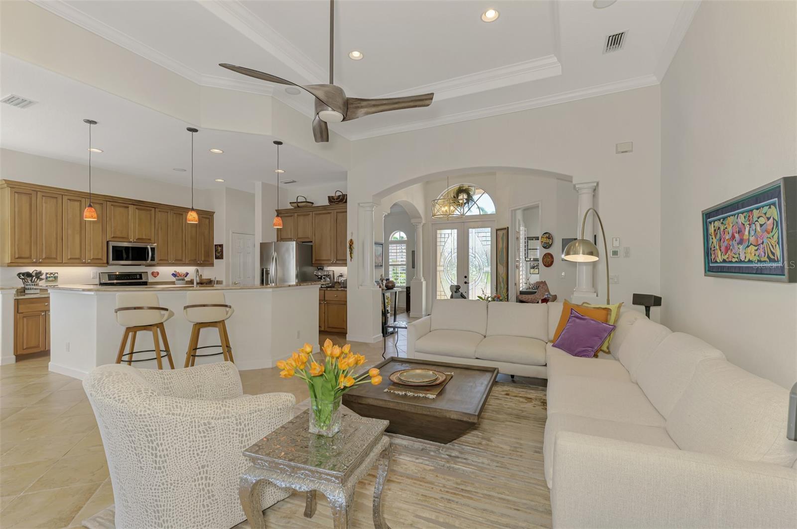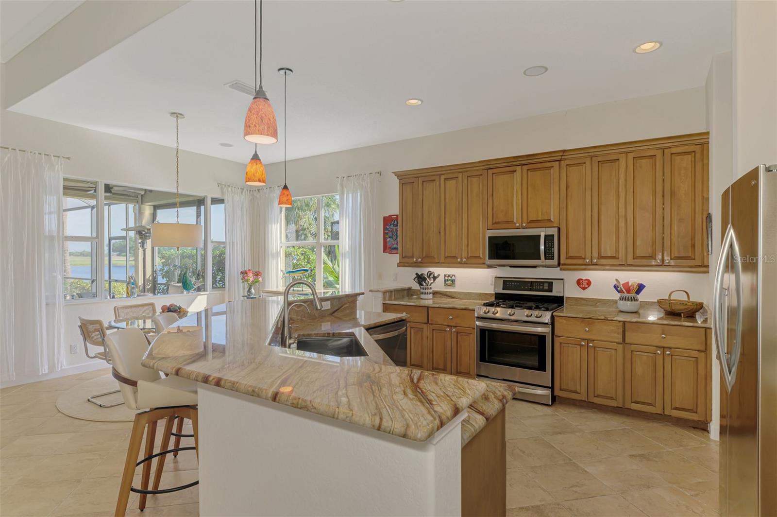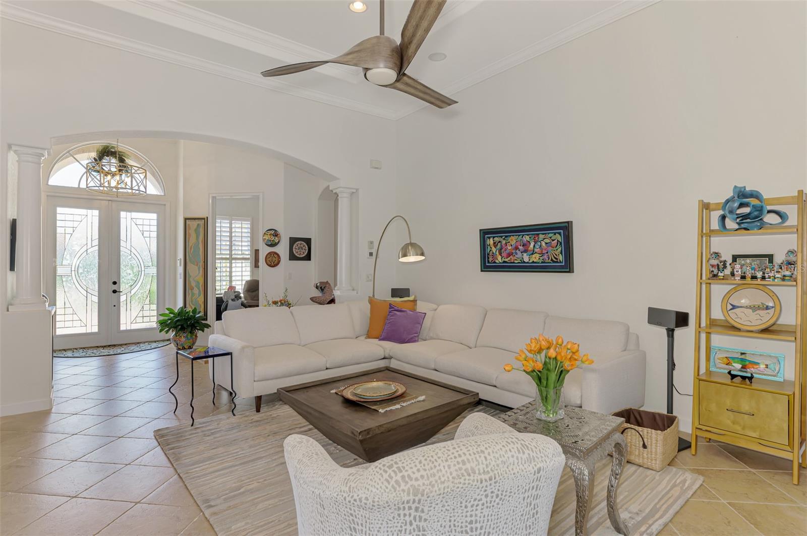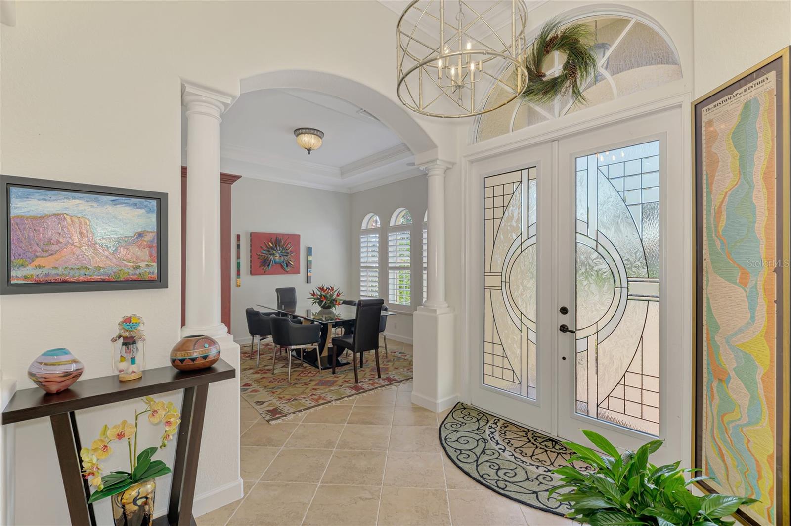 INCREDIABLE NEW PRICE for this lovely home with beautiful panoramic waterviews at the sought after Venentian Golf and River Club where golf is NOT mandatory. This luxurious quality built home by WCI is the Vecellio Model which has a timeless floor plan with high ceilings, crown moldings and IMPACT windows with lots of natural light bringing the outside in. As soon as you walk through the NEWER HURRICANE glass front doors you are captured by waterveiws. The Great Room and Dinette area are opened to the spacious island kitchen with NEWER granite countertops, sink, faucet and pendant lighting making it ideal for entertaining. There is a formal dining room and Study with french doors. The desirable split floor plan creates ultimate privacy for the primary bedroom and the additional guest bedrooms. The primary bedroom has sliders to the lanai, two walk--in closets, separate vanities, tub and shower. There is a full bath and half bath for guests. This model offers a spacious lanai with a sitting area and also a dining area. The orientation of the lanai is Southeast which is perfect keeping the lanai shaded with those gulf breezes while the sun is on the pool. There is a NEWER pump and pool bars There is a NEWER remote Kevlar Hurricane Screen making it seamless to operate when you desire. There are many other newer improvements which include landscaping, outdoor lighting, some indoor lighting, plantation shutters and hot water heater and more. The Venetian Golf and River Club (golf not mandatory) offers a Champion Golf course which is an optional membership, Resort Style Pool, Lap Pool, Fitness Center, Tennis Courts, Tiki Bar and Fine Dining and Social Events. Minutes to Nokomis Beach and Downtown Venice, I75 and Sarasota Memorial. This Special Gated Community has so much for the residences and is the Perfect place to call home or for a winter get away!