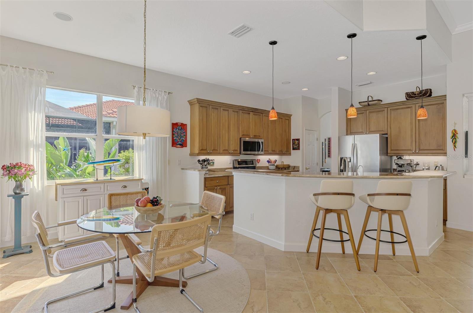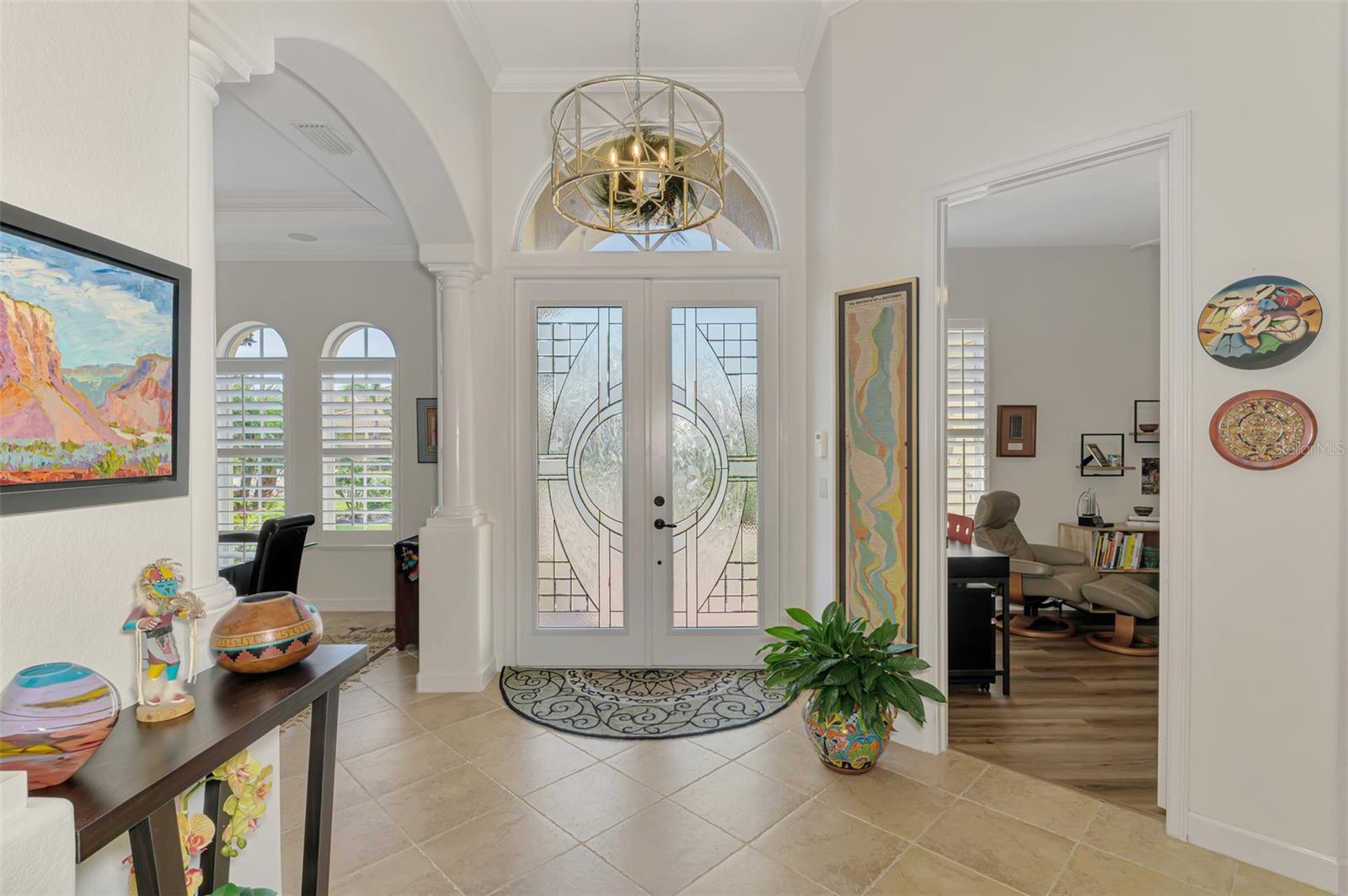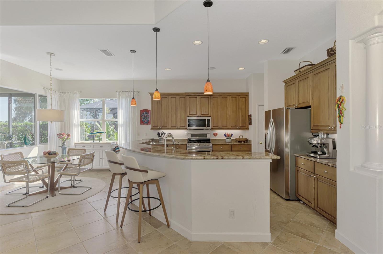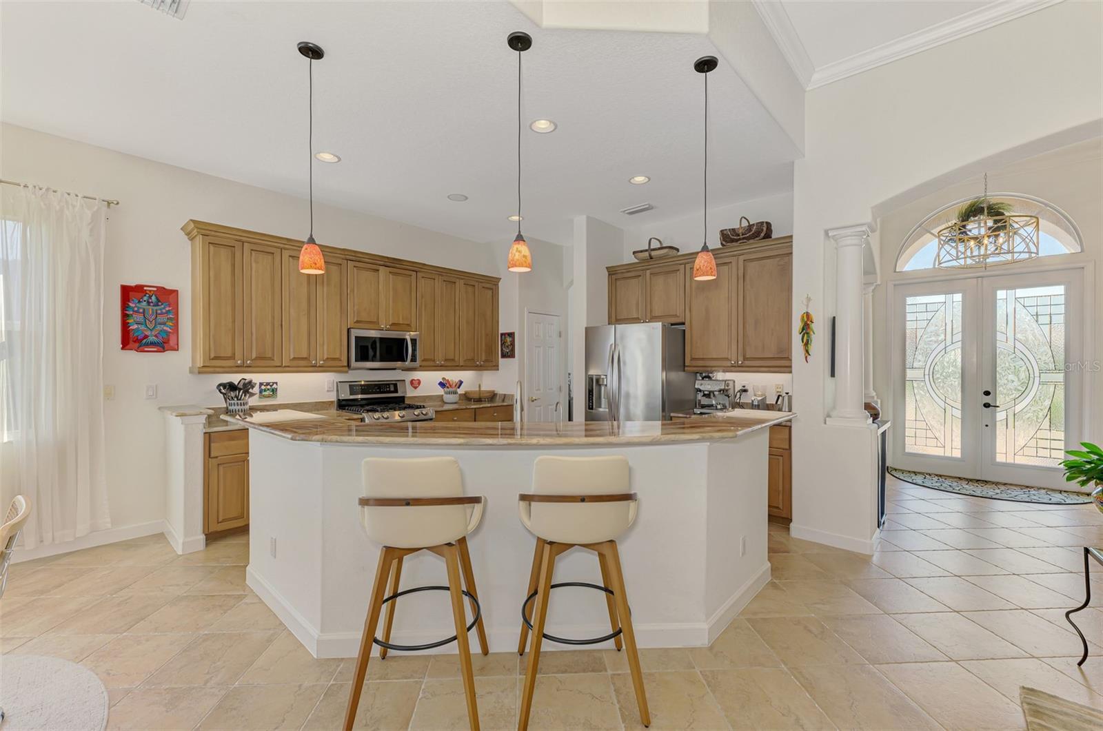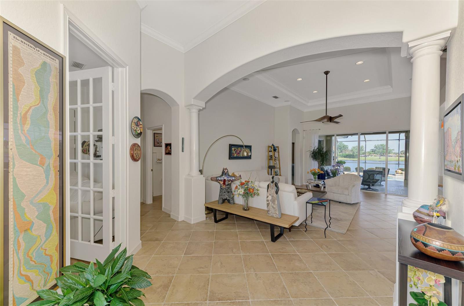 INCREDIABLE NEW PRICE for this lovely home with beautiful panoramic waterviews at the sought after Venentian Golf and River Club where golf is NOT mandatory. This luxurious quality built home by WCI is the Vecellio Model which has a timeless floor plan with high ceilings, crown moldings and IMPACT windows with lots of natural light bringing the outside in. As soon as you walk through the NEWER HURRICANE glass front doors you are captured by waterveiws. The Great Room and Dinette area are opened to the spacious island kitchen with NEWER granite countertops, sink, faucet and pendant lighting making it ideal for entertaining. There is a formal dining room and Study with french doors. The desirable split floor plan creates ultimate privacy for the primary bedroom and the additional guest bedrooms. The primary bedroom has sliders to the lanai, two walk--in closets, separate vanities, tub and shower. There is a full bath and half bath for guests. This model offers a spacious lanai with a sitting area and also a dining area. The orientation of the lanai is Southeast which is perfect keeping the lanai shaded with those gulf breezes while the sun is on the pool. There is a NEWER pump and pool bars There is a NEWER remote Kevlar Hurricane Screen making it seamless to operate when you desire. There are many other newer improvements which include landscaping, outdoor lighting, some indoor lighting, plantation shutters and hot water heater and more. The Venetian Golf and River Club (golf not mandatory) offers a Champion Golf course which is an optional membership, Resort Style Pool, Lap Pool, Fitness Center, Tennis Courts, Tiki Bar and Fine Dining and Social Events. Minutes to Nokomis Beach and Downtown Venice, I75 and Sarasota Memorial. This Special Gated Community has so much for the residences and is the Perfect place to call home or for a winter get away!