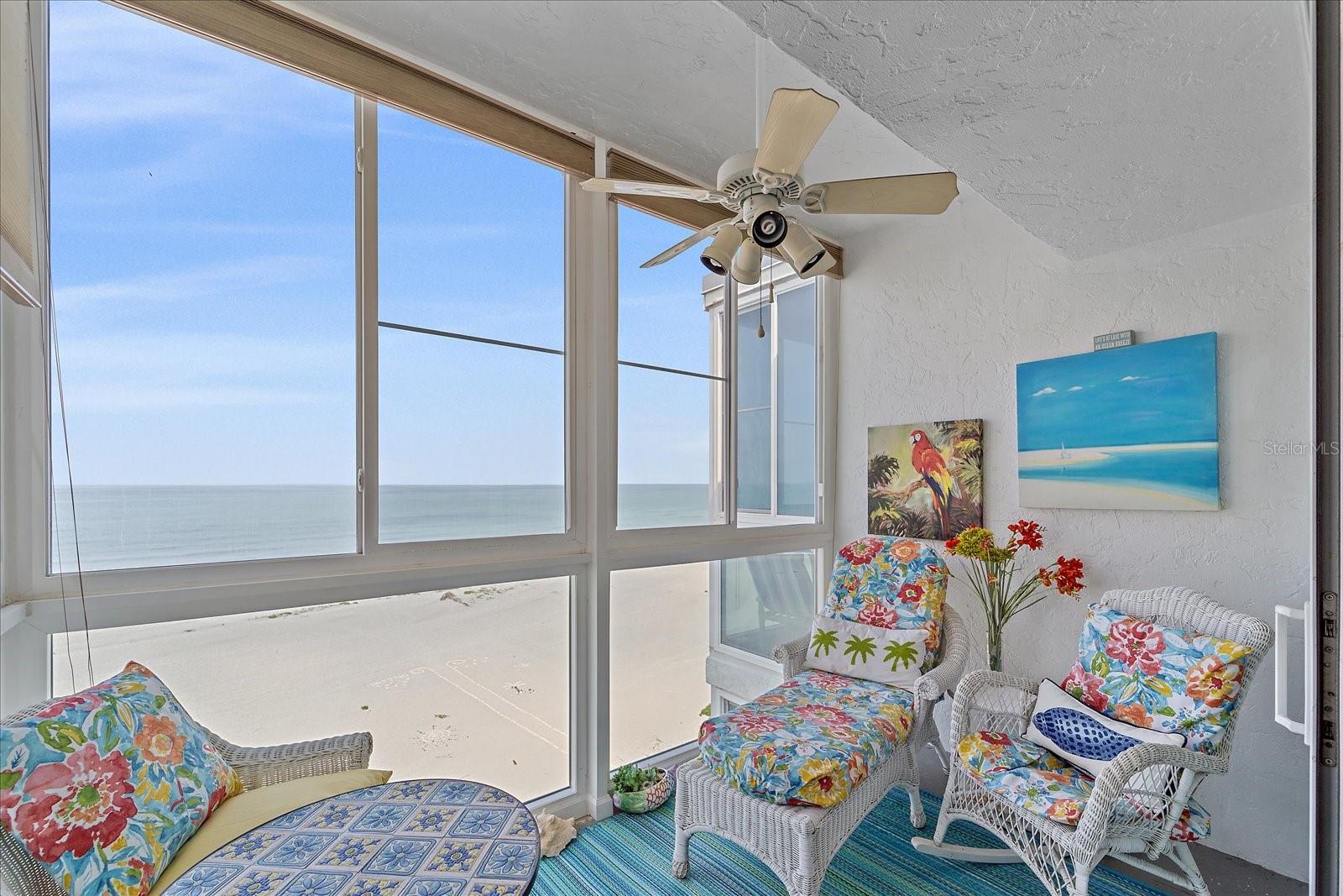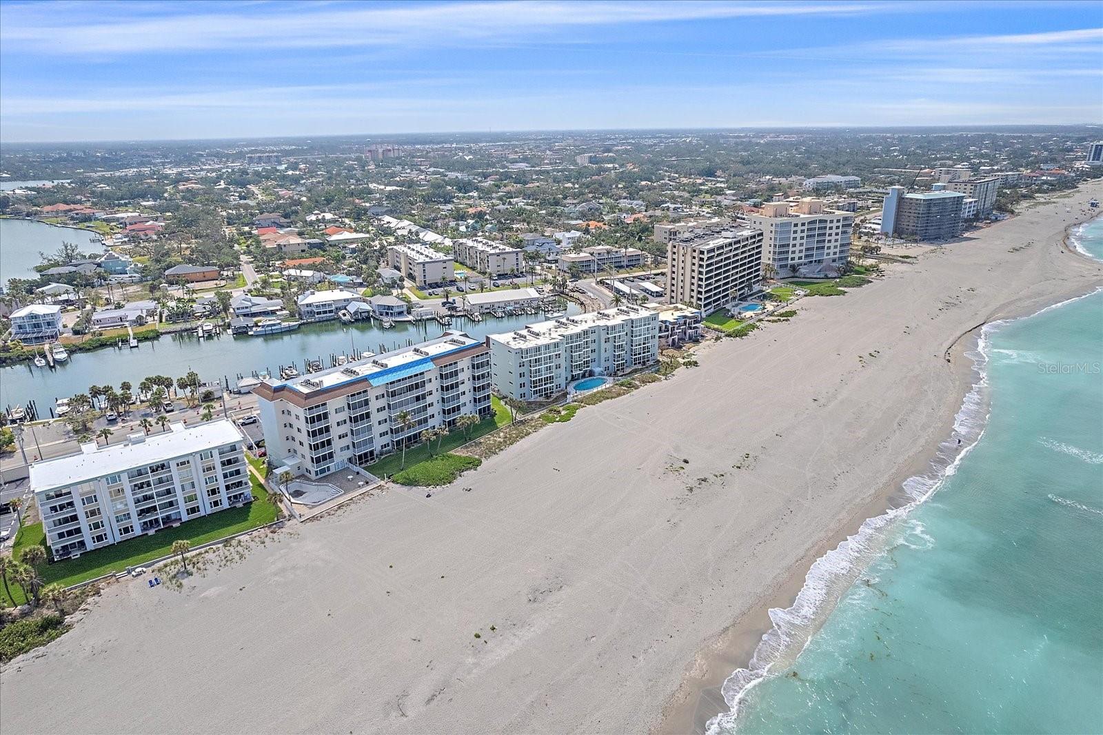 Welcome to your top-floor coastal sanctuary, where unobstructed Gulf views and timeless design come together to create the ultimate beachfront escape. Every detail has been thoughtfully curated to blend comfort with style, creating the ultimate beachfront retreat. Luxury vinyl plank flooring flows seamlessly from the entryway through the open-concept kitchen and living areas, setting a refined coastal tone throughout the home. The kitchen features granite countertops, classic white shaker cabinetry, and a layout perfect for both casual dining and entertaining. Each of the two bedrooms includes an updated en-suite bathroom, offering privacy and modern convenience for owners and guests alike. The spacious living area, bathed in natural light and framed by stunning Gulf views, invites you to relax, unwind, and take in the serene beauty of Venice Beach. The Orleans building is investing in major property improvements including a new roof (2025) and a redesigned lobby entrance. The Orleans is ideally located in close proximity to the Venice Jetty and Venice Yacht Club, and minutes from the shops and dining of historic downtown Venice, this condominium delivers the perfect blend of tranquility and accessibility. Whether you're looking for a vacation getaway or a primary residence, this is a rare opportunity to own a piece of paradise on Florida's Gulf Coast.
