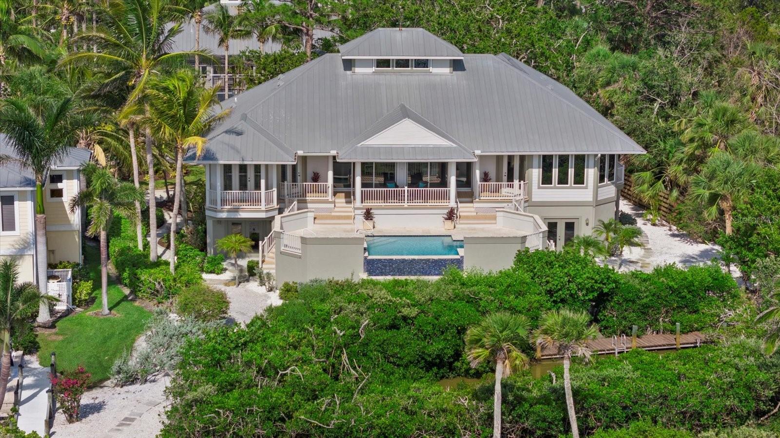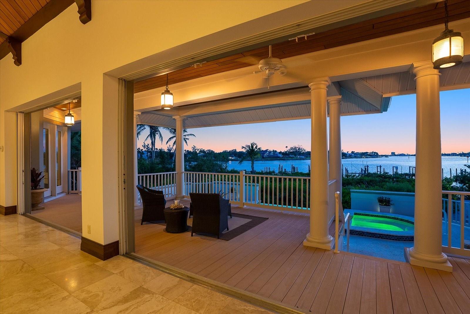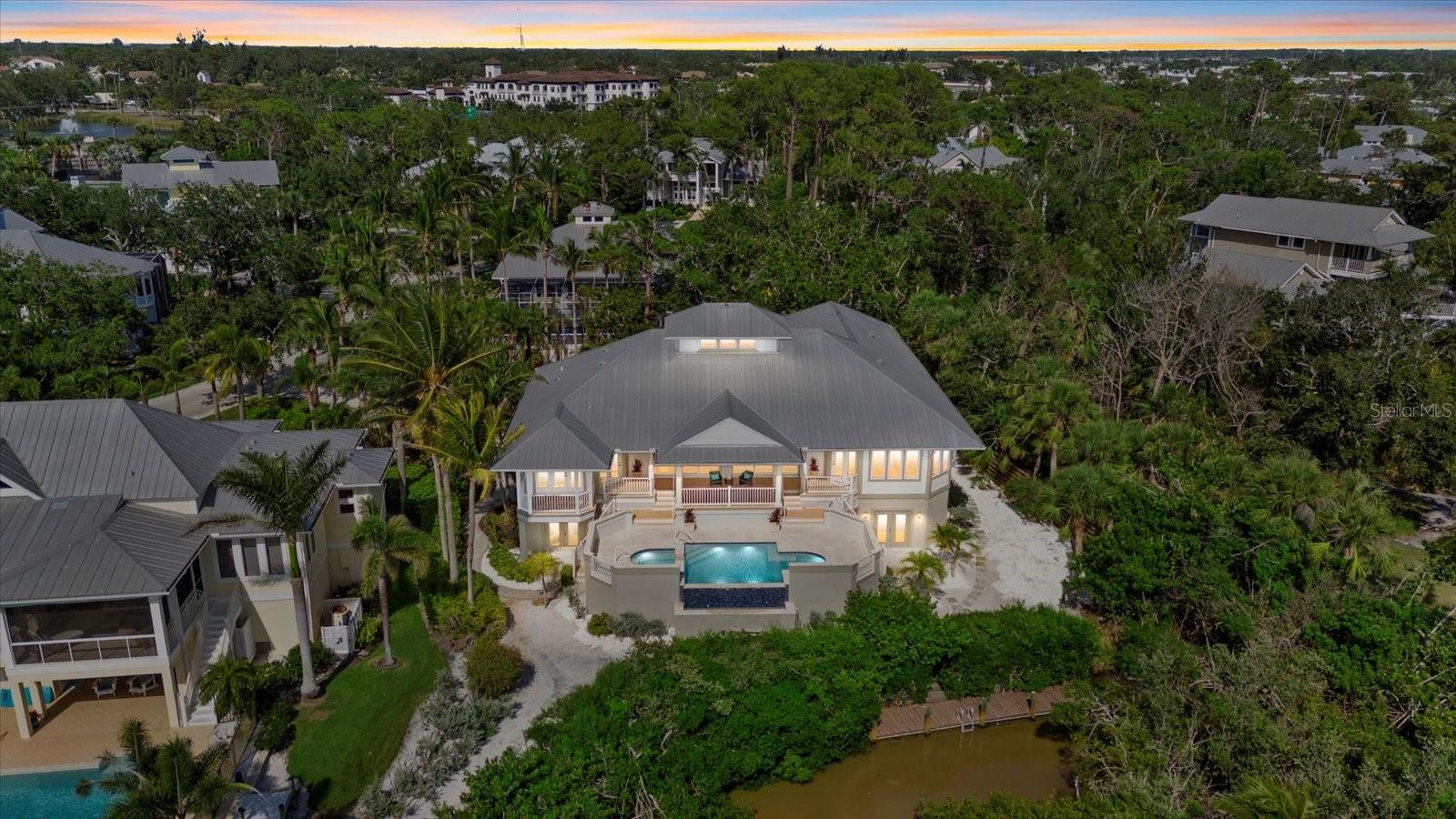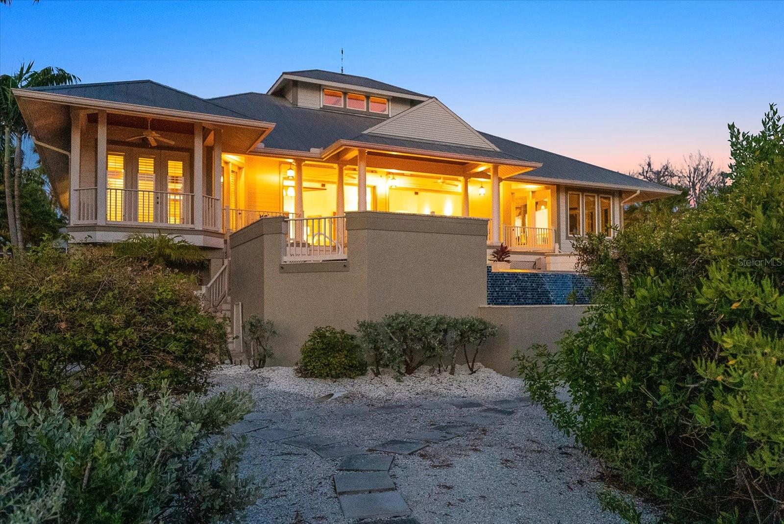 Tucked within the gates of The Eagle Point Club--one of Venice's most treasured and historic waterfront enclaves--this extraordinary custom home blends timeless Key West charm with the refined elegance of a Boca Grande style. Offering a rare combination of privacy, sophistication, and resort-style living, the home is perfectly positioned at the end of a quiet road, within walking distance to Venice's charming shops, dining, and beach.Elevated for peace of mind, the primary living space is situated on the second floor, showcasing sweeping views of Roberts Bay. Step into the grand living room, where soaring volume ceilings, a wall of pocketing sliding glass doors, and rich architectural details invite you to relax and take in breathtaking sunset vistas as boats drift by. Golden hour here feels like a living painting.This thoughtfully designed 3-bedroom + office, 3-bath estate includes a 3-car garage and showcases artisan-quality craftsmanship throughout: elevator, travertine flooring, custom wood cabinetry, solid wood doors, intricate ceiling details, wide crown molding, and baseboards that speak to the home's custom pedigree.The chef's kitchen is a masterpiece and offers an abundance of custom cabinetry, butcher block island, wet bar, high-end appliances including Sub-Zero refrigerator, paneled dishwasher, built-in oven and microwave, cooktop with downdraft, and extensive pull-out storage. Entertain with ease in the expansive dining room, which comfortably accommodates over a dozen guests and features a wall of windows overlooking the Bay. The primary suite offers a peaceful retreat with stunning bay views, french doors that lead to a balcony, a spacious walk-in closet, and a spa-like bath complete with a Roman shower, dual shower heads, jetted tub, dual vanities, abundant storage, and private water closet. The split floor plan ensures privacy for two generous ensuite guest bedrooms, while the richly appointed office, with custom built-ins and alligator-textured cabinetry, adds a distinctive touch.Outdoors, an elevated pool and spa with color-changing lights create a magical setting to enjoy Florida evenings. The tropical landscaping is enhanced by an irrigation system, solar lighting, a circular drive with an additional parking pad, and a whimsical life-sized chess set beneath a gazebo.The property includes one of only 30 assigned boat slips, with a soon-to-be-reconstructed dock offering water, electric, and composite decking. The new owner can install a boat lift once the dock is complete. Boaters will appreciate quick access to the Gulf, just five minutes away via the ICW.The Eagle Point Club is steeped in history dating back to 1911, known for meticulous tropical landscaping throughout, and offers residents exclusive amenities including a community dock, tennis courts and pickleball, and a storied clubhouse where OVERFLOW GUESTS can stay in the adjacent 4-bedroom cottage or 4-bedroom historic clubhouse. Additional notable historical features that remain are a portion of the original Velvet Highway 41 and the preserved water tower. This is a rare opportunity to experience the luxury and coastal heritage of Eagle Point. Schedule your private tour today and discover the unmatched lifestyle this exceptional residence has to offer in one of the most prestigious communities in the area. Copy & paste the following to view the Luxury Video: https://player.vimeo.com/video/1091215246?badge=0&autopause=0&player_id=0&app_id=58479
