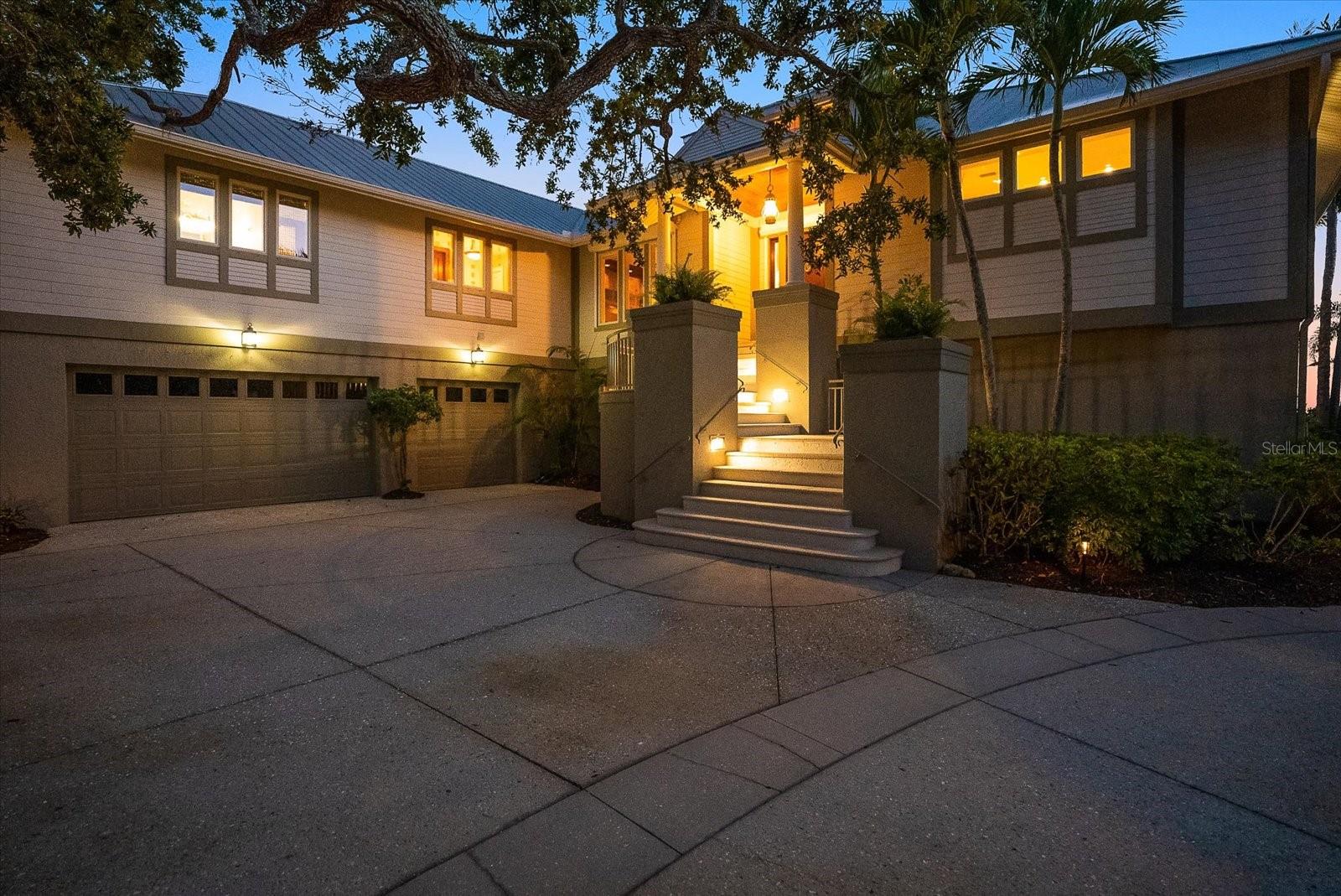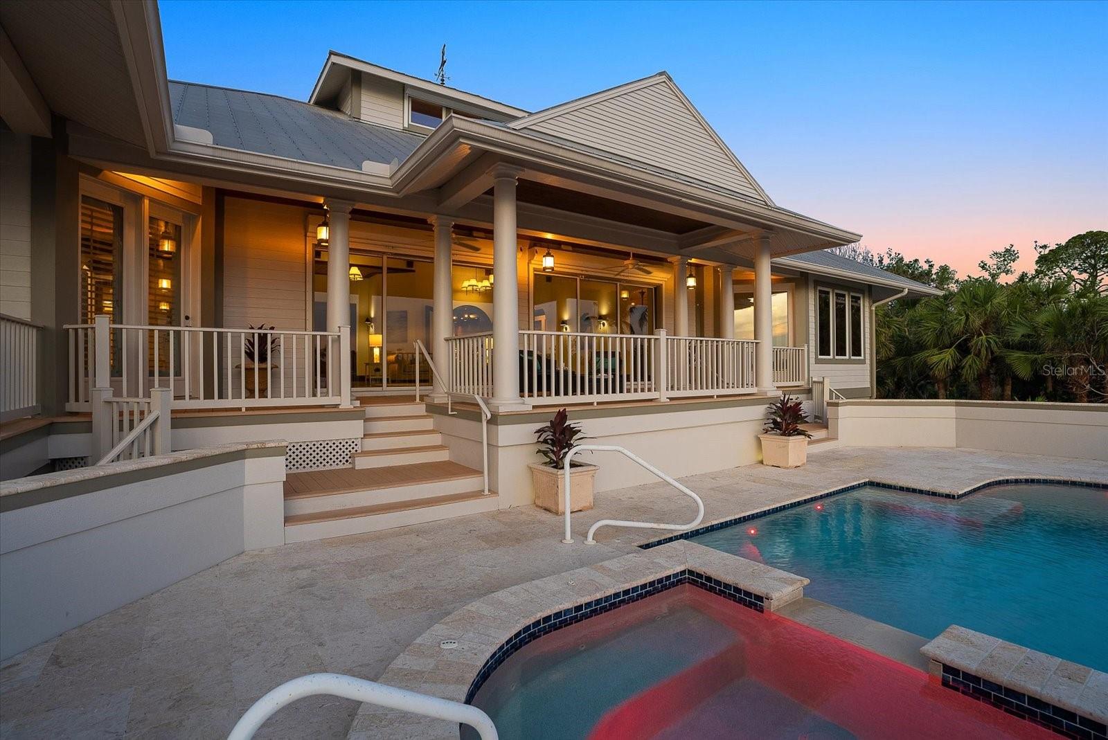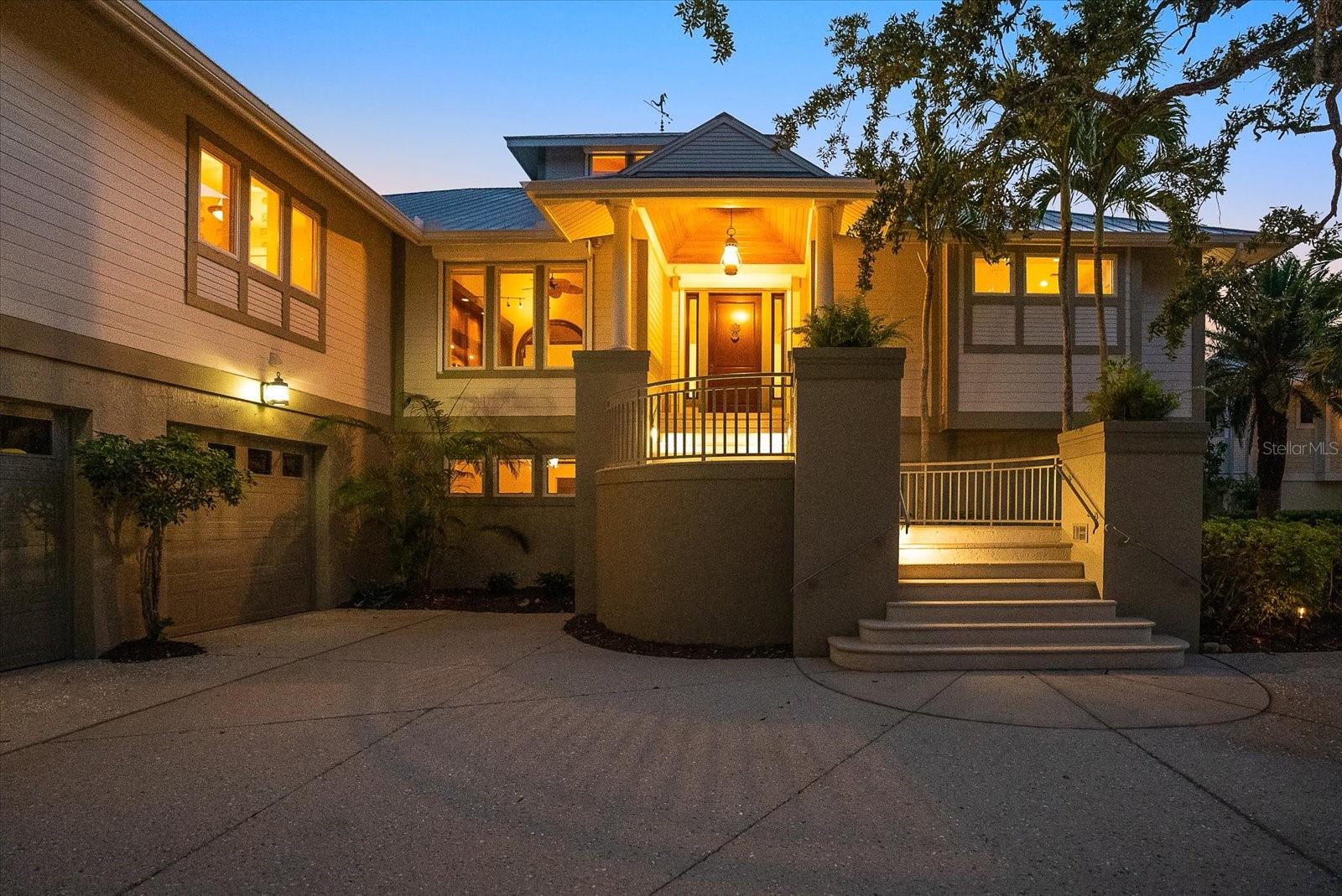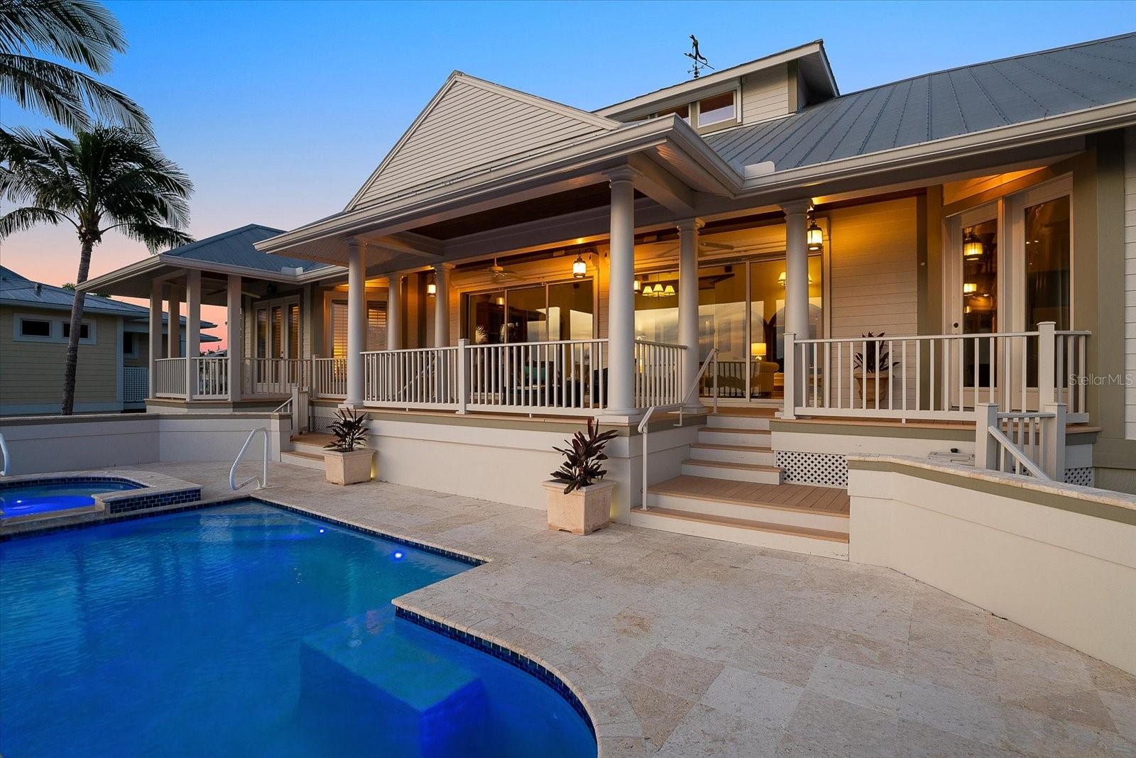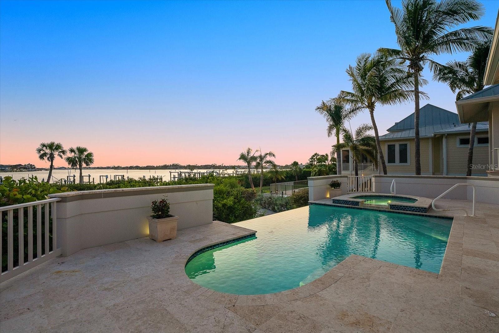 Tucked within the gates of The Eagle Point Club--one of Venice's most treasured and historic waterfront enclaves--this extraordinary custom home blends timeless Key West charm with the refined elegance of a Boca Grande style. Offering a rare combination of privacy, sophistication, and resort-style living, the home is perfectly positioned at the end of a quiet road, within walking distance to Venice's charming shops, dining, and beach.Elevated for peace of mind, the primary living space is situated on the second floor, showcasing sweeping views of Roberts Bay. Step into the grand living room, where soaring volume ceilings, a wall of pocketing sliding glass doors, and rich architectural details invite you to relax and take in breathtaking sunset vistas as boats drift by. Golden hour here feels like a living painting.This thoughtfully designed 3-bedroom + office, 3-bath estate includes a 3-car garage and showcases artisan-quality craftsmanship throughout: elevator, travertine flooring, custom wood cabinetry, solid wood doors, intricate ceiling details, wide crown molding, and baseboards that speak to the home's custom pedigree.The chef's kitchen is a masterpiece and offers an abundance of custom cabinetry, butcher block island, wet bar, high-end appliances including Sub-Zero refrigerator, paneled dishwasher, built-in oven and microwave, cooktop with downdraft, and extensive pull-out storage. Entertain with ease in the expansive dining room, which comfortably accommodates over a dozen guests and features a wall of windows overlooking the Bay. The primary suite offers a peaceful retreat with stunning bay views, french doors that lead to a balcony, a spacious walk-in closet, and a spa-like bath complete with a Roman shower, dual shower heads, jetted tub, dual vanities, abundant storage, and private water closet. The split floor plan ensures privacy for two generous ensuite guest bedrooms, while the richly appointed office, with custom built-ins and alligator-textured cabinetry, adds a distinctive touch.Outdoors, an elevated pool and spa with color-changing lights create a magical setting to enjoy Florida evenings. The tropical landscaping is enhanced by an irrigation system, solar lighting, a circular drive with an additional parking pad, and a whimsical life-sized chess set beneath a gazebo.The property includes one of only 30 assigned boat slips, with a soon-to-be-reconstructed dock offering water, electric, and composite decking. The new owner can install a boat lift once the dock is complete. Boaters will appreciate quick access to the Gulf, just five minutes away via the ICW.The Eagle Point Club is steeped in history dating back to 1911, known for meticulous tropical landscaping throughout, and offers residents exclusive amenities including a community dock, tennis courts and pickleball, and a storied clubhouse where OVERFLOW GUESTS can stay in the adjacent 4-bedroom cottage or 4-bedroom historic clubhouse. Additional notable historical features that remain are a portion of the original Velvet Highway 41 and the preserved water tower. This is a rare opportunity to experience the luxury and coastal heritage of Eagle Point. Schedule your private tour today and discover the unmatched lifestyle this exceptional residence has to offer in one of the most prestigious communities in the area. Copy & paste the following to view the Luxury Video: https://player.vimeo.com/video/1091215246?badge=0&autopause=0&player_id=0&app_id=58479