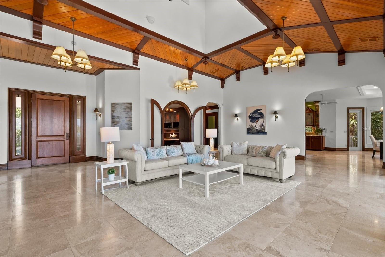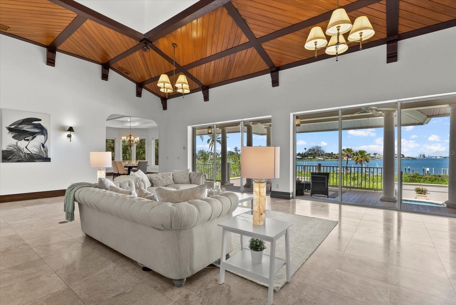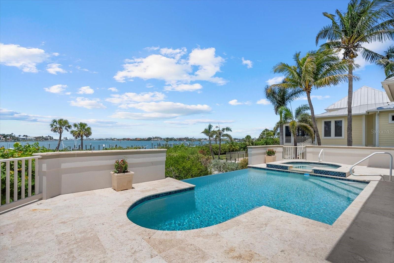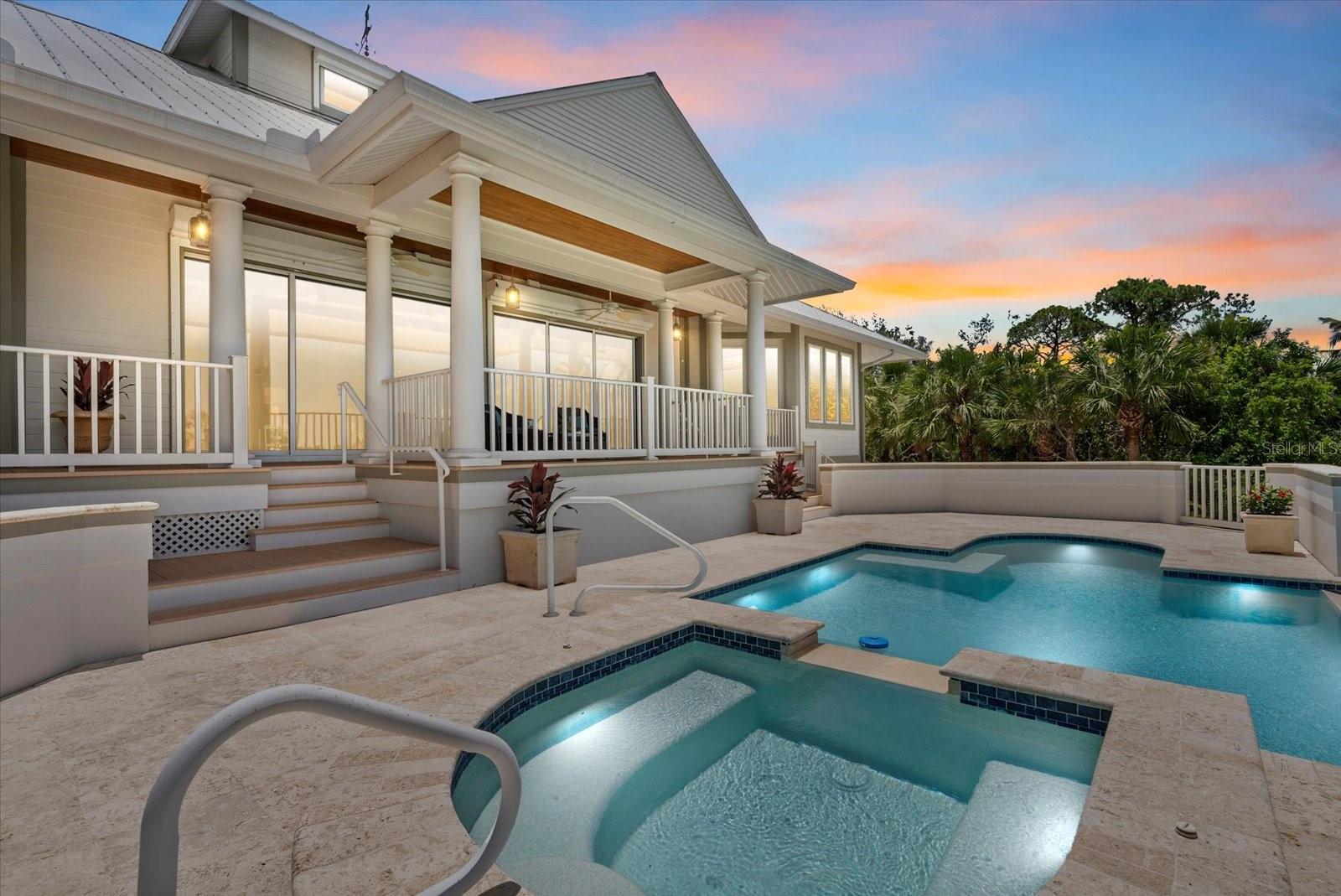 Tucked within the gates of The Eagle Point Club--one of Venice's most treasured and historic waterfront enclaves--this extraordinary custom home blends timeless Key West charm with the refined elegance of a Boca Grande style. Offering a rare combination of privacy, sophistication, and resort-style living, the home is perfectly positioned at the end of a quiet road, within walking distance to Venice's charming shops, dining, and beach.Elevated for peace of mind, the primary living space is situated on the second floor, showcasing sweeping views of Roberts Bay. Step into the grand living room, where soaring volume ceilings, a wall of pocketing sliding glass doors, and rich architectural details invite you to relax and take in breathtaking sunset vistas as boats drift by. Golden hour here feels like a living painting.This thoughtfully designed 3-bedroom + office, 3-bath estate includes a 3-car garage and showcases artisan-quality craftsmanship throughout: elevator, travertine flooring, custom wood cabinetry, solid wood doors, intricate ceiling details, wide crown molding, and baseboards that speak to the home's custom pedigree.The chef's kitchen is a masterpiece and offers an abundance of custom cabinetry, butcher block island, wet bar, high-end appliances including Sub-Zero refrigerator, paneled dishwasher, built-in oven and microwave, cooktop with downdraft, and extensive pull-out storage. Entertain with ease in the expansive dining room, which comfortably accommodates over a dozen guests and features a wall of windows overlooking the Bay. The primary suite offers a peaceful retreat with stunning bay views, french doors that lead to a balcony, a spacious walk-in closet, and a spa-like bath complete with a Roman shower, dual shower heads, jetted tub, dual vanities, abundant storage, and private water closet. The split floor plan ensures privacy for two generous ensuite guest bedrooms, while the richly appointed office, with custom built-ins and alligator-textured cabinetry, adds a distinctive touch.Outdoors, an elevated pool and spa with color-changing lights create a magical setting to enjoy Florida evenings. The tropical landscaping is enhanced by an irrigation system, solar lighting, a circular drive with an additional parking pad, and a whimsical life-sized chess set beneath a gazebo.The property includes one of only 30 assigned boat slips, with a soon-to-be-reconstructed dock offering water, electric, and composite decking. The new owner can install a boat lift once the dock is complete. Boaters will appreciate quick access to the Gulf, just five minutes away via the ICW.The Eagle Point Club is steeped in history dating back to 1911, known for meticulous tropical landscaping throughout, and offers residents exclusive amenities including a community dock, tennis courts and pickleball, and a storied clubhouse where OVERFLOW GUESTS can stay in the adjacent 4-bedroom cottage or 4-bedroom historic clubhouse. Additional notable historical features that remain are a portion of the original Velvet Highway 41 and the preserved water tower. This is a rare opportunity to experience the luxury and coastal heritage of Eagle Point. Schedule your private tour today and discover the unmatched lifestyle this exceptional residence has to offer in one of the most prestigious communities in the area. Copy & paste the following to view the Luxury Video: https://player.vimeo.com/video/1091215246?badge=0&autopause=0&player_id=0&app_id=58479