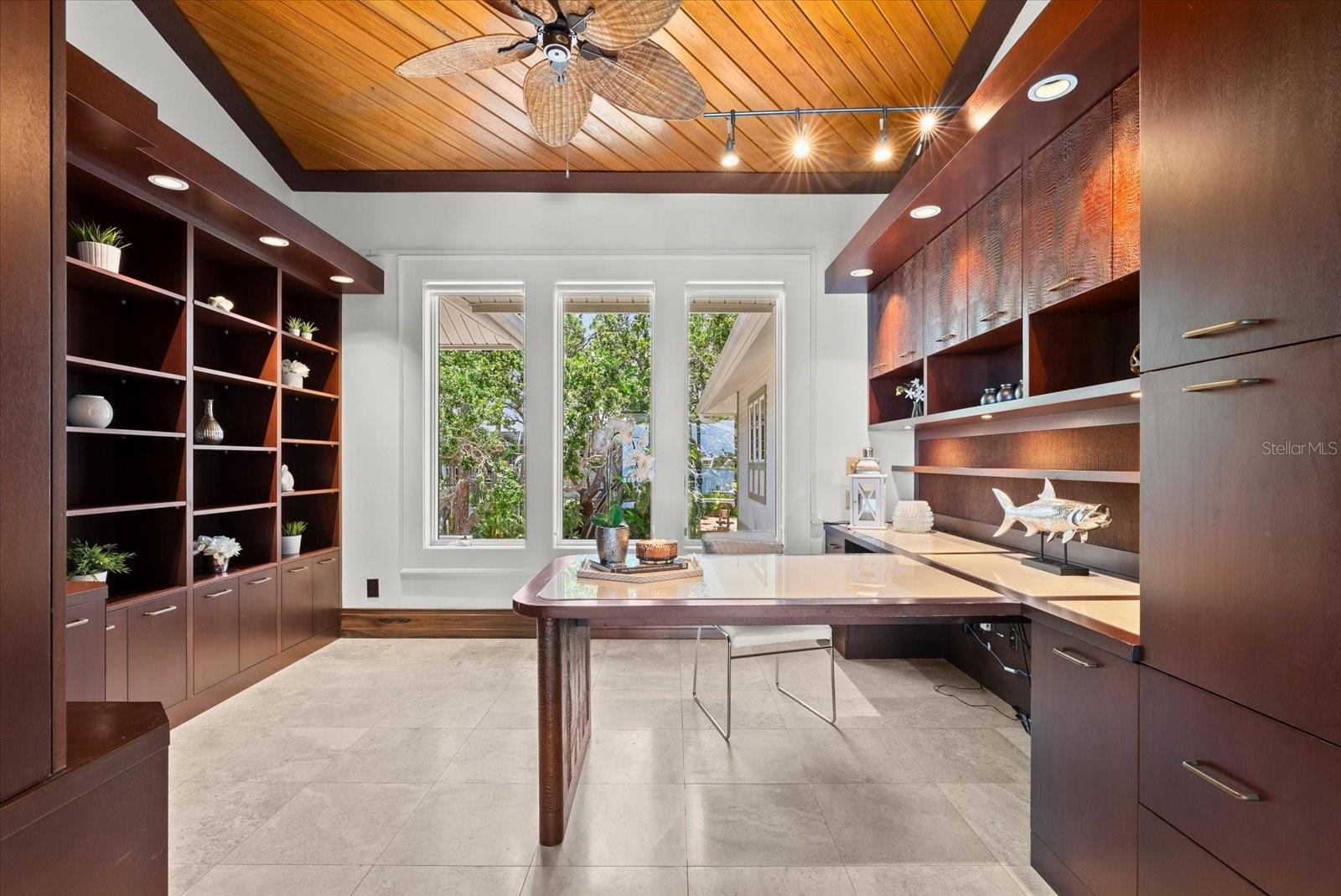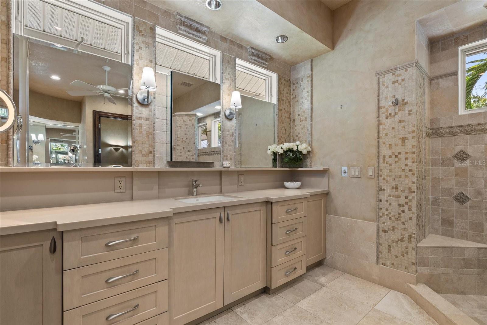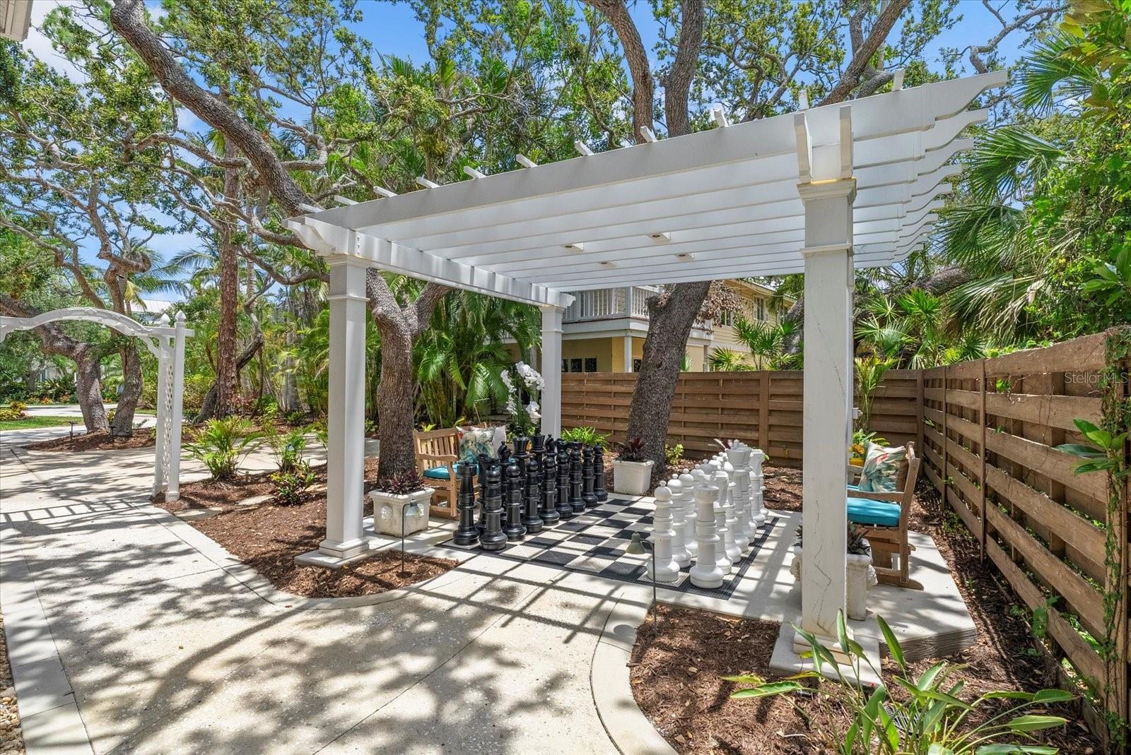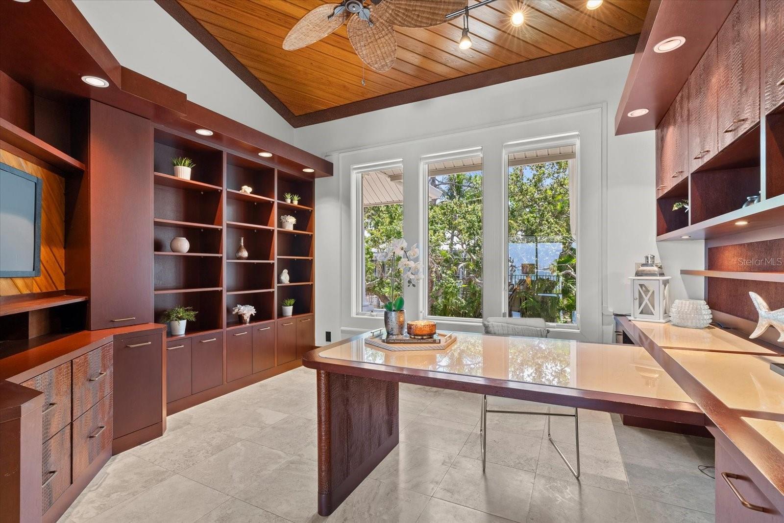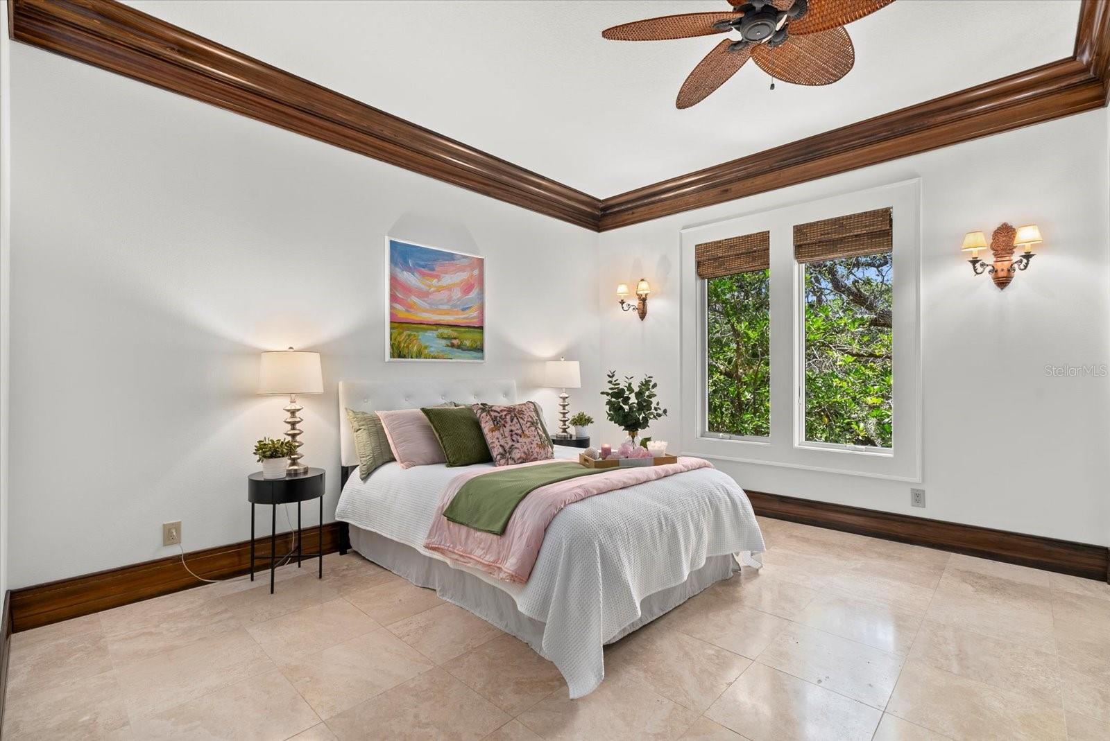 Tucked within the gates of The Eagle Point Club--one of Venice's most treasured and historic waterfront enclaves--this extraordinary custom home blends timeless Key West charm with the refined elegance of a Boca Grande style. Offering a rare combination of privacy, sophistication, and resort-style living, the home is perfectly positioned at the end of a quiet road, within walking distance to Venice's charming shops, dining, and beach.Elevated for peace of mind, the primary living space is situated on the second floor, showcasing sweeping views of Roberts Bay. Step into the grand living room, where soaring volume ceilings, a wall of pocketing sliding glass doors, and rich architectural details invite you to relax and take in breathtaking sunset vistas as boats drift by. Golden hour here feels like a living painting.This thoughtfully designed 3-bedroom + office, 3-bath estate includes a 3-car garage and showcases artisan-quality craftsmanship throughout: elevator, travertine flooring, custom wood cabinetry, solid wood doors, intricate ceiling details, wide crown molding, and baseboards that speak to the home's custom pedigree.The chef's kitchen is a masterpiece and offers an abundance of custom cabinetry, butcher block island, wet bar, high-end appliances including Sub-Zero refrigerator, paneled dishwasher, built-in oven and microwave, cooktop with downdraft, and extensive pull-out storage. Entertain with ease in the expansive dining room, which comfortably accommodates over a dozen guests and features a wall of windows overlooking the Bay. The primary suite offers a peaceful retreat with stunning bay views, french doors that lead to a balcony, a spacious walk-in closet, and a spa-like bath complete with a Roman shower, dual shower heads, jetted tub, dual vanities, abundant storage, and private water closet. The split floor plan ensures privacy for two generous ensuite guest bedrooms, while the richly appointed office, with custom built-ins and alligator-textured cabinetry, adds a distinctive touch.Outdoors, an elevated pool and spa with color-changing lights create a magical setting to enjoy Florida evenings. The tropical landscaping is enhanced by an irrigation system, solar lighting, a circular drive with an additional parking pad, and a whimsical life-sized chess set beneath a gazebo.The property includes one of only 30 assigned boat slips, with a soon-to-be-reconstructed dock offering water, electric, and composite decking. The new owner can install a boat lift once the dock is complete. Boaters will appreciate quick access to the Gulf, just five minutes away via the ICW.The Eagle Point Club is steeped in history dating back to 1911, known for meticulous tropical landscaping throughout, and offers residents exclusive amenities including a community dock, tennis courts and pickleball, and a storied clubhouse where OVERFLOW GUESTS can stay in the adjacent 4-bedroom cottage or 4-bedroom historic clubhouse. Additional notable historical features that remain are a portion of the original Velvet Highway 41 and the preserved water tower. This is a rare opportunity to experience the luxury and coastal heritage of Eagle Point. Schedule your private tour today and discover the unmatched lifestyle this exceptional residence has to offer in one of the most prestigious communities in the area. Copy & paste the following to view the Luxury Video: https://player.vimeo.com/video/1091215246?badge=0&autopause=0&player_id=0&app_id=58479
