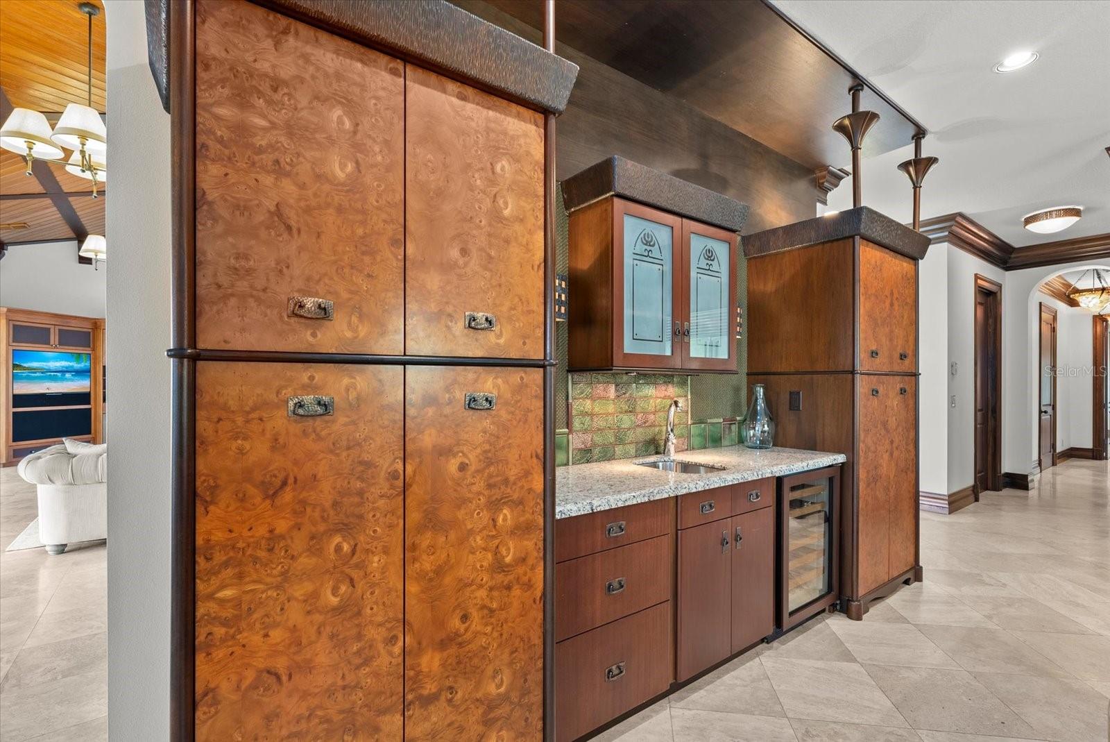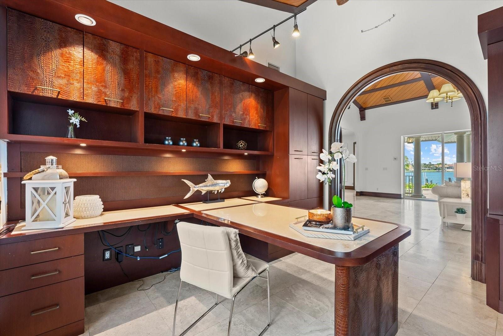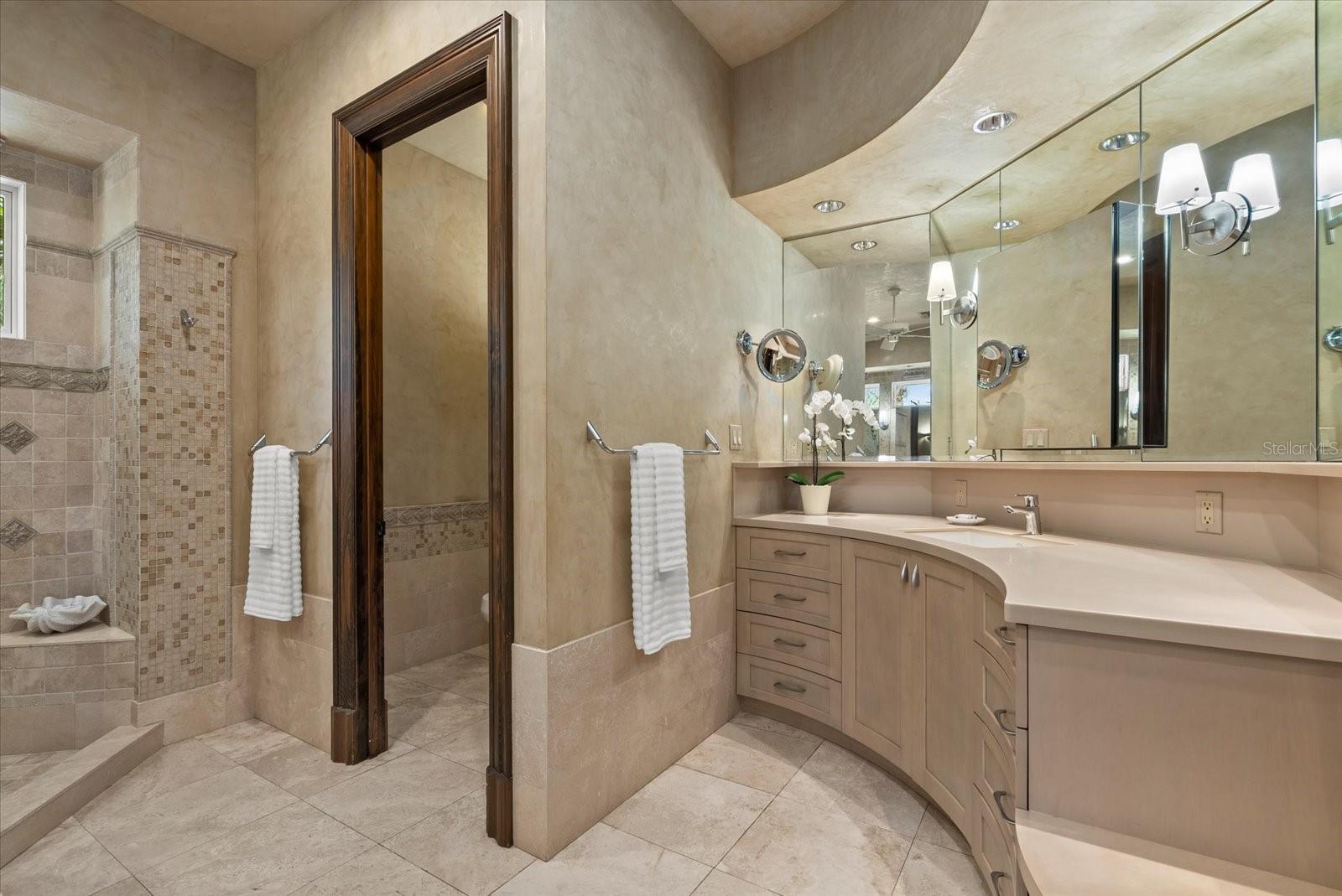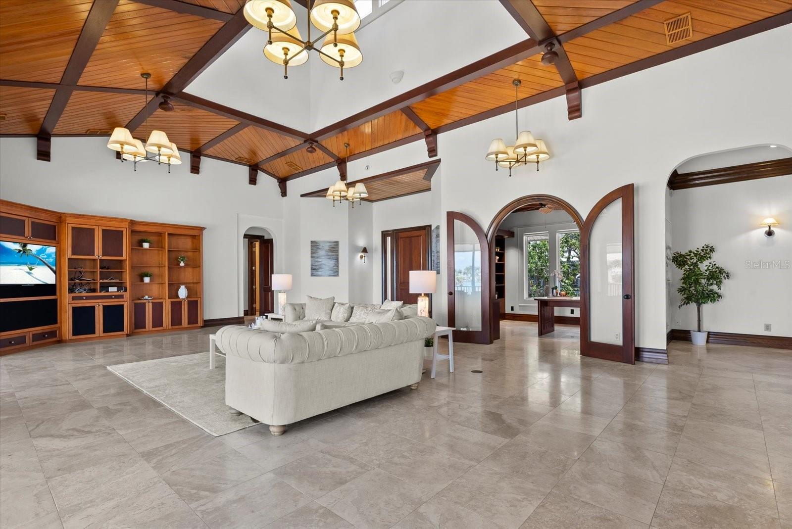 Tucked within the gates of The Eagle Point Club--one of Venice's most treasured and historic waterfront enclaves--this extraordinary custom home blends timeless Key West charm with the refined elegance of a Boca Grande style. Offering a rare combination of privacy, sophistication, and resort-style living, the home is perfectly positioned at the end of a quiet road, within walking distance to Venice's charming shops, dining, and beach.Elevated for peace of mind, the primary living space is situated on the second floor, showcasing sweeping views of Roberts Bay. Step into the grand living room, where soaring volume ceilings, a wall of pocketing sliding glass doors, and rich architectural details invite you to relax and take in breathtaking sunset vistas as boats drift by. Golden hour here feels like a living painting.This thoughtfully designed 3-bedroom + office, 3-bath estate includes a 3-car garage and showcases artisan-quality craftsmanship throughout: elevator, travertine flooring, custom wood cabinetry, solid wood doors, intricate ceiling details, wide crown molding, and baseboards that speak to the home's custom pedigree.The chef's kitchen is a masterpiece and offers an abundance of custom cabinetry, butcher block island, wet bar, high-end appliances including Sub-Zero refrigerator, paneled dishwasher, built-in oven and microwave, cooktop with downdraft, and extensive pull-out storage. Entertain with ease in the expansive dining room, which comfortably accommodates over a dozen guests and features a wall of windows overlooking the Bay. The primary suite offers a peaceful retreat with stunning bay views, french doors that lead to a balcony, a spacious walk-in closet, and a spa-like bath complete with a Roman shower, dual shower heads, jetted tub, dual vanities, abundant storage, and private water closet. The split floor plan ensures privacy for two generous ensuite guest bedrooms, while the richly appointed office, with custom built-ins and alligator-textured cabinetry, adds a distinctive touch.Outdoors, an elevated pool and spa with color-changing lights create a magical setting to enjoy Florida evenings. The tropical landscaping is enhanced by an irrigation system, solar lighting, a circular drive with an additional parking pad, and a whimsical life-sized chess set beneath a gazebo.The property includes one of only 30 assigned boat slips, with a soon-to-be-reconstructed dock offering water, electric, and composite decking. The new owner can install a boat lift once the dock is complete. Boaters will appreciate quick access to the Gulf, just five minutes away via the ICW.The Eagle Point Club is steeped in history dating back to 1911, known for meticulous tropical landscaping throughout, and offers residents exclusive amenities including a community dock, tennis courts and pickleball, and a storied clubhouse where OVERFLOW GUESTS can stay in the adjacent 4-bedroom cottage or 4-bedroom historic clubhouse. Additional notable historical features that remain are a portion of the original Velvet Highway 41 and the preserved water tower. This is a rare opportunity to experience the luxury and coastal heritage of Eagle Point. Schedule your private tour today and discover the unmatched lifestyle this exceptional residence has to offer in one of the most prestigious communities in the area. Copy & paste the following to view the Luxury Video: https://player.vimeo.com/video/1091215246?badge=0&autopause=0&player_id=0&app_id=58479