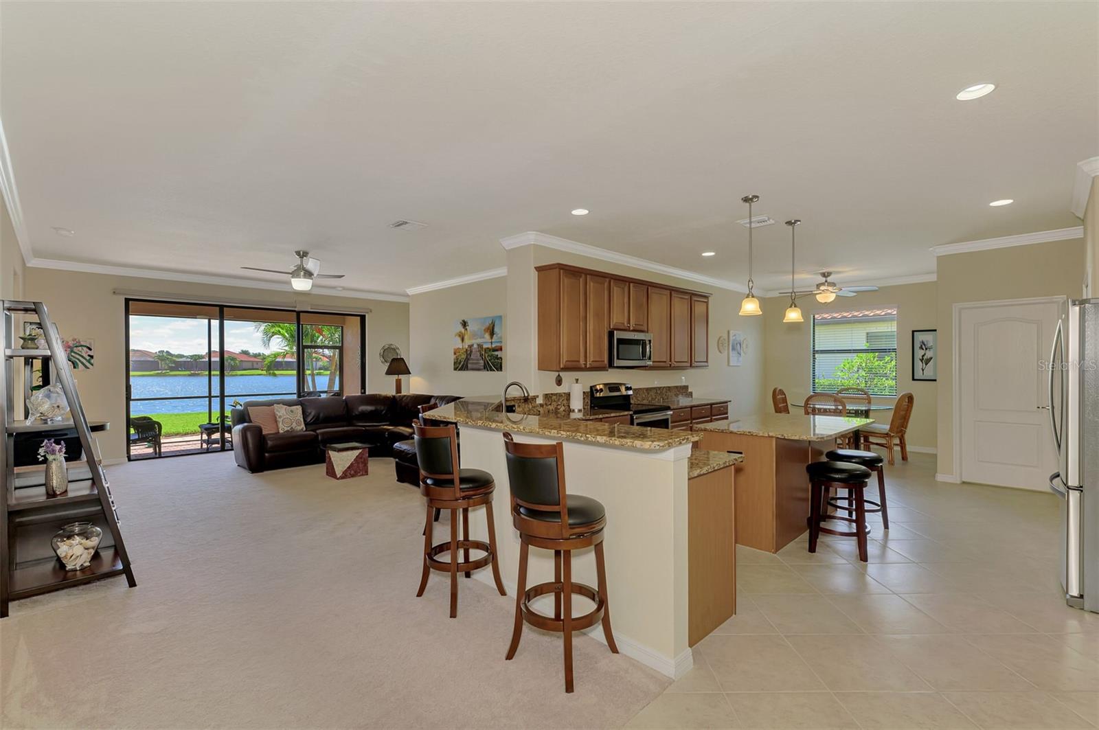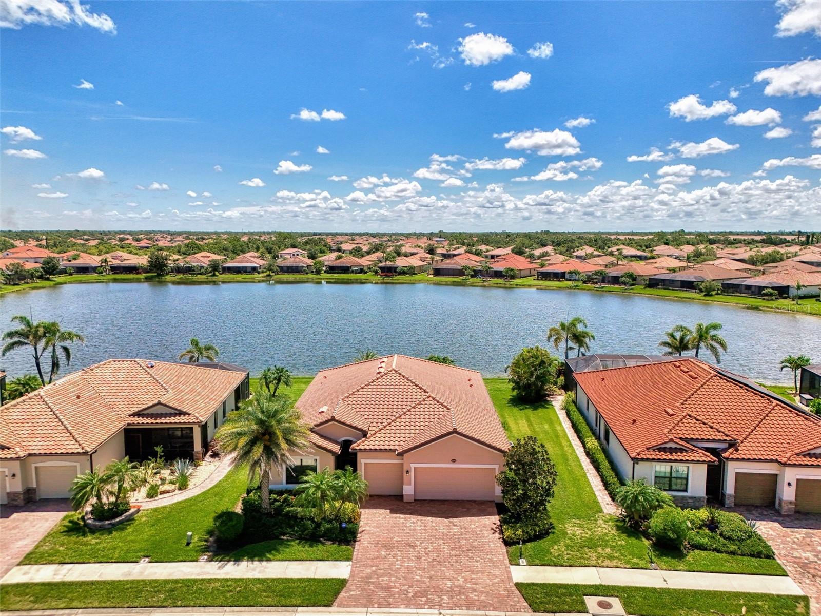 Priced to sell! Are you searching for incredible value? You'll find it in this pristine 4-bedroom, 3-bath home located in the sought-after gated community of Gran Paradiso. Boasting 2,254 square feet of thoughtfully designed living space, a serene water view, and a spacious 3-car garage, this home has it all. From the moment you step inside, you'll notice the meticulous care and attention to detail throughout. Neutral tones and an open floor plan create a welcoming, airy feel. The layout includes a private guest suite with a full bath, perfect for visitors. Two additional bedrooms share a second full bath featuring dual sinks, offering comfort and convenience. The primary suite is a true retreat, with double windows that showcase the lake view and fill the space with natural light. The ensuite bath includes a double vanity, soaking tub, walk-in shower, linen closet, and spacious walk-in closet--you'll feel like royalty here. At the heart of the home is an immense kitchen, complete with granite countertops, center island, ample cabinetry, and a cozy dining nook. Additional features include a closet pantry, breakfast bar, and a separate laundry room for ultimate functionality. Across from the kitchen, the formal dining room is ideal for hosting family dinners or entertaining guests. The great room offers plenty of space for large furniture and gatherings, and triple sliding doors lead to the covered lanai--a perfect place to relax with a book or beverage while enjoying long views of the community's largest lake. This one-owner, non-smoking, pet-free home includes recent updates such as a new HVAC system (within the last 6 months), fresh exterior paint, and a screened front entry--all adding to the move-in-ready appeal. Gran Paradiso offers resort-style living, with amenities that include a full-time activity director, zero-entry pool, tennis and pickleball courts, basketball, sauna, hot tub, playground, clubhouse, miles of walking trails, and countless social events to connect with neighbors. Located just minutes from Wellen Park, the Atlanta Braves Stadium, Downtown Wellen, Gulf beaches, shopping, and fine dining, this home is the ideal combination of comfort, luxury, and lifestyle. Don't miss your chance to own a slice of paradise--schedule your private showing today!