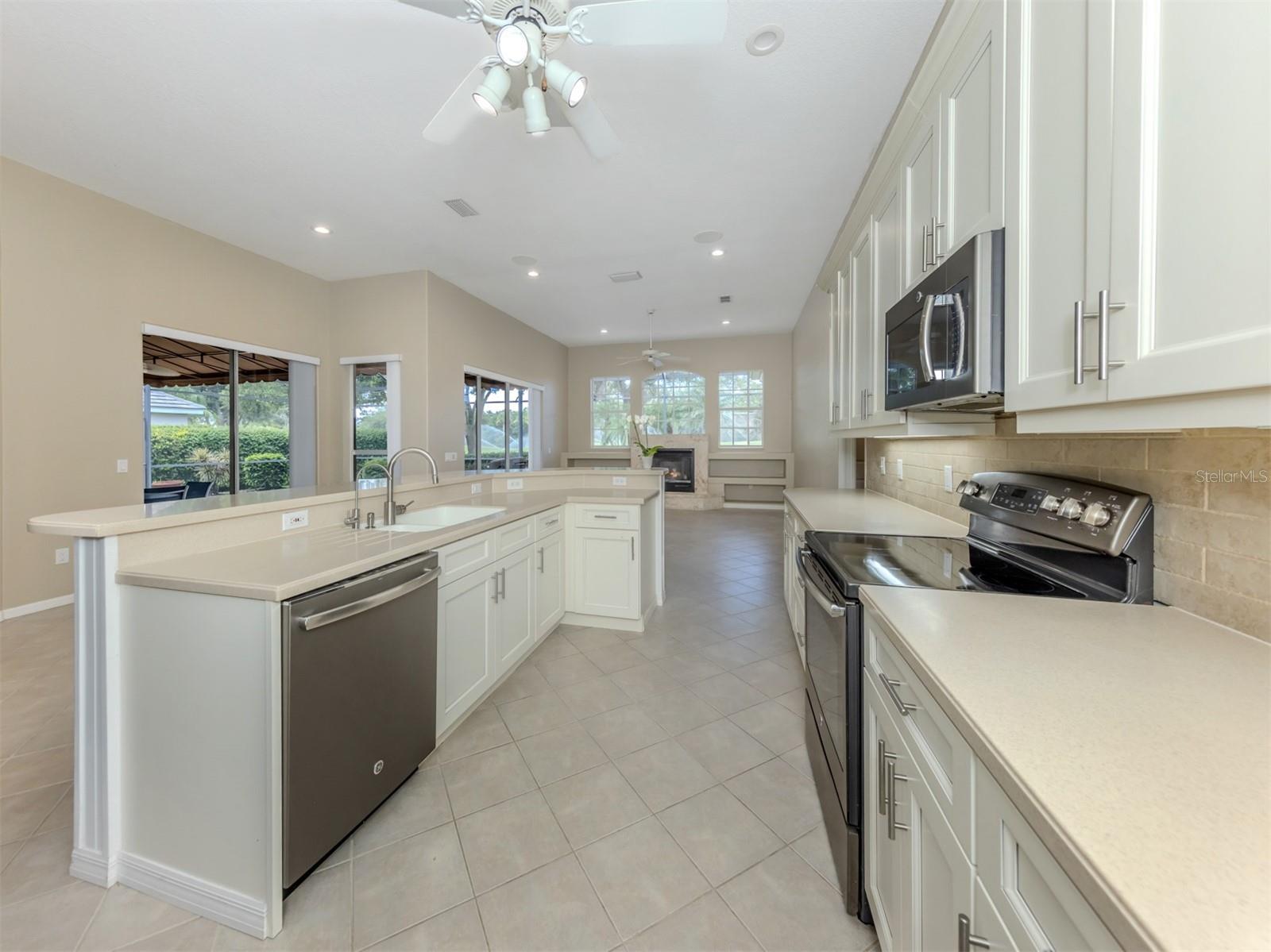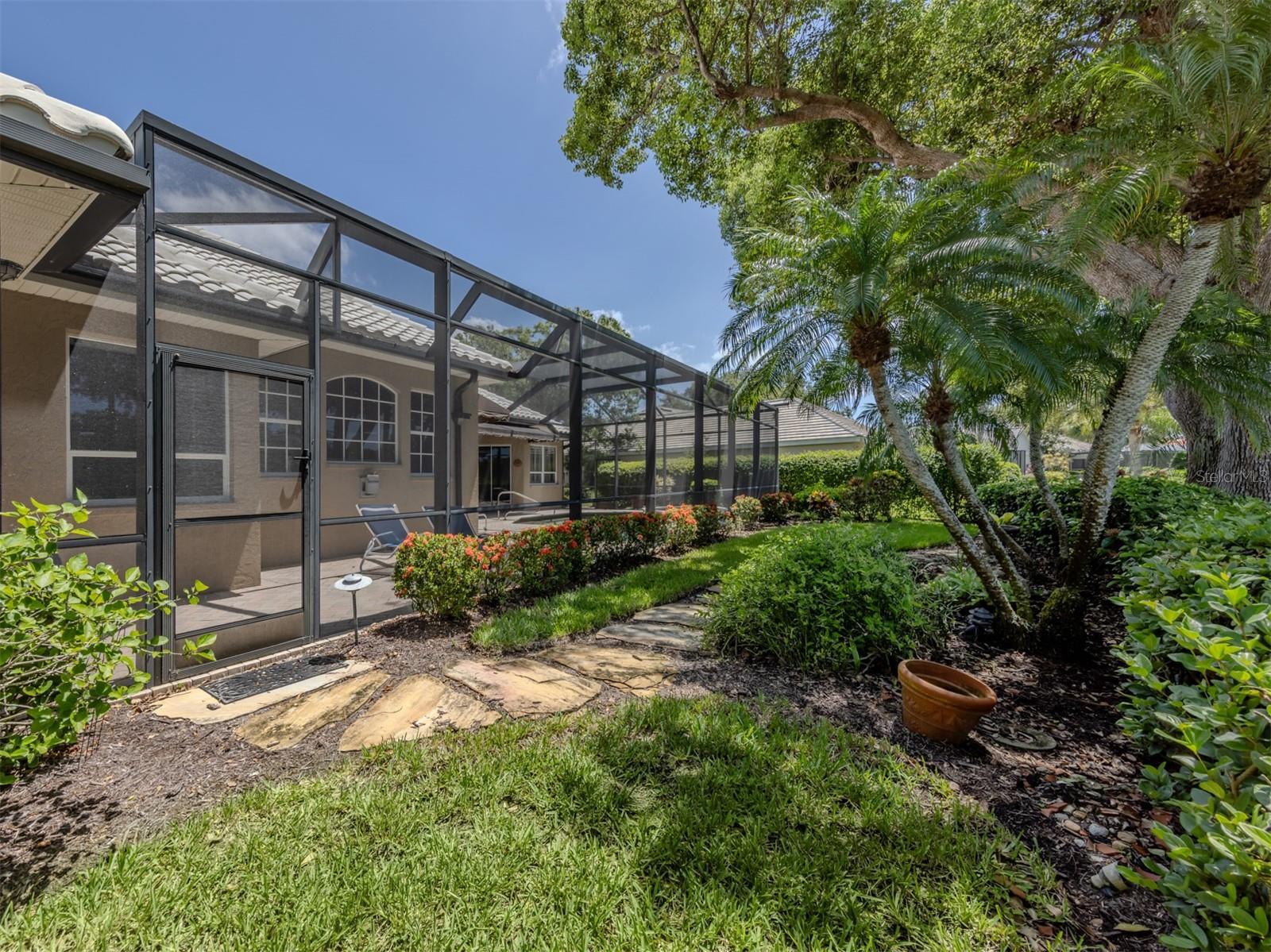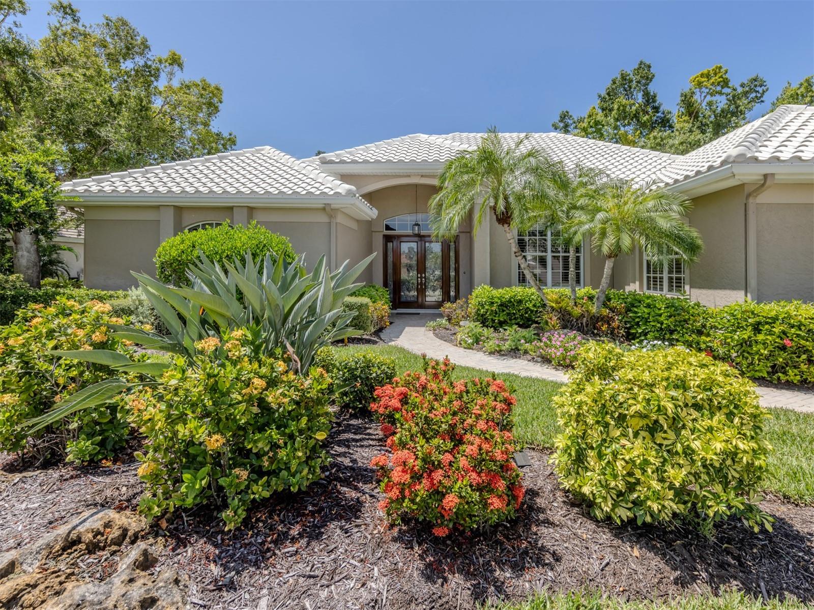 Stunning residence that's filled with natural light and thoughtful design in the prestigious, member-owned, gated community of The Venice Golf and Country Club. Curb appeal is exceptional with meticulously maintained landscaping, a side-entry three-car garage, and a generously sized paver driveway. Step through the refinished elegant leaded beveled glass doors into a bright and expansive open split floor plan. Soaring ceilings and organic bamboo flooring in the living room create a warm and inviting ambiance. At the heart of the home, the screened lanai with its heated pool and spa featuring a new pool and spa pump is positioned to capture serene views of the golf fairway and lush tropical preserve making it an ideal space for relaxing or entertaining. A chef's delight, the updated kitchen features wood cabinetry, a spacious breakfast bar, custom tile backsplash, and sleek satin-finish appliances. The adjacent family room centers around a striking fossil coral rock fireplace with a new propane system framed by tall beautiful, picturesque windows overlooking the fairway and the indigenous tropical preserve, filling the space with soft, natural light. Retreat to the luxurious primary suite that's accessed through double French doors and a decorative art-niche foyer. The en-suite bath features a Roman walk-in shower with custom tile inlay, a slipper soaking tub, dual quartz vanities with pendant lighting, a water closet, and three sizable closets for optimal storage. The second bedroom includes its bath and dual closets, while the third bedroom is suited for use as office or guest suite, complete with a private full bath and direct access to the pool and lanai. New HVAC system, newer roof, irrigation well replaced, interior painting and more. This home offers an exceptional blend of luxury, comfort and privacy. Discover the unparalleled lifestyle of The Venice Golf and Country Club where extraordinary living begins. Recently reimagined, the expanded Clubhouse features a spacious gathering bar, gourmet and commercial kitchens, and a cozy fire pit. The new state-of-the-art Wellness Center offers massage therapy, fitness classes, yoga, physical therapy, and personal training, providing a holistic approach to health and well-being. Beautifully renovated Ted McAnlis-designed 18-hole championship golf course. Residents also enjoy Har-Tru tennis courts, pickleball, bocce ball, and a Junior Olympic-sized pool and spa, balancing active living with relaxation. As a Geo-Certified Audubon Cooperative Sanctuary, VGCC embraces environmental stewardship and sustainability. With an A+ financial rating, the community is as solid as it is serene. Ideally just minutes from airports, shopping, dining, Interstate 75, cultural venues and Wellen Park. It's also a short drive to the charming Venice Island, where 14 miles of pristine beaches meet the sparkling Gulf Coast.