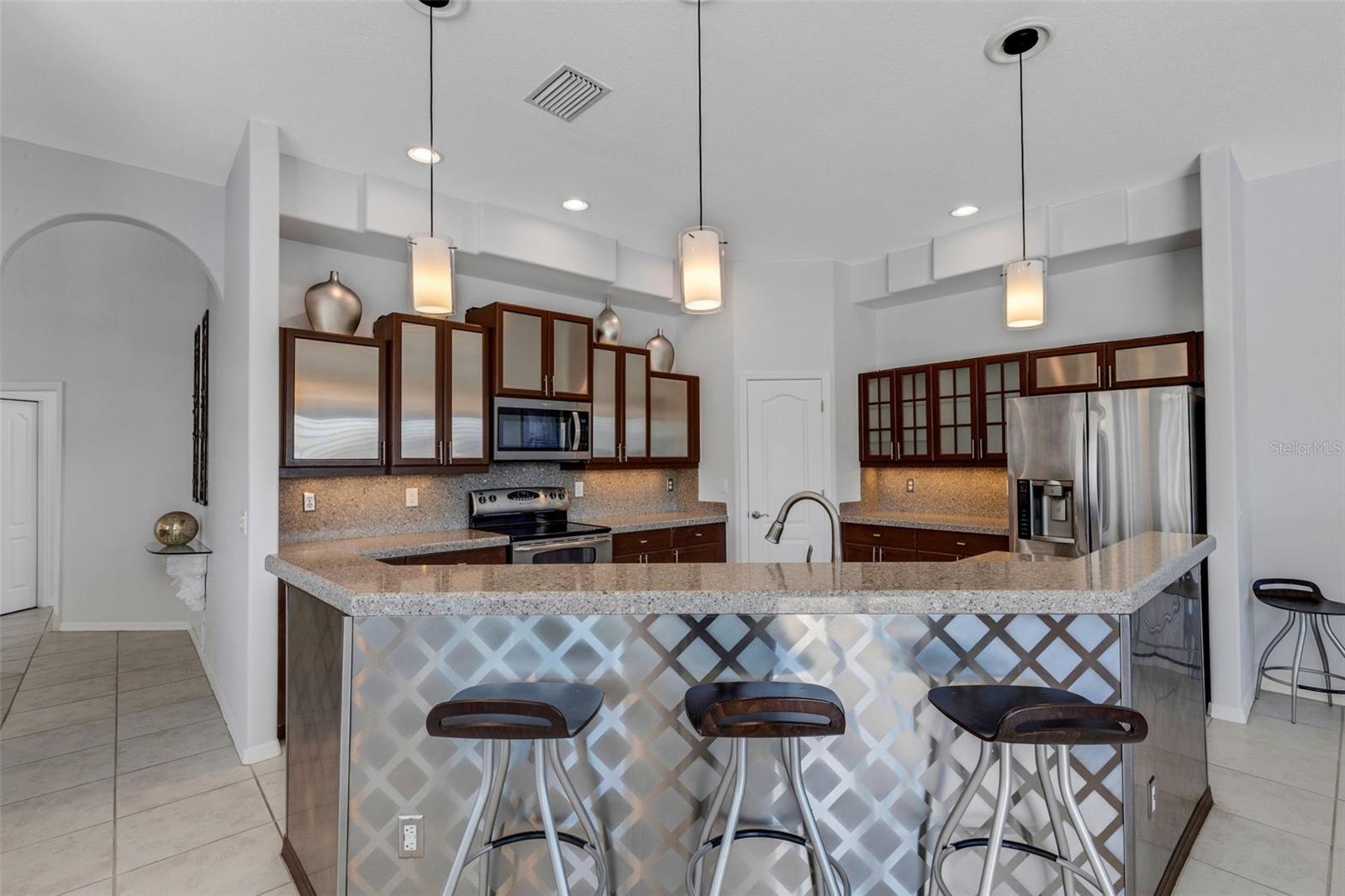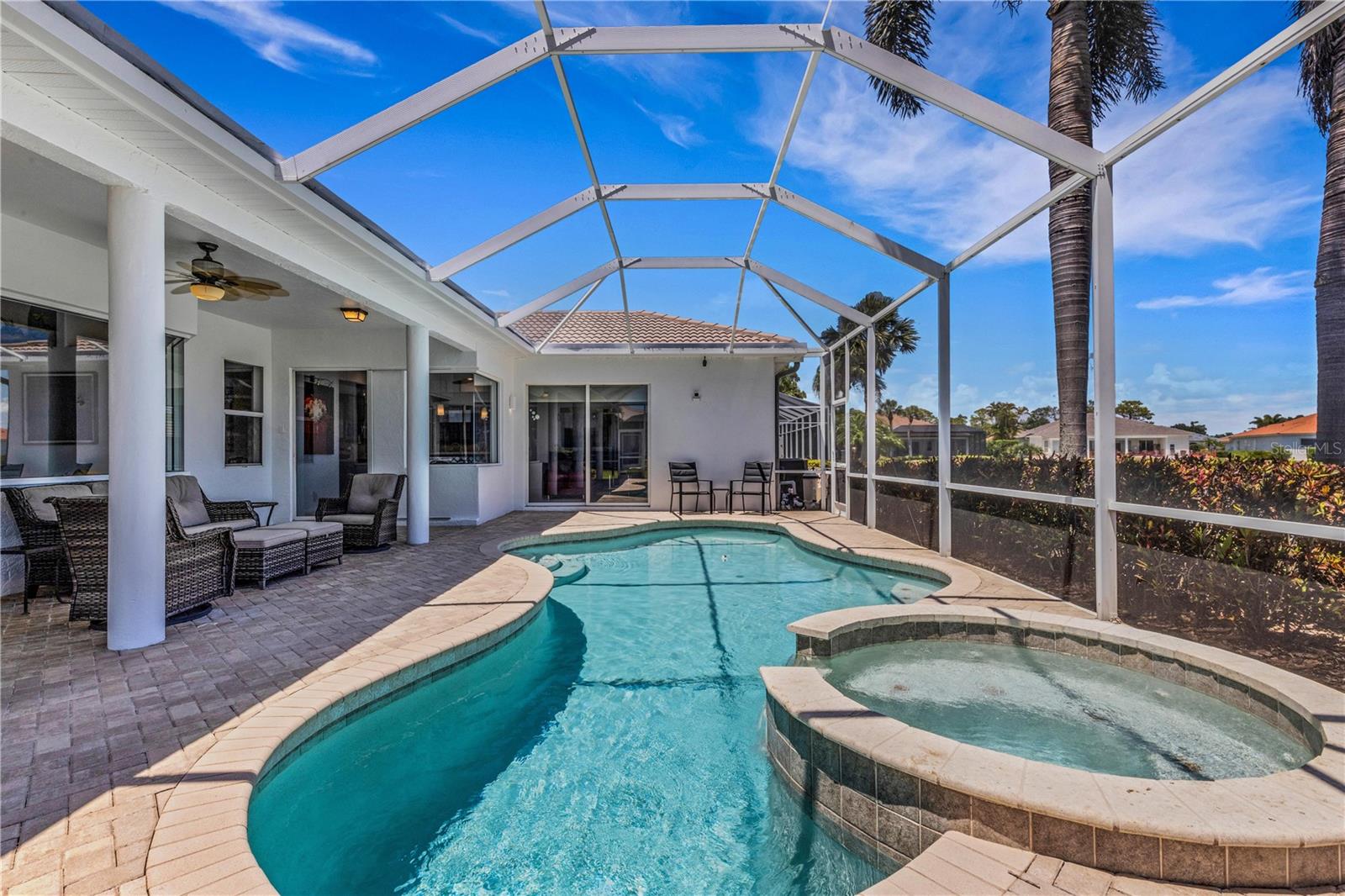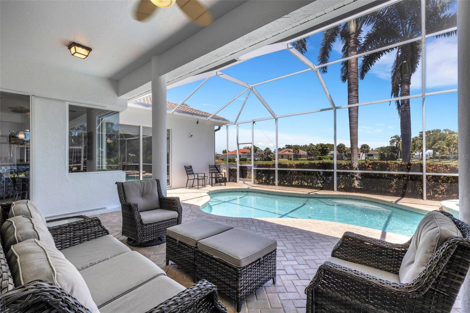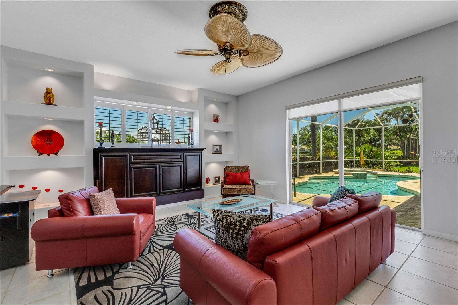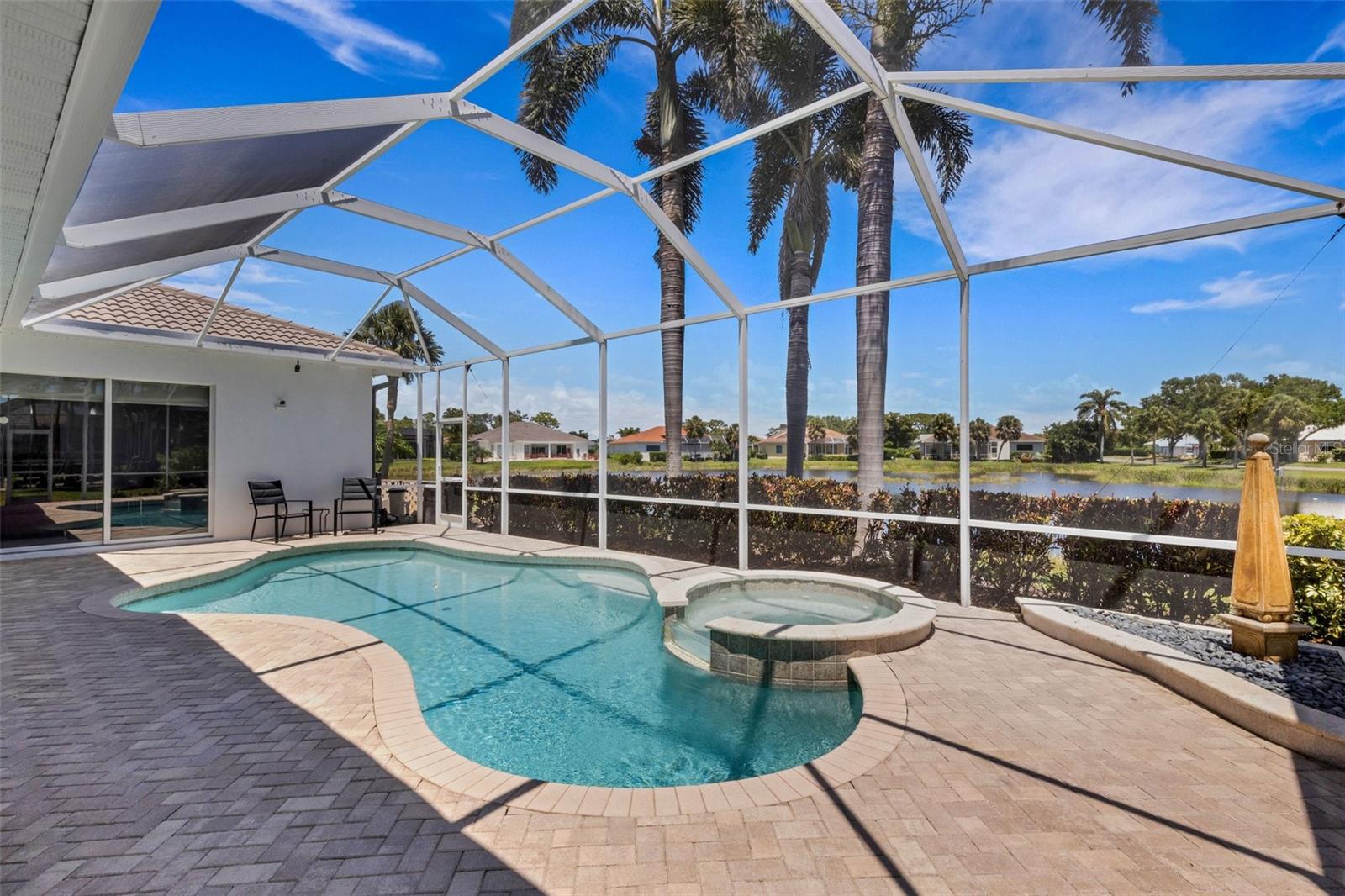 Executive Home in a Distinguished Gated Golf Course Community. Discover refined living in this beautifully maintained single-family home. Located just 7 miles from the world-renowned Siesta Key Beach and only 10 miles to the vibrant arts, dining, and culture of downtown Sarasota, this exceptional property combines resort-style living with unbeatable convenience. This spacious residence offers 3 bedrooms plus a versatile den, along with 2.5 baths, perfect for accommodating family and guests. Enjoy elegant entertaining in the formal living room and formal dining room, complete with a convenient wet bar. The inviting family room seamlessly flows into an eat-in kitchen with an abundance of cabinetry, creating a comfortable gathering space at the heart of the home. Step outside to your private retreat featuring a sparkling pool and relaxing spa--ideal for Florida's sunny days and tranquil evenings. Additional highlights include a freshly painted interior and exterior, a 2-car garage, and mature landscaping that enhances the home's curb appeal. As part of the Palmer Ranch Stoneybrook community, residents have access to a championship golf club that offers full dining options, perfect for casual lunches or elegant dinners. Additional amenities include tennis courts, a community pool, a modern fitness center, and beautifully maintained grounds that enhance the resort-style living experience. Home has brand new heating, ac and water heater. Don't miss the opportunity to make this stunning Palmer Ranch Stoneybrook home yours! Home is sold TURNKEY W/ exception of LR, Alarm, Game Table and Kitchen Table/Chairs