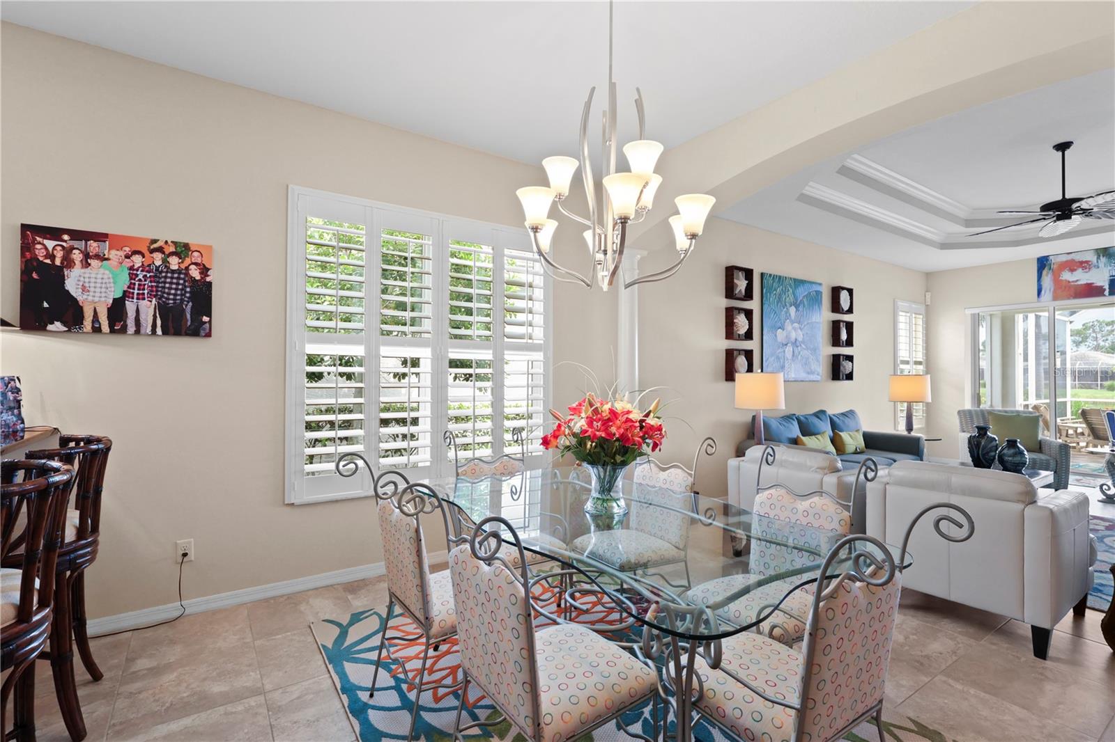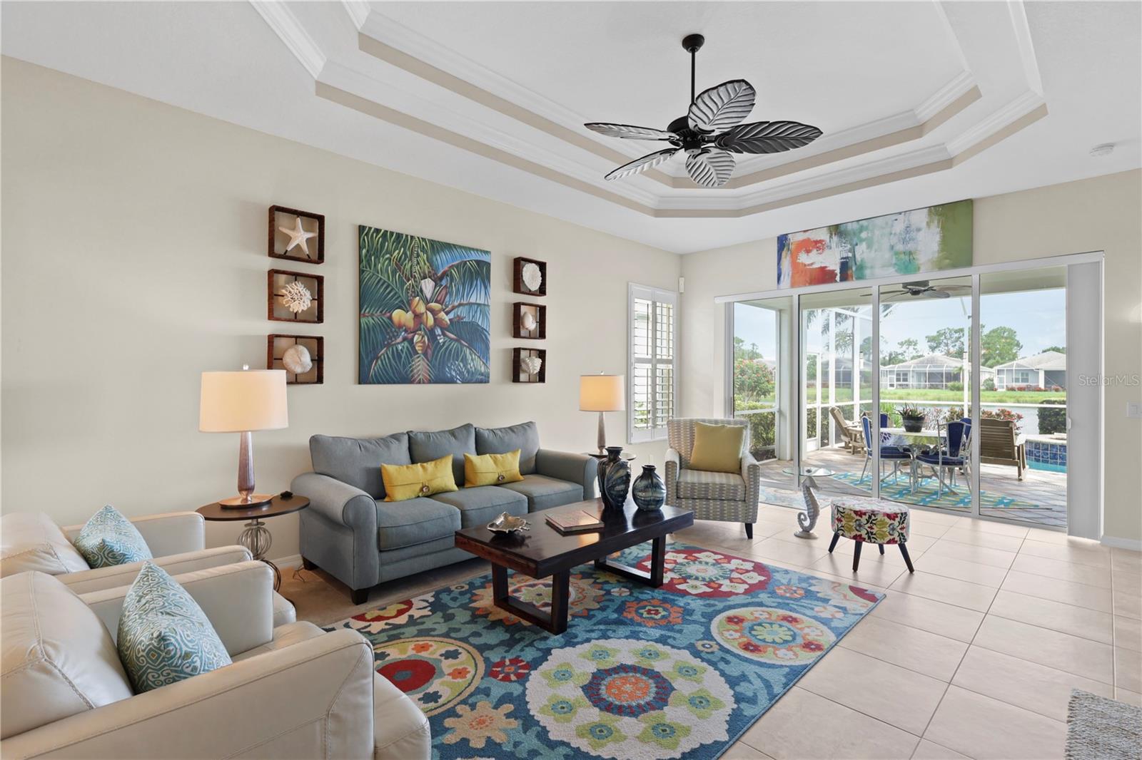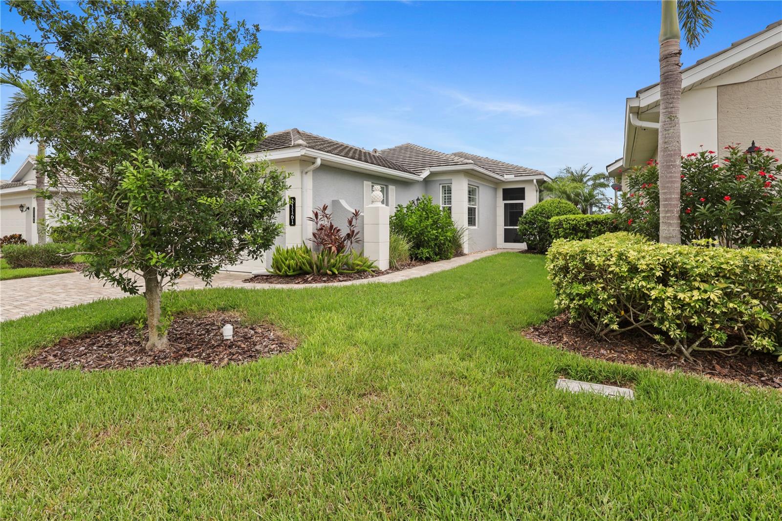 Private Pool, Lake View, and Maintenance-Free. Relax, Unwind, and Let the Community Handle the Rest - Fees Include full roof reserves, exterior insurance (drywall out), wind coverage, lawn care, pest & termite prevention, exterior painting, two community pools, clubhouse with resident-run activities, and full community management. Everything you need for a truly maintenance-free lifestyle.Inside, the home is bright and open with soaring ceilings, elegant double tray accents, custom built-ins, plantation shutters, and refined finishes throughout. The gourmet kitchen is a standout with a large center island, walk-in pantry, granite countertops, stainless steel appliances, and double wall ovens. The kitchen also features a cozy breakfast nook tucked into a bay window allowing you to enjoy your morning coffee bathed in natural sunlight. The sparkling pool has southern exposure and the jetted hot tub is the perfect spot to soak in stunning Florida sunsets. The screened lanai includes covered space and has been plumbed for an outdoor kitchen. The primary suite is a private retreat featuring direct access to the pool, two walk-in closets, dual vanities, a walk-in shower, and a jetted soaking tub for the ultimate in relaxation. The home's split floor plan is ideal for guests, featuring a guest suite with private bath and walk-in closet, plus a third bedroom (currently used as a den) with convenient access to a half bath. This villa is equipped with impact-glass hurricane windows and clear Lexan panel shutters for the sliding glass doors, ensuring you're well-prepared for storm season. Optional membership at The Plantation Golf & Country Club opens the door to two championship golf courses, 13 Har-Tru tennis courts, six pickleball courts, bocce ball, fitness center, Jr. Olympic pool, and fantastic dining and social activities. NO CDD FEES. Located just minutes from Venice's Gulf beaches, Wellen Park Downtown, the Atlanta Braves Spring Training Stadium, shopping, dining, and easy access to I-75, this lakefront villa located on a quiet cut-de-sac offers it all.This is Florida living--simplified, elevated, and ready for you.