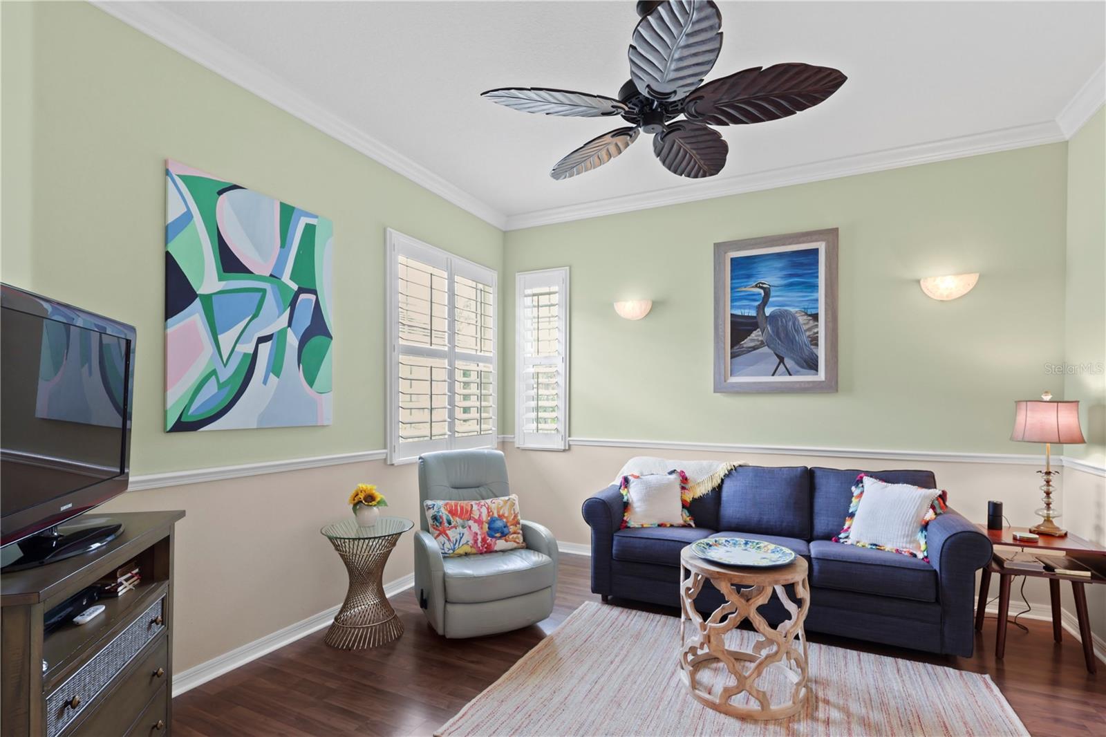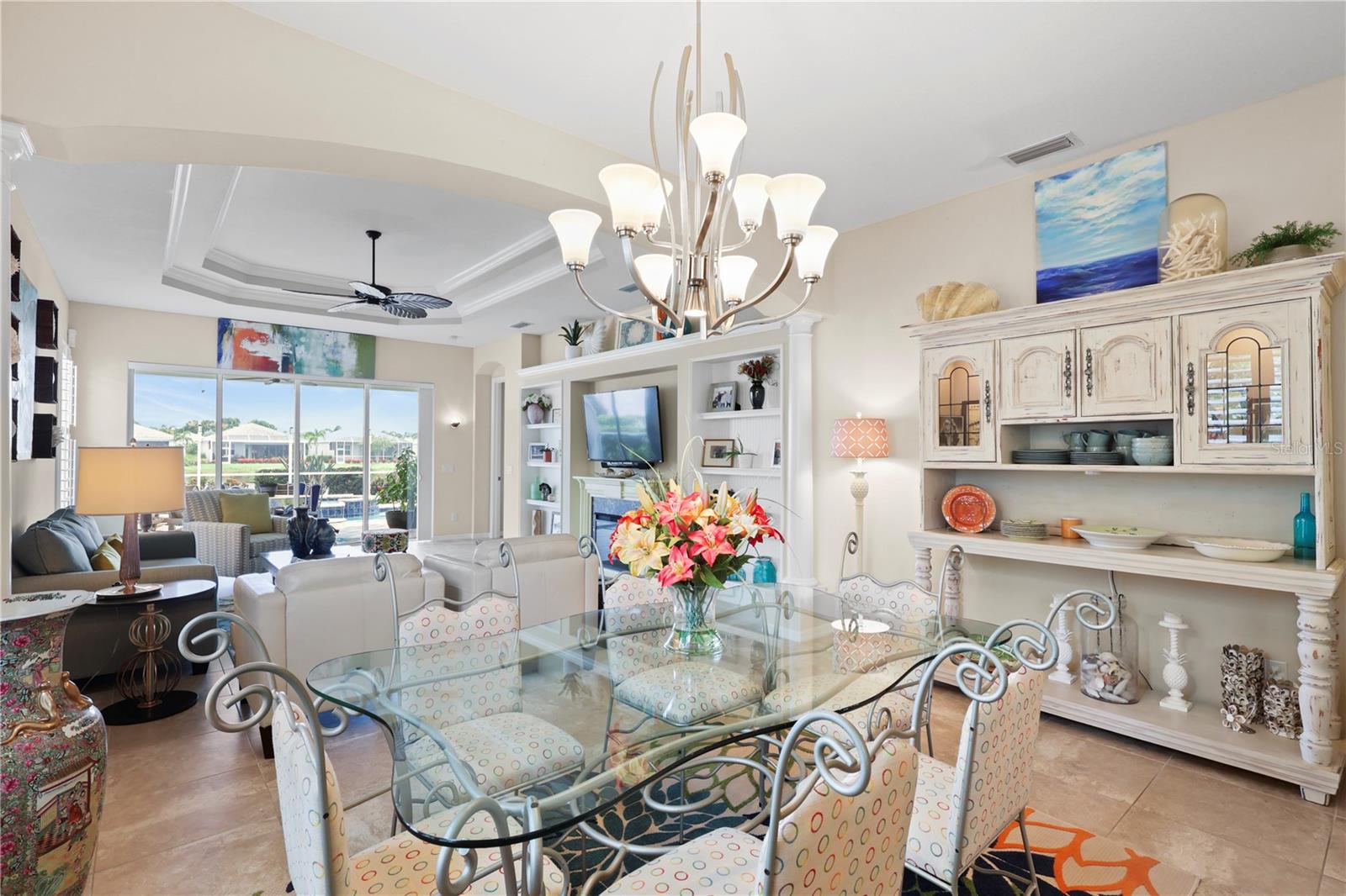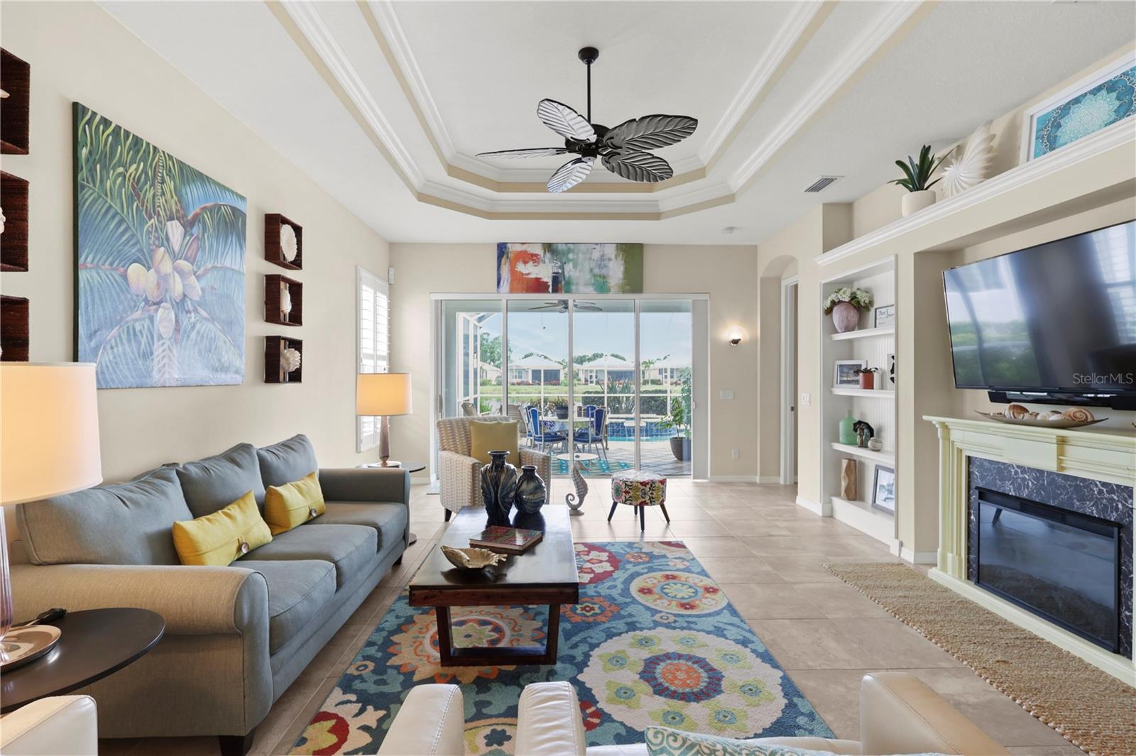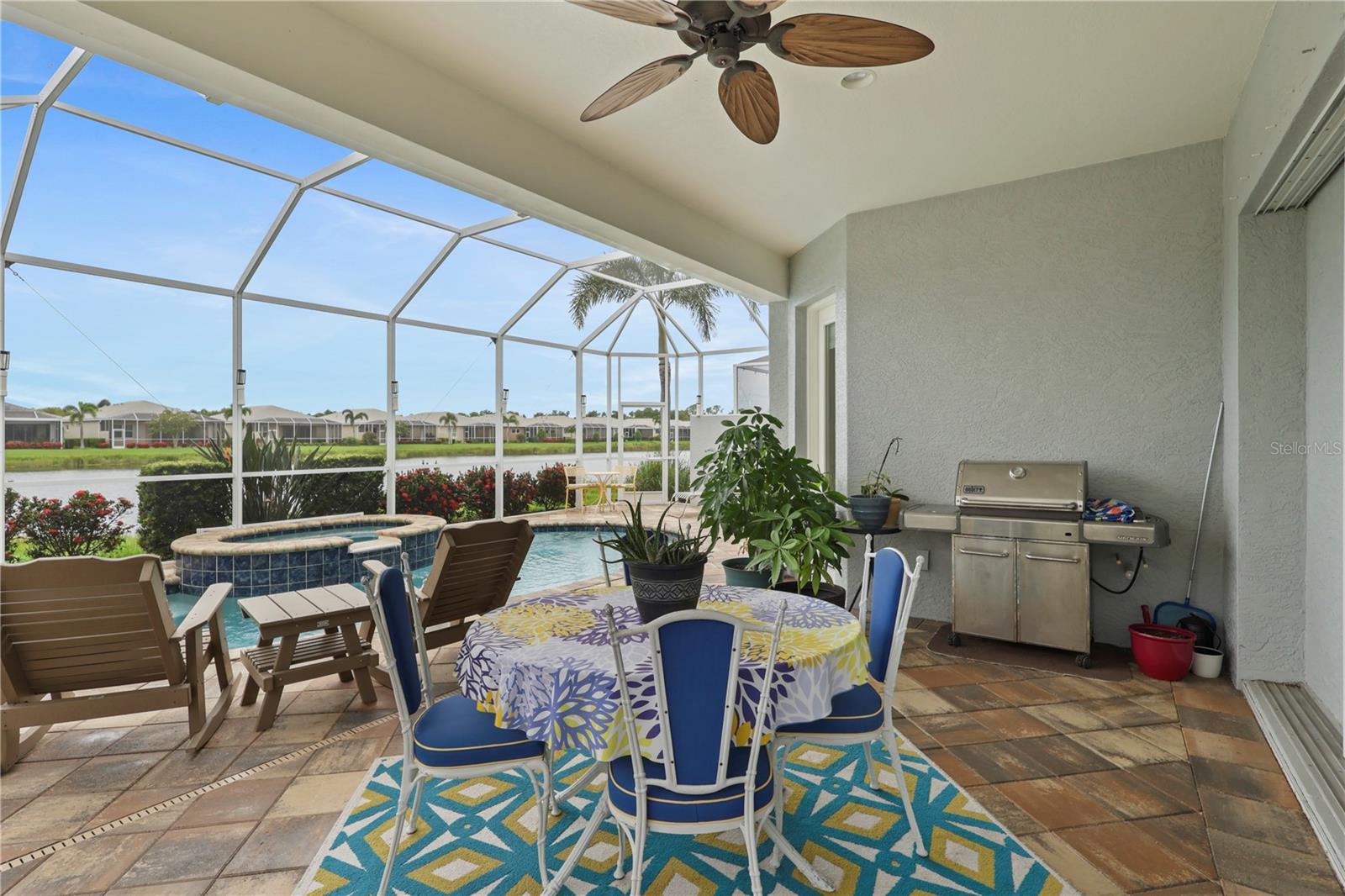 Private Pool, Lake View, and Maintenance-Free. Relax, Unwind, and Let the Community Handle the Rest - Fees Include full roof reserves, exterior insurance (drywall out), wind coverage, lawn care, pest & termite prevention, exterior painting, two community pools, clubhouse with resident-run activities, and full community management. Everything you need for a truly maintenance-free lifestyle.Inside, the home is bright and open with soaring ceilings, elegant double tray accents, custom built-ins, plantation shutters, and refined finishes throughout. The gourmet kitchen is a standout with a large center island, walk-in pantry, granite countertops, stainless steel appliances, and double wall ovens. The kitchen also features a cozy breakfast nook tucked into a bay window allowing you to enjoy your morning coffee bathed in natural sunlight. The sparkling pool has southern exposure and the jetted hot tub is the perfect spot to soak in stunning Florida sunsets. The screened lanai includes covered space and has been plumbed for an outdoor kitchen. The primary suite is a private retreat featuring direct access to the pool, two walk-in closets, dual vanities, a walk-in shower, and a jetted soaking tub for the ultimate in relaxation. The home's split floor plan is ideal for guests, featuring a guest suite with private bath and walk-in closet, plus a third bedroom (currently used as a den) with convenient access to a half bath. This villa is equipped with impact-glass hurricane windows and clear Lexan panel shutters for the sliding glass doors, ensuring you're well-prepared for storm season. Optional membership at The Plantation Golf & Country Club opens the door to two championship golf courses, 13 Har-Tru tennis courts, six pickleball courts, bocce ball, fitness center, Jr. Olympic pool, and fantastic dining and social activities. NO CDD FEES. Located just minutes from Venice's Gulf beaches, Wellen Park Downtown, the Atlanta Braves Spring Training Stadium, shopping, dining, and easy access to I-75, this lakefront villa located on a quiet cut-de-sac offers it all.This is Florida living--simplified, elevated, and ready for you.