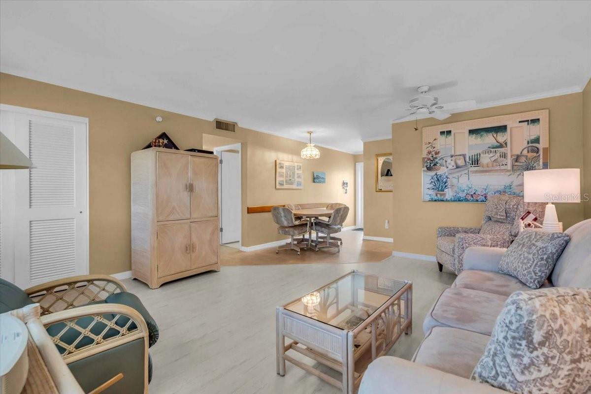 Coastal Retreat Near Venice Beach** Discover your perfect slice of paradise with this charming 2-bedroom, 2-bath condo, ideally located just steps away from the serene shores of Venice Beach. Imagine unwinding on your private lanai, listening to the gentle waves of the Gulf. This delightful home features tile and laminate flooring throughout. The spacious primary suite boasts two closets and an en suite bathroom complete with a walk-in shower. Both the guest bedroom and the primary suite are adorned with elegant Plantation shutters, combining style with functionality. The well-appointed kitchen offers ample storage and overlooks the expansive heated pool area, conveniently accessible directly from your back door and patio. The living and dining areas provide generous space, ensuring plenty of room for entertaining or relaxation, while additional storage throughout the unit adds to its practicality. And for added peace of mind, this unit has all impact window and doors. Located in a vibrant 55+ community, this condo is just a short stroll or a leisurely bike ride to downtown Venice, the popular Crow's Nest, and the picturesque South Jetty. Don't miss out on this incredible opportunity to witness breathtaking sunsets from your lanai. Call today to schedule your private showing and step into your dream coastal lifestyle!