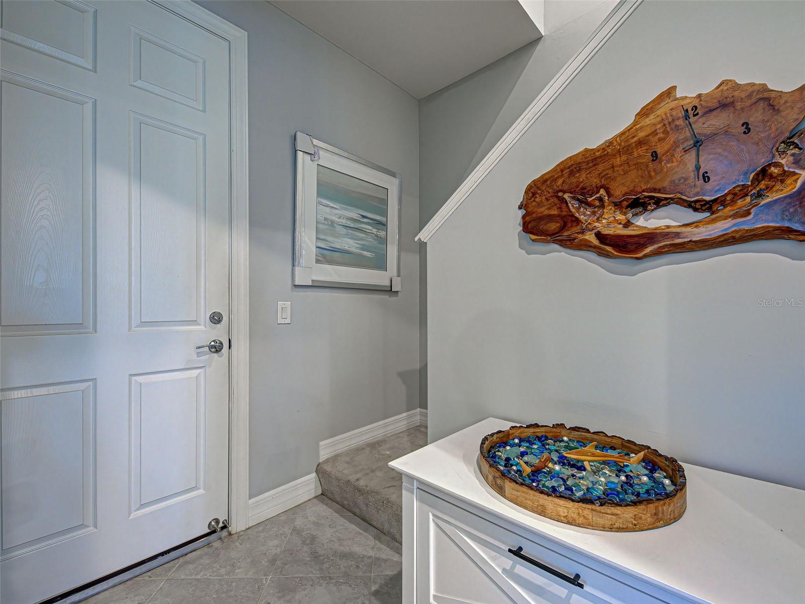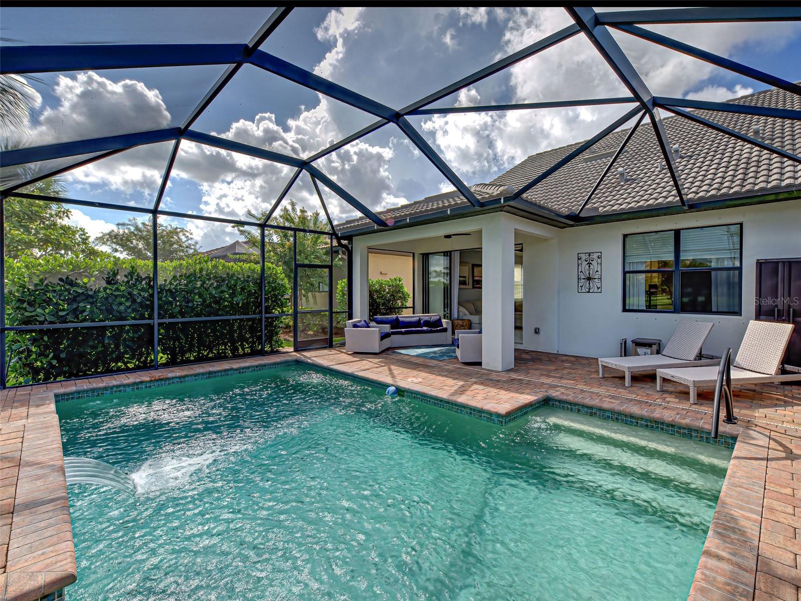 SELLERS ARE MOTIVATED-BRING AN OFFER! Most furniture has been removed, so this home is easy to visualize with your choice of decor! This exceptional two-story Steel Creek POOL HOME is located on a WATER VIEW LOT in IslandWalk with beautiful curb appeal, a stone-accented exterior and a spacious enclosed front porch. This floor plan has a second floor suite with a living room, bedroom & bath that is ideal for multi-generation families or guests. The interior showcases a fresh and tasteful design with LIGHT COLORS, 8 FT DOORS, CROWN MOLDING AND TILE THROUGHOUT the main level, creating an inviting ambiance. The stunning kitchen features desired WHITE CABINETRY, a stylish backsplash, a large quartz island ideal for entertaining and casual dining, and additional cabinet storage. Enhanced by recessed lighting and three pendant lights, the kitchen is bright and functional, equipped with stainless steel Whirlpool appliances and a cozy nook nearby. The adjacent dining area sits perfectly between the kitchen and living room, which opens up to tranquil WATER VIEWS and the screened lanai through a triple slider door, maximizing natural lighting. The primary bedroom features tile flooring, a TRAY CEILING with crown molding, and a ceiling fan. The en suite bathroom includes dual vanities, a walk-in shower with a glass enclosure and grab bar, white cabinetry with quartz countertops, and beautifully coordinated wallpaper. A spacious walk-in closet provides ample storage. The nearby laundry room is thoughtfully designed with UPGRADED WASHER AND DRYER, white upper cabinets, and three wall-mounted baskets and pops with stylish wallpaper. The second bedroom, situated on the opposite side of the home for privacy, offers a ceiling fan, a built-in closet, neutral tones, and tile flooring. Just steps away is the full guest bathroom, which includes a walk-in shower with tiled walls and a glass door, white cabinetry and a grab bar for safety. Upstairs, the BRIGHT LOFT presents a versatile open space with recessed lighting, neutral carpet, and a ceiling fan with a light, perfect for a home office, playroom, or media room. The third bedroom features its own en suite bath complete with a bathtub, glass slider, single sink, and safety grab bar. A connected STORAGE ROOM adds functional value. Outdoor living boasts an expansive SCREENED AND COVERED LANAI, offering a laidback Florida lifestyle with a HEATED sparkling POOL, plenty of room for dining and relaxing, and serene water views. The garage is fully equipped with EPOXY flooring, OVERHEAD STORAGE, ADDITIONAL STORAGE CABINETS, a utility SINK, and a 4-FOOT EXTENSION. This home offers a great location with access to the resident-only back gate and it's near the clubhouse! Future connectivity to Manasota Beach Rd, (projected to be done by August 2026) will enhance the home's already excellent accessibility. Residents of IslandWalk enjoy top-tier amenities including geothermal pools, a lap pool, two gyms, tennis and pickleball courts, bocce, a community garden, firepits, a dog park, and a 24-hour staffed security gate. Golf carts are permitted, and a resident-only back gate provides direct access to downtown Wellen Park--home to Publix, the Atlanta Braves ballpark, Costco, and more--without the need to travel on US-41. The LOW HOA includes landscaping, high-speed internet with three DVR boxes, a full-time Lifestyle Director, access to community amenities, and an onsite HOA management team. 4 miles to I-75 for E-Z access.
