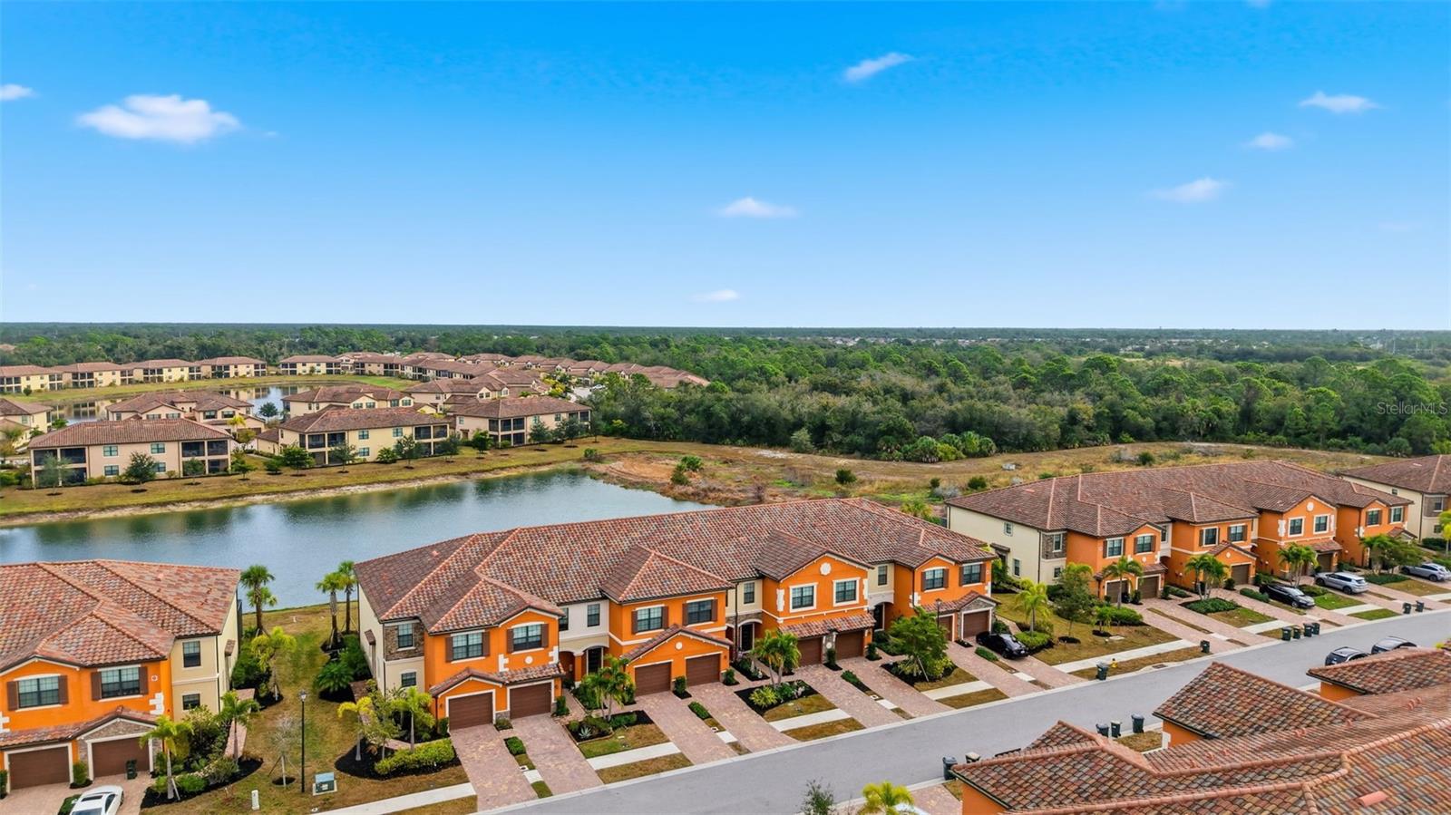This inviting townhome in the vibrant Gran Paradiso community blends comfort, style, and everyday ease. Imagine sipping your morning coffee on a private patio overlooking the lake, then heading out to enjoy the resort-style amenities just steps from your door. With the convenience of a one-car garage, life here feels effortless. Inside, the main level welcomes you with sleek tile floors, while upstairs is carpeted which makes the bedrooms feel cozy. Crown molding and upgraded baseboards add a little something extra, and soaring ceilings keep the space feeling bright and open. The primary suite features two walk-in closets and a spacious bath with double vanities. The additional bedrooms are generously sized, with plenty of closet space and a second full bath that includes both a tub and shower--perfect for family or guests. Practical details make living here even better: hurricane shutters provide peace of mind and the laundry is conveniently located upstairs between the bedrooms. This isn't just a home--it's a lifestyle, where every day feels like a getaway. Located in the heart of Wellen Park, just minutes from Venice beaches, Warm Mineral Springs, golf courses, and world-class shopping and dining. Residents enjoy exceptional amenities including a 7,000 sq. ft. clubhouse, resort-style pool with beach entry, hot tub, fitness center, locker rooms with saunas and steam rooms, tennis and pickleball courts, billiards and card rooms, and scenic fitness trails. With its Tuscan-inspired architecture and vibrant social calendar, Gran Paradiso offers the ultimate Florida lifestyle. Don't miss your chance to own this stunning townhome.