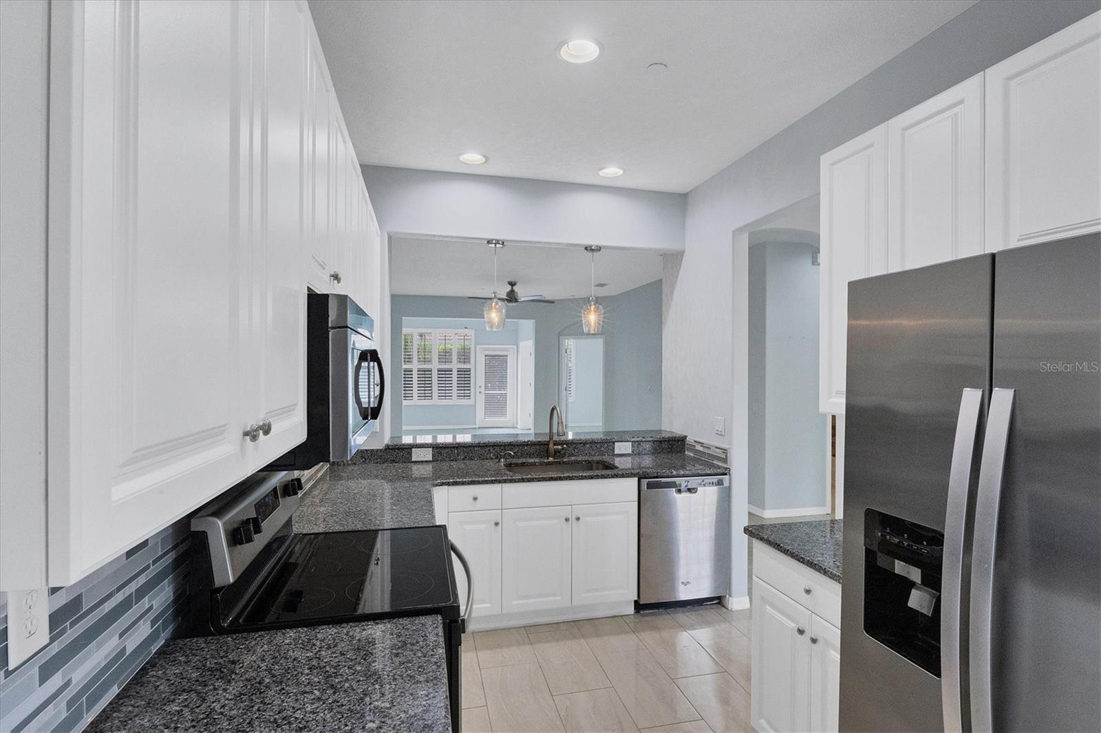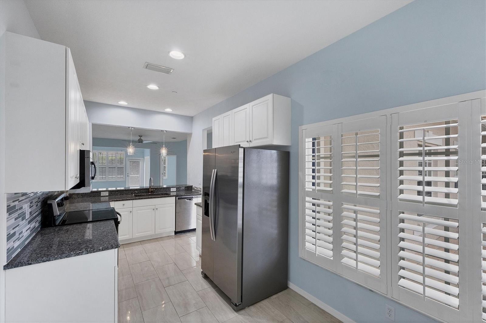 DON'T WAIT TO SEE THIS VILLA!! 2BD/2BA WITH HIGH END UPGRADES. NEW ROOF. Open floor plan with Porcelain tile throughout the home. Kitchen updated with granite counters, glass tile back splash, stainless steel appliances, and pendant lights over bar counter. Extended living space offers room for office, dining room, or whatever your vision can see. Spacious master bedroom with en suite bath and walk in closet. Bathroom updated with granite counters, mirror, lighting and fixtures. Guest bedroom at other end of villa for privacy. Guest bathroom updated in same fashion as master. Laundry room has extra cabinets for storage. Plantation shutters throughout the villa. Updated fixtures and fans. NEW ROOF-only 2 years old. Property is replumbed.