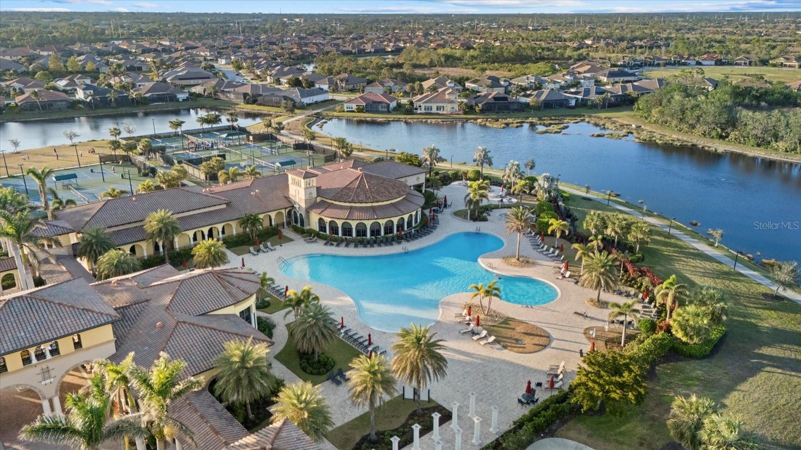 One or more photo(s) has been virtually staged. WATERFRONT POOL HOME IN GRAN PARADISO! PRICED FOR QUICK SALE Welcome to your stunning 4-bedroom, 3-bathroom Trevi model offering over 2,000 sq.ft. of elegant living space built in 2017. Located in the highly desirable gated community of Gran Paradiso in Wellen Park, Venice, Florida, this home features luxury upgrades, a private heated swimming pool, and tranquil waterfront preserve views--perfect for enjoying the Florida lifestyle year-round.Inside, discover granite and quartz countertops, an extended kitchen island, upgraded backsplash, wainscoting trim, custom window cornices, and beautiful tile flooring. The gourmet kitchen includes stainless steel appliances, a walk-in pantry, and bar seating ideal for entertaining. The primary suite features custom his-and-her closets and a spa-style bath with garden tub and glass shower.Step outside to your private lanai oasis with Italian travertine pavers, therapy jet pool, custom lighting. Custom designed lanai enclosure engineered for strength, durability, and unobstructed views. The structure features oversized 8" x 8" x 40' overhead beams spanning the pool area, with a single continuous beam positioned to preserve uninterrupted pond views. Surrounding the lanai are substantial 6" x 6" columns, internally reinforced with steel cabling for added stability. The entire enclosure is engineered to withstand a Category 5 hurricane, offering exceptional peace of mind along with striking architectural appeal.The 2-car garage offers epoxy floors, built-in cabinets, ceiling racks, and attic storage. Additional features include accordion hurricane shutters, new water heater (2024), and whole-home surge protection.Gran Paradiso provides resort-style amenities--clubhouse, fitness center, sauna, tennis, pickleball, and a lagoon-style pool. Just minutes to Wellen Park, Braves Stadium, shopping, dining, golf, and Gulf Coast beaches.Schedule your private showing today and experience luxury Florida Gulf Coast living at its finest!