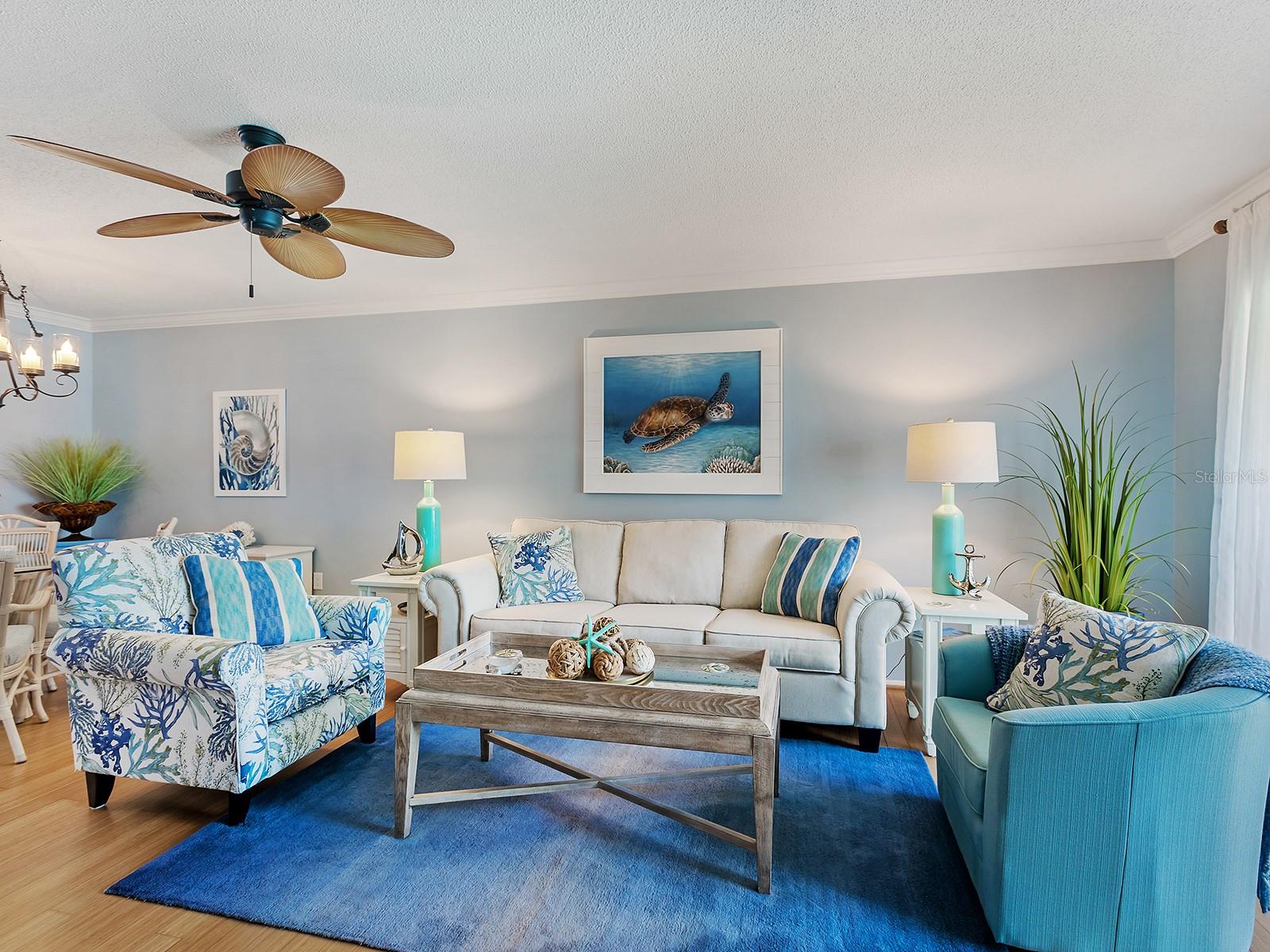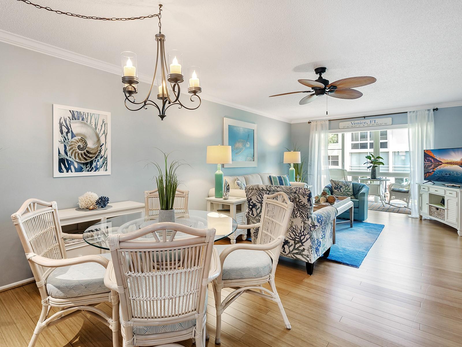 New to the market completely turnkey updated condominium in Bella Costa complex on the Intracoastal Waterway on Venice Island. This condominium has been professionally decorated and well-maintained by owner of a seasonal home. All you need is to bring your toothbrush for personal living or as a fine investment property in beautiful, historic downtown Venice. The home has bamboo flooring and travertine tile throughout for ease of maintenance. The decor is sophisticated coastal style with comfortable furniture and decorating details to add comfort and quality. The kitchen has new stainless-steel appliances, granite counters, and fine cabinetry and open to dining and living room area. Stylish lighting in all rooms and separate new washer and dryer within the unit. The lanai area has been incorporated into the living room area for added space and beautiful garden view and peak of the Intracoastal Waterway. For storm security, all windows are hurricane resistant. Window decor is complete with plantation shutters and fine roll-down shades. Every detail for comfort and quality living is provided in this fine home just two blocks from vibrant downtown Venice Avenue with fine dining, unique shops and tropical landscaping to make this a special place to call home. Venice Beach is less than mile with parking and refreshment and bath facilities. The Bella Costa community offers a variety of activities to create a warm and welcoming environment for you and your family or company. Unit is attractively priced, and community has completed Integrity Study Inspections with no issues and well-funded financials. One of the finer units in this complex, it is attractively priced and easy to show. Motivated seller. Completely furnished and all you need to bring is your clothing and then stock the refrigerator!