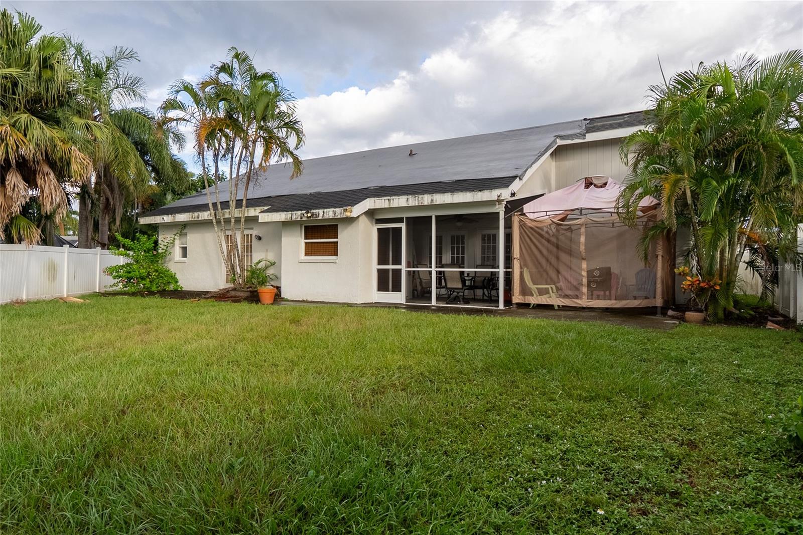 Step into sophistication with this beautifully upgraded 3-bedroom plus den, 2-bath home featuring a spacious 2-car garage and a private fenced yard with a storage shed. Originally transformed in a complete 2013 renovation, this residence has been impeccably maintained and thoughtfully updated ever since.Inside, you'll find a harmonious blend of craftsmanship and comfort -- from rich wood-laminate flooring and detailed moldings to upgraded light fixtures, designer ceiling fans, and elegant chair railings. The gourmet kitchen and bathrooms boast stunning tile work and refined finishes, while the expansive primary suite offers a luxurious bath with a soaking tub and walk-in shower.Relax and unwind in the screened lanai or enjoy outdoor living on the open patio overlooking the beautifully landscaped, fully fenced yard.If you appreciate attention to detail and timeless design, this home is a must-see. **Roof is 2011 but needs to be replaced**Schedule your private showing today.