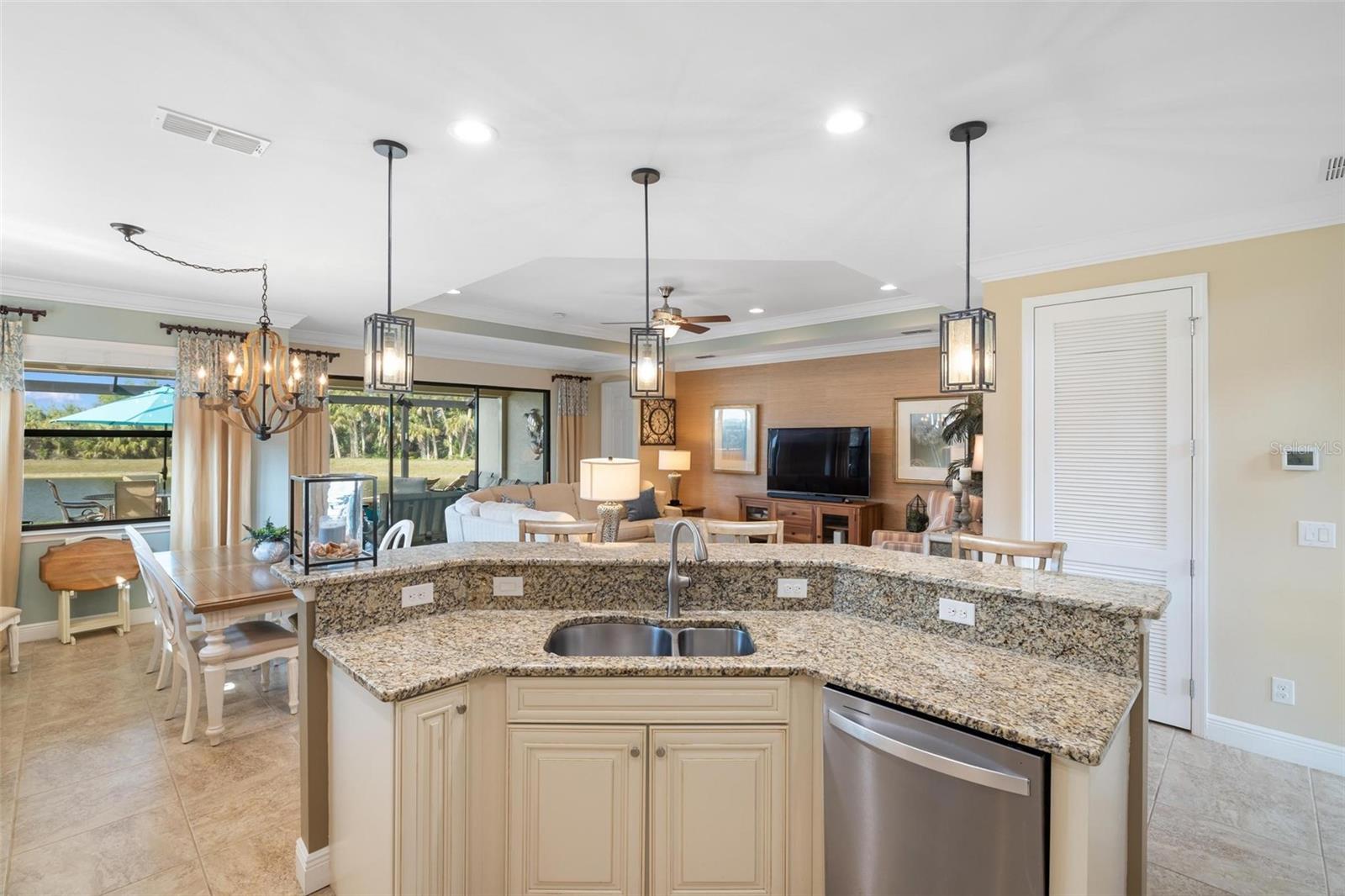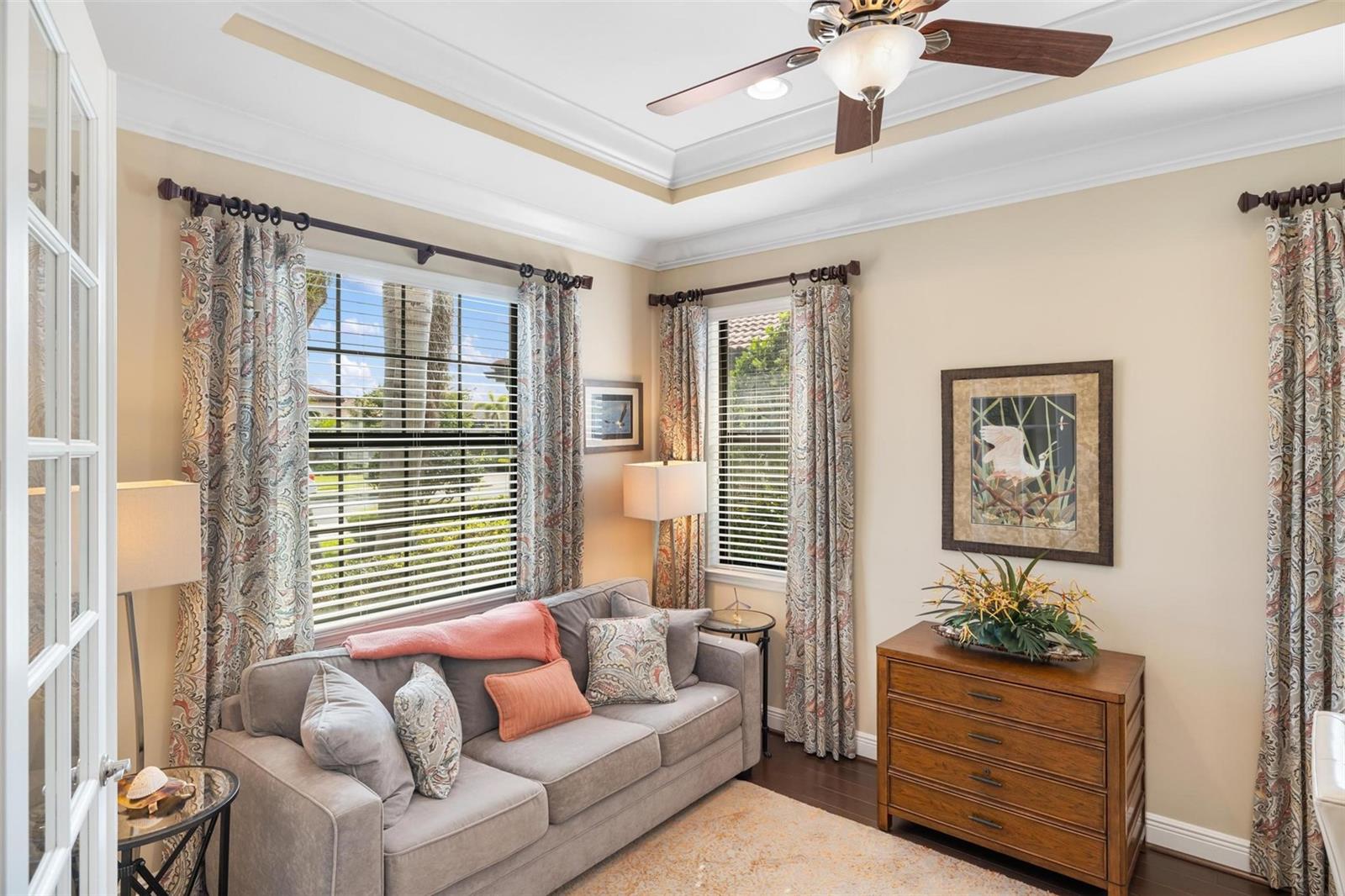 Imagine coming home to this space, located in the gated community of Willow Chase in Nokomis. 1254 Cielo Court offers a life of ease, elegance, and everyday beauty just minutes from the white sands of Nokomis Beach. From the moment you arrive, you'll feel it - this home was made to be lived in, loved in, and shared. Yet it's more than just a place to live: it's the kind of space that makes you feel instantly at home. As you pull into the pavered driveway, you'll notice it's surrounded by lush tropical landscaping. The charming front entryway welcomes you in, setting the tone for what's inside: bright, open, and impeccably finished spaces. Step into a sunlit floor plan that flows effortlessly from room to room, designed for hosting memories, celebrations, and meaningful moments. The heart of this home is its gourmet kitchen, where style meets function. Prepare meals surrounded by granite countertops, wood cabinetry, and stainless steel appliances, including a natural gas range. The large island invites gatherings for morning coffee or evening wine with friends. Just steps away, the dining area glows with natural light and a stunning chandelier, setting the stage for dinners filled with laughter and connection. In the living area, tray ceilings, crown molding, and a custom feature wall create warmth and sophistication. Open the triple sliders and let the breeze flow through as your indoor living space expands onto the lanai. At the end of the day, retreat to your first-floor primary suite overlooking the peaceful pond. With two walk-in closets, a luxurious spa-like bathroom, dual vanities, a soaking tub, a beautifully tiled walk-in shower, and a private water closet, this space is designed for rest and renewal. The main floor also offers a second bedroom and full bathroom, ideal for guests or multigenerational living (especially with the laundry room being on the main floor). Head upstairs to see two more bedrooms with a full bathroom. With four bedrooms, three full bathrooms, and an additional flex room perfect for a home office or creative studio, this 2,576-square-foot home adapts to every stage of life. Step outside to your private outdoor oasis on the extended lanai, where the panoramic screen frames tranquil water views. Fire up the built-in grill in your outdoor kitchen, grab a drink from the fridge, and unwind in total privacy. Outfitted with hurricane roll-down shades for added protection and comfort, this lanai is truly an extension of the home and perfect for year-round enjoyment. Willow Chase offers resort-style amenities including a community pool, tennis and pickleball courts, a basketball court, fitness center, and playground. Located just minutes from multiple Gulf beaches, downtown shopping, dining, and top-rated schools, this home captures everything that makes life in Southwest Florida feel like a permanent vacation. Imagine the life you could live here. If you've been waiting for a sign, this is it. Don't miss your opportunity to own the home you've always dreamed of. Roof: 2013 | HVAC: 2021 | Water Heater: 2021